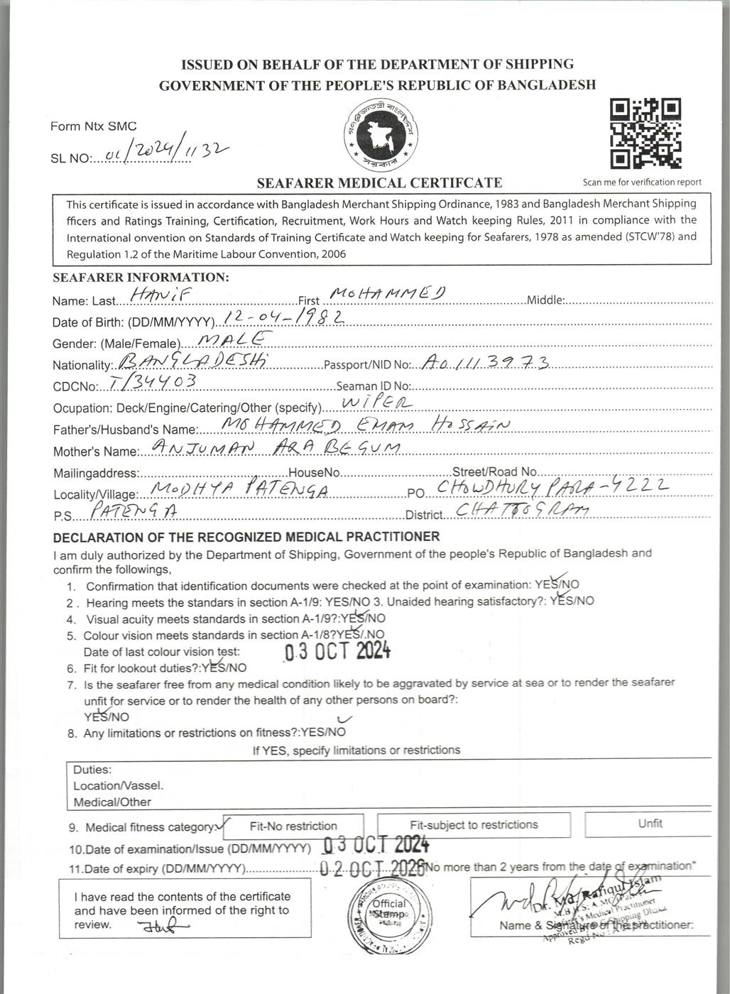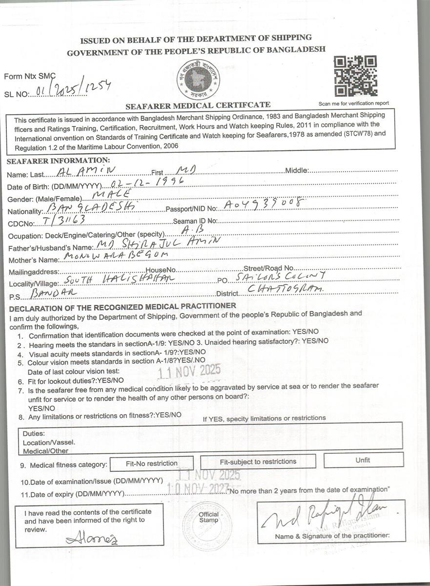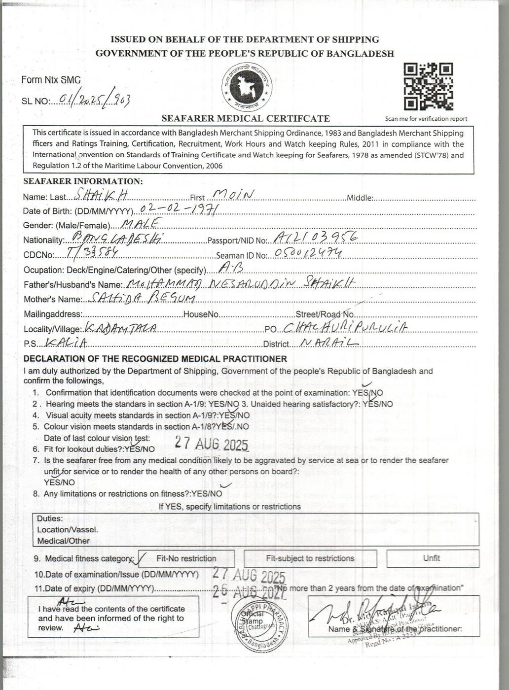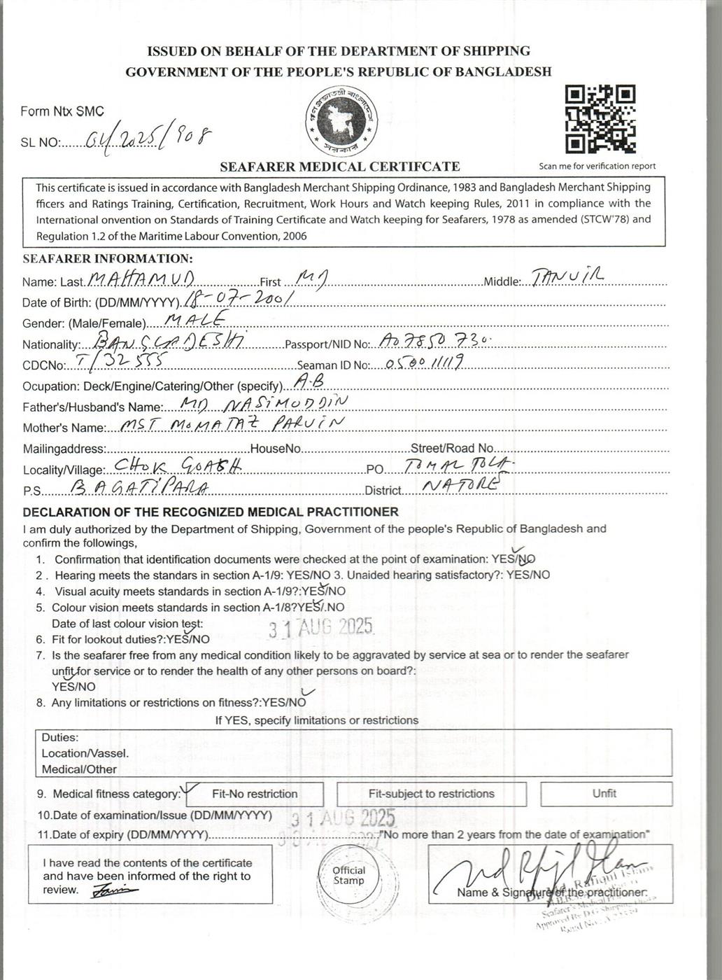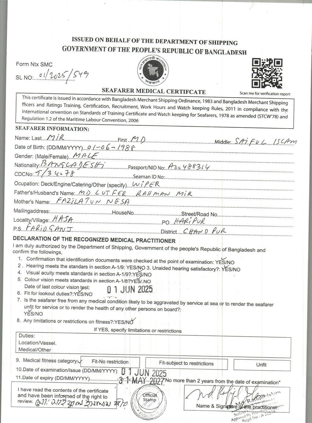1.. SEAFARER MEDICAL CERTIFICATE