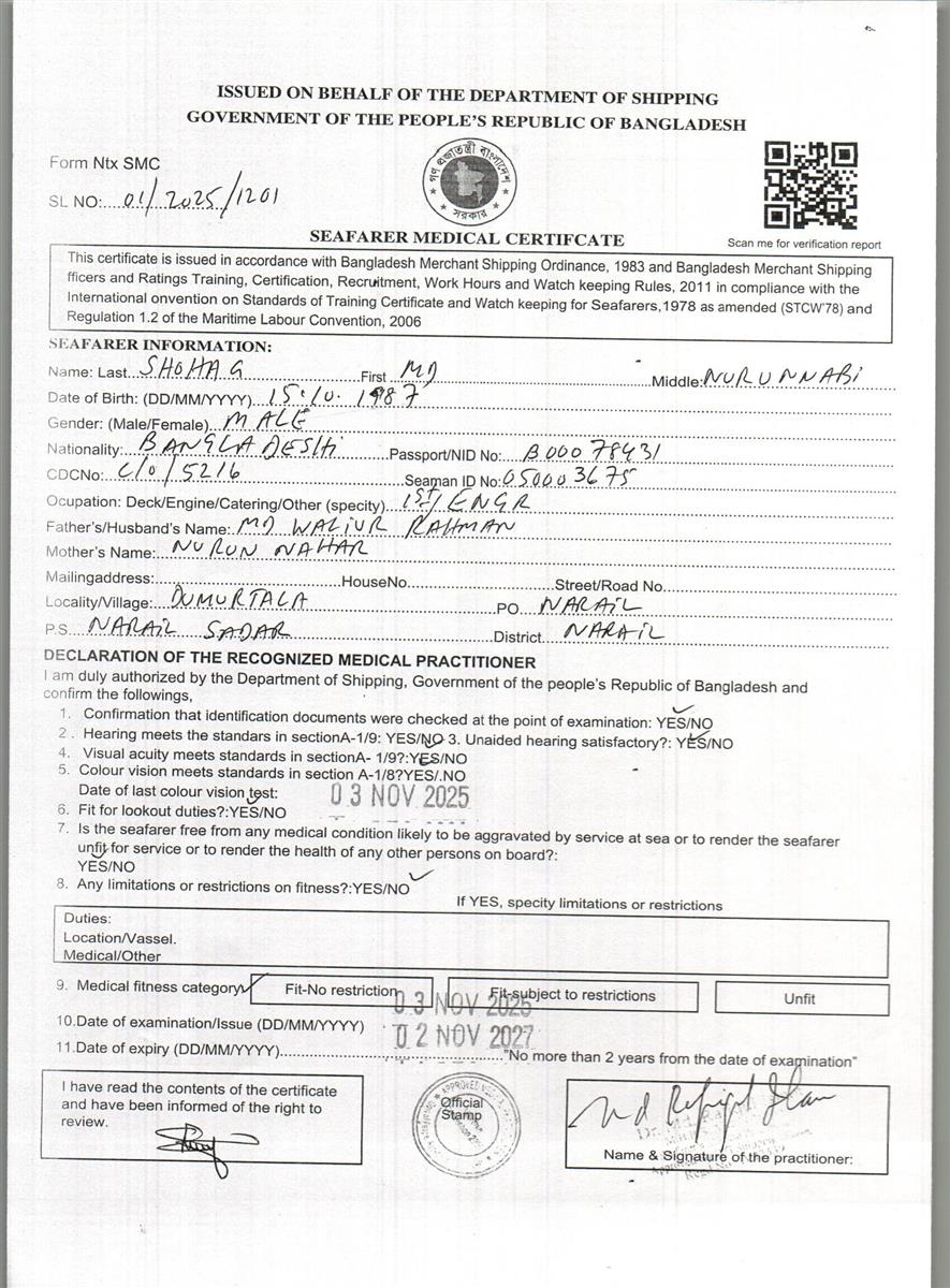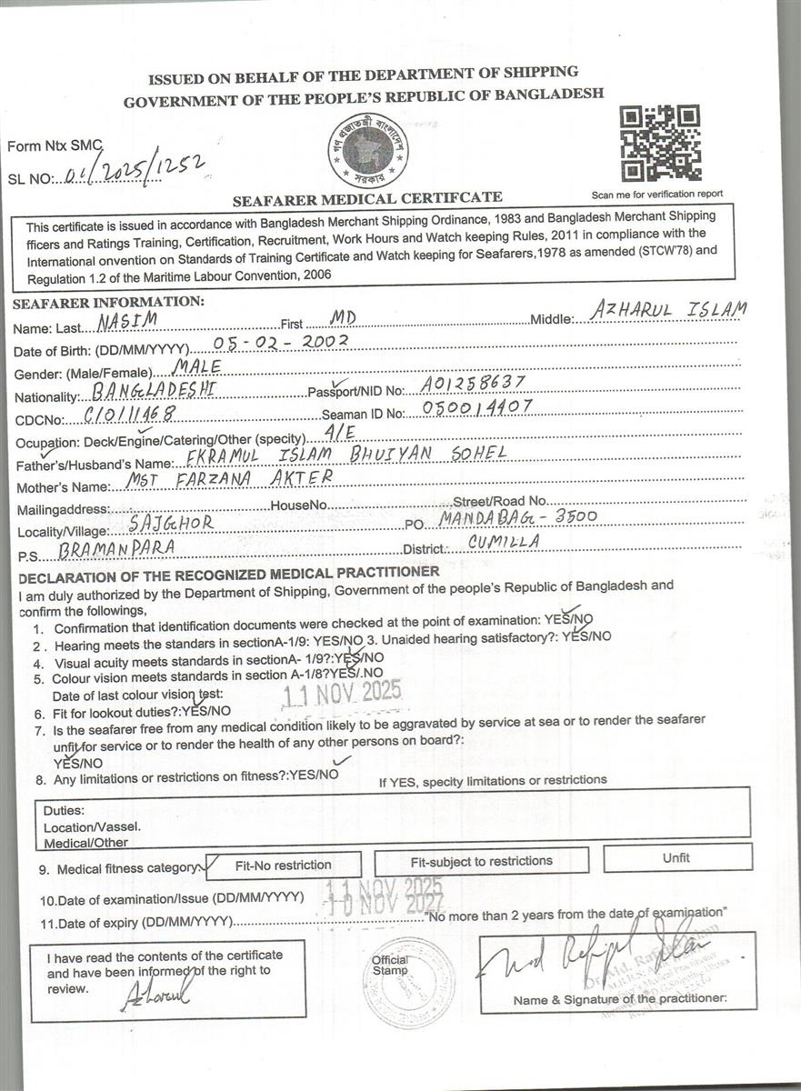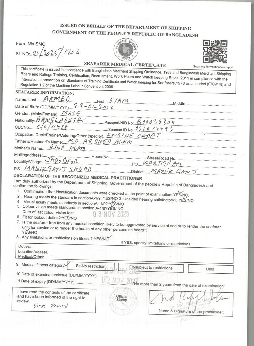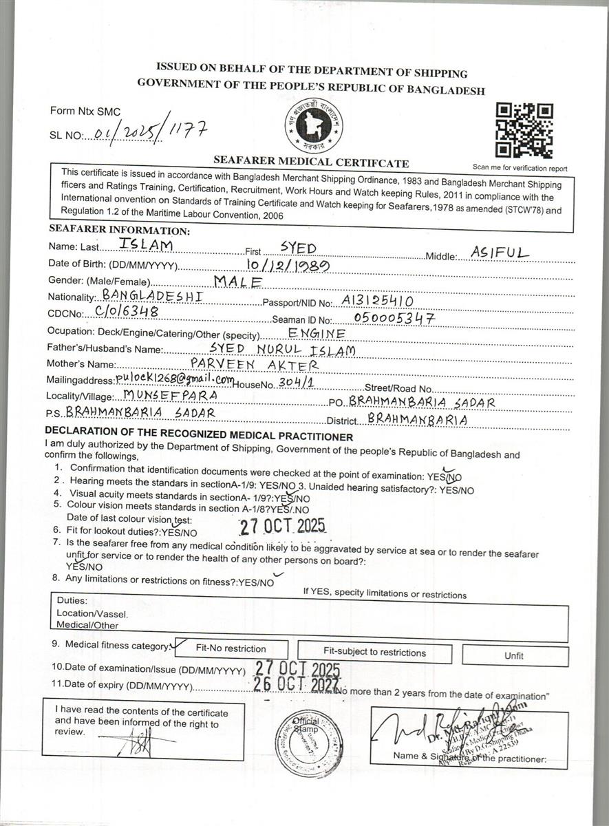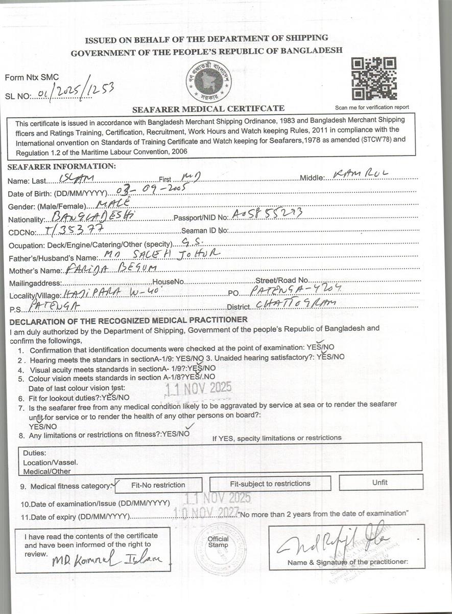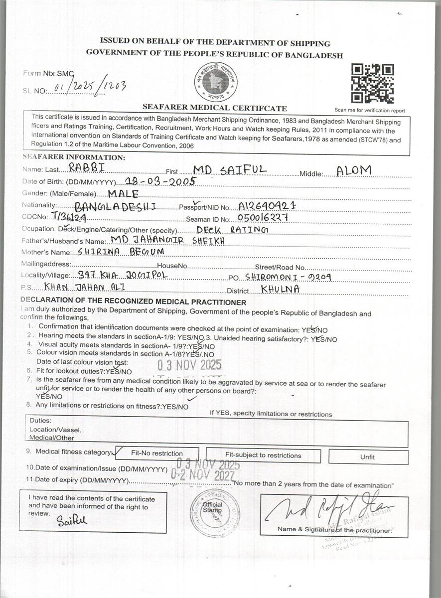 1.. SEAFARER MEDICAL CERTIFICATE