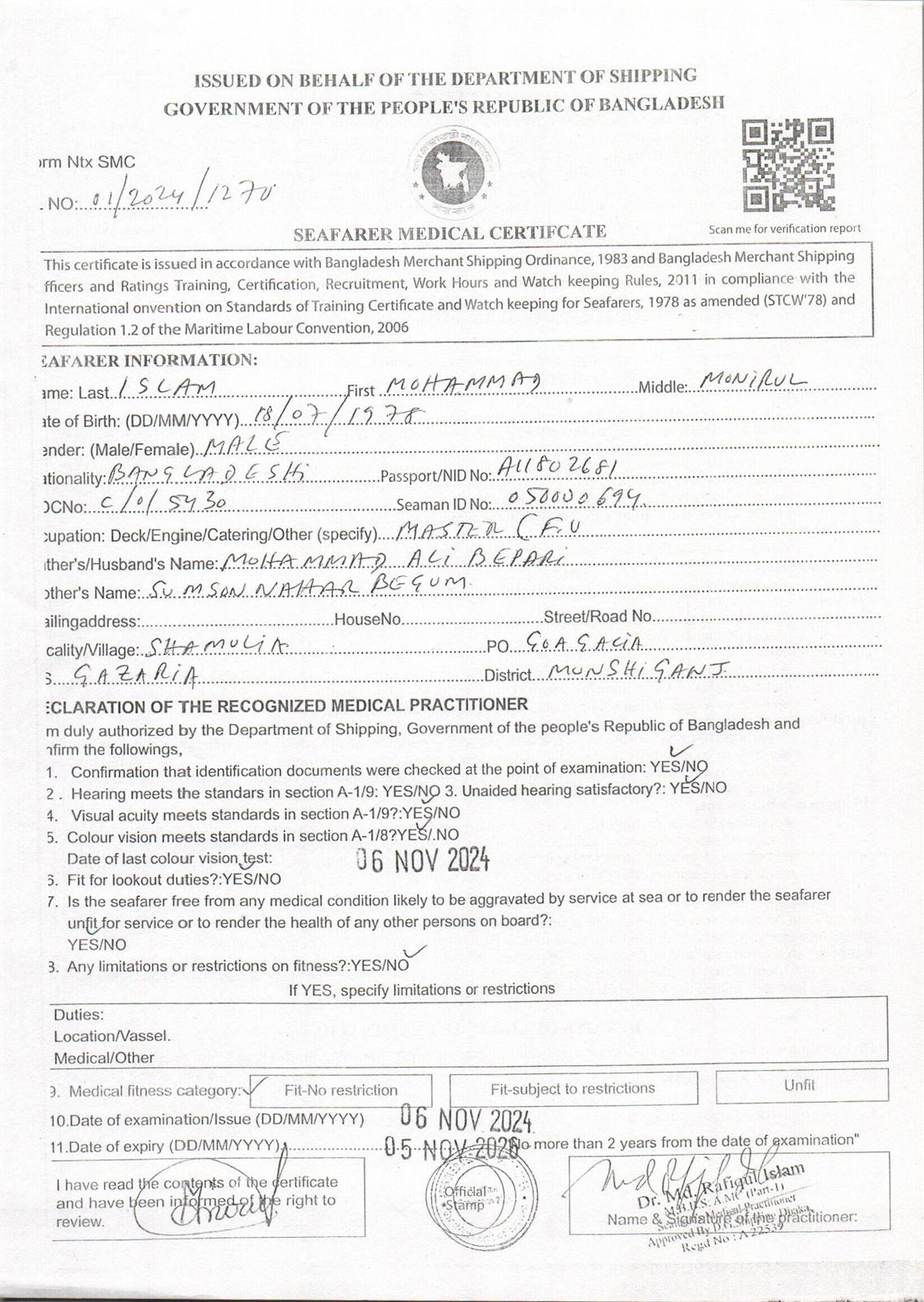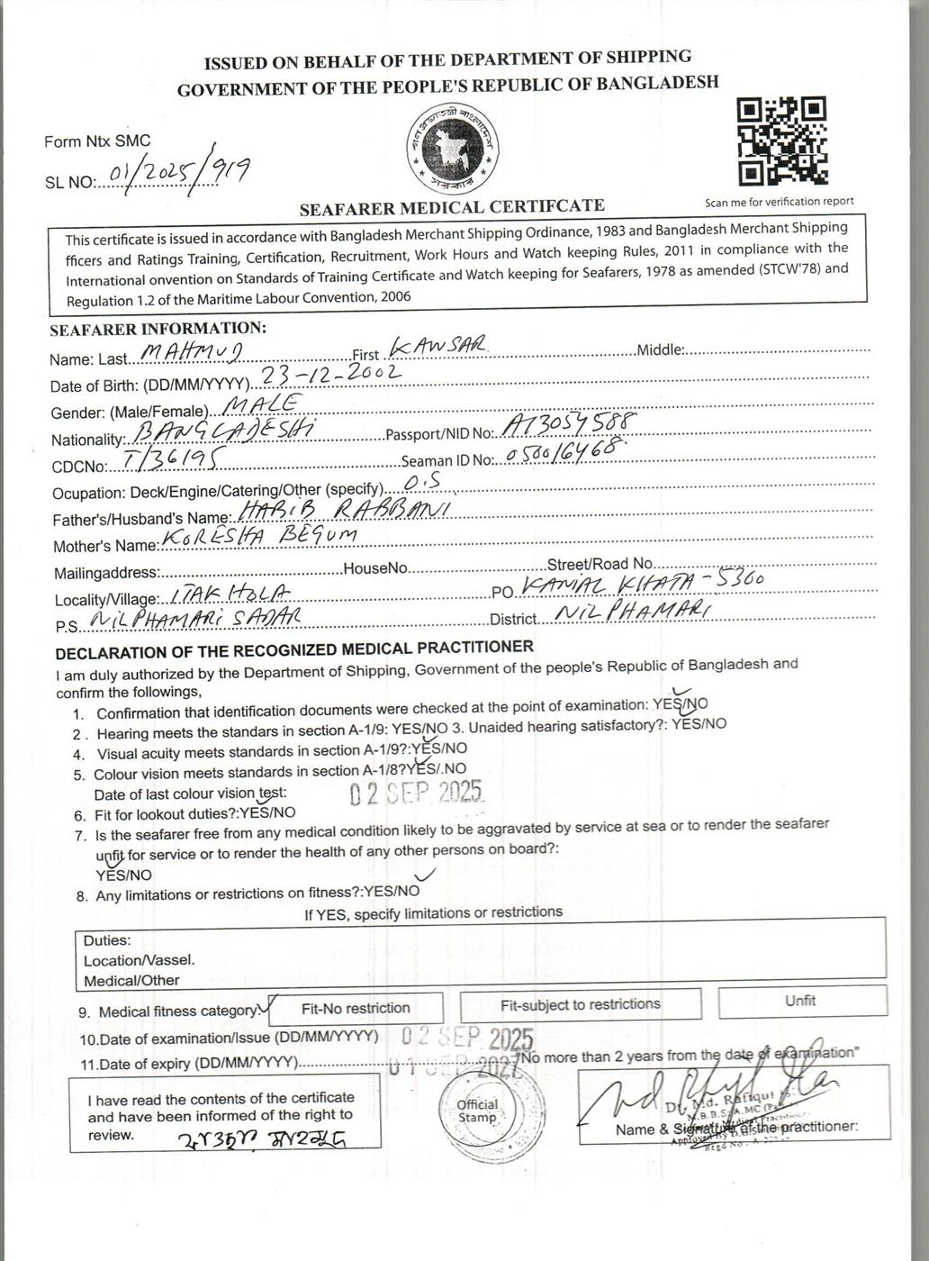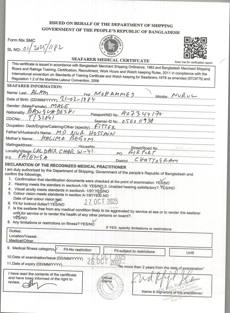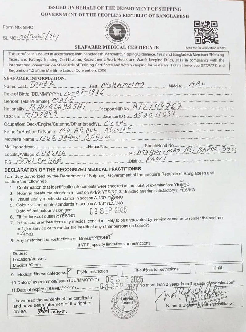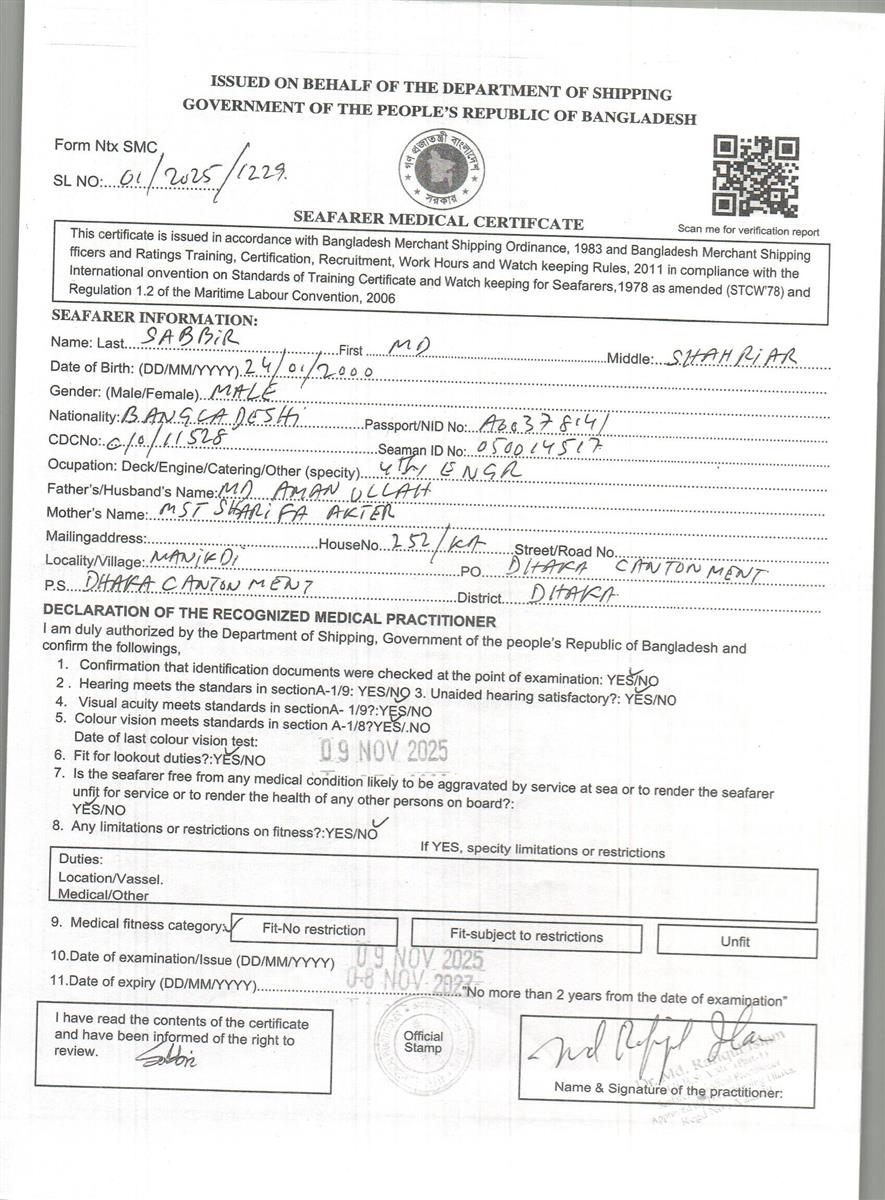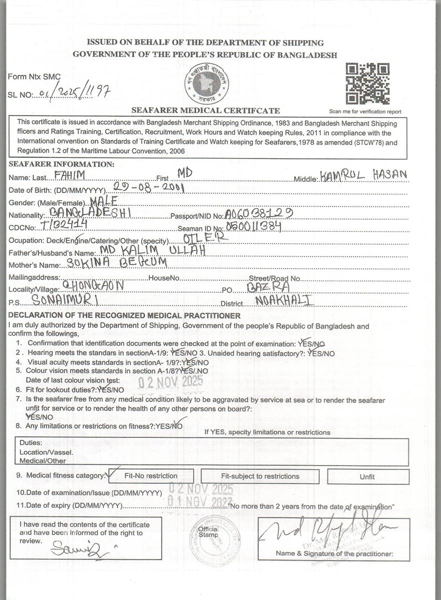 1.. SEAFARER MEDICAL CERTIFICATE