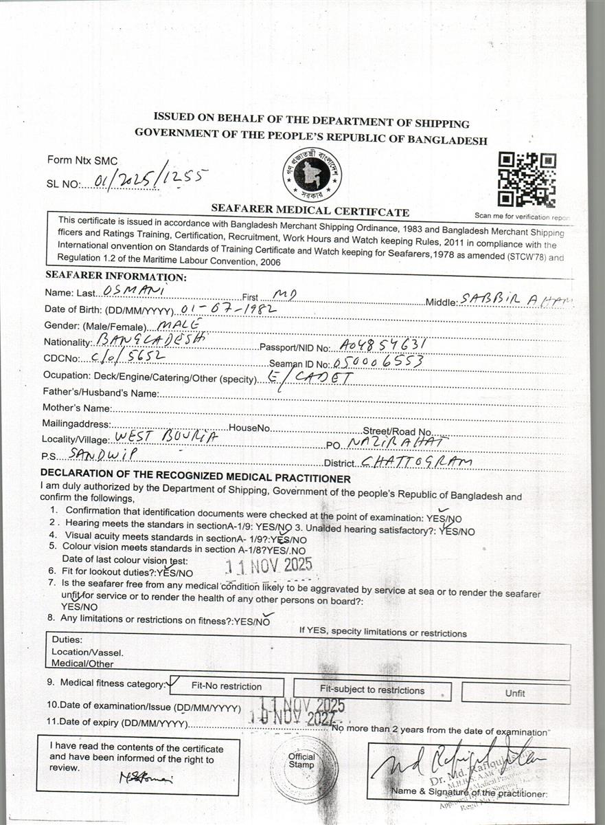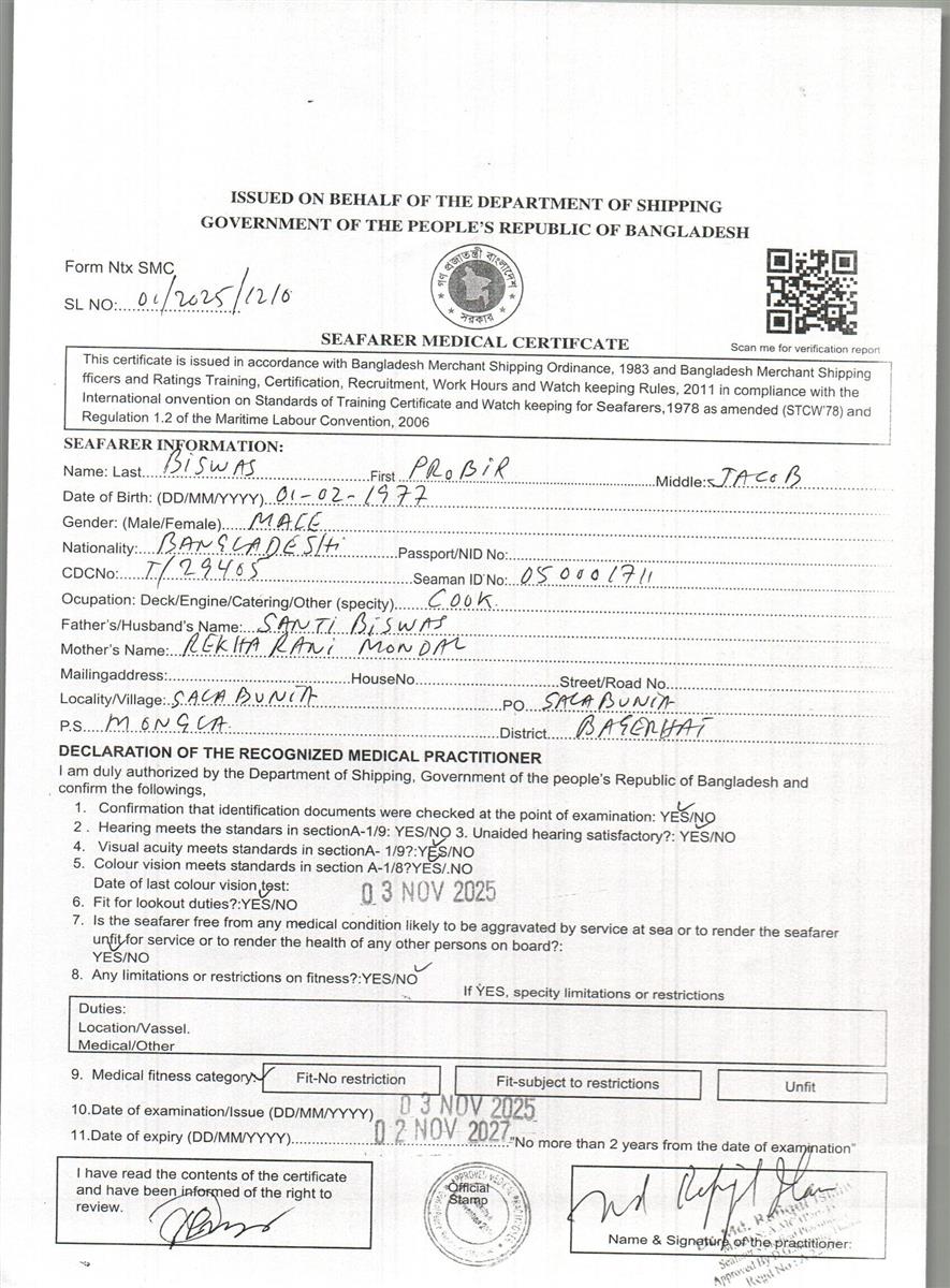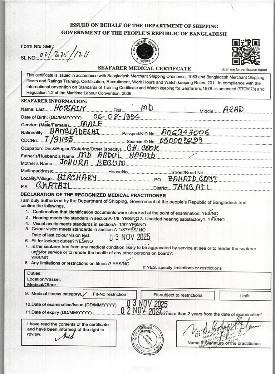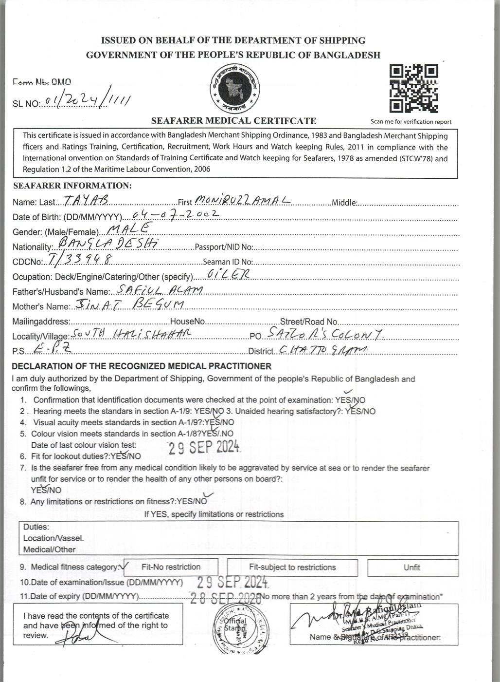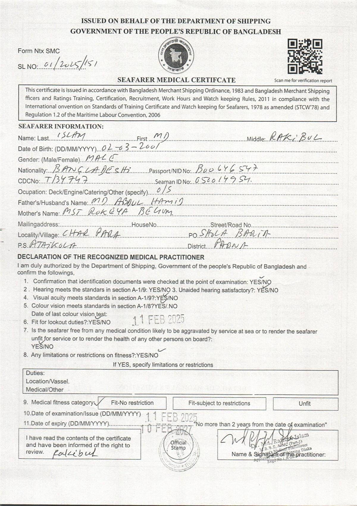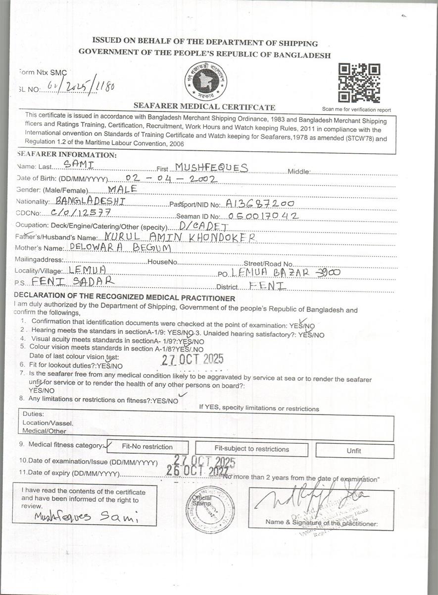 1.. SEAFARER MEDICAL CERTIFICATE