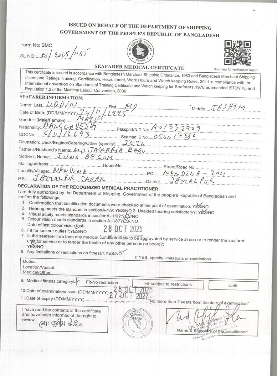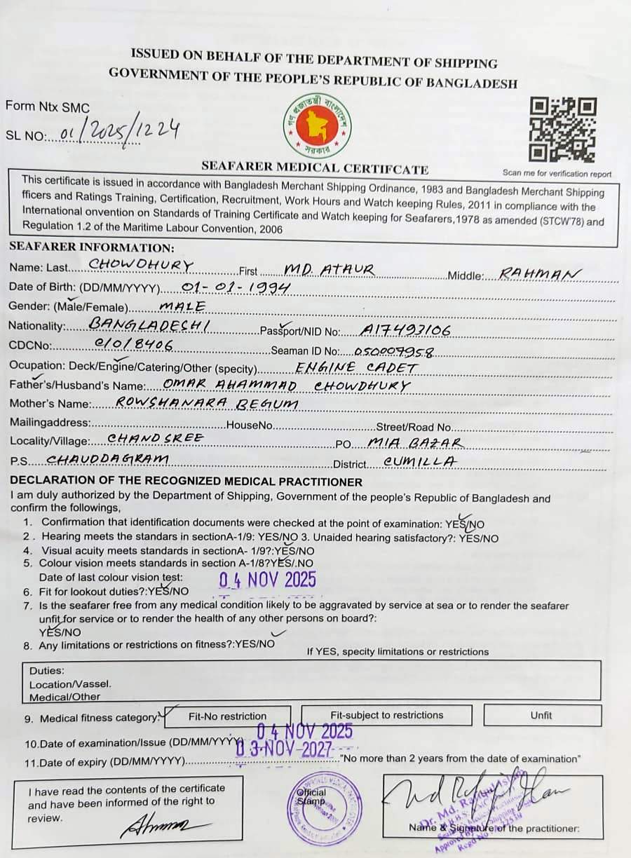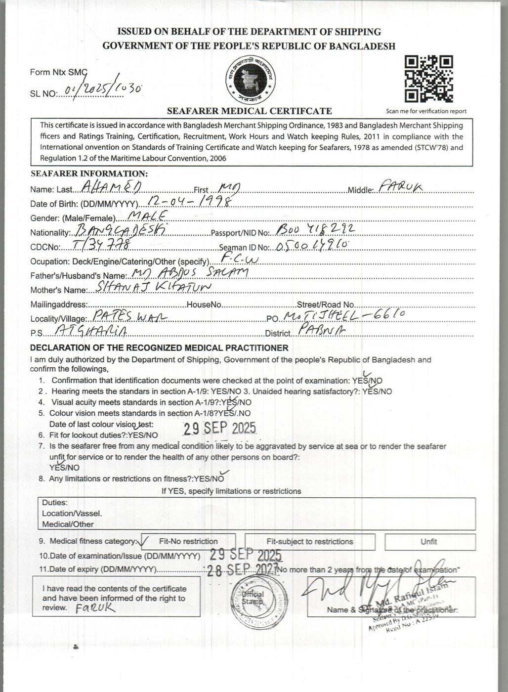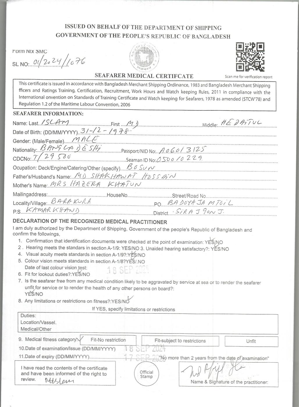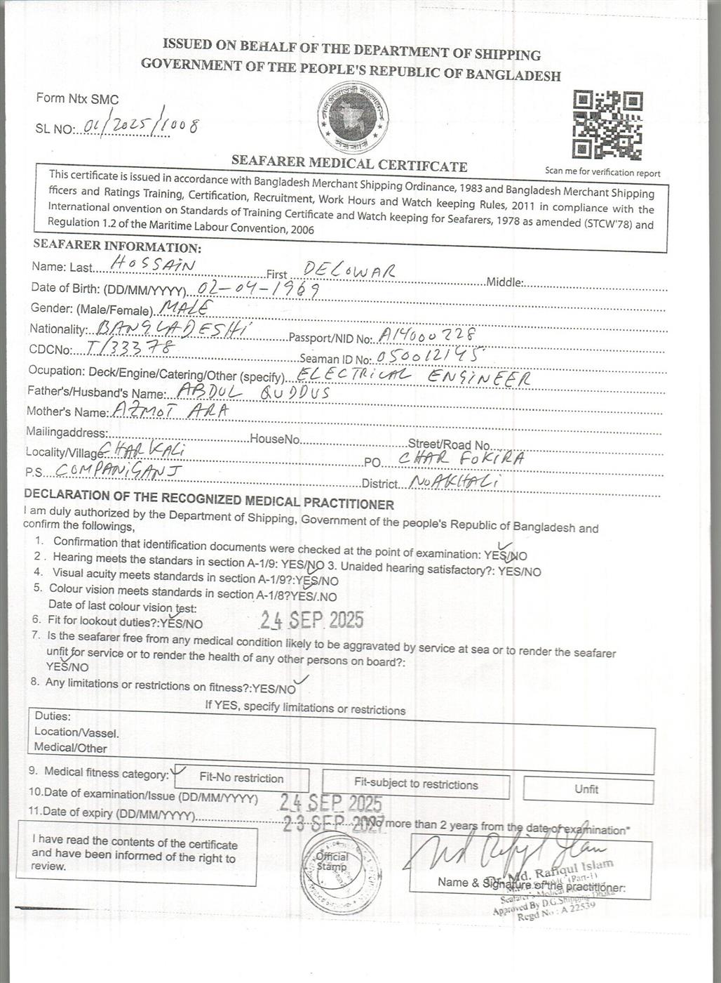 1.. SEAFARER MEDICAL CERTIFICATE