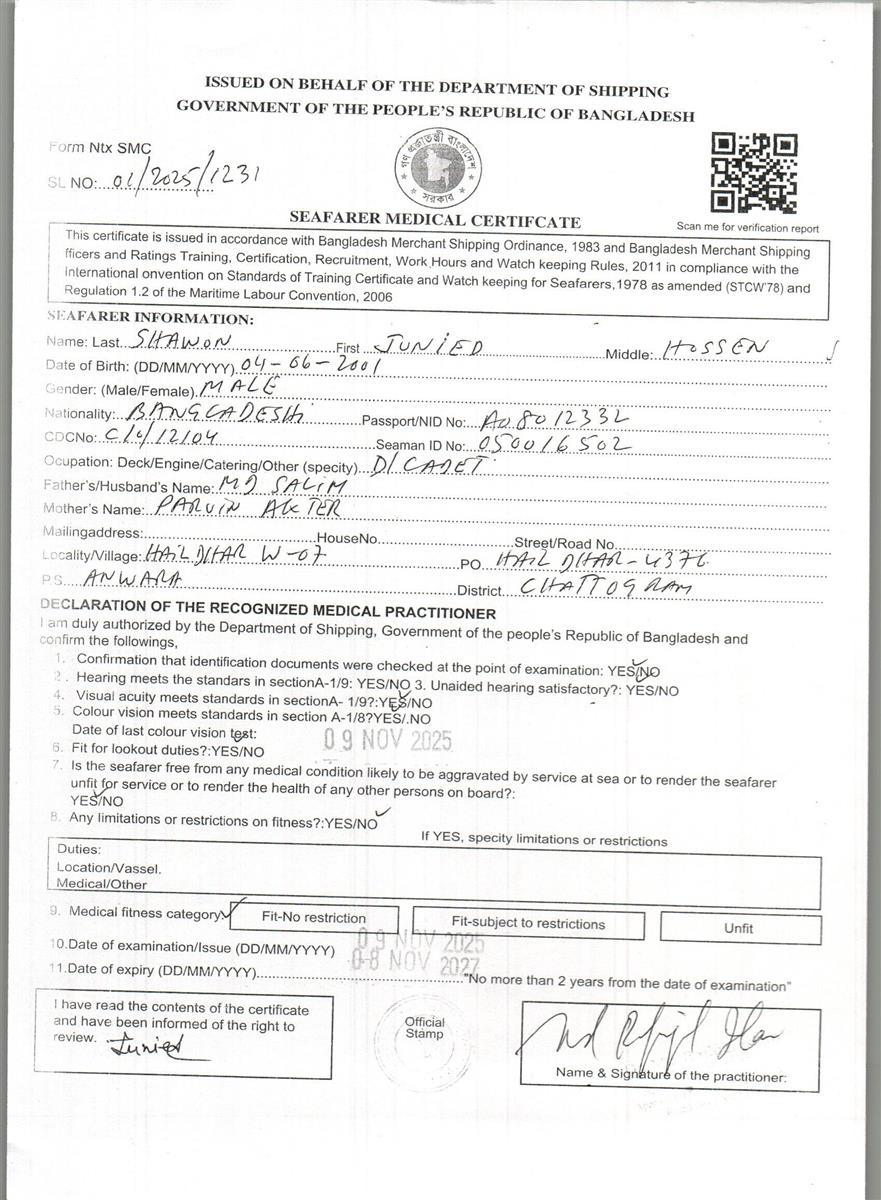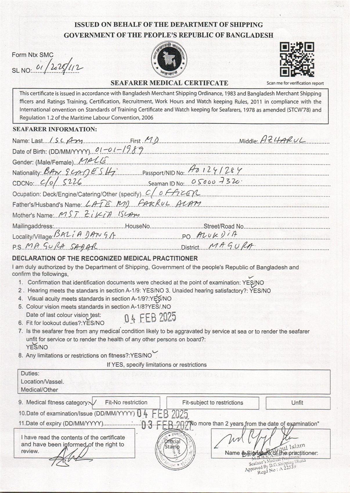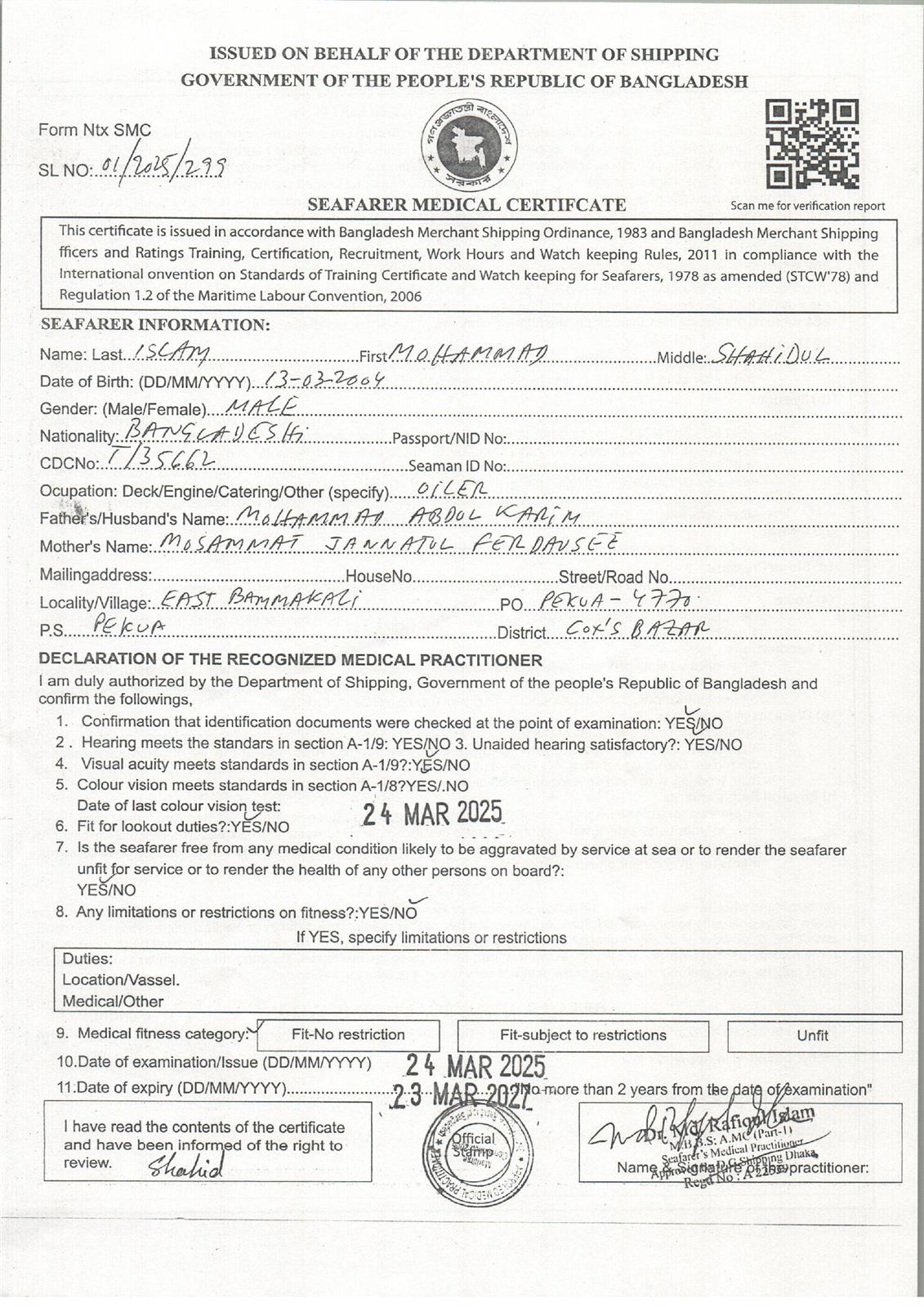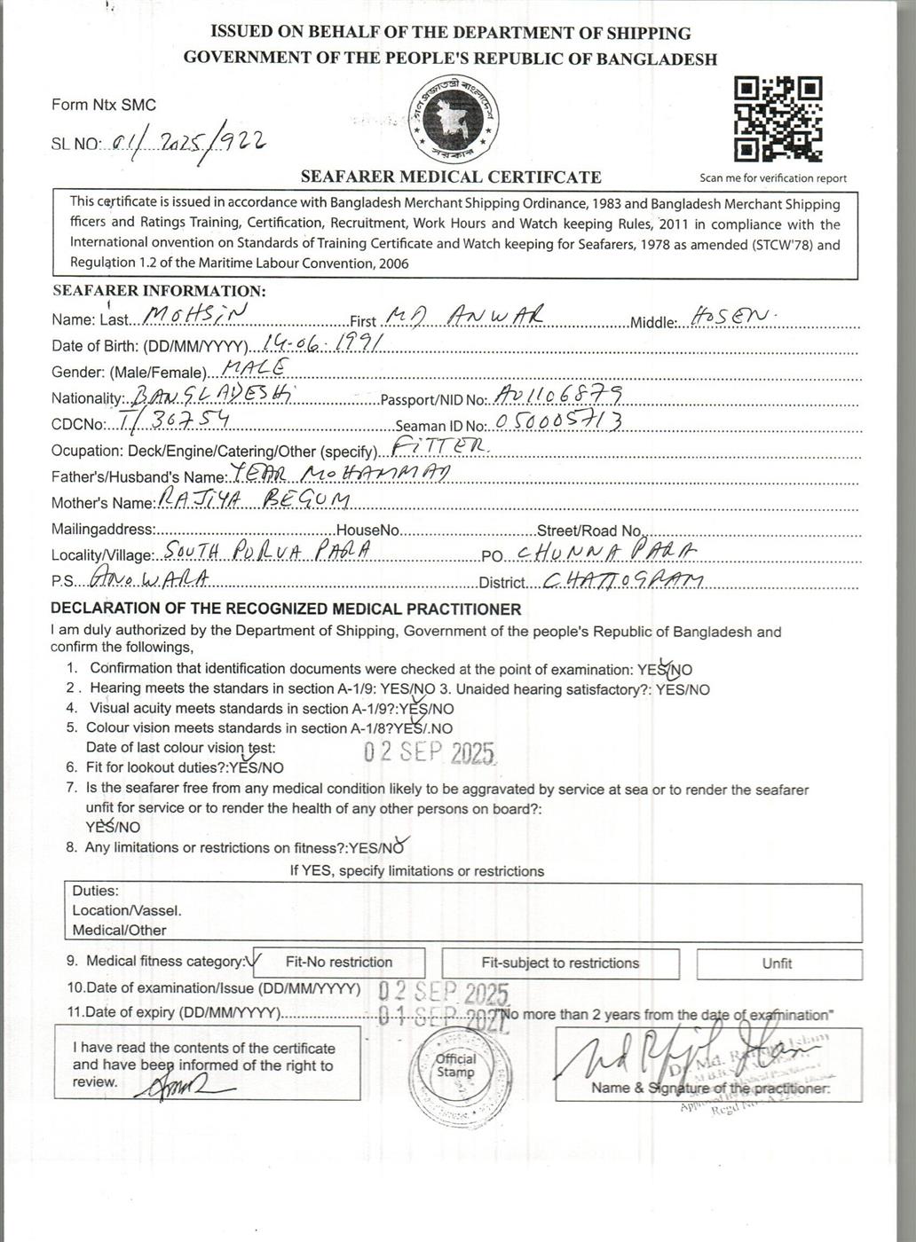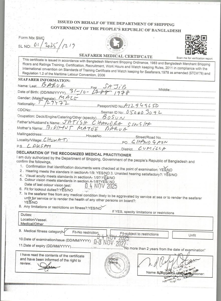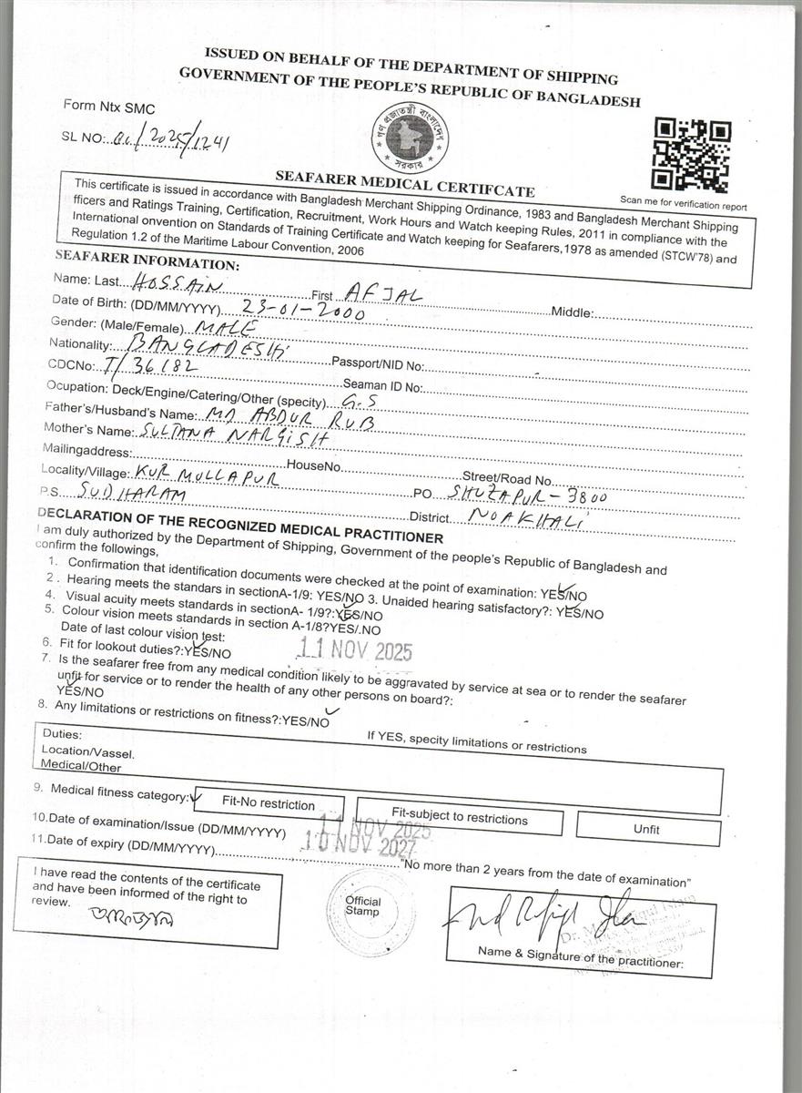 1.. SEAFARER MEDICAL CERTIFICATE