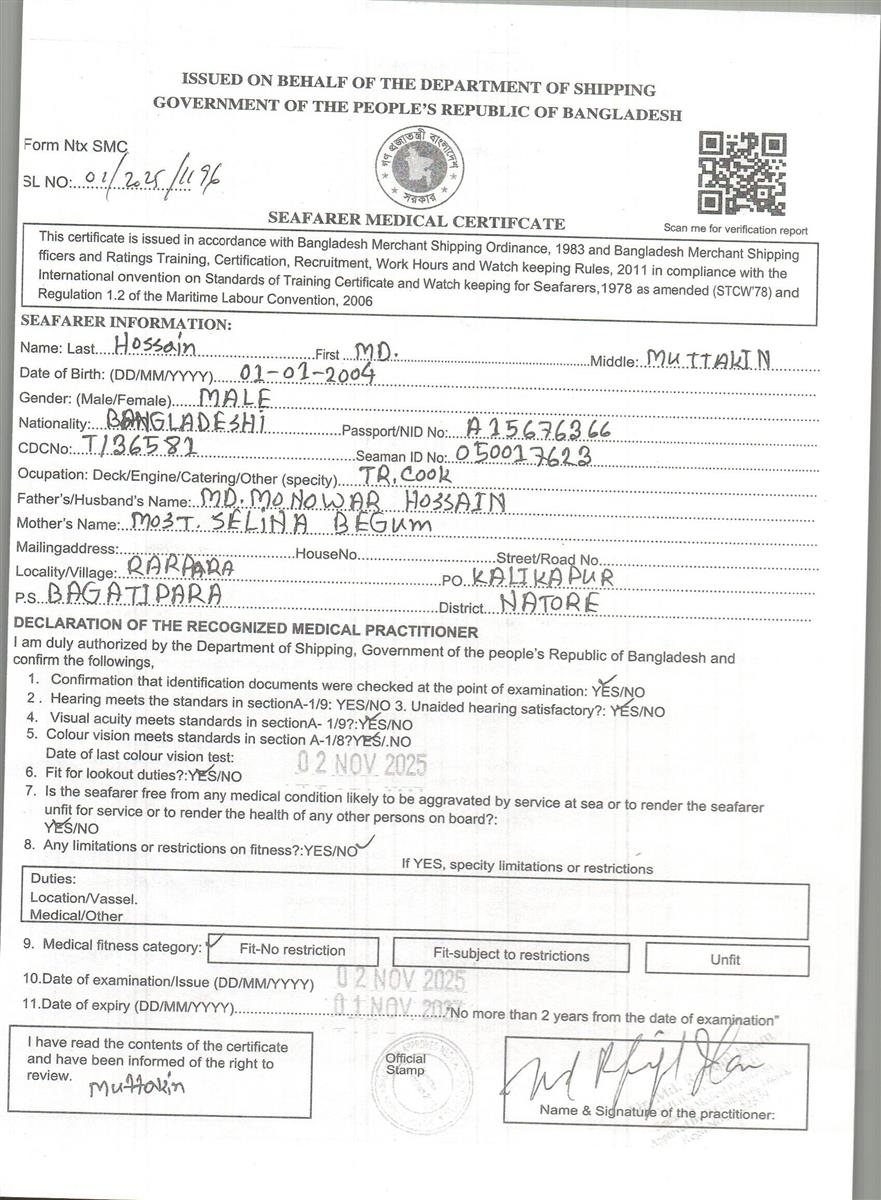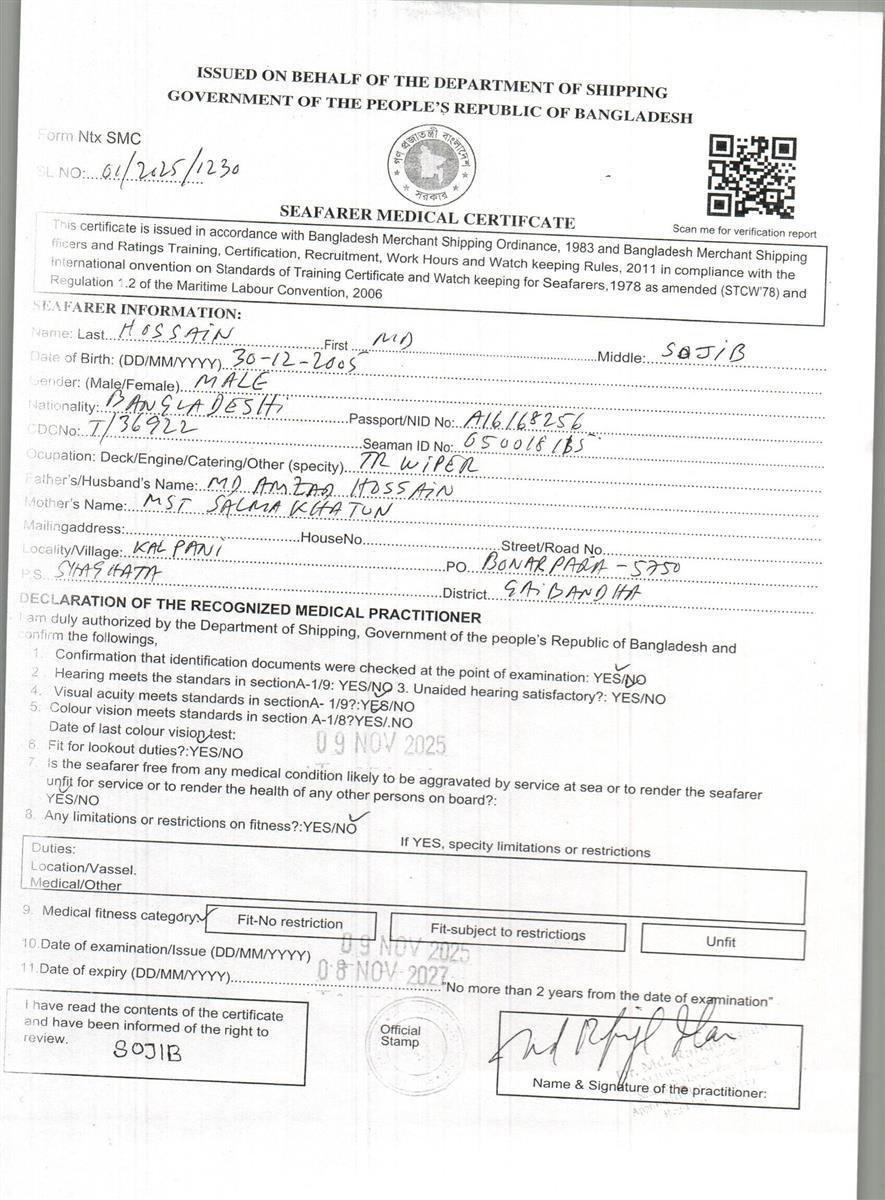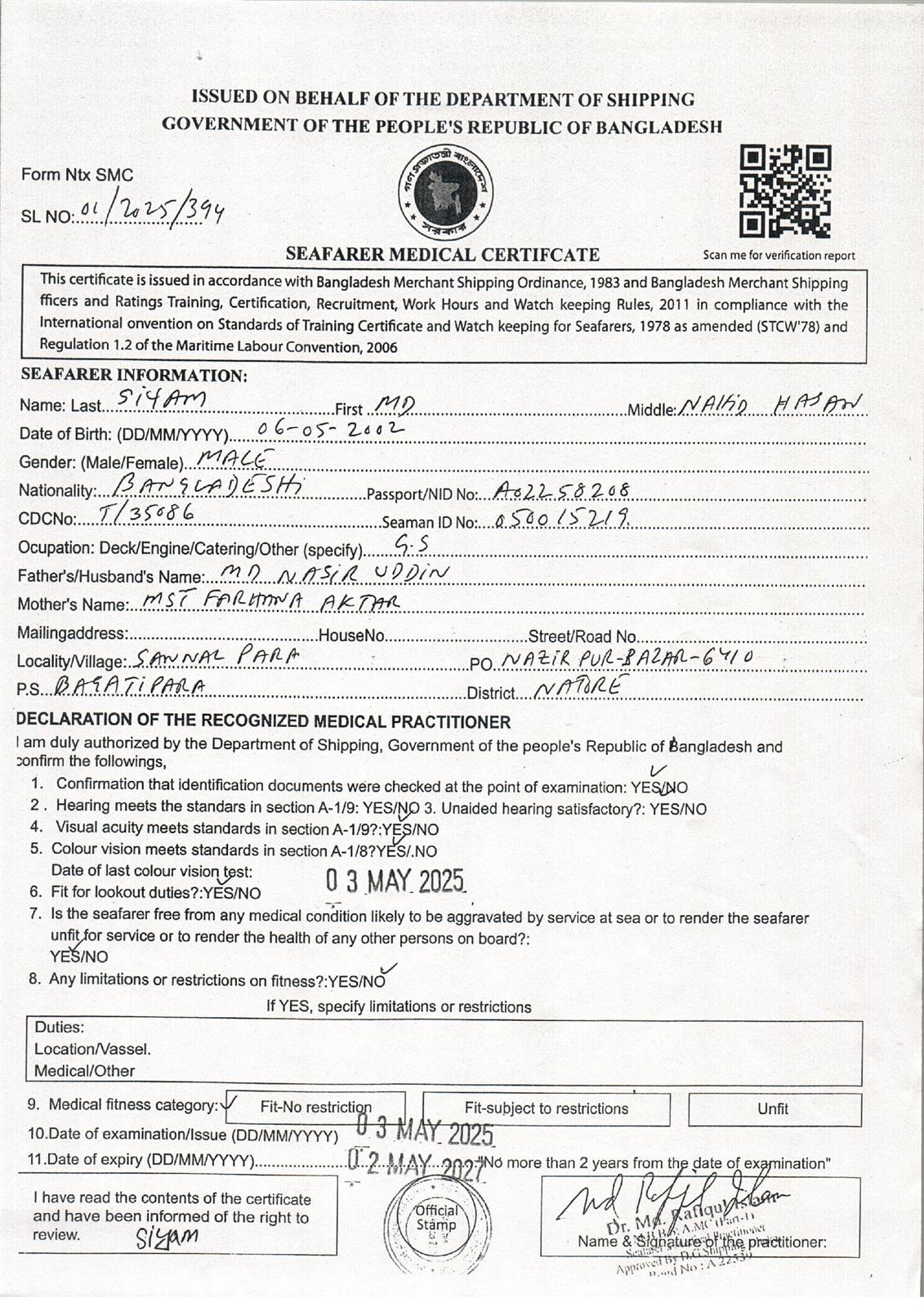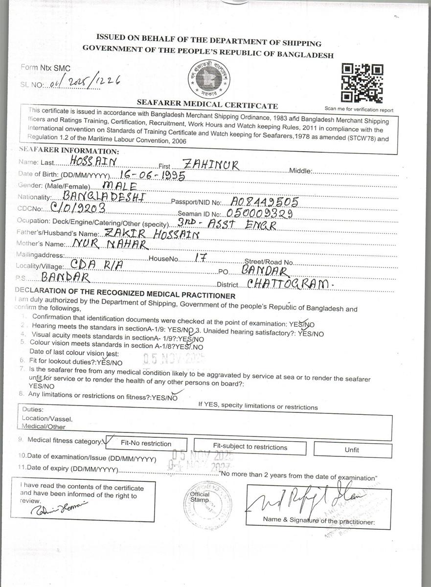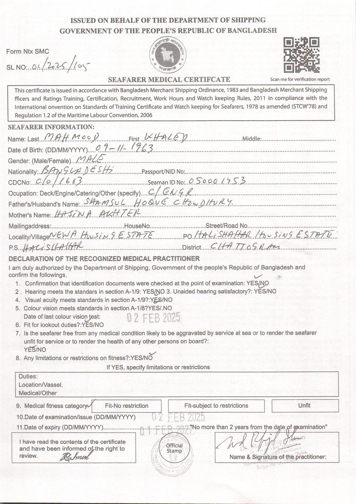 1.. SEAFARER MEDICAL CERTIFICATE