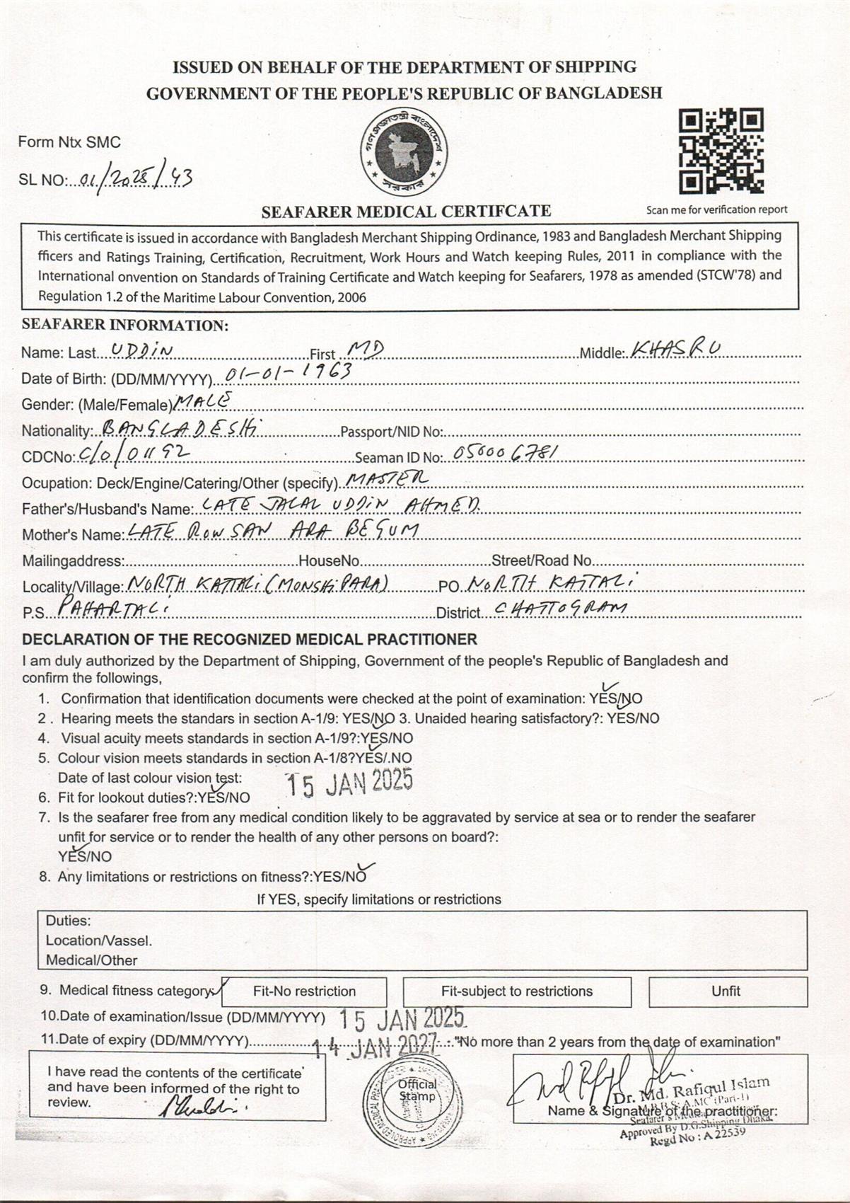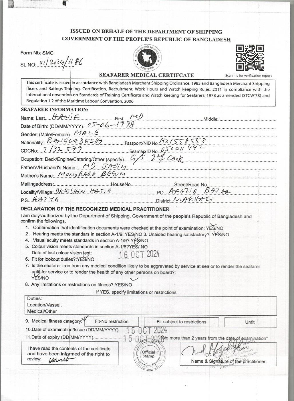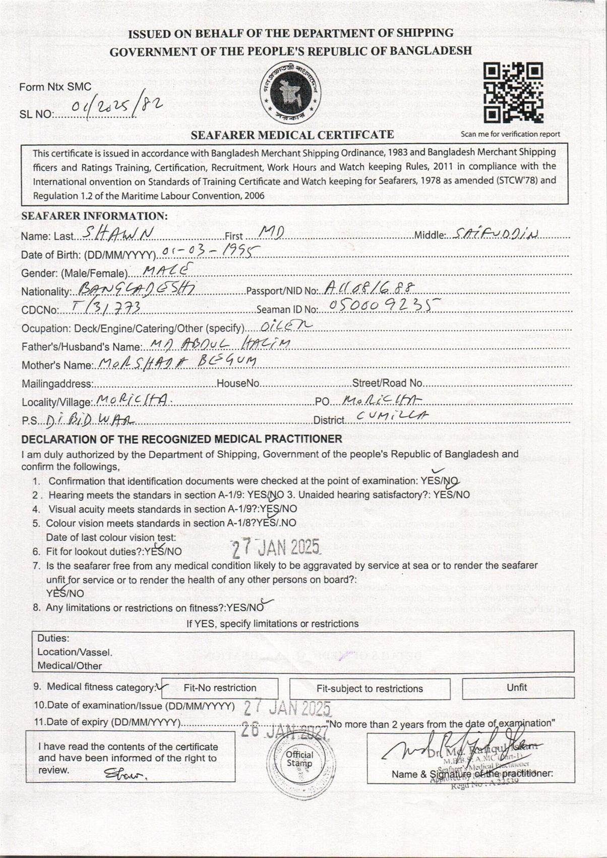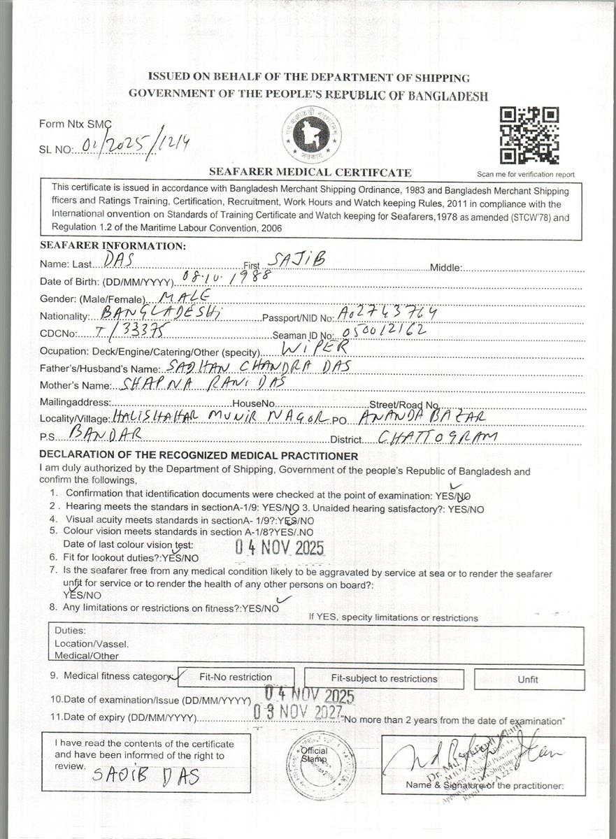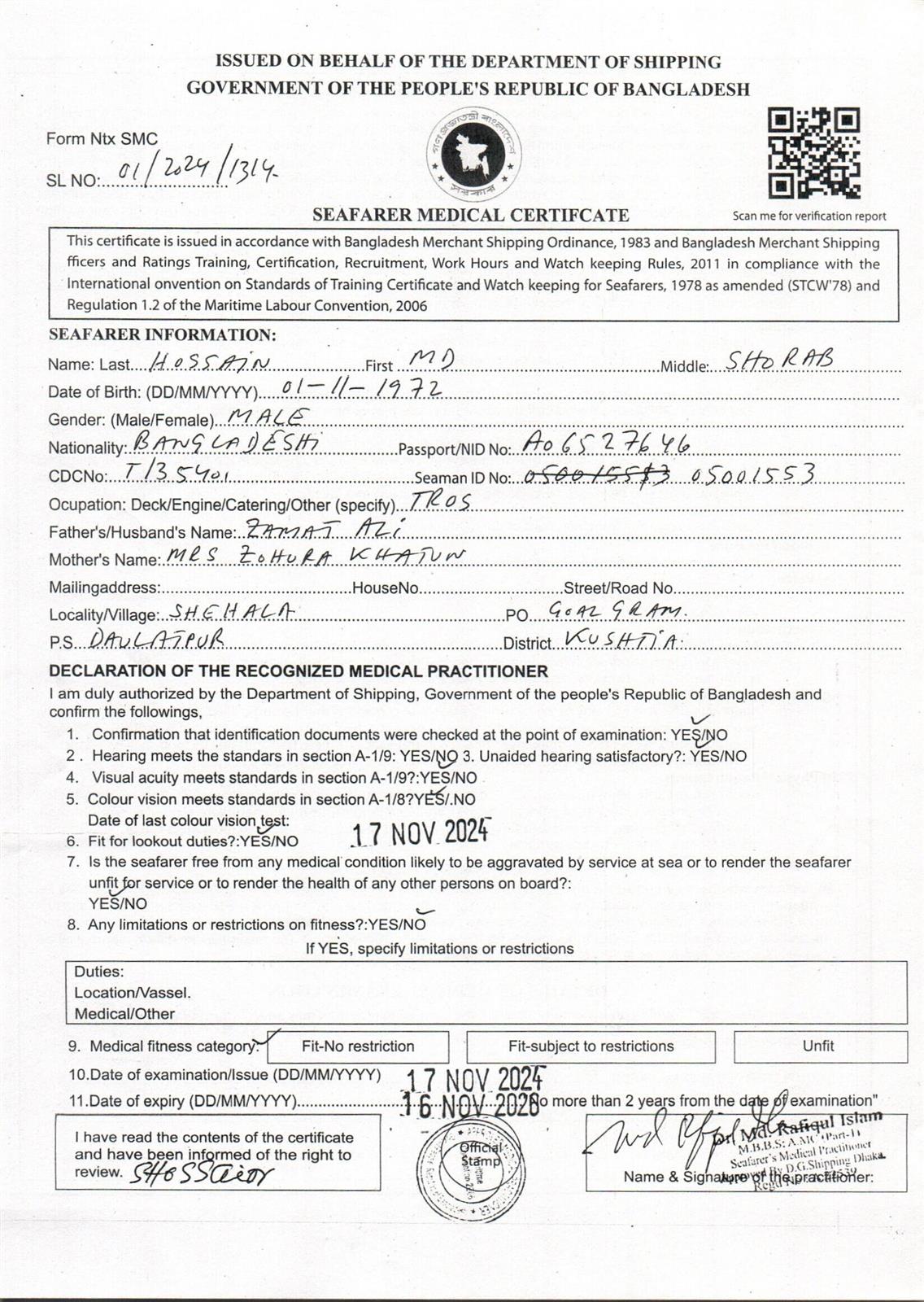 1.. SEAFARER MEDICAL CERTIFICATE