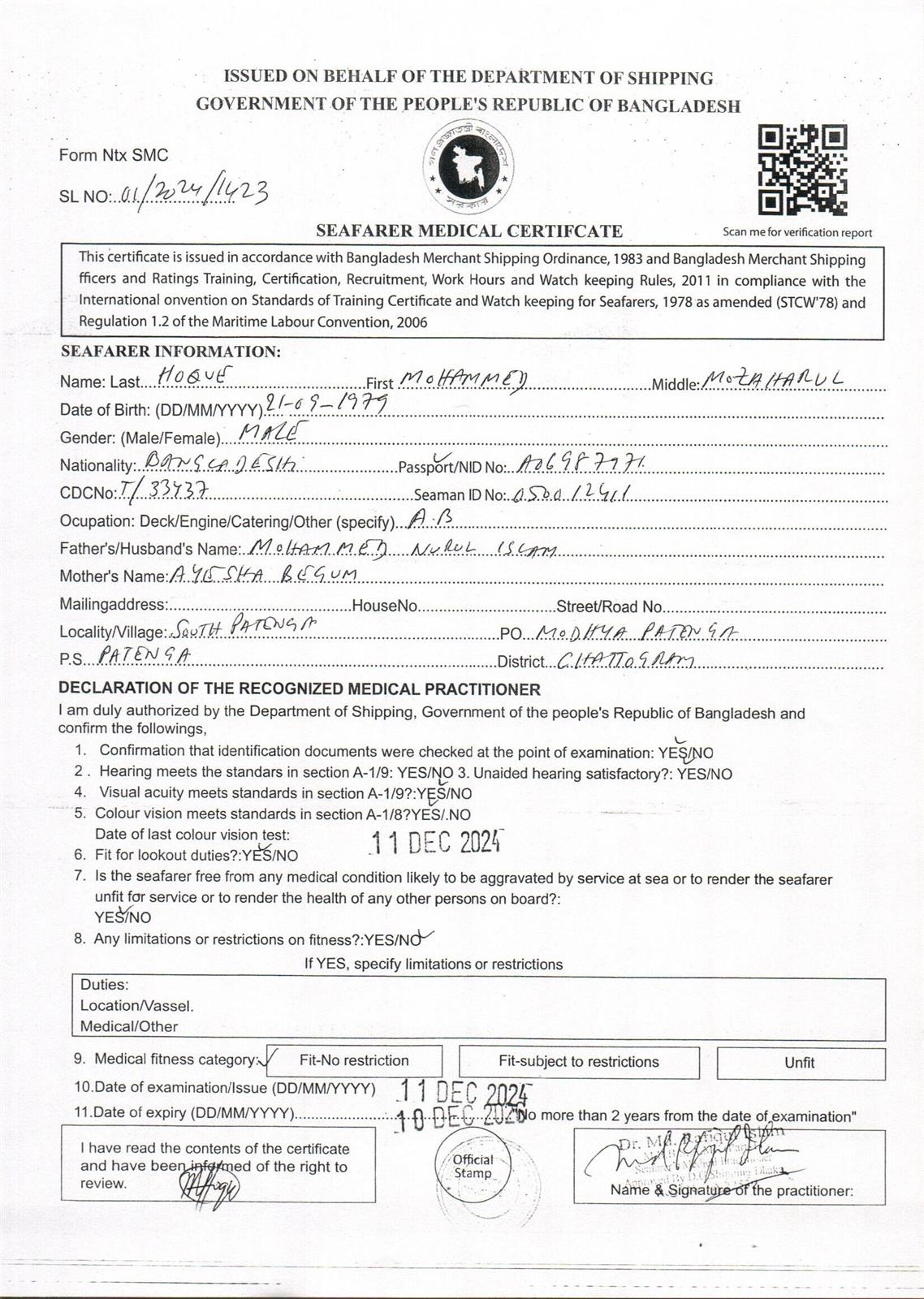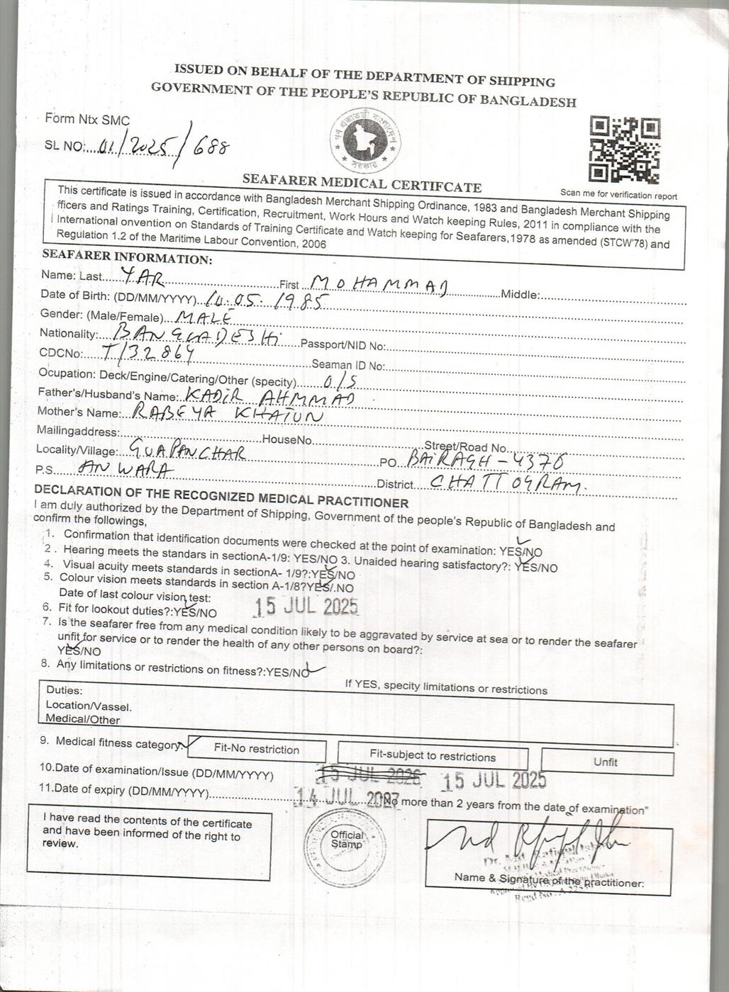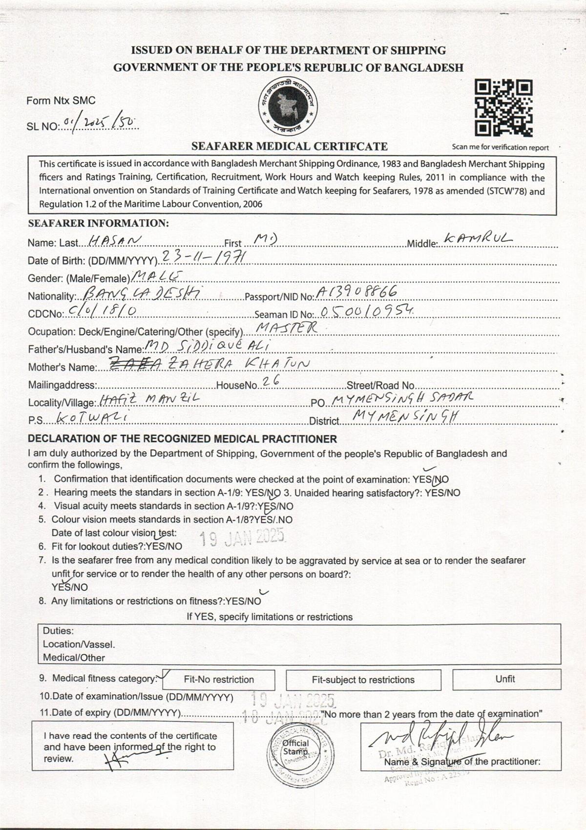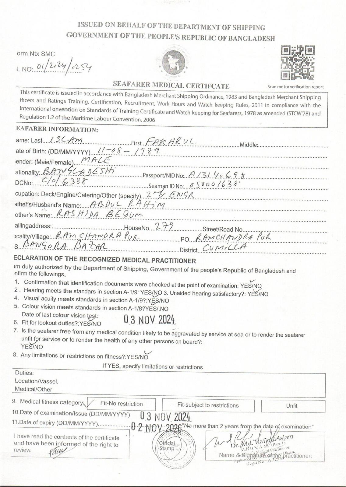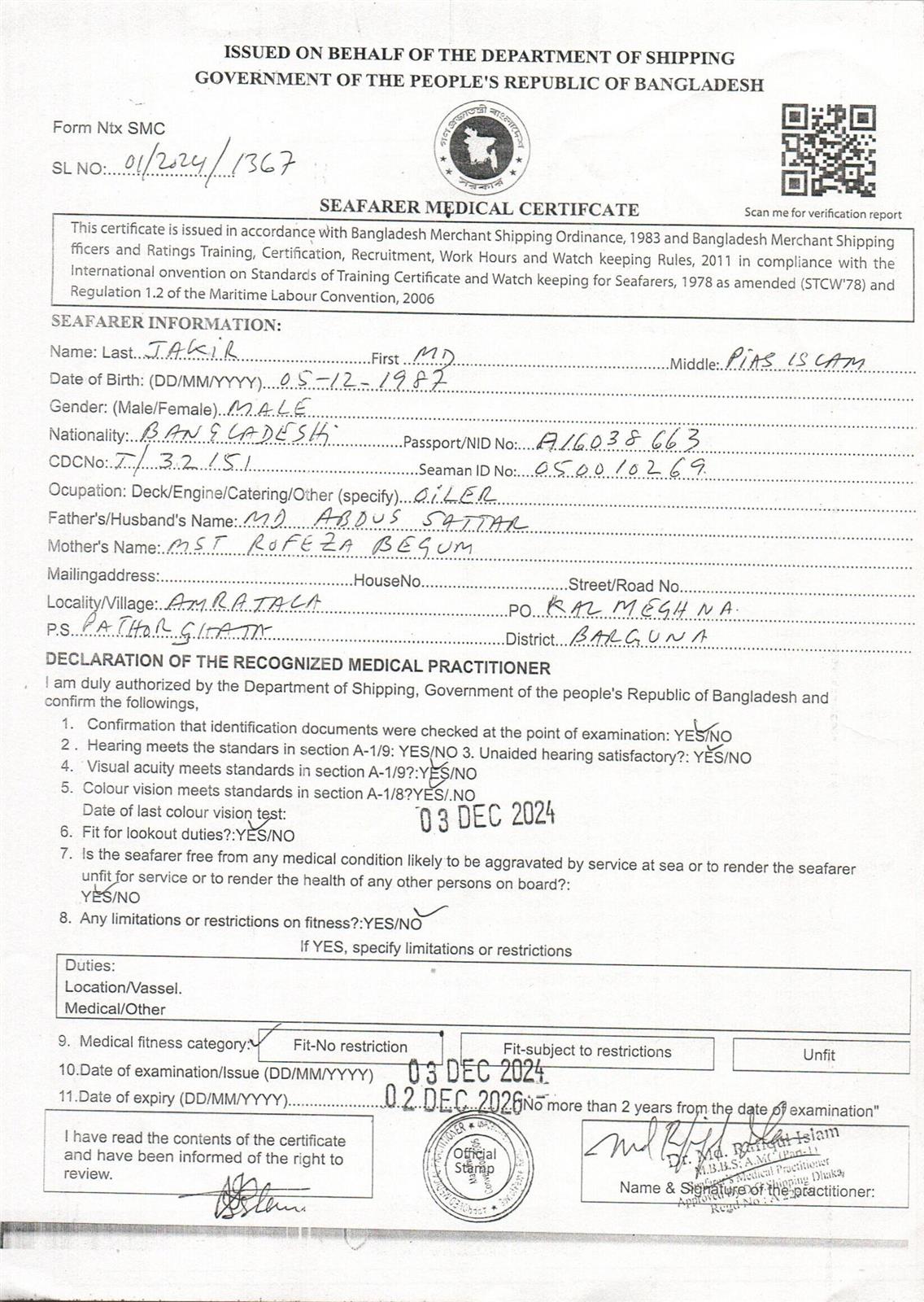 1.. SEAFARER MEDICAL CERTIFICATE