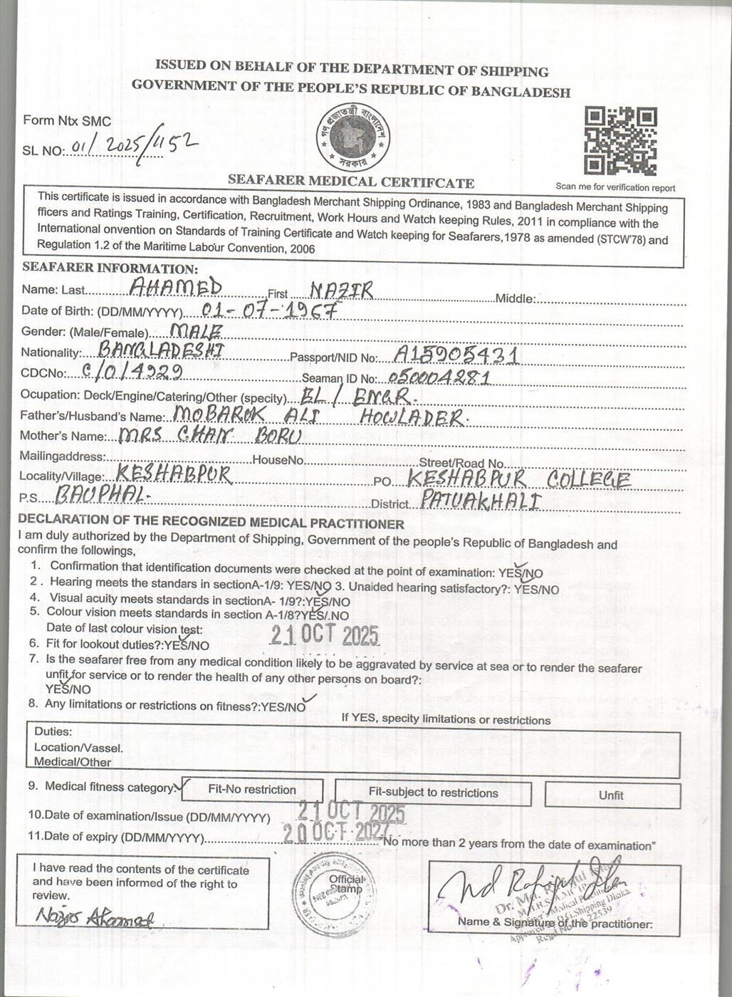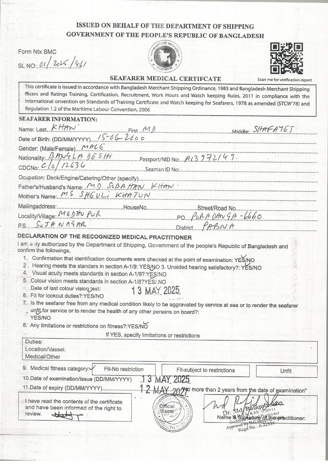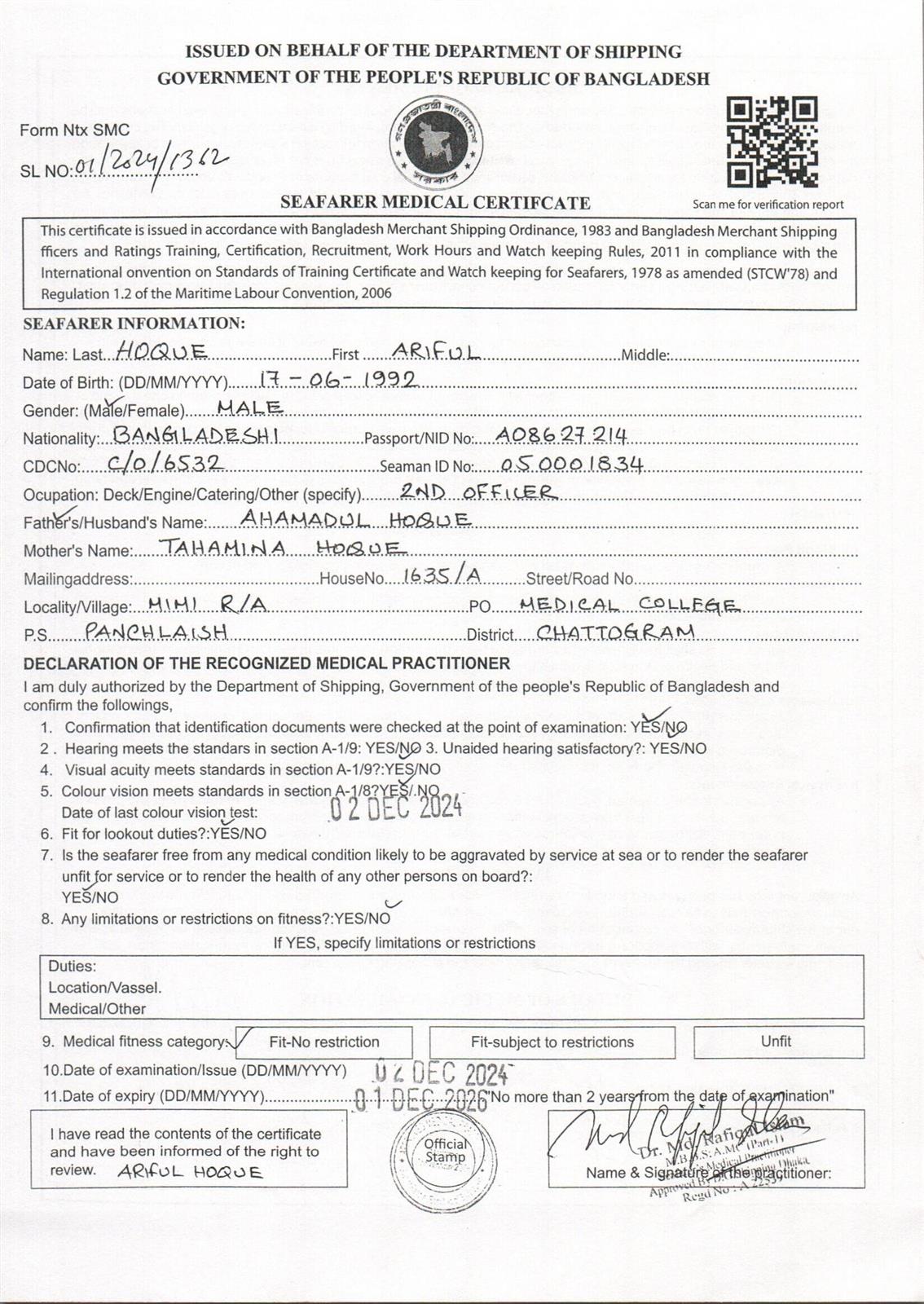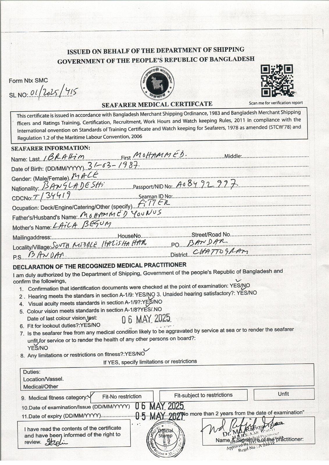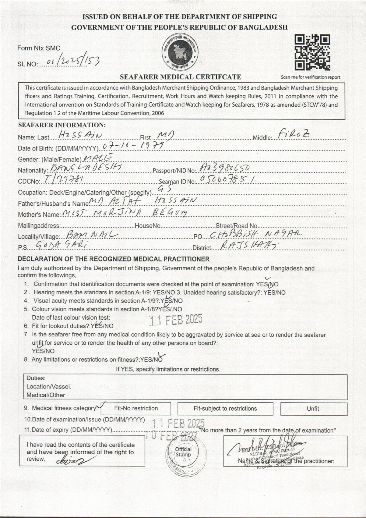1.. SEAFARER MEDICAL CERTIFICATE