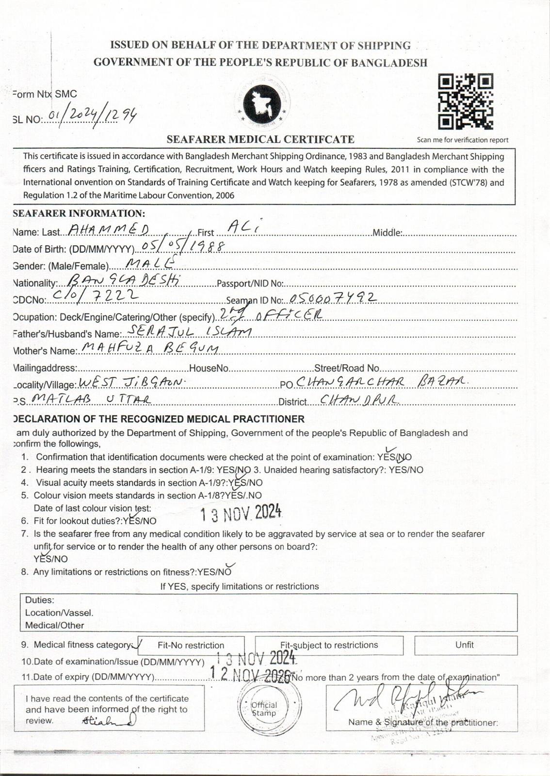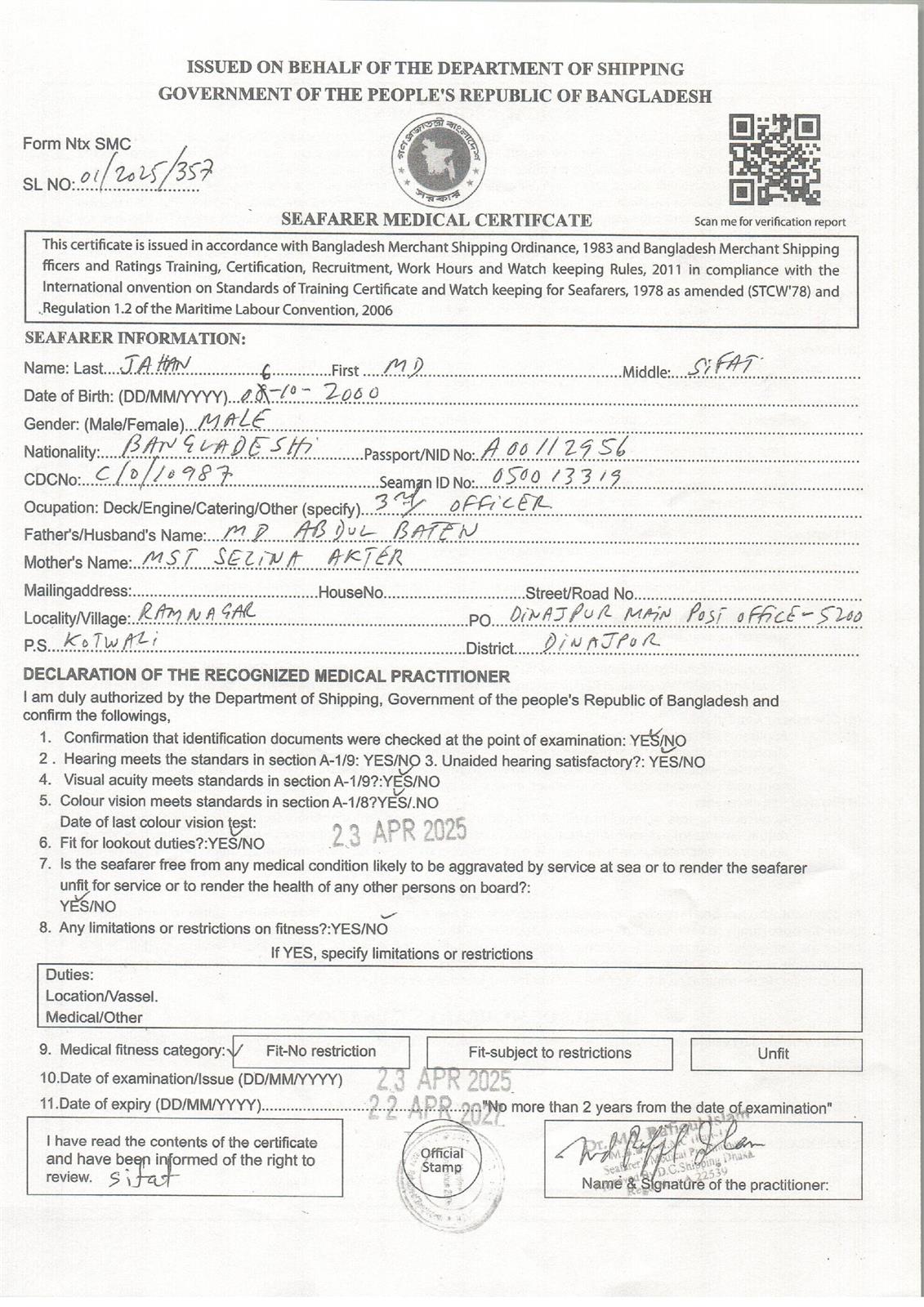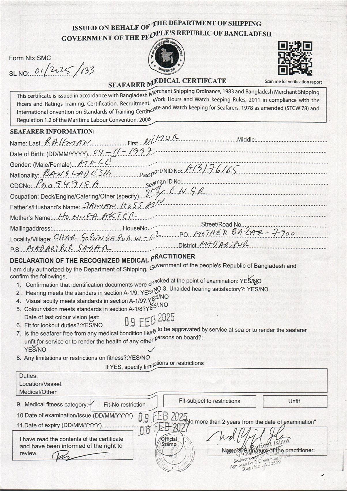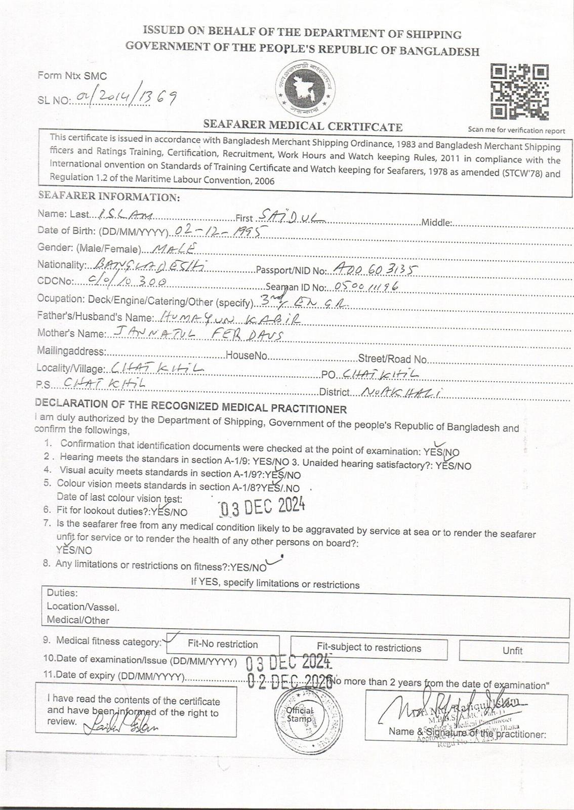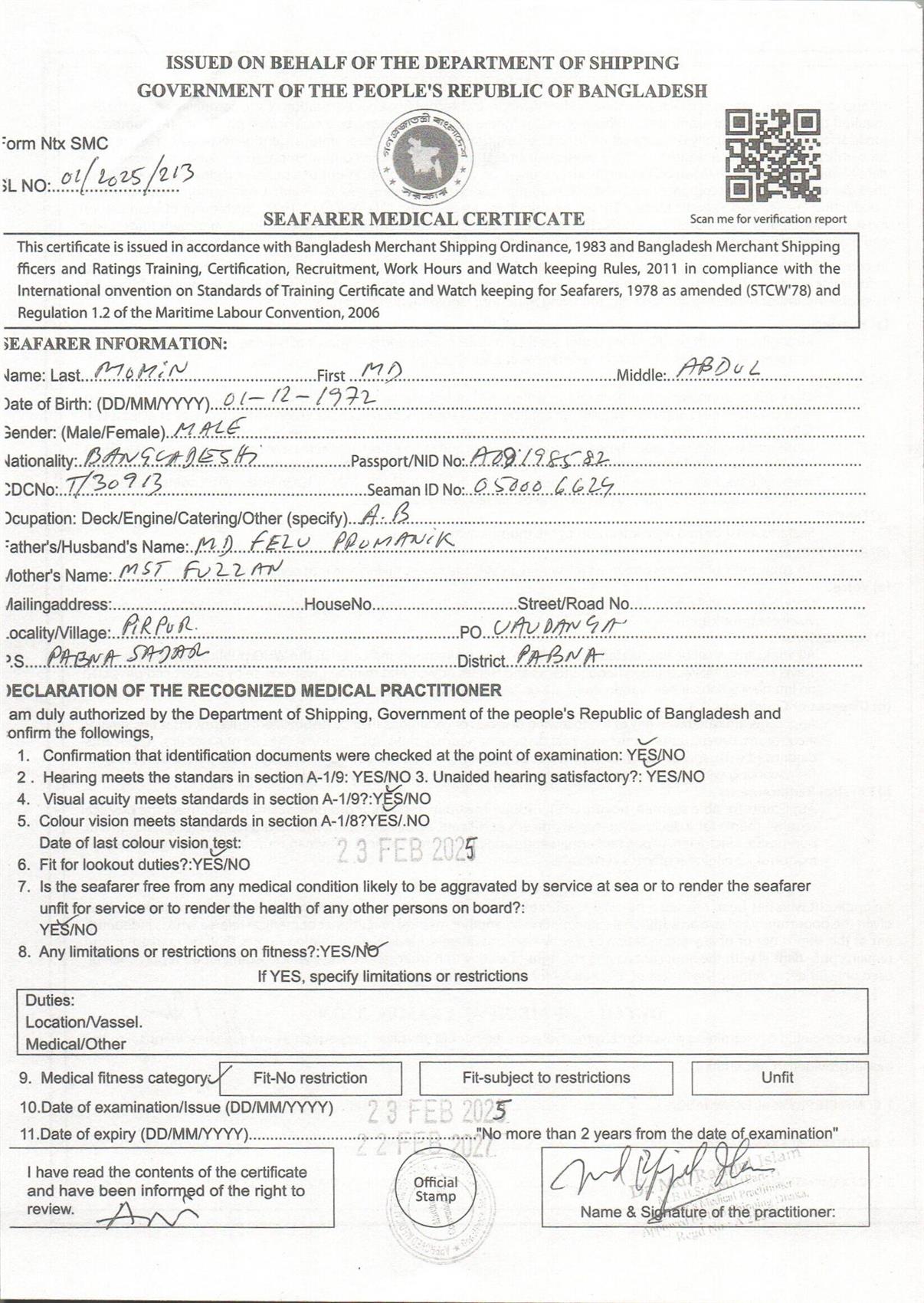 1.. SEAFARER MEDICAL CERTIFICATE
