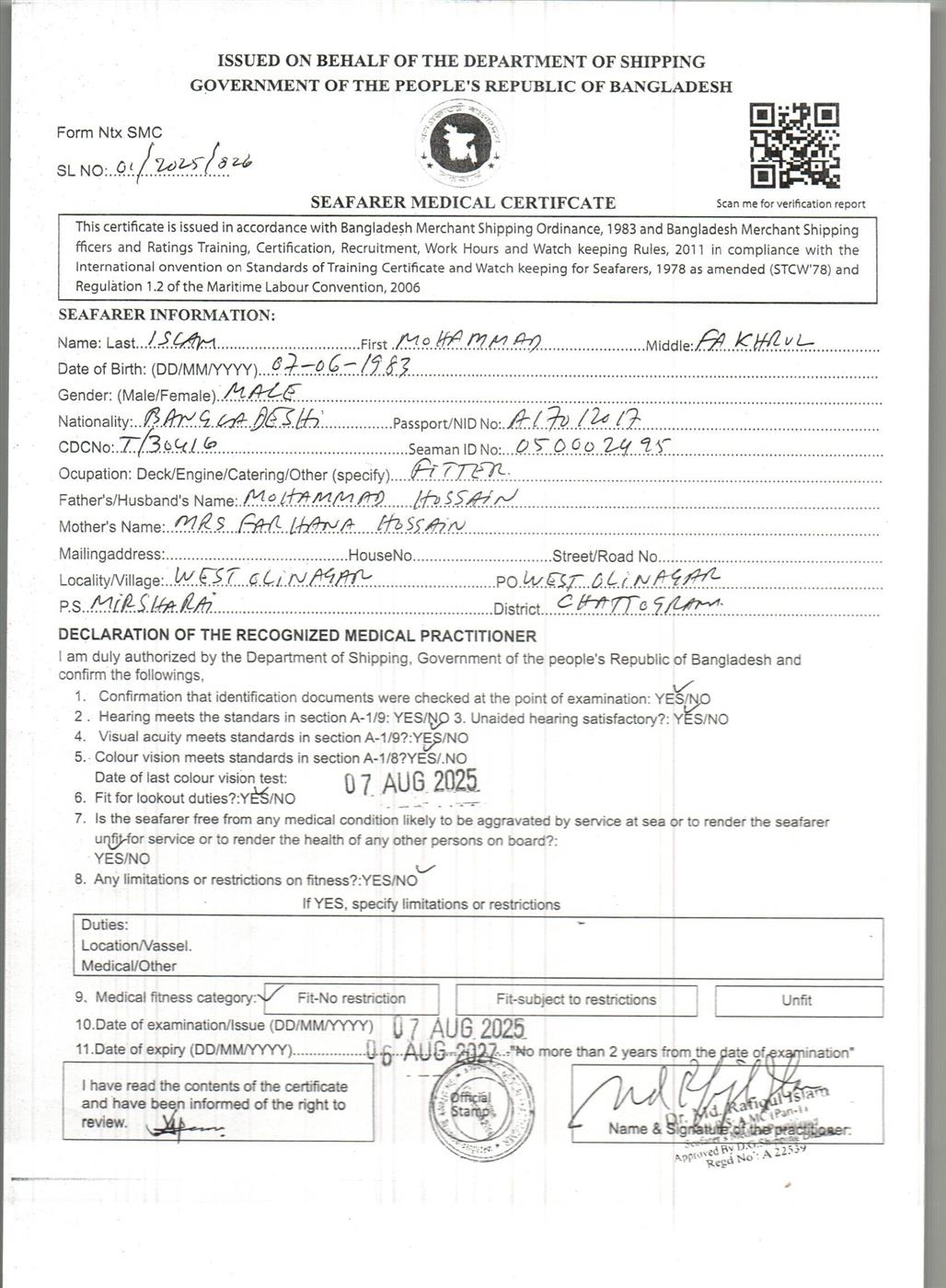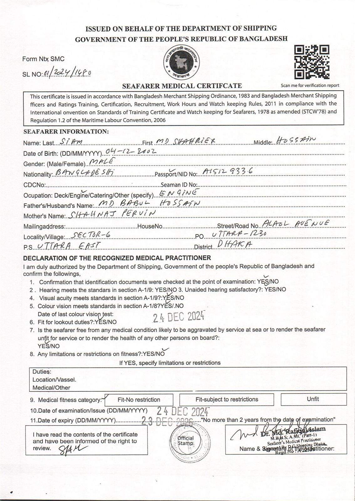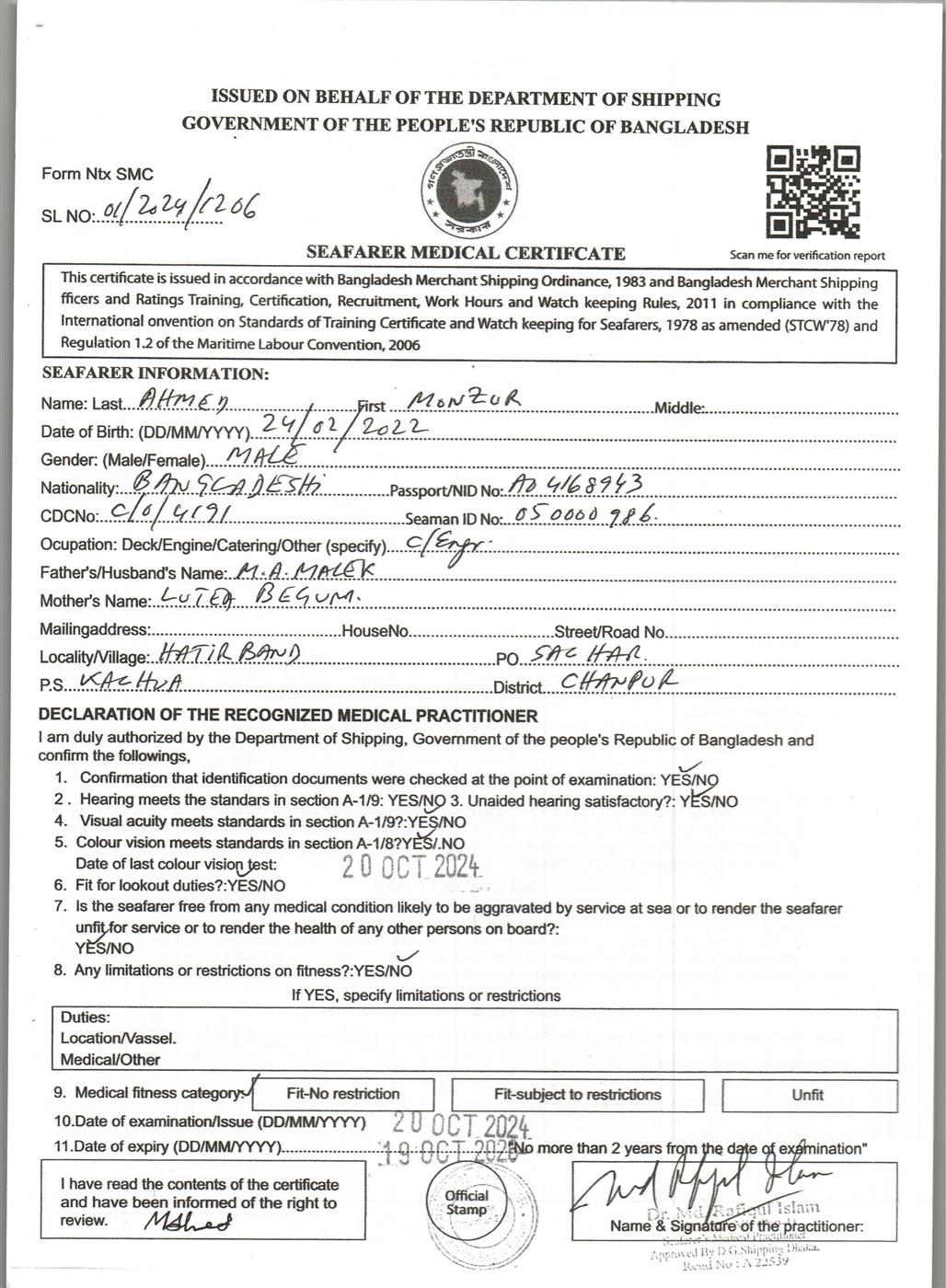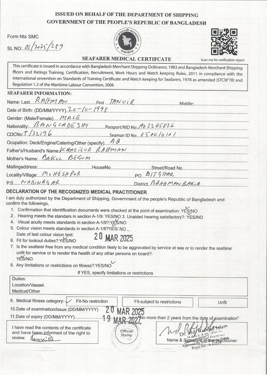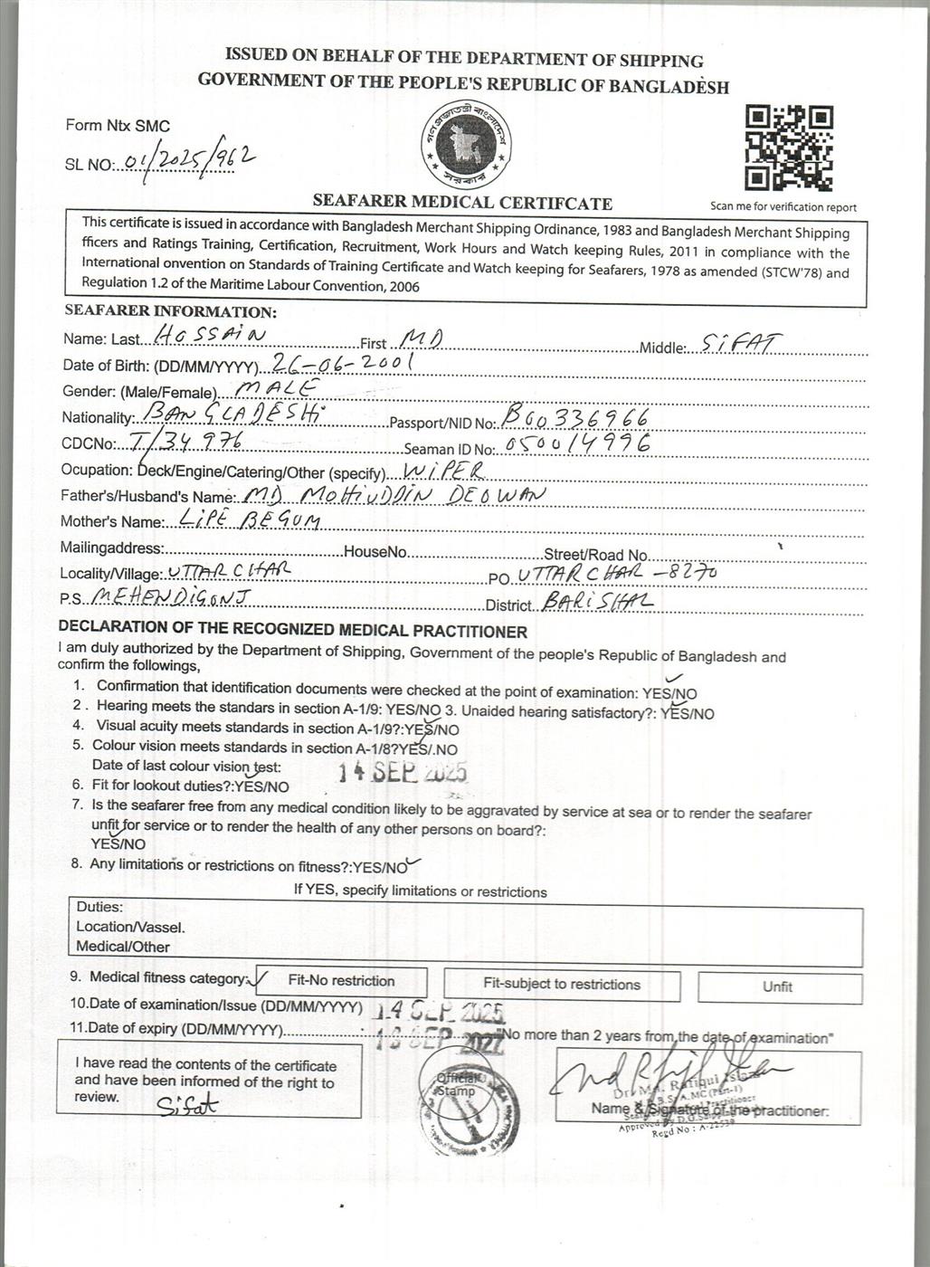 1.. SEAFARER MEDICAL CERTIFICATE