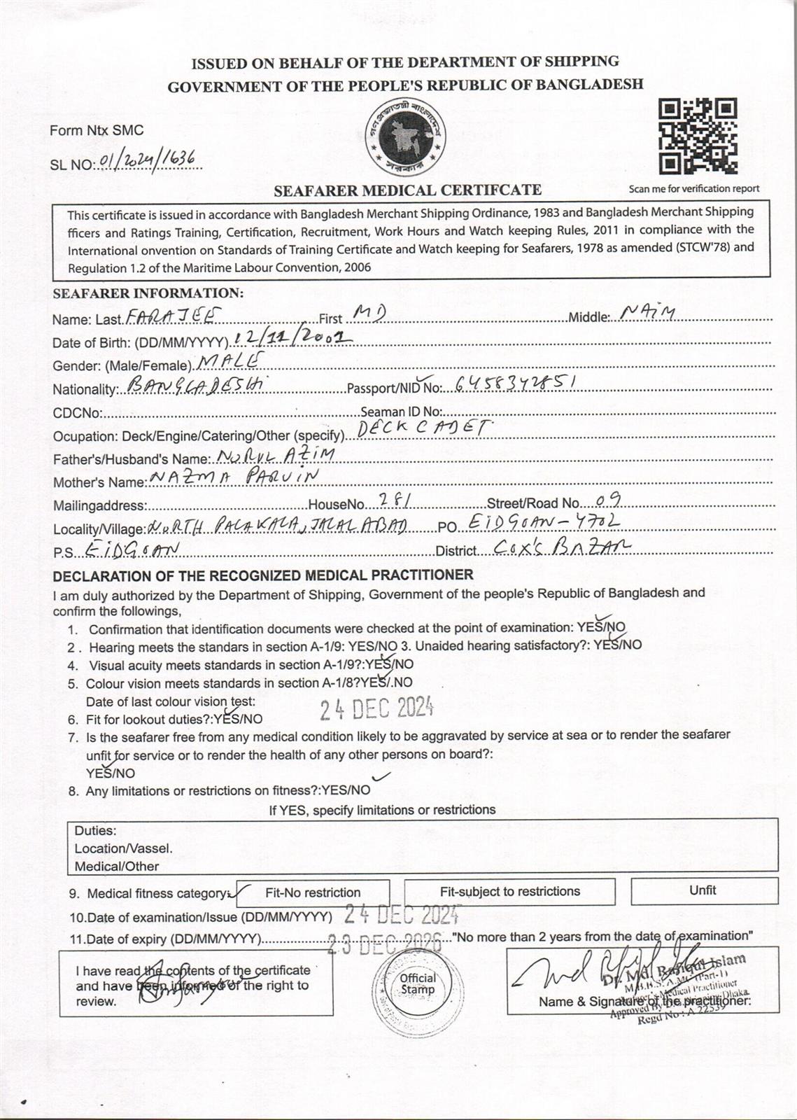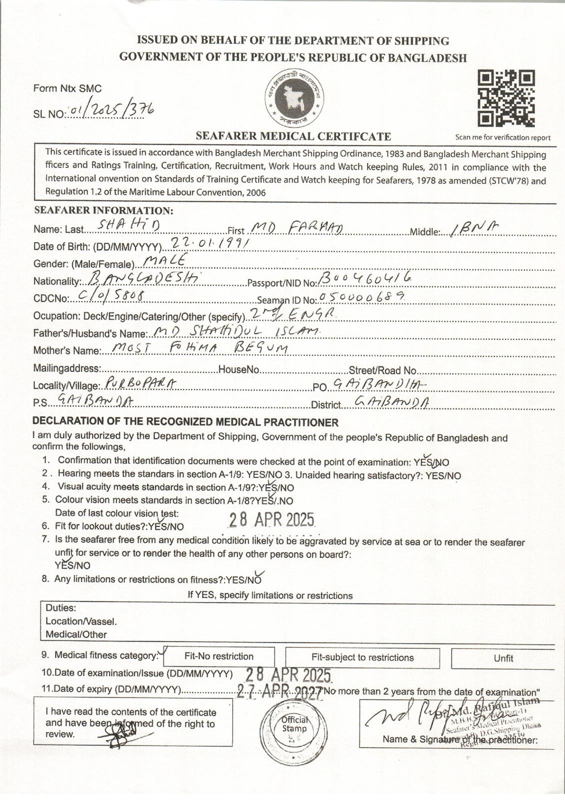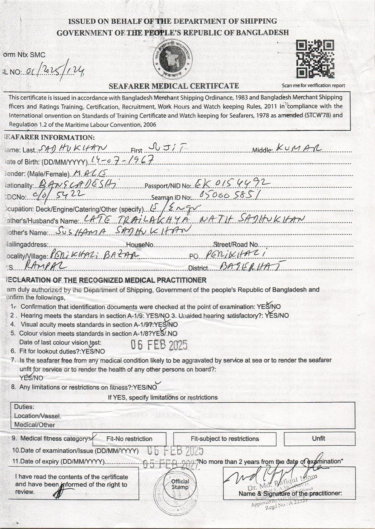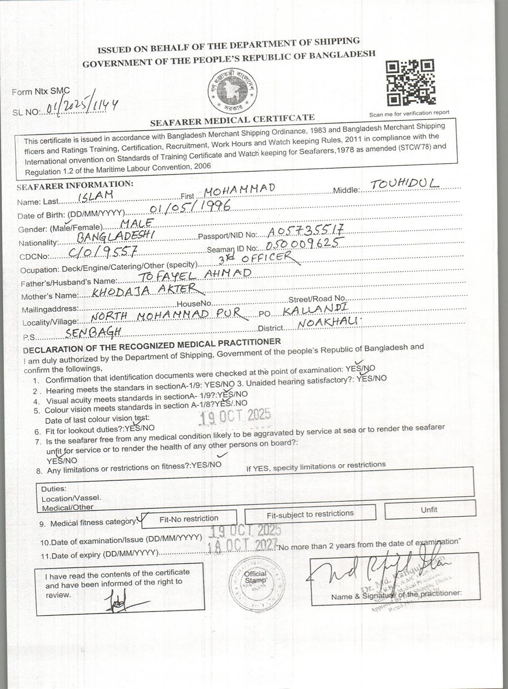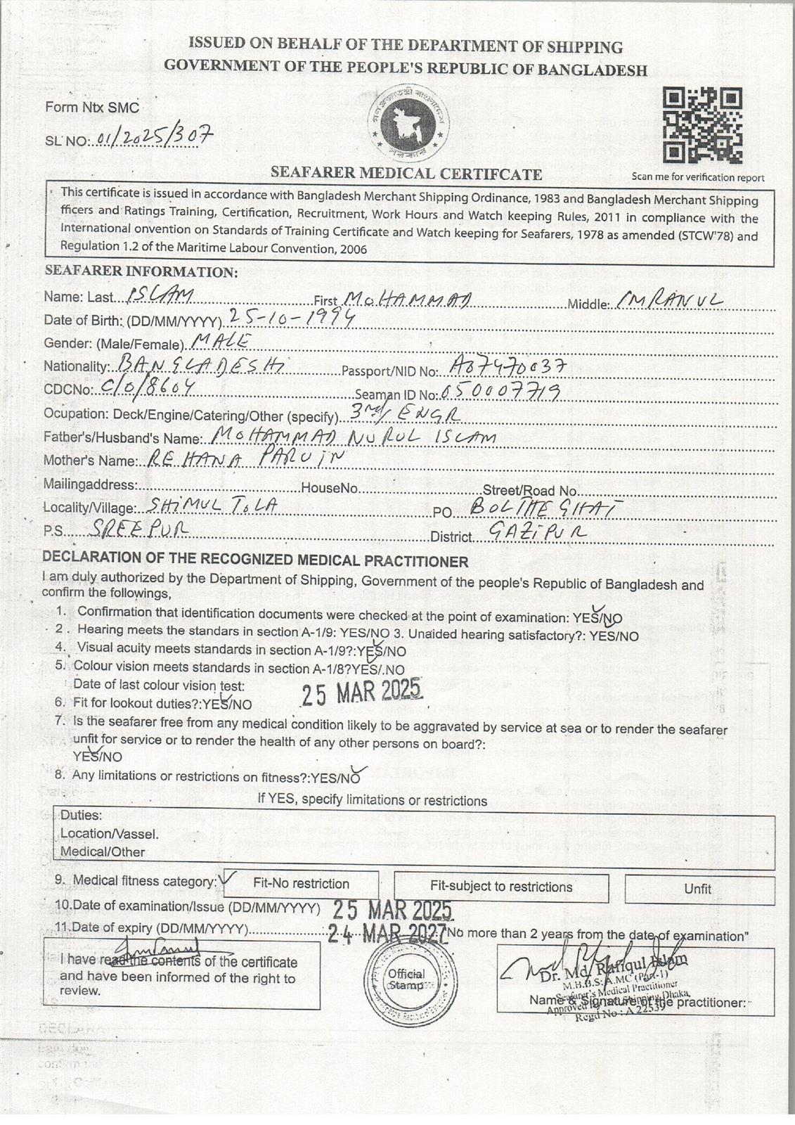1.. SEAFARER MEDICAL CERTIFICATE