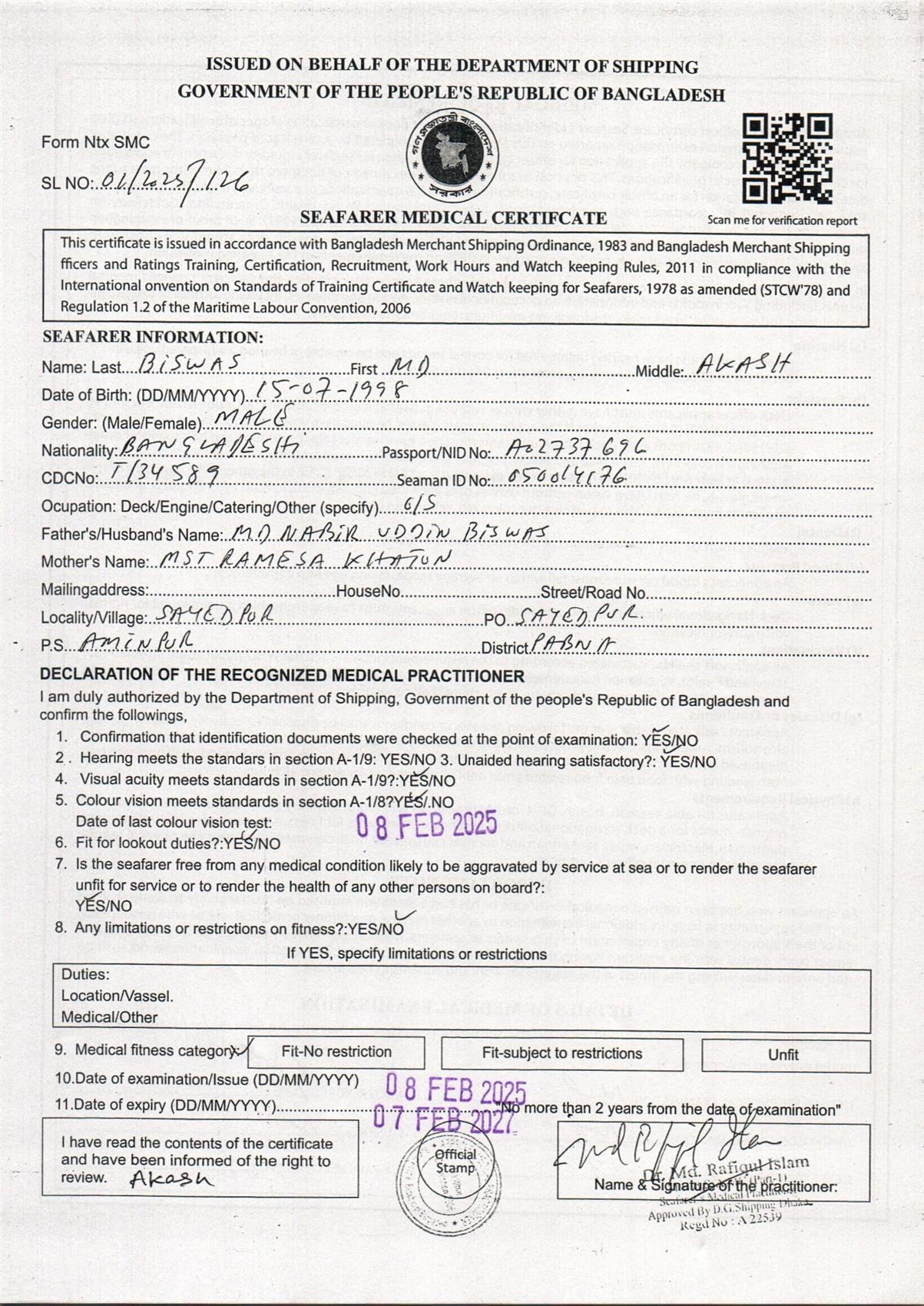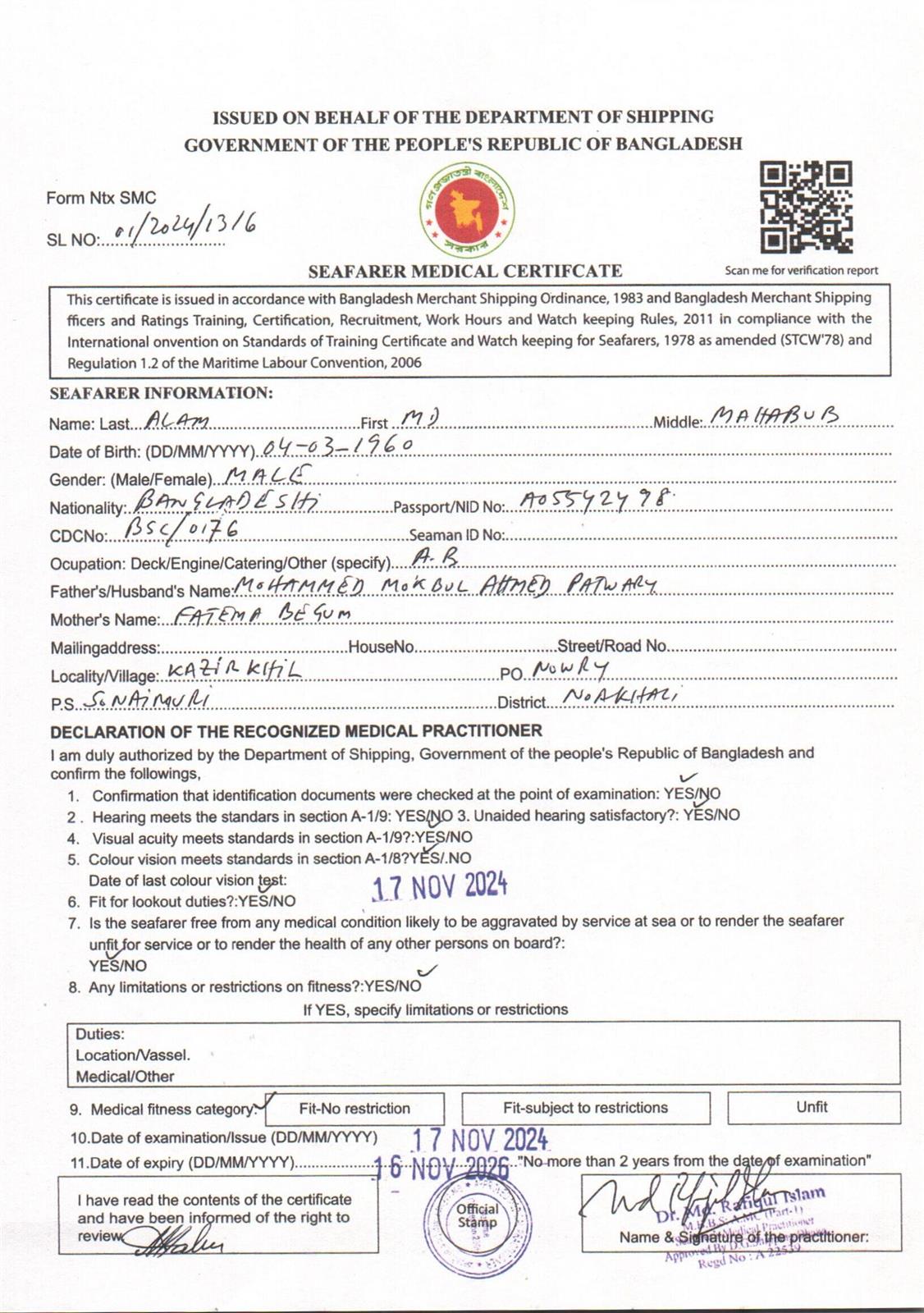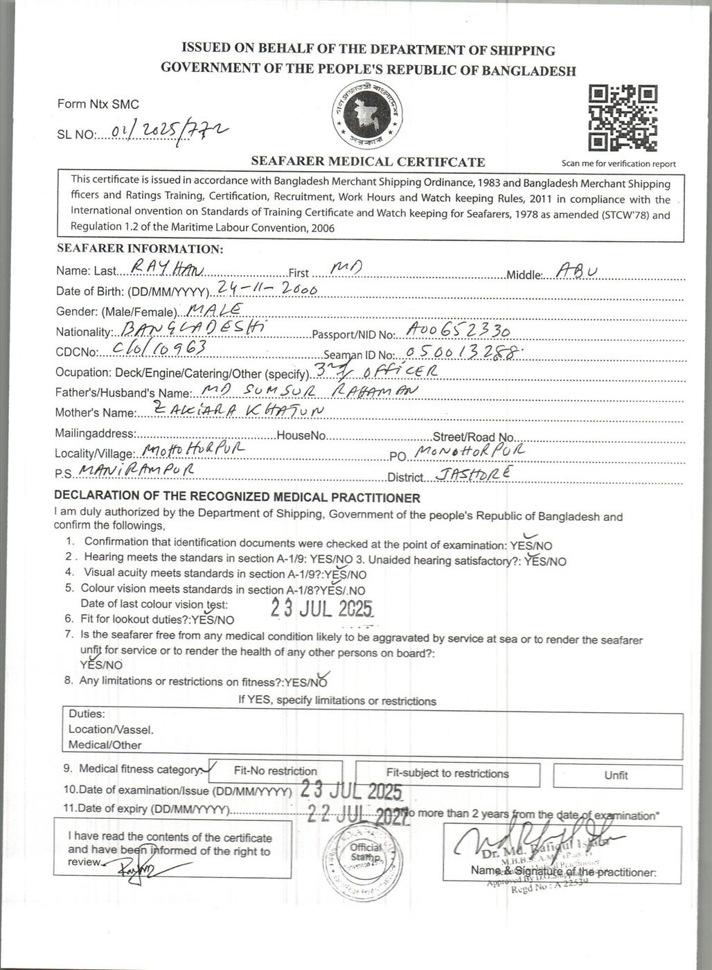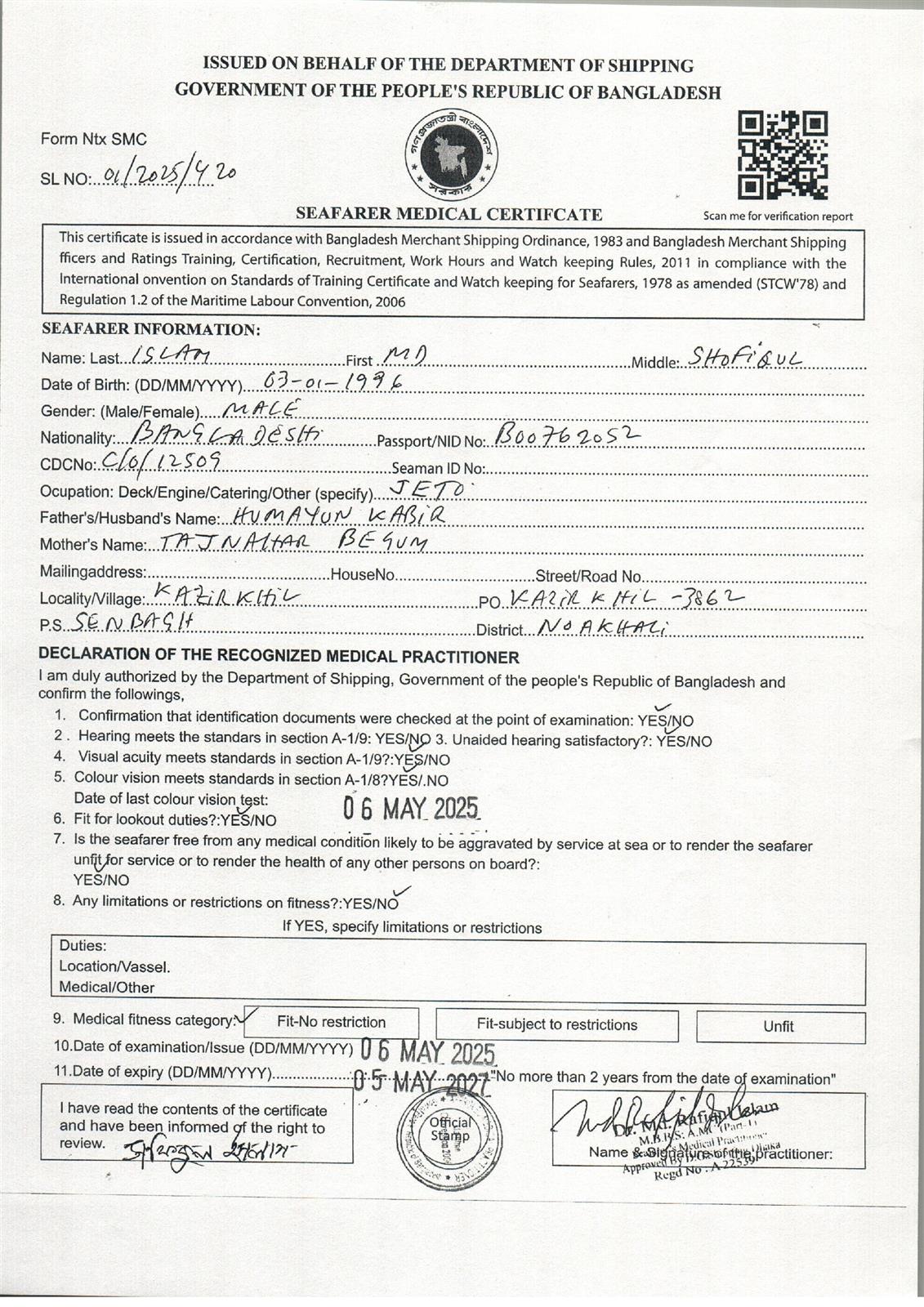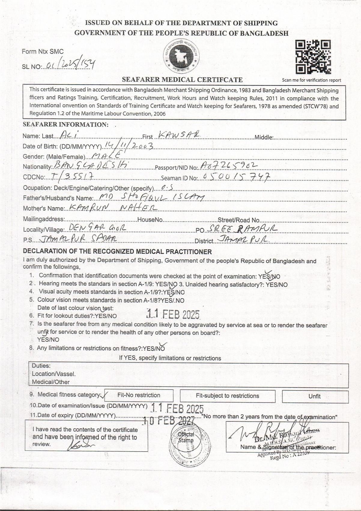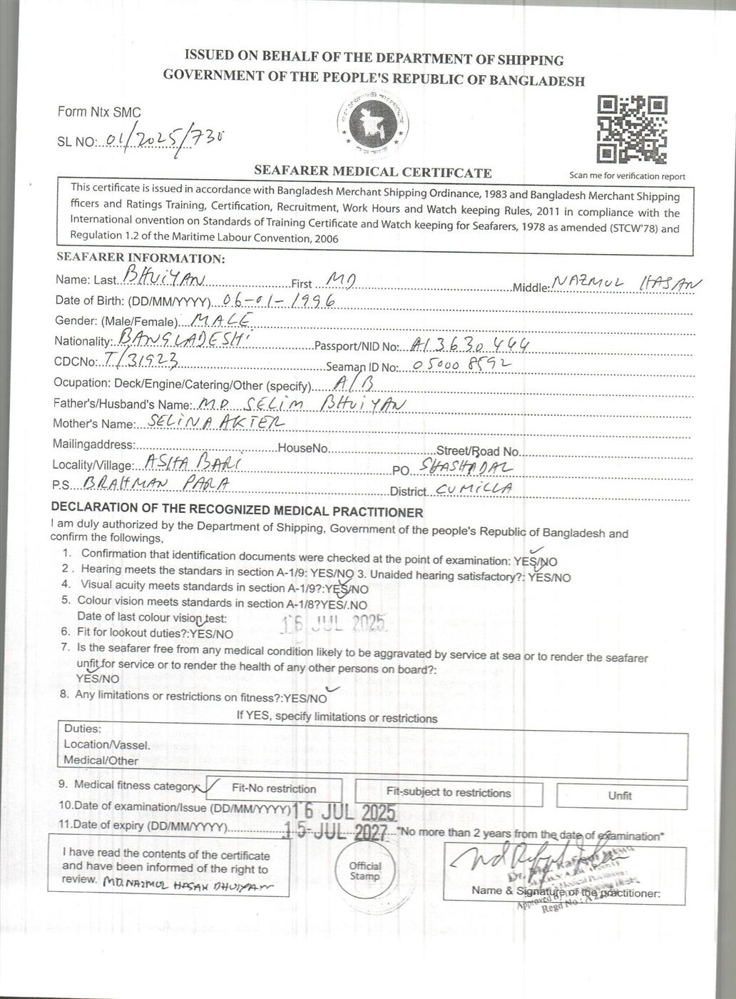 1.. SEAFARER MEDICAL CERTIFICATE