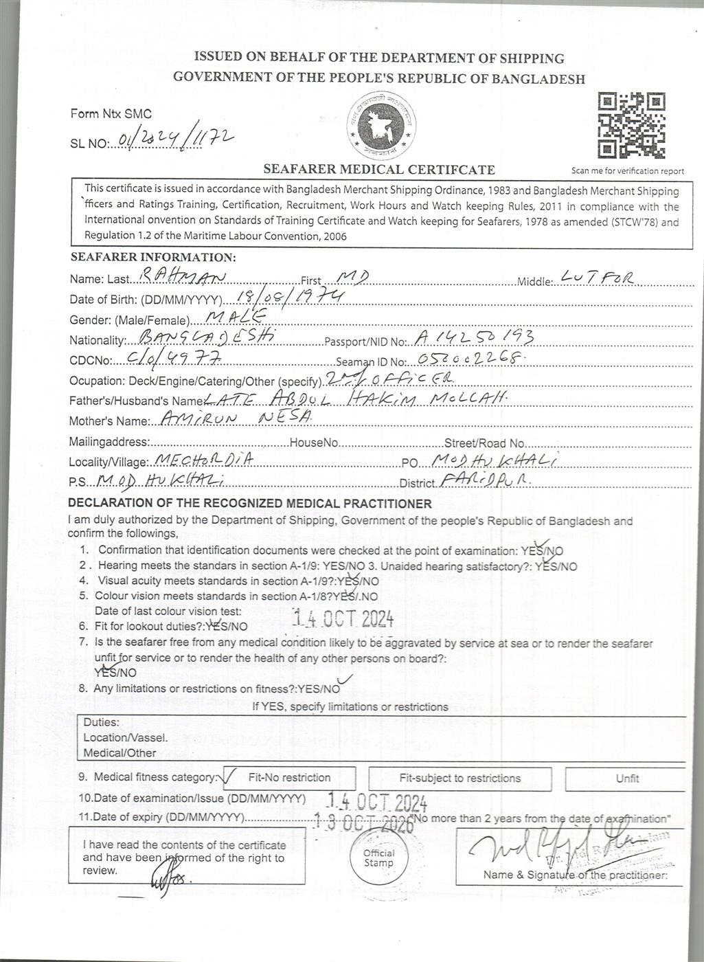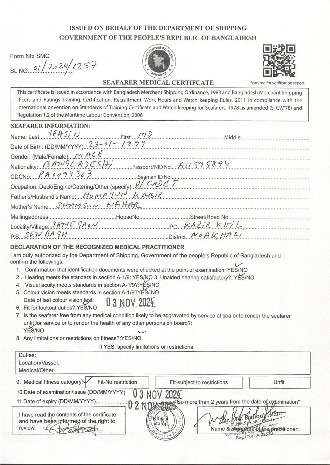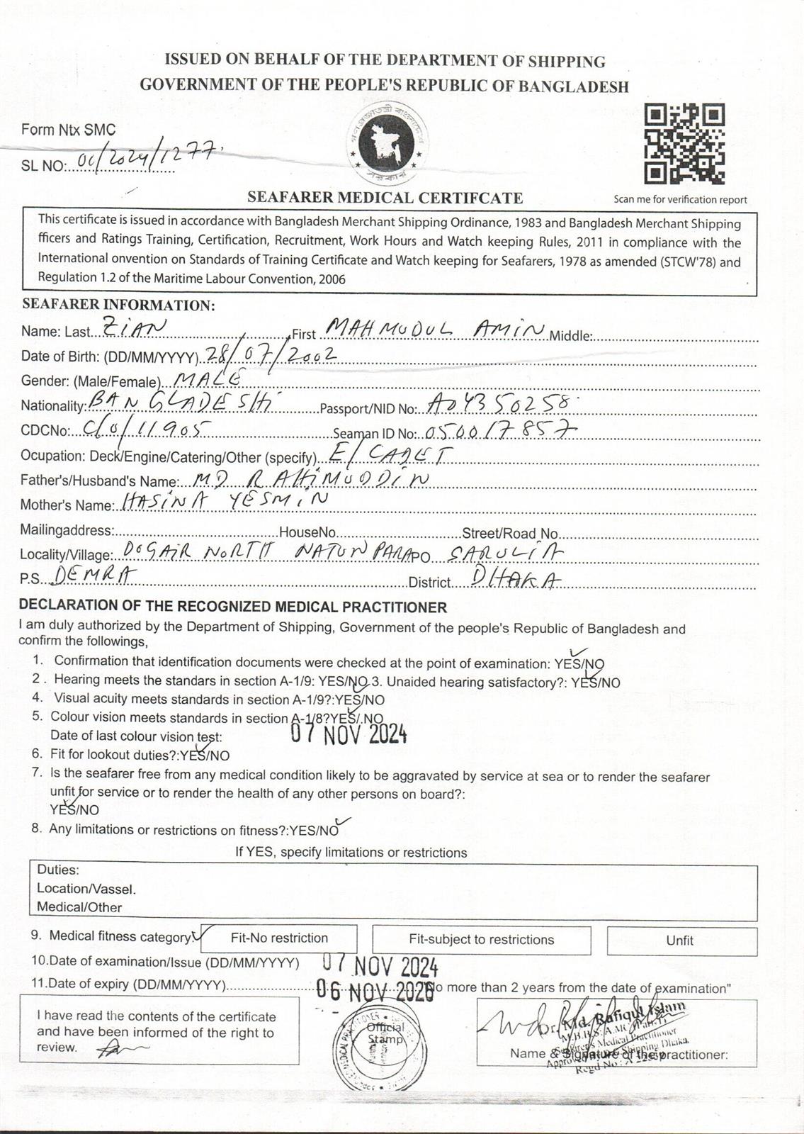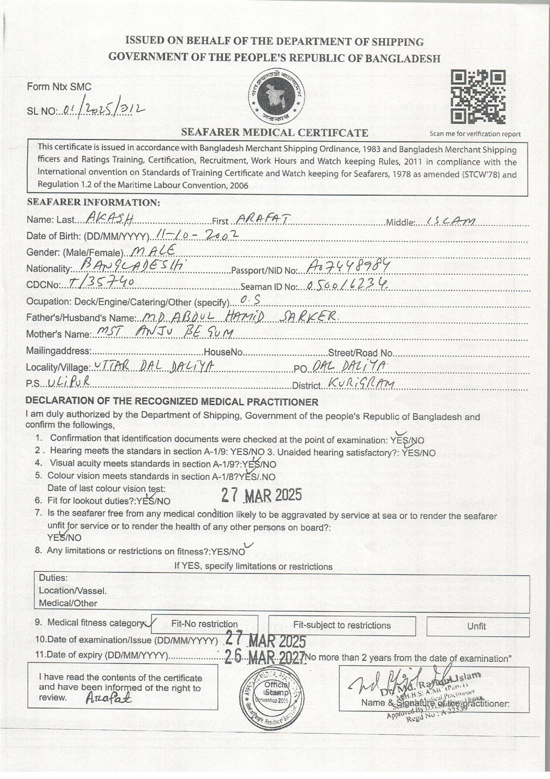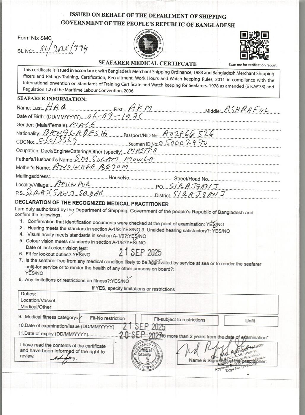 1.. SEAFARER MEDICAL CERTIFICATE
