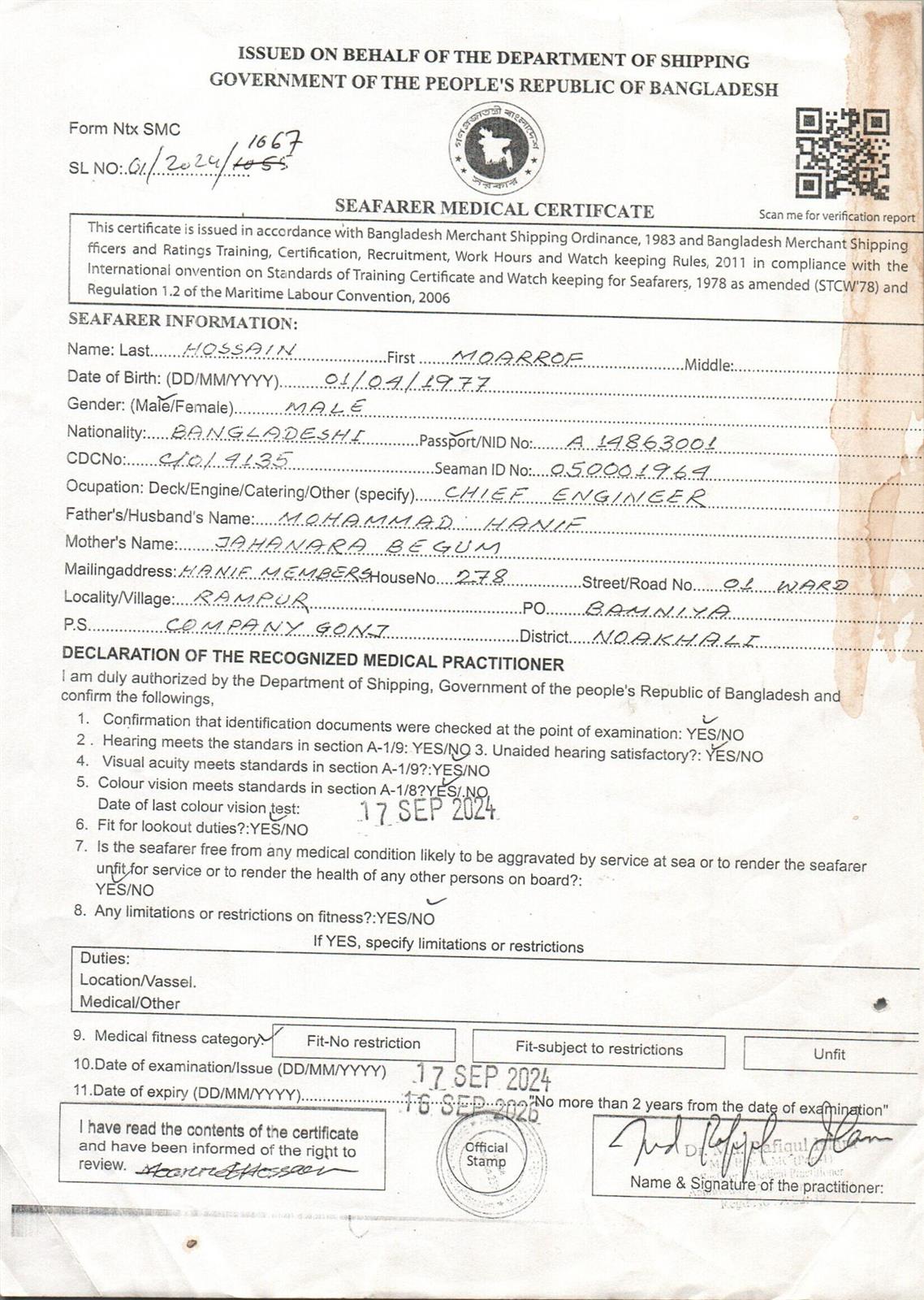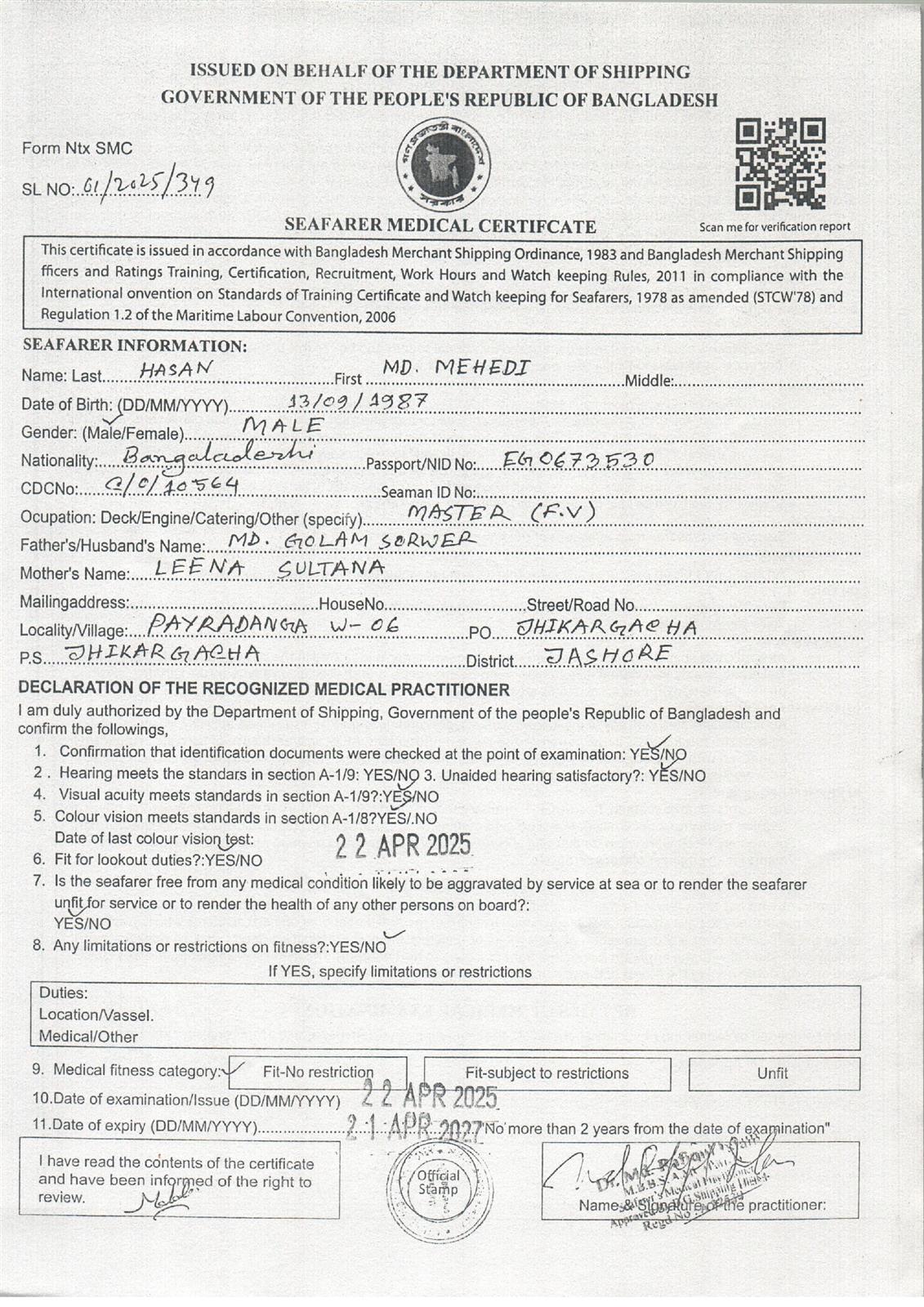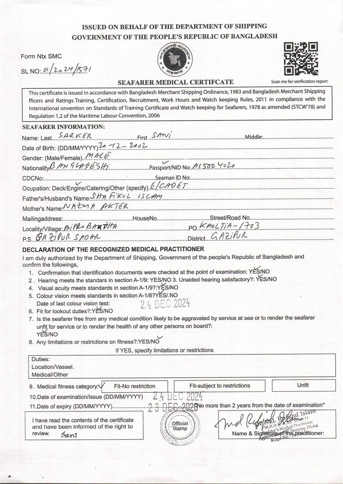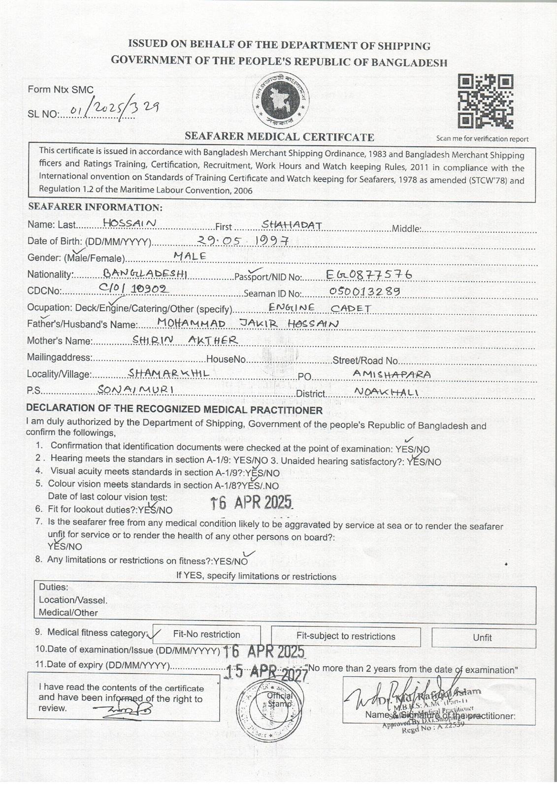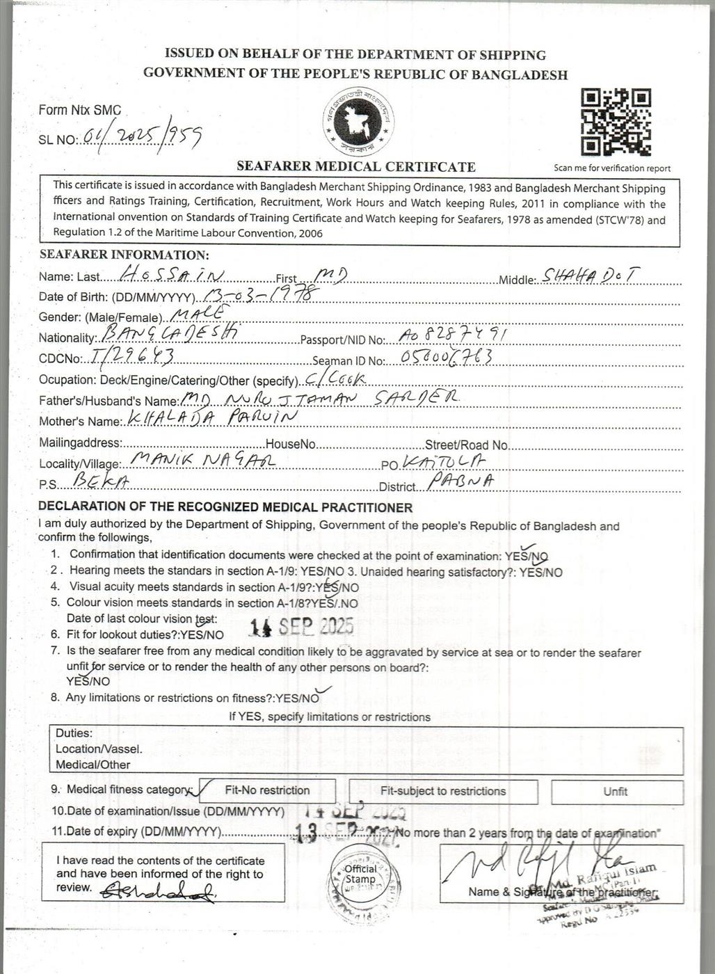 1.. SEAFARER MEDICAL CERTIFICATE