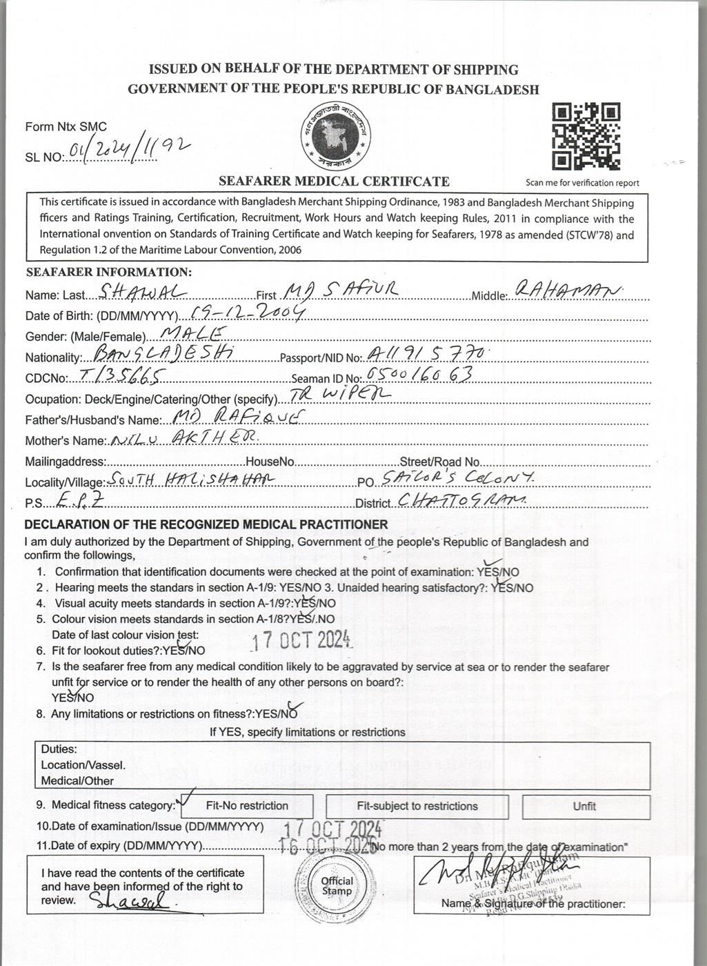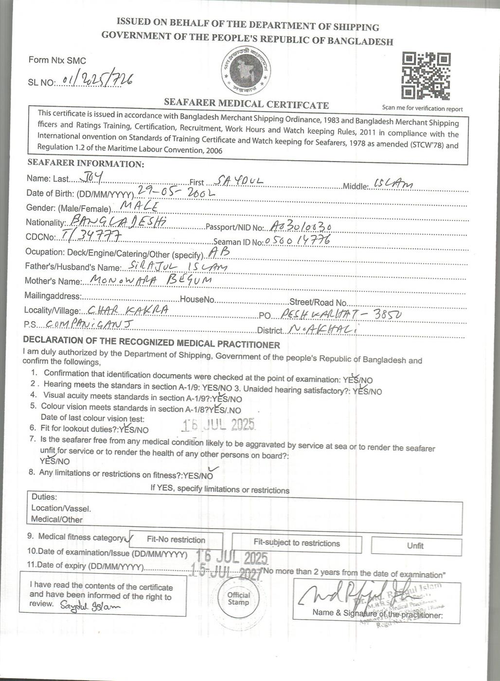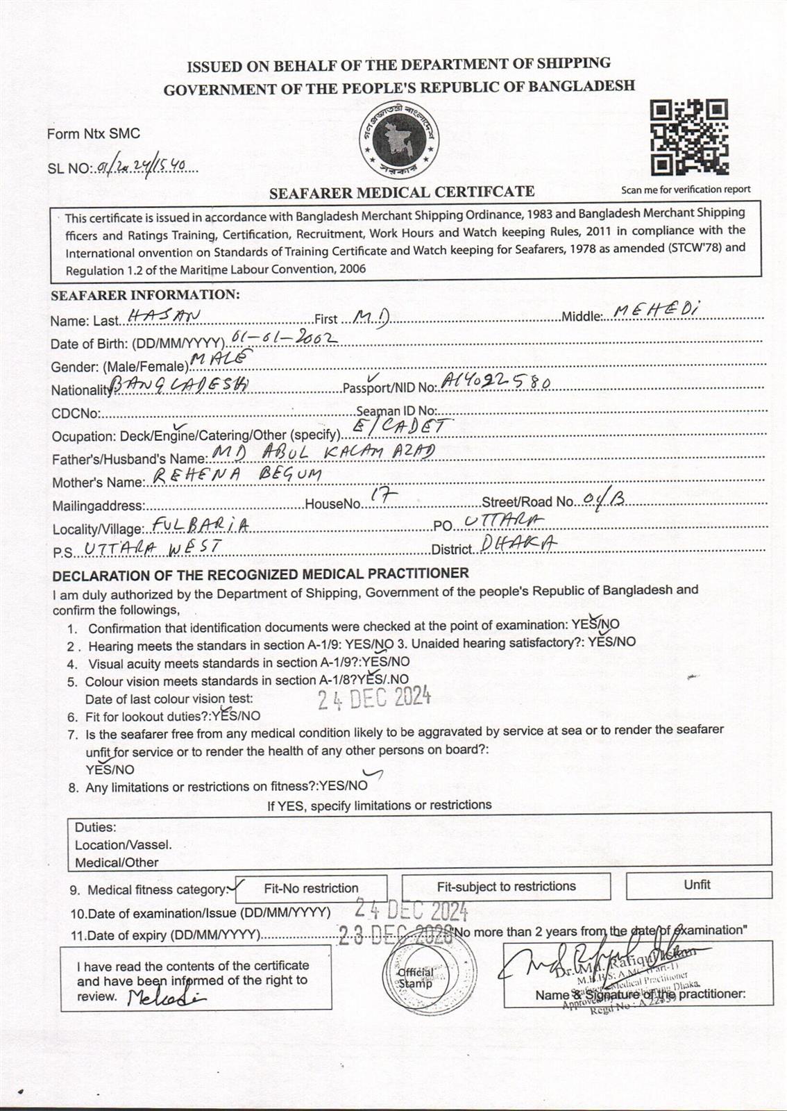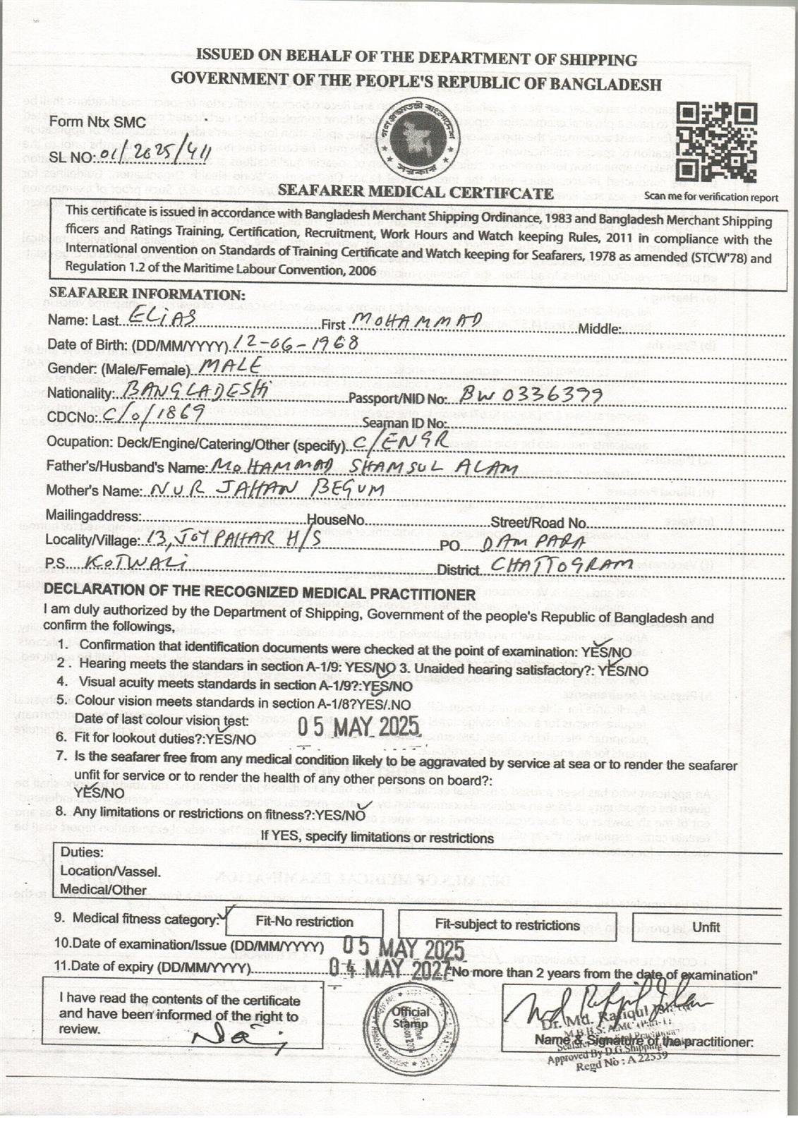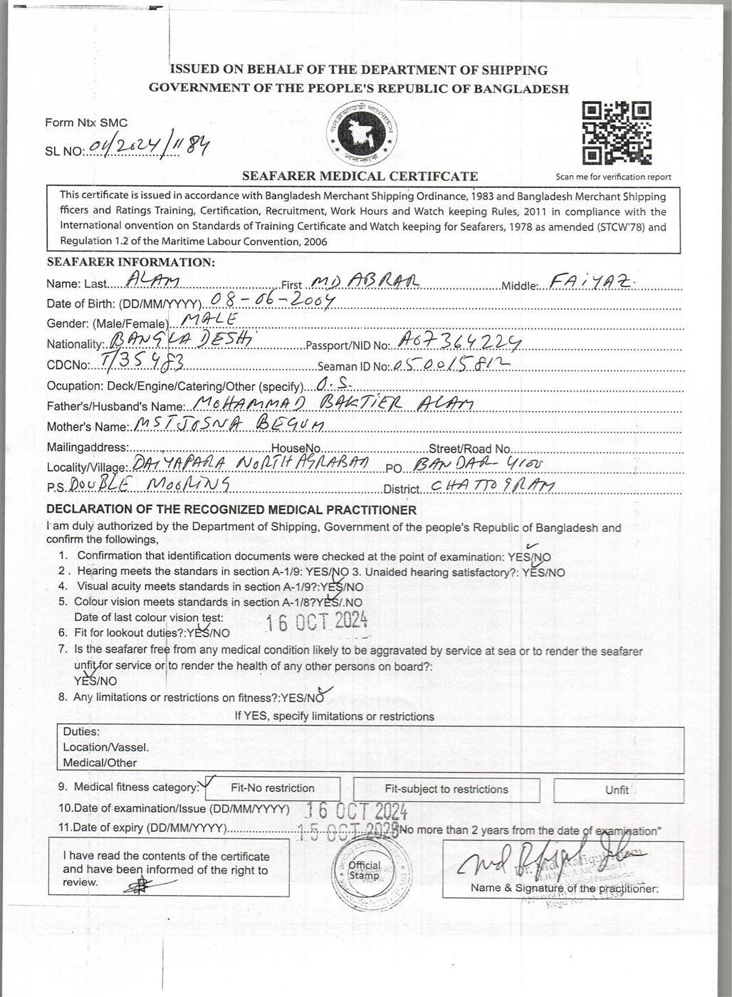 1.. SEAFARER MEDICAL CERTIFICATE