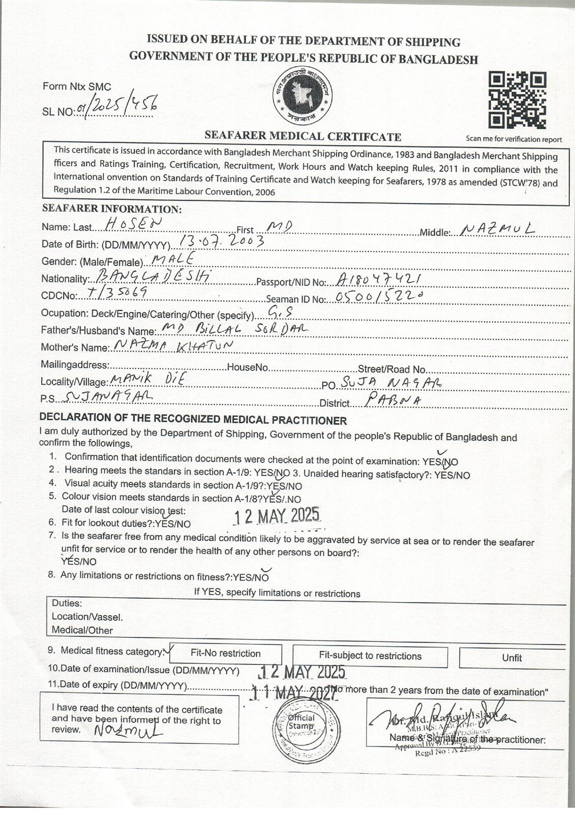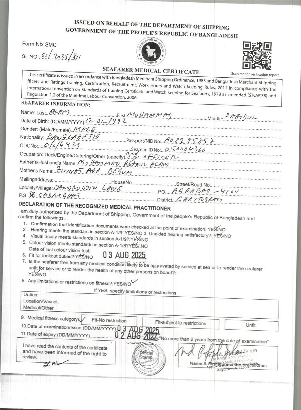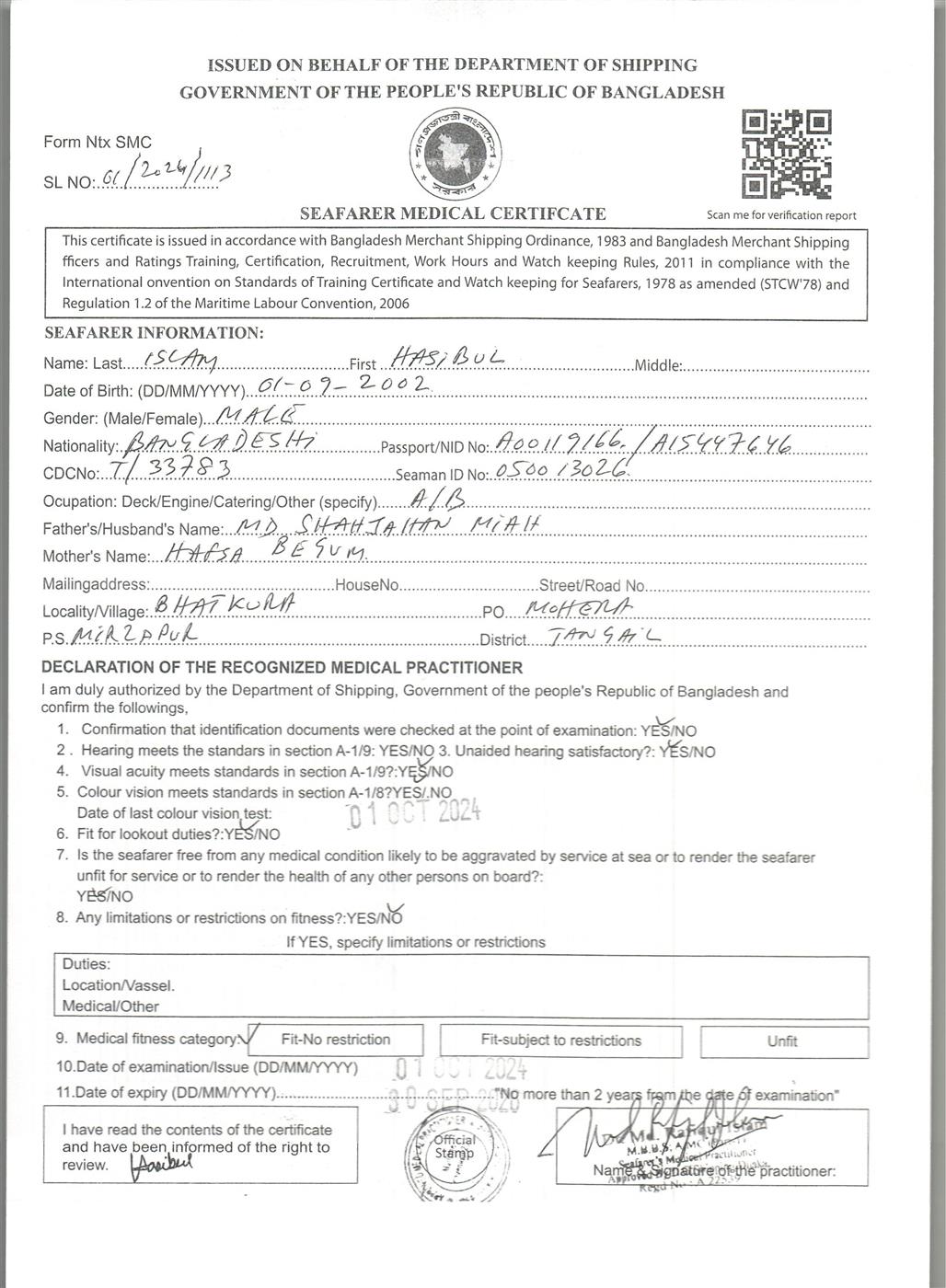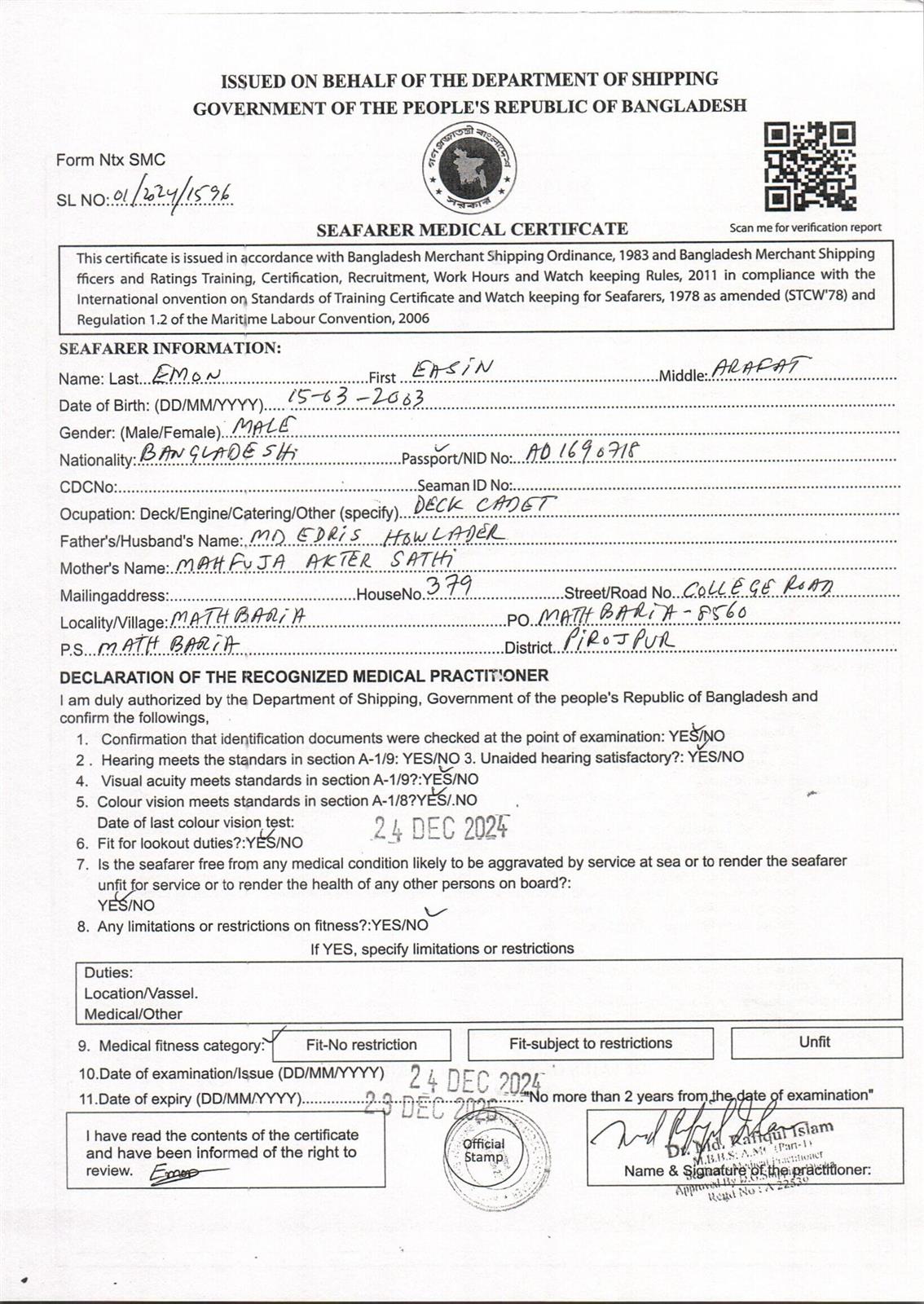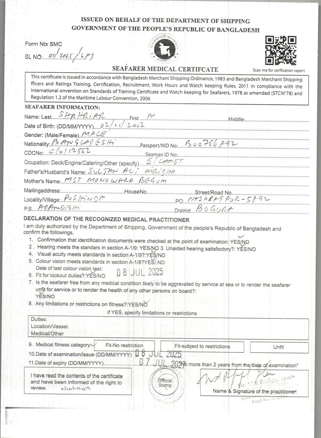 1.. SEAFARER MEDICAL CERTIFICATE