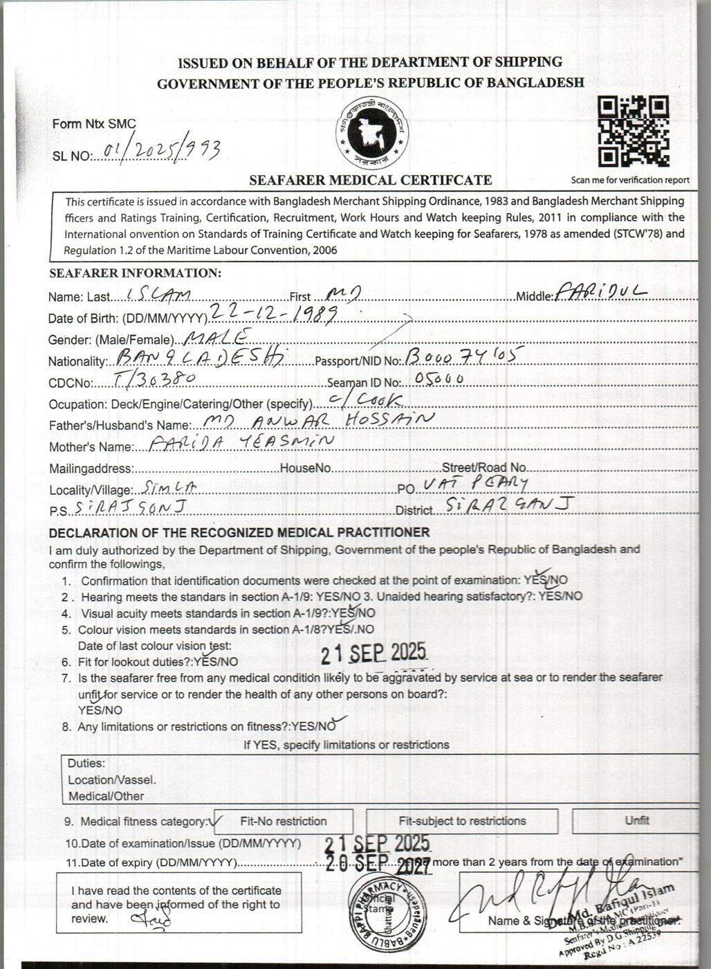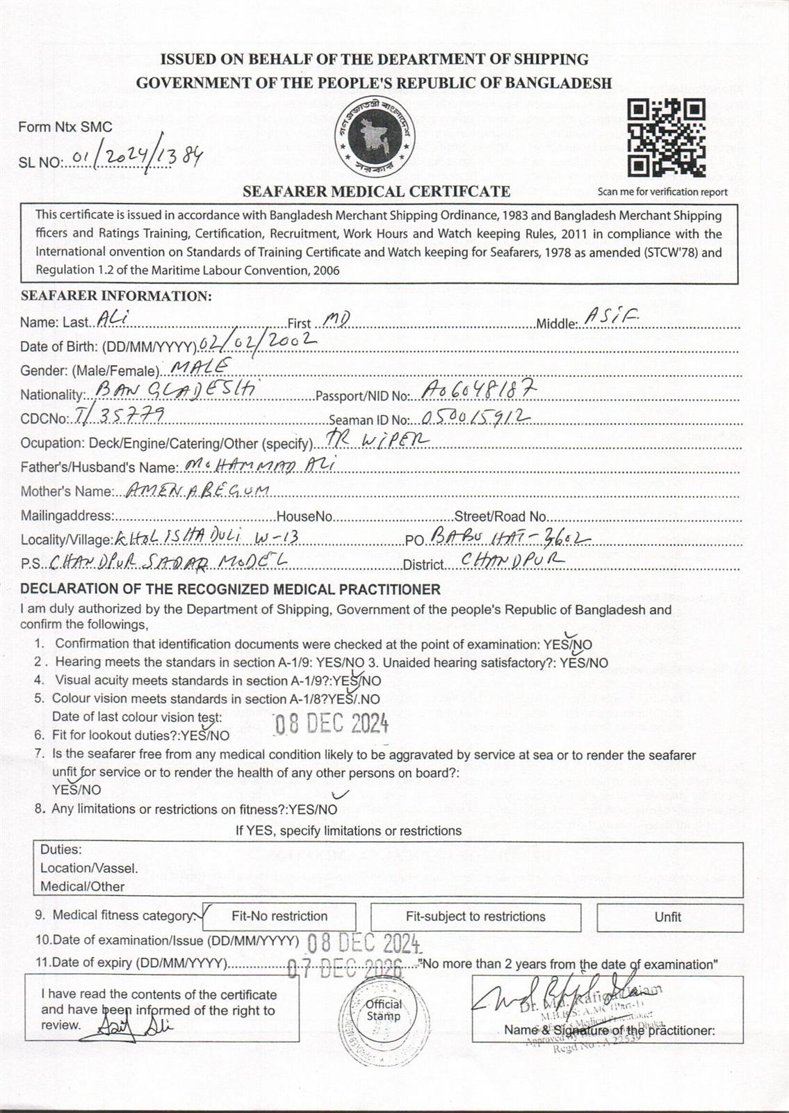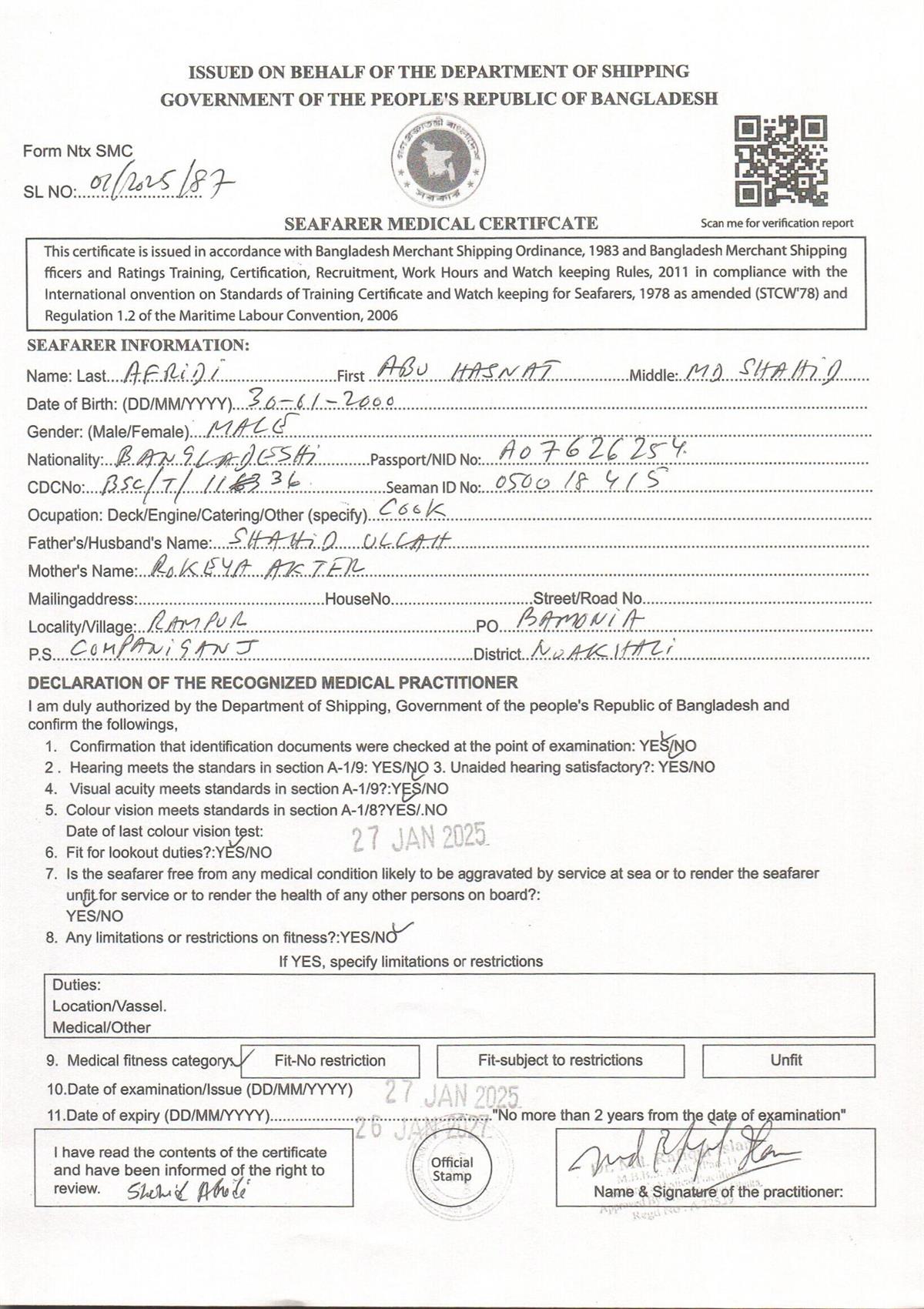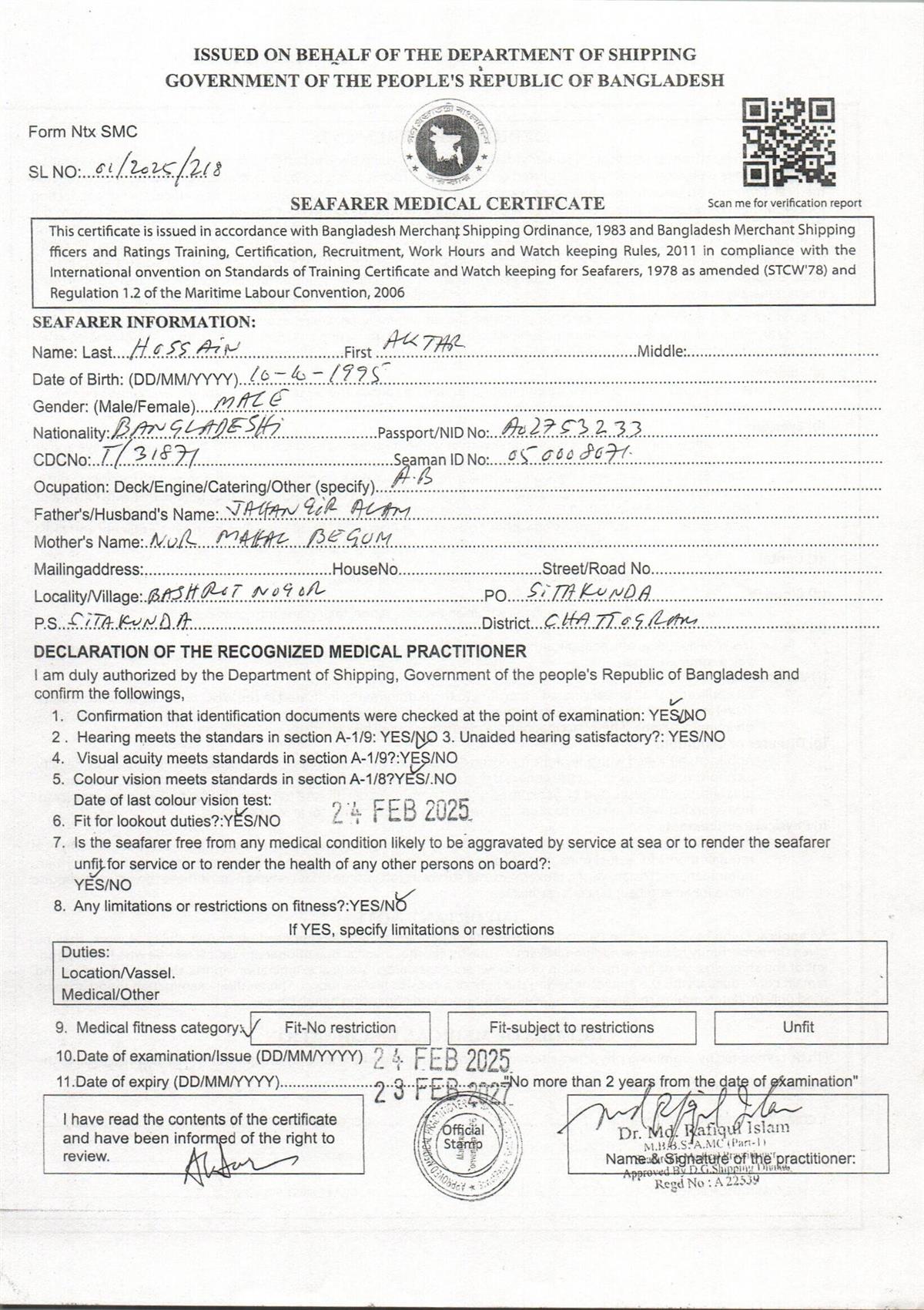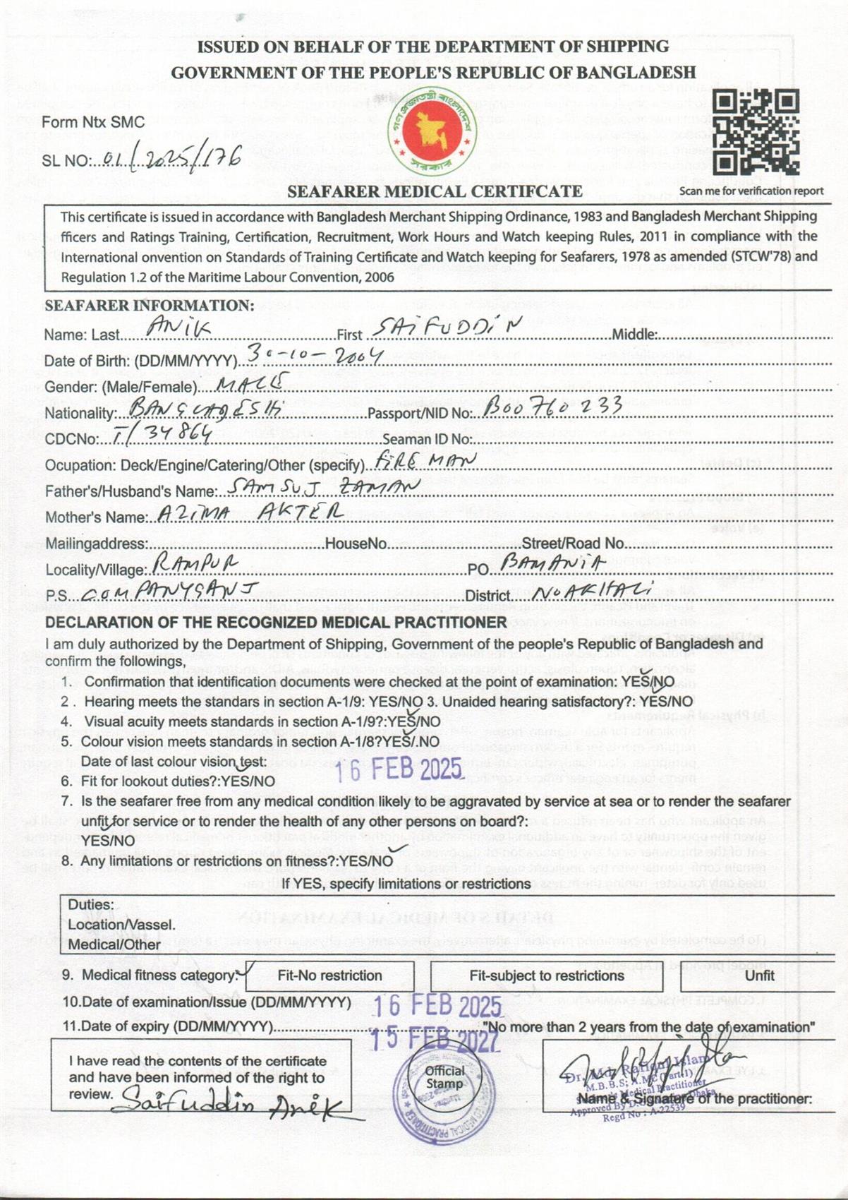 1.. SEAFARER MEDICAL CERTIFICATE