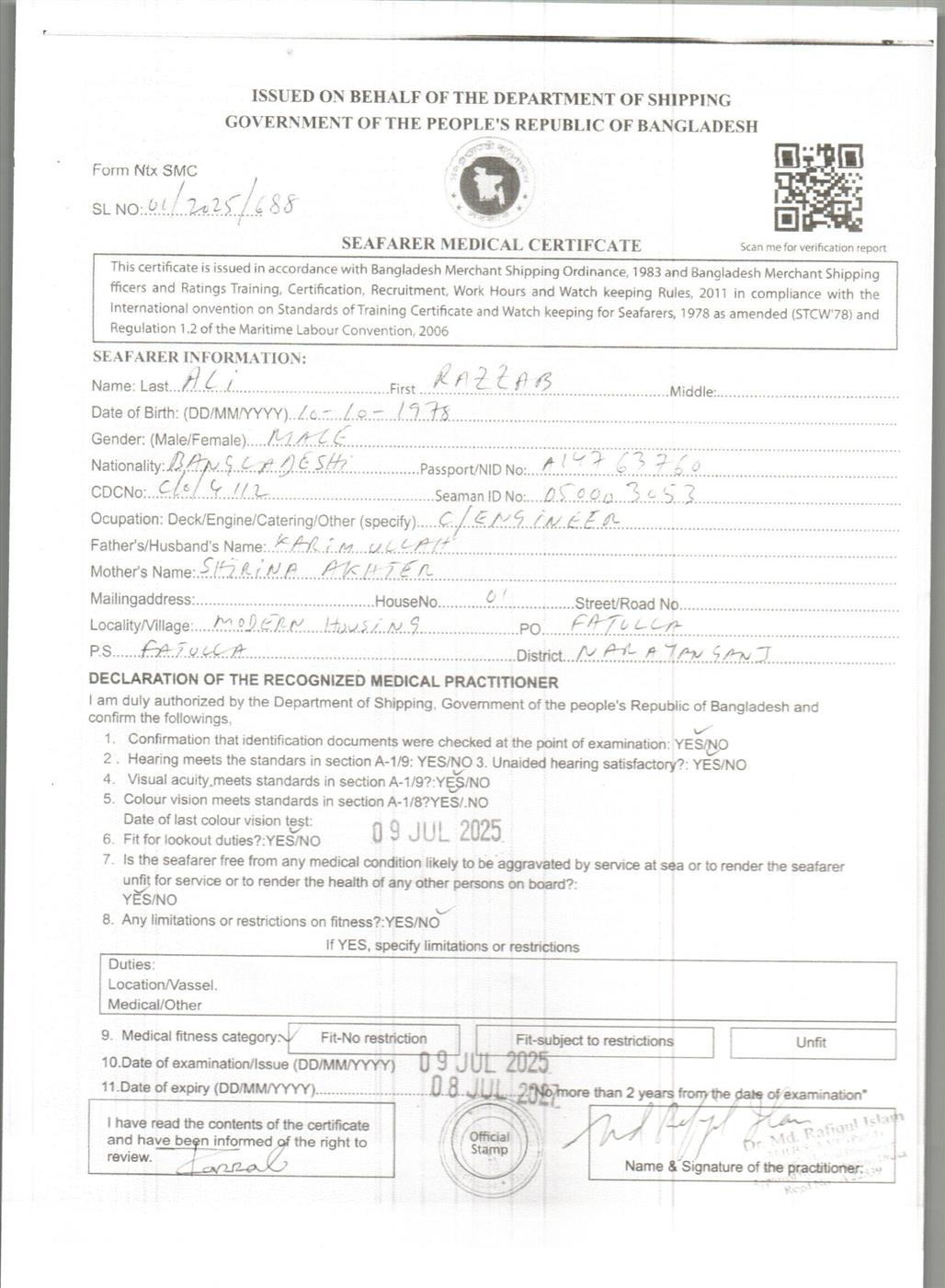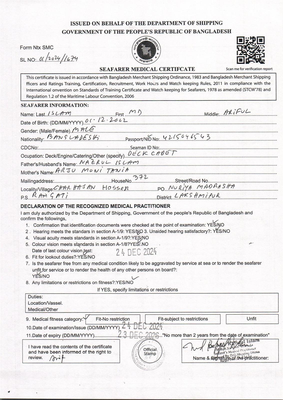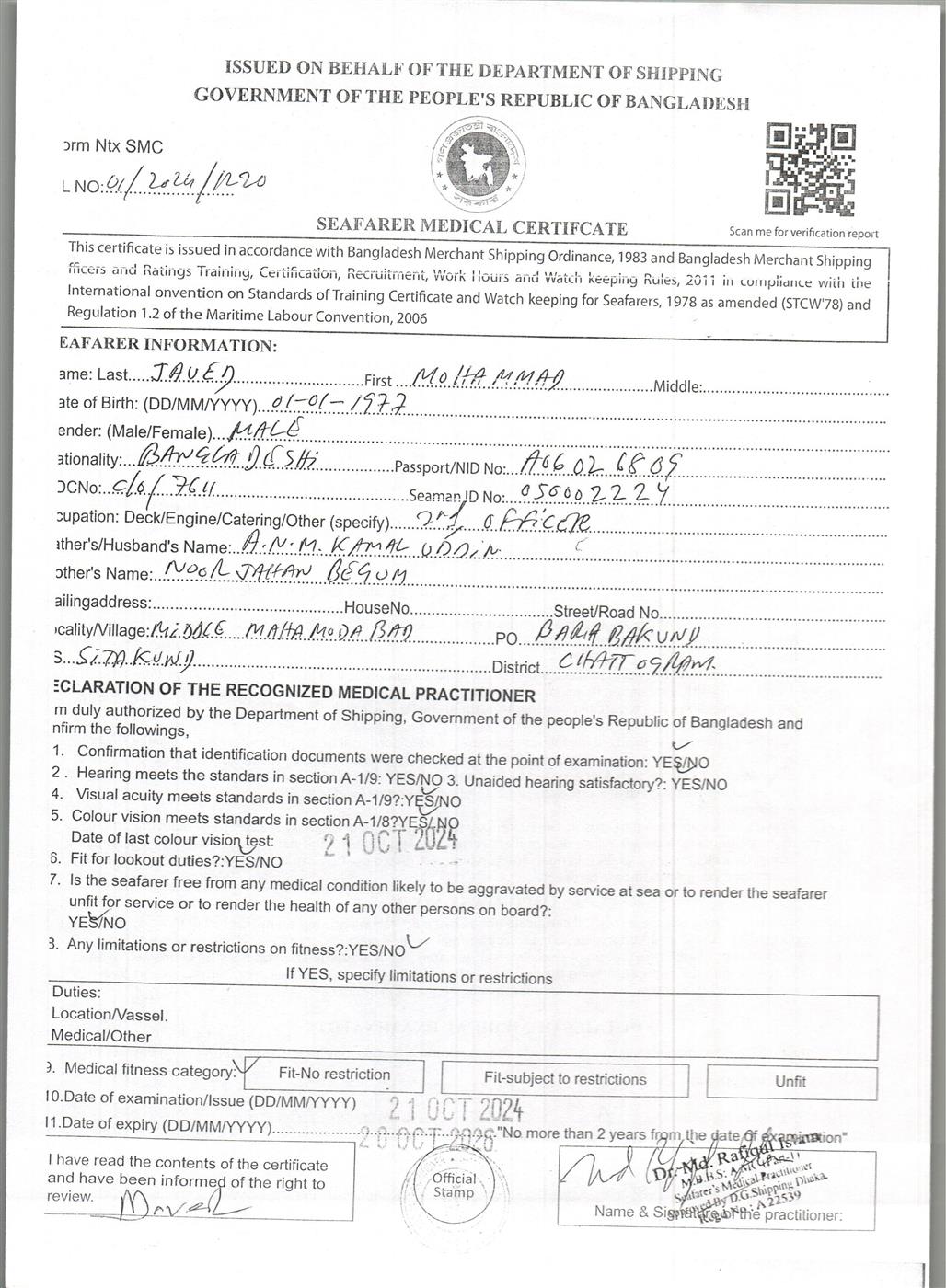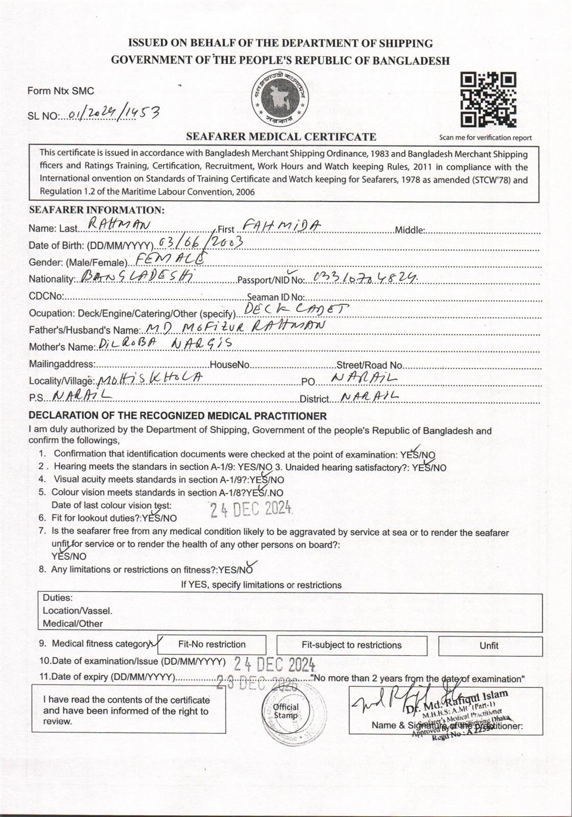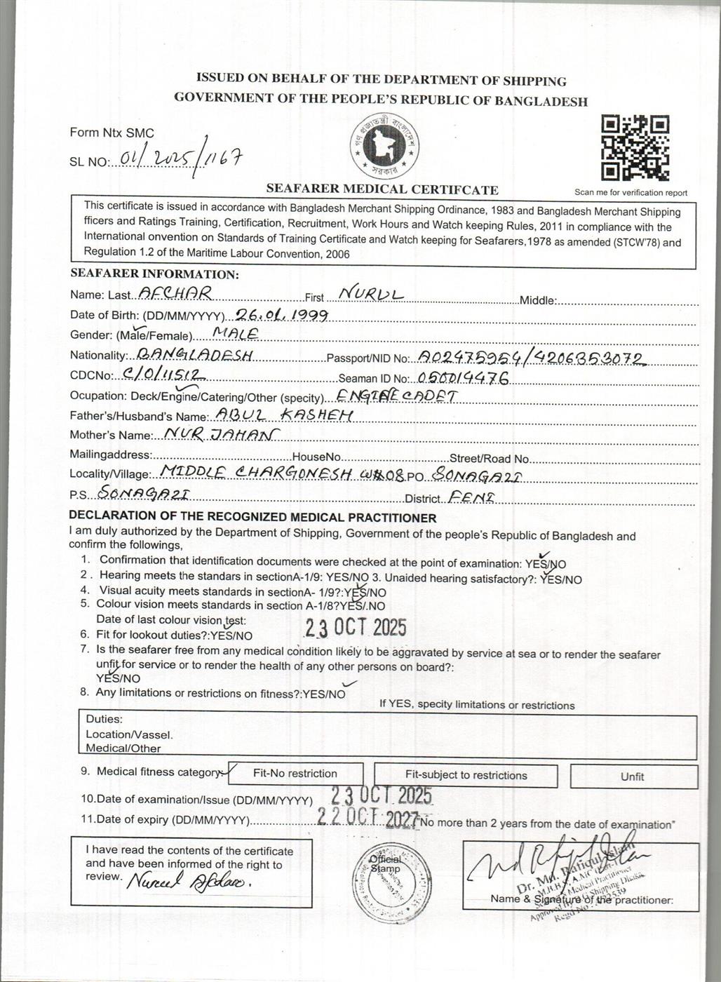 1.. SEAFARER MEDICAL CERTIFICATE