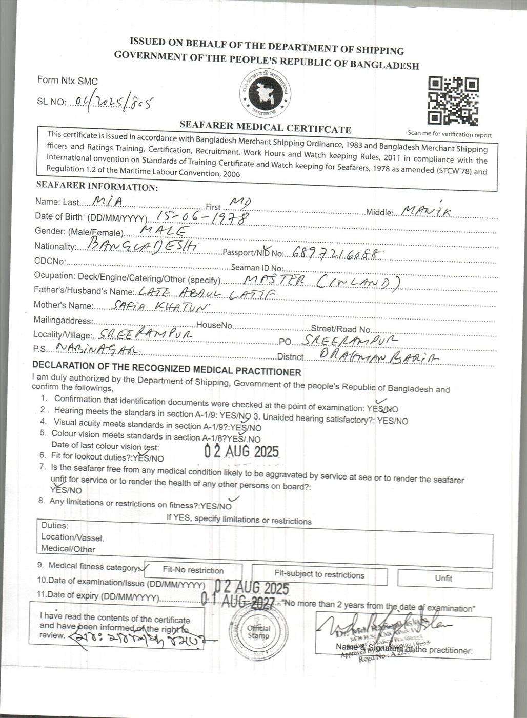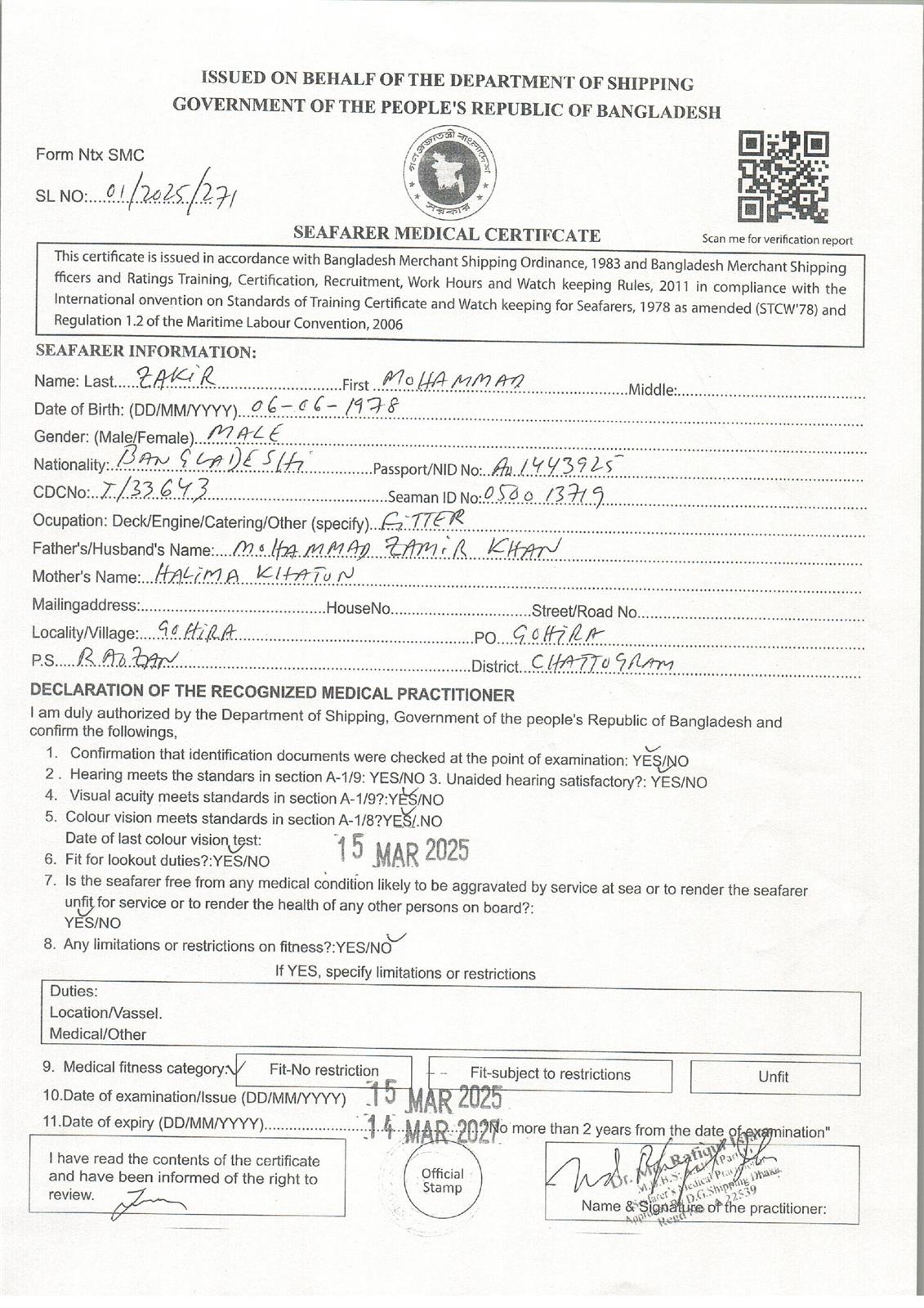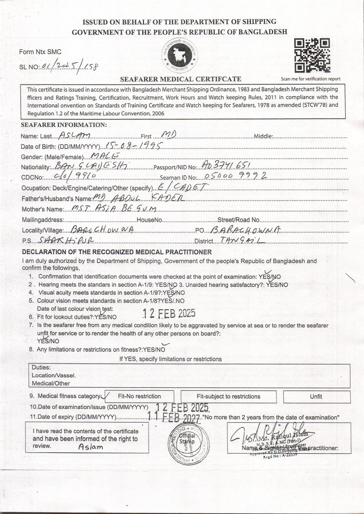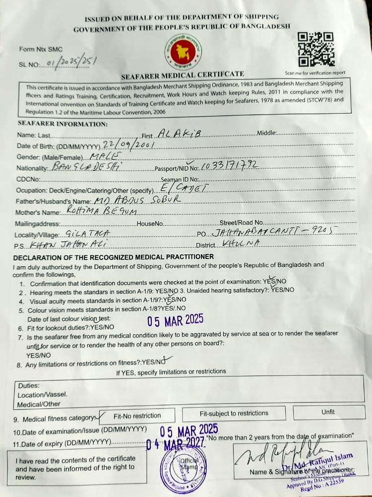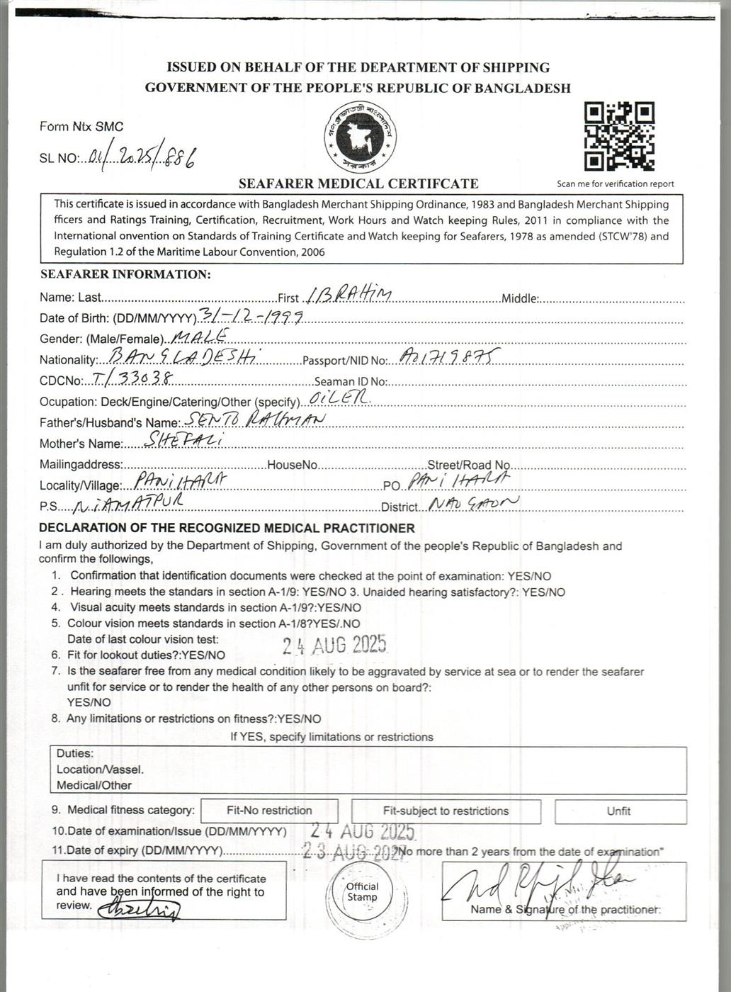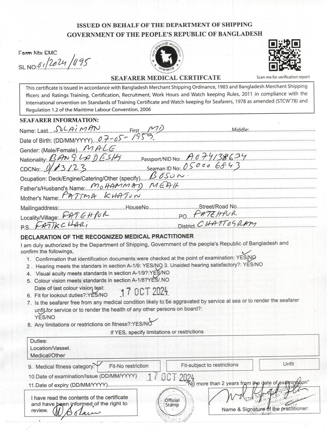 1.. SEAFARER MEDICAL CERTIFICATE