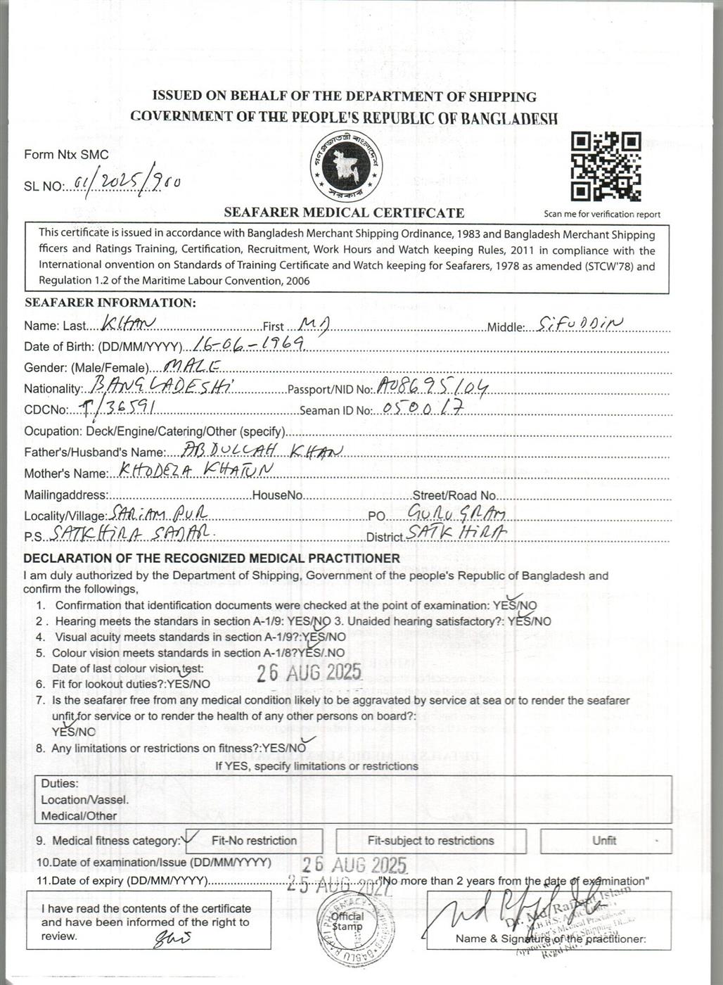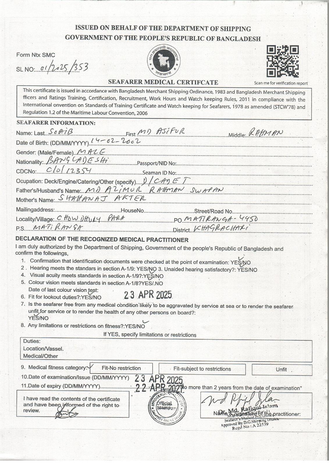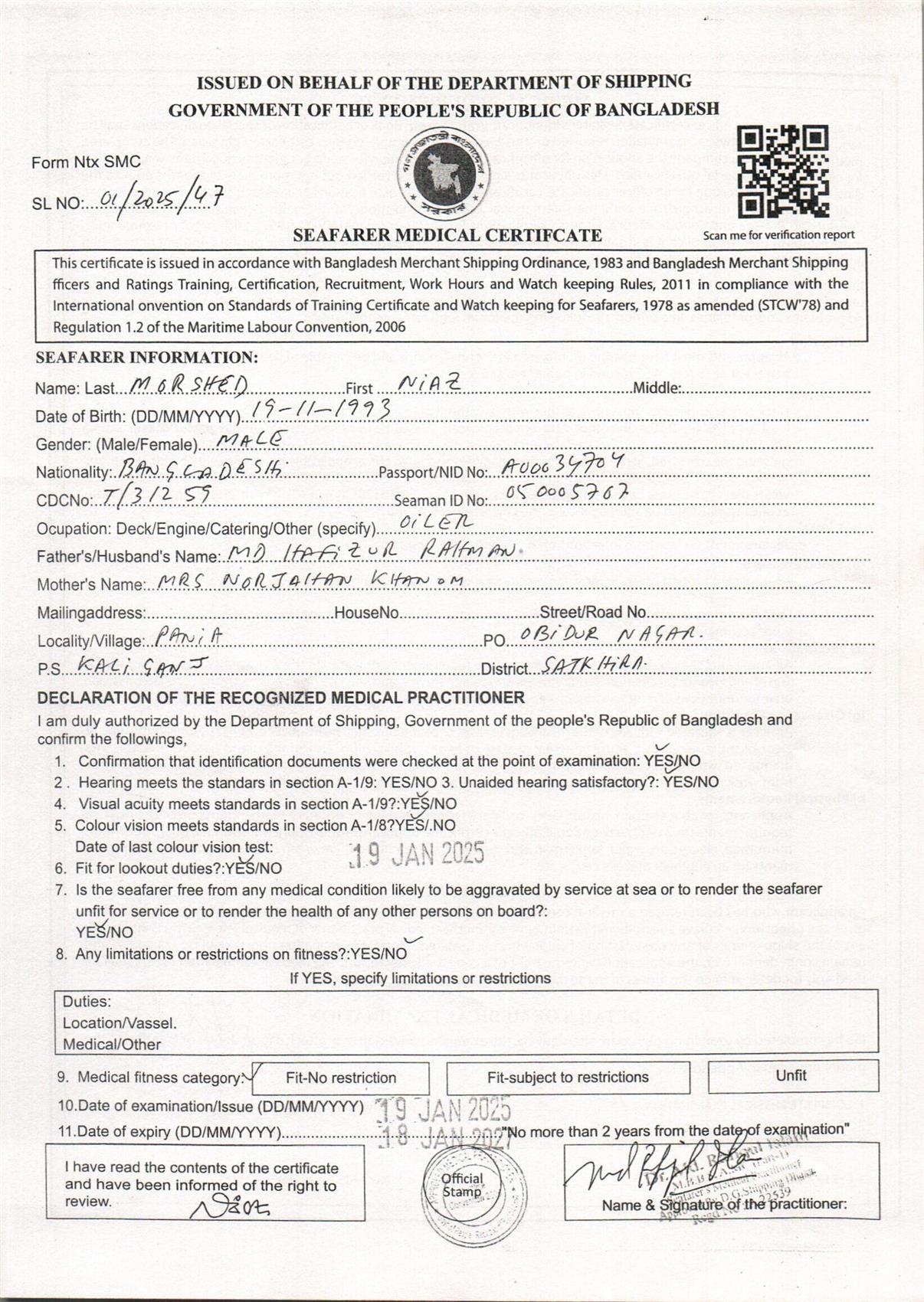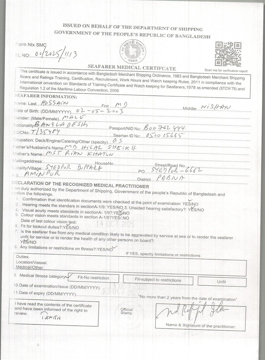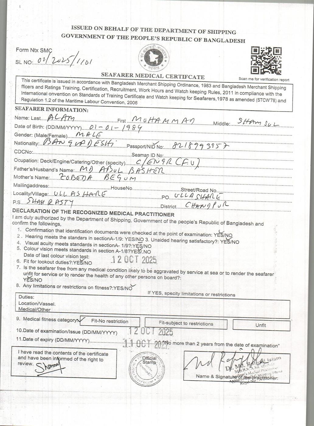 1.. SEAFARER MEDICAL CERTIFICATE
