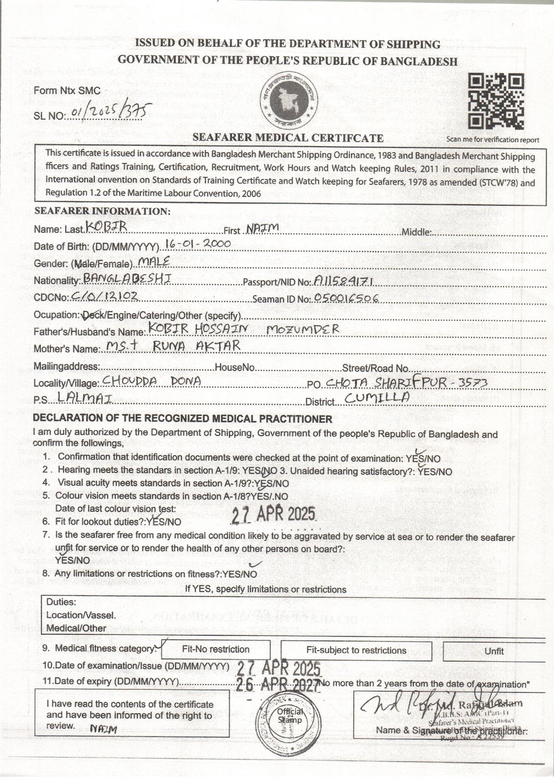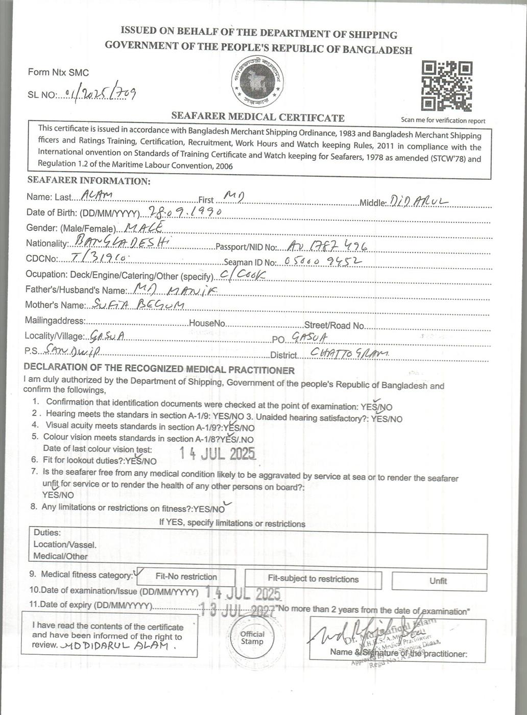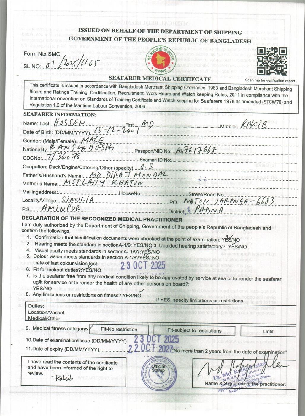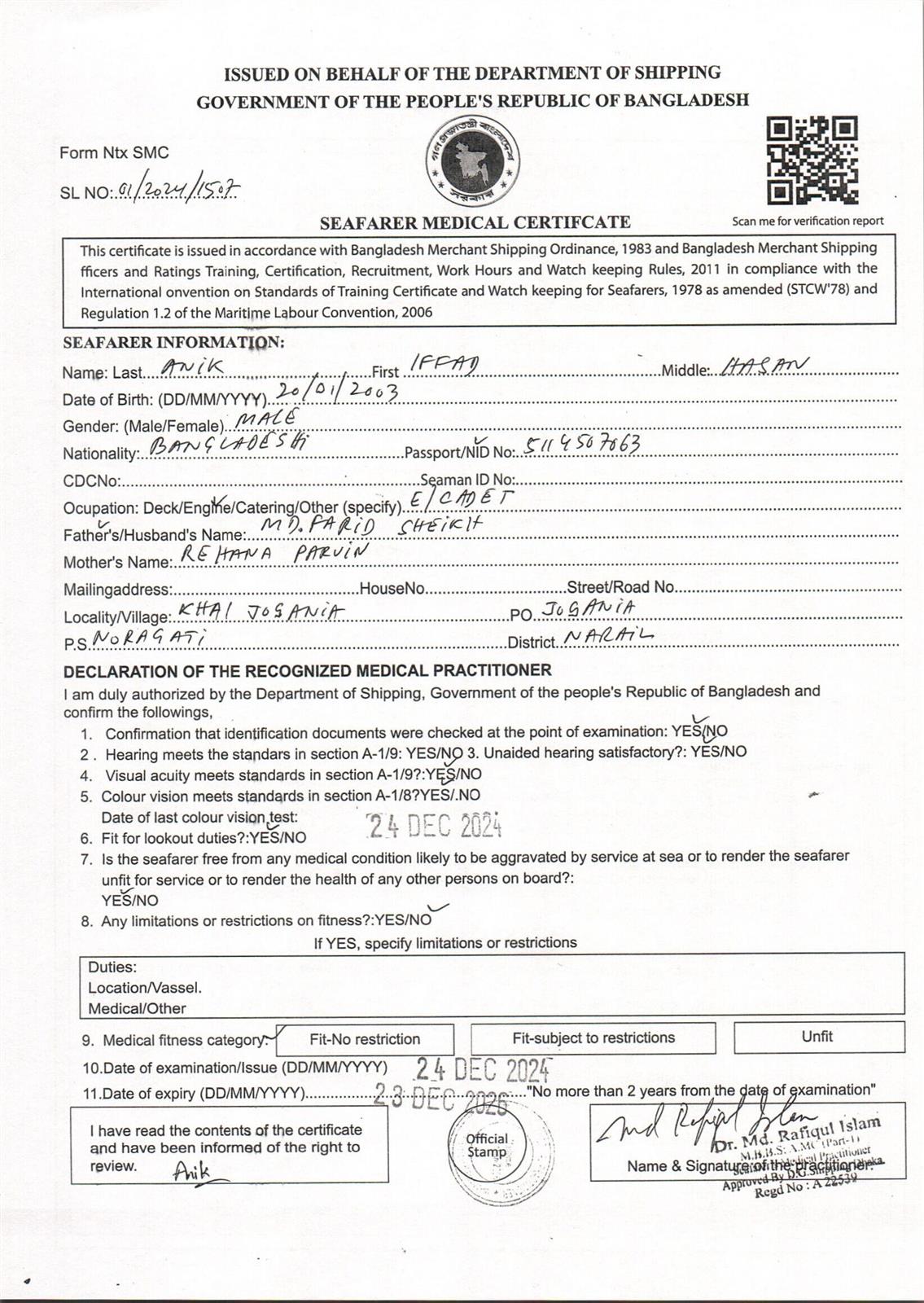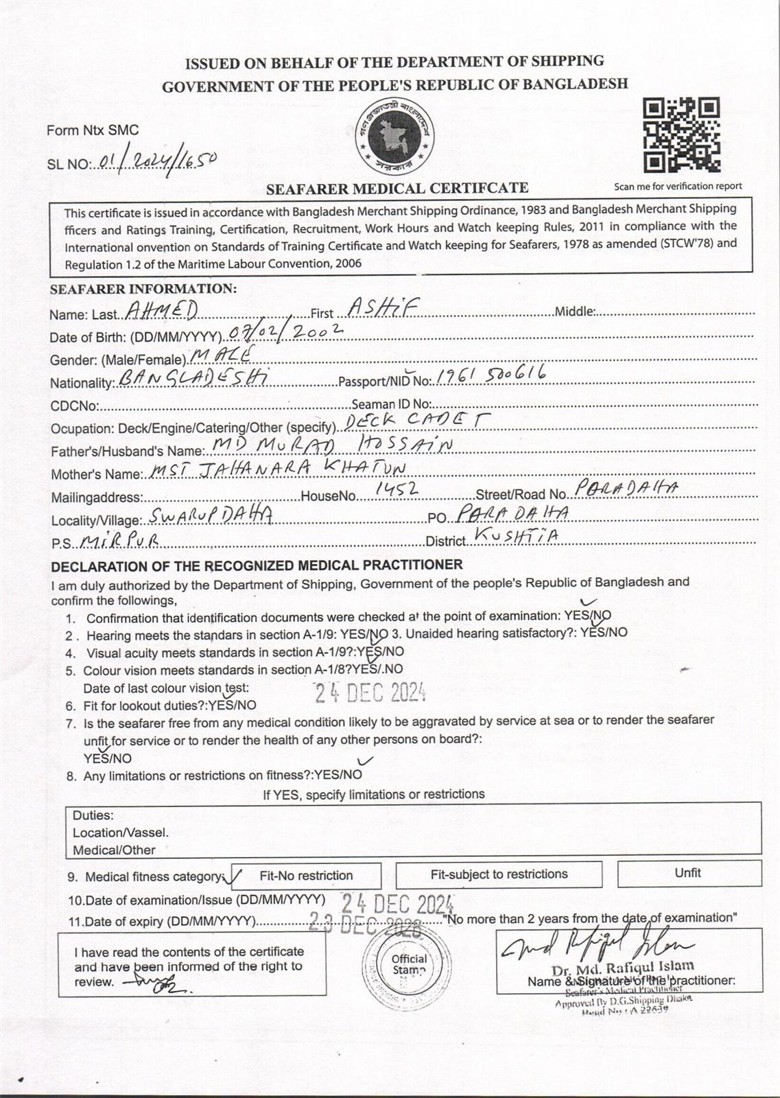 1.. SEAFARER MEDICAL CERTIFICATE