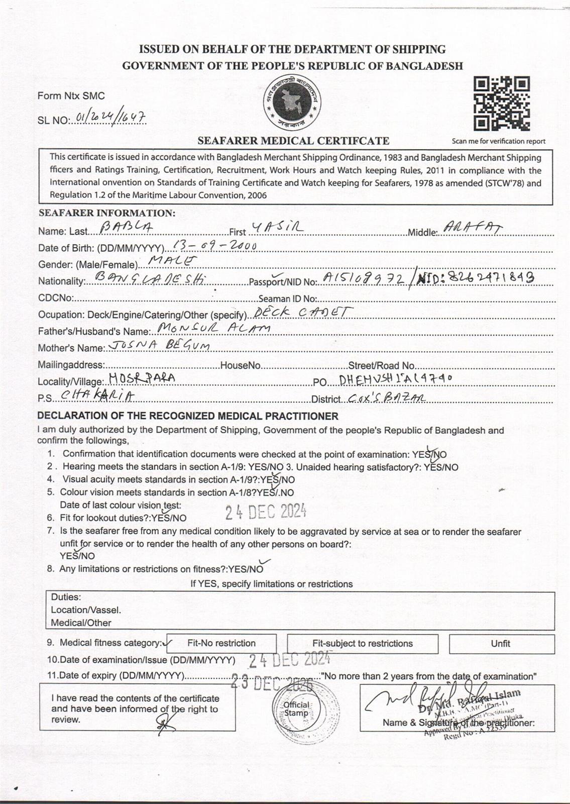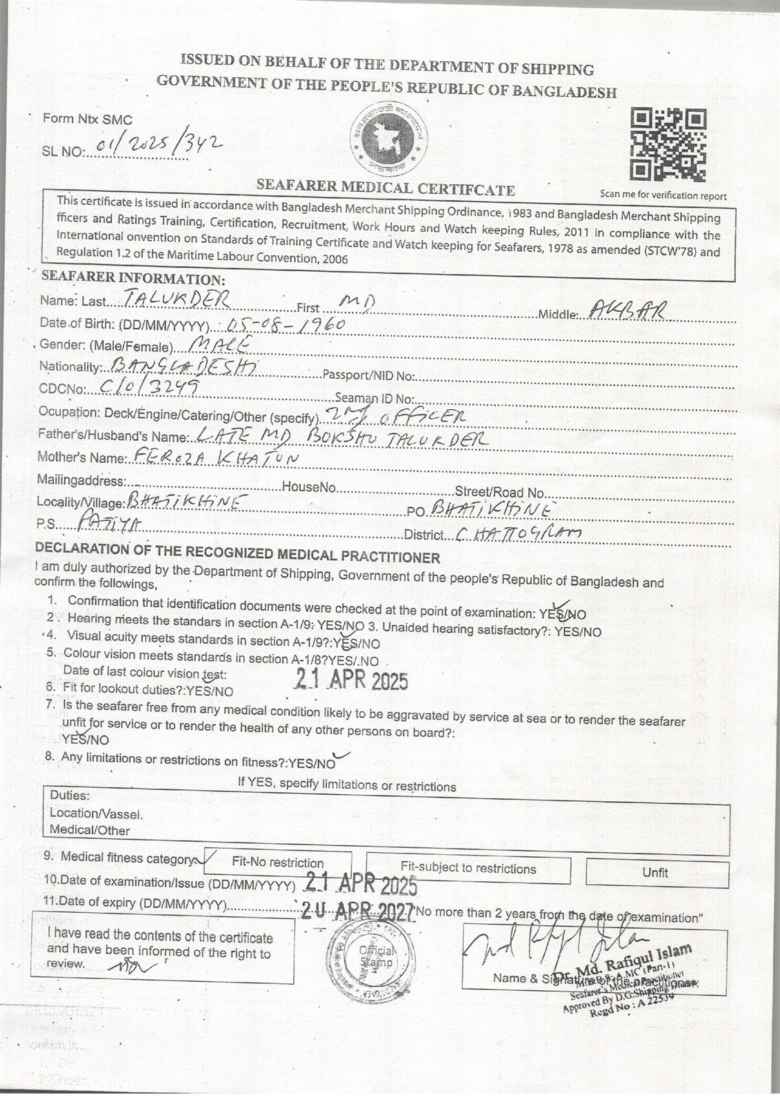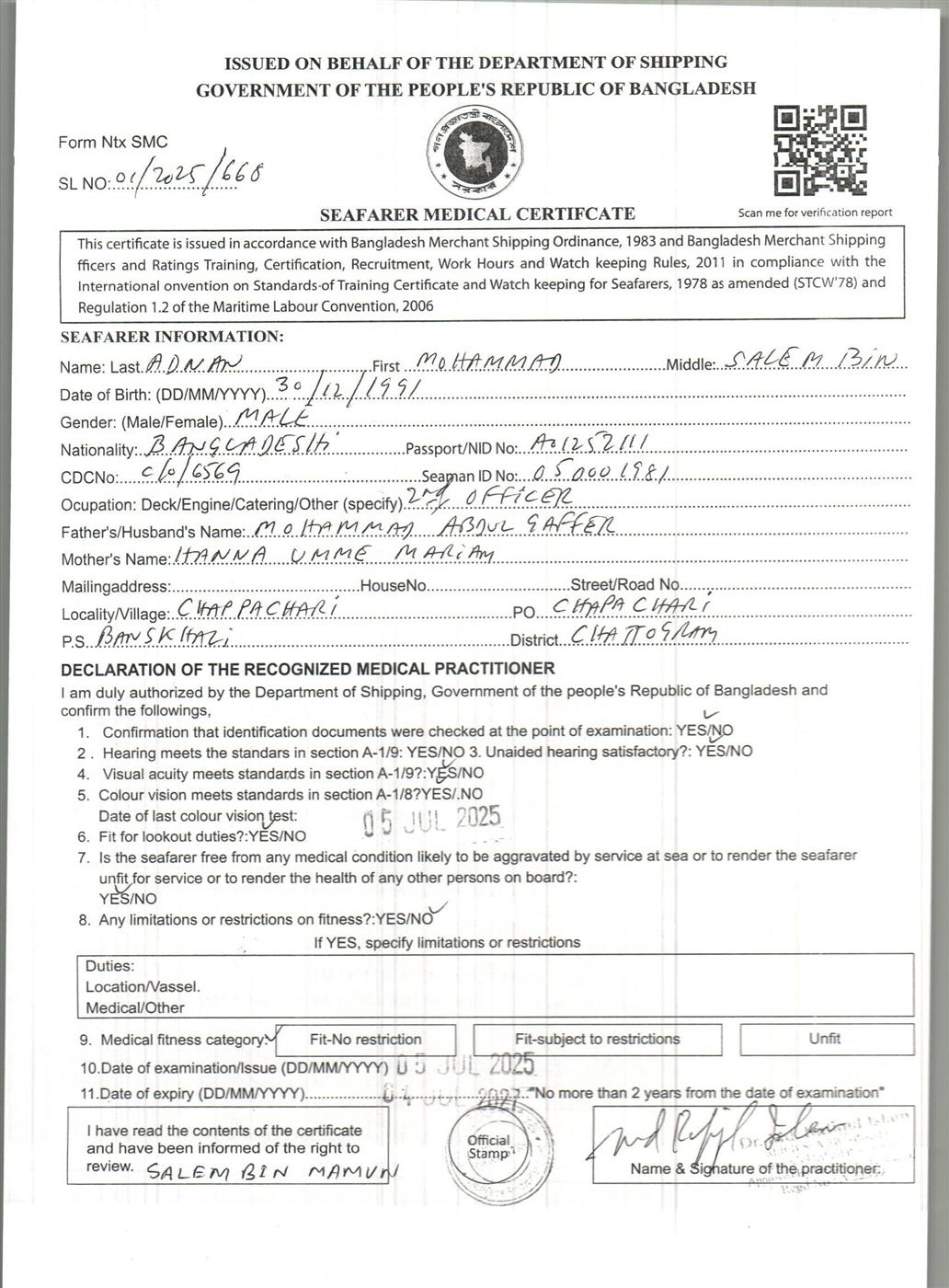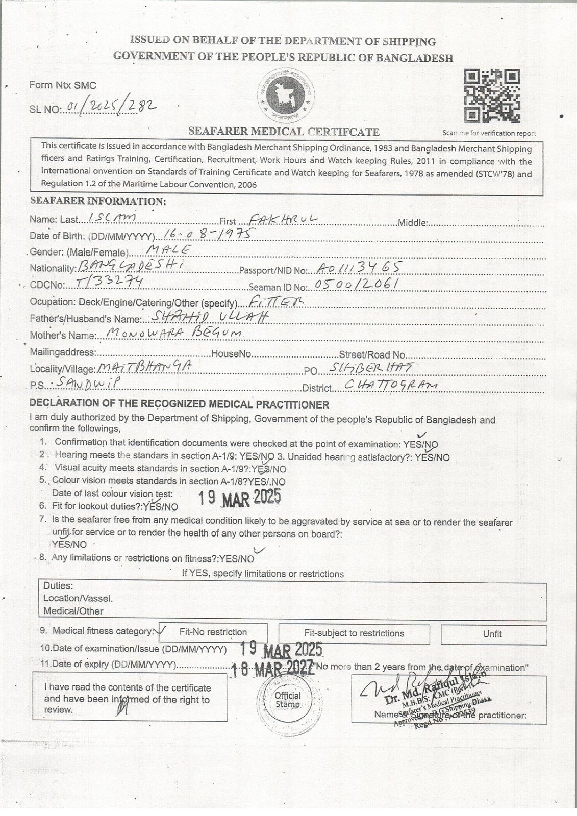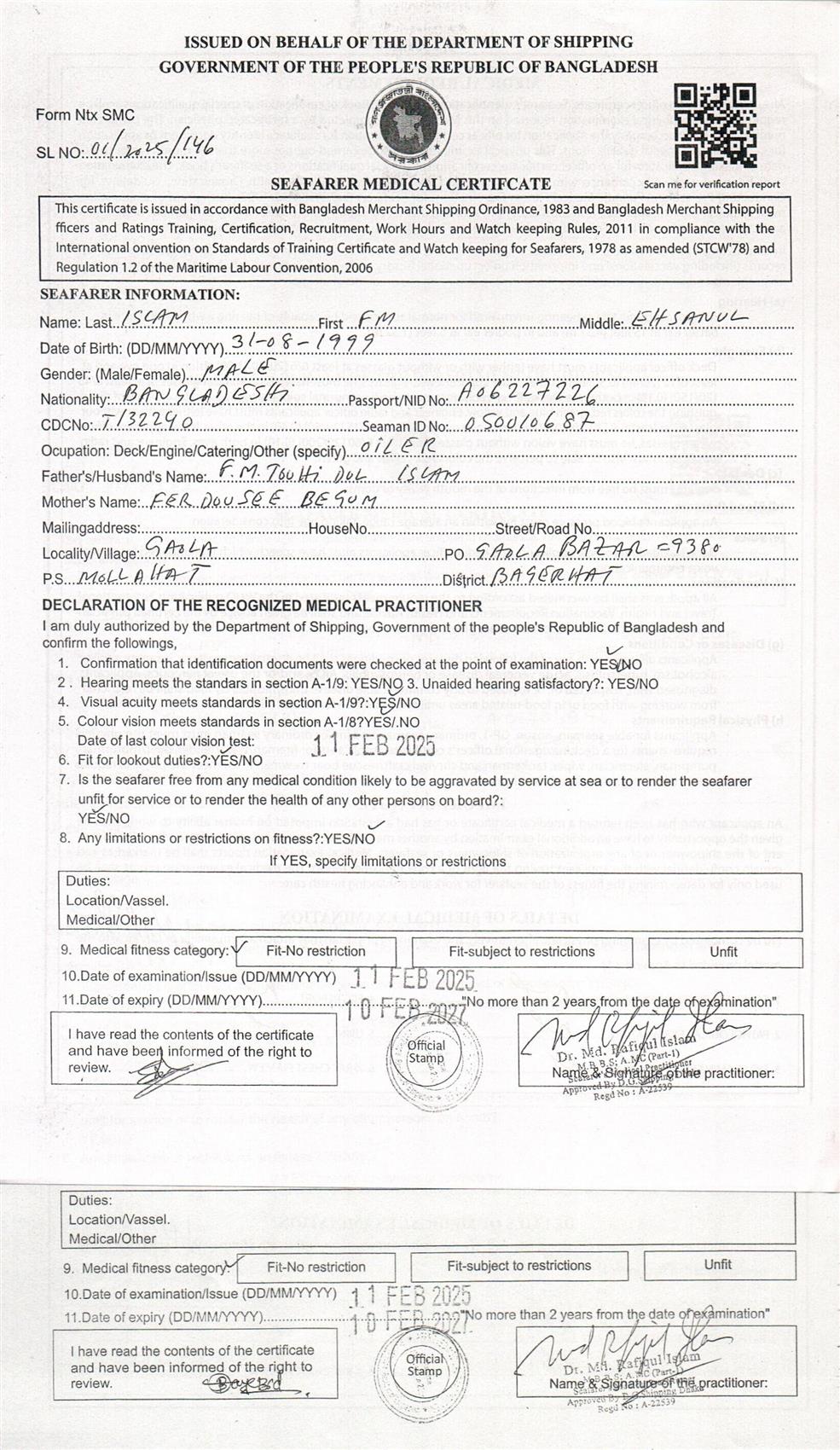 1.. SEAFARER MEDICAL CERTIFICATE