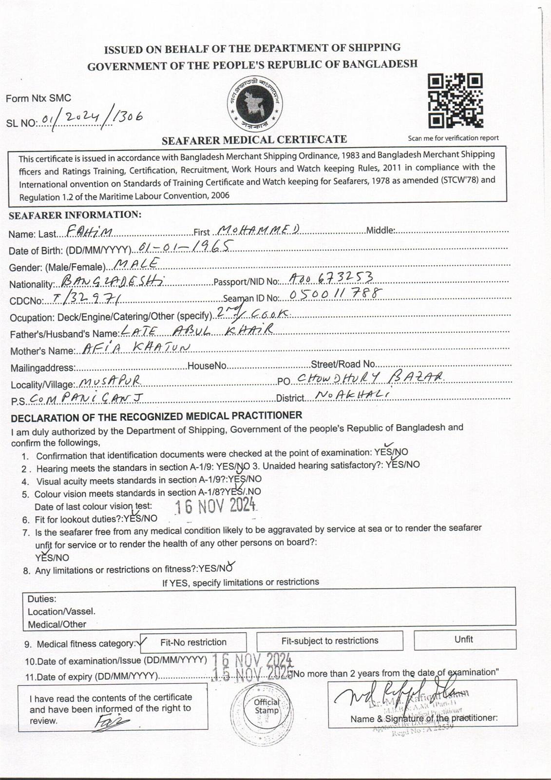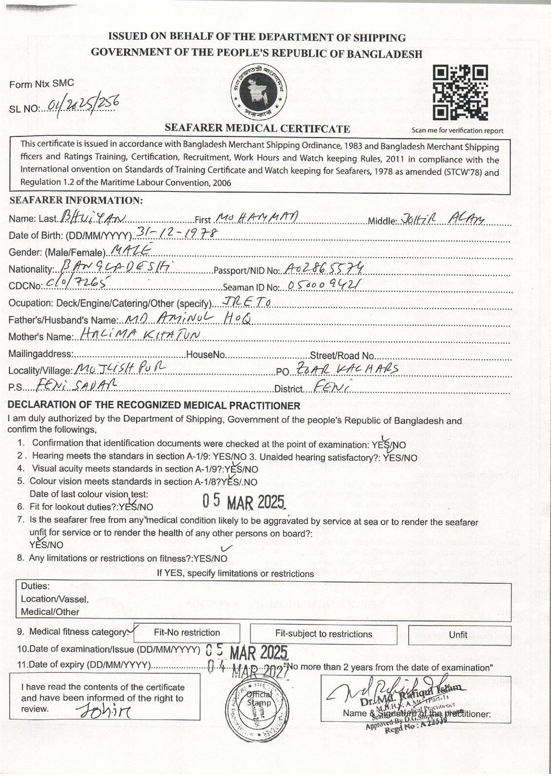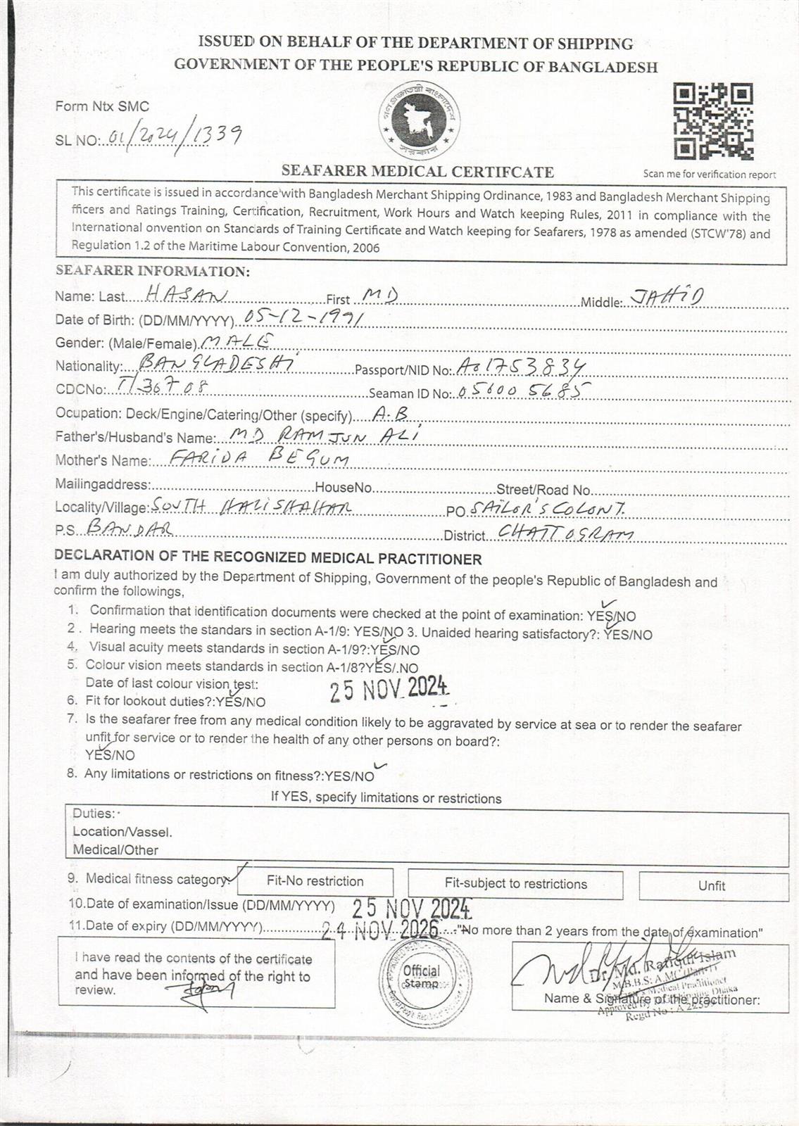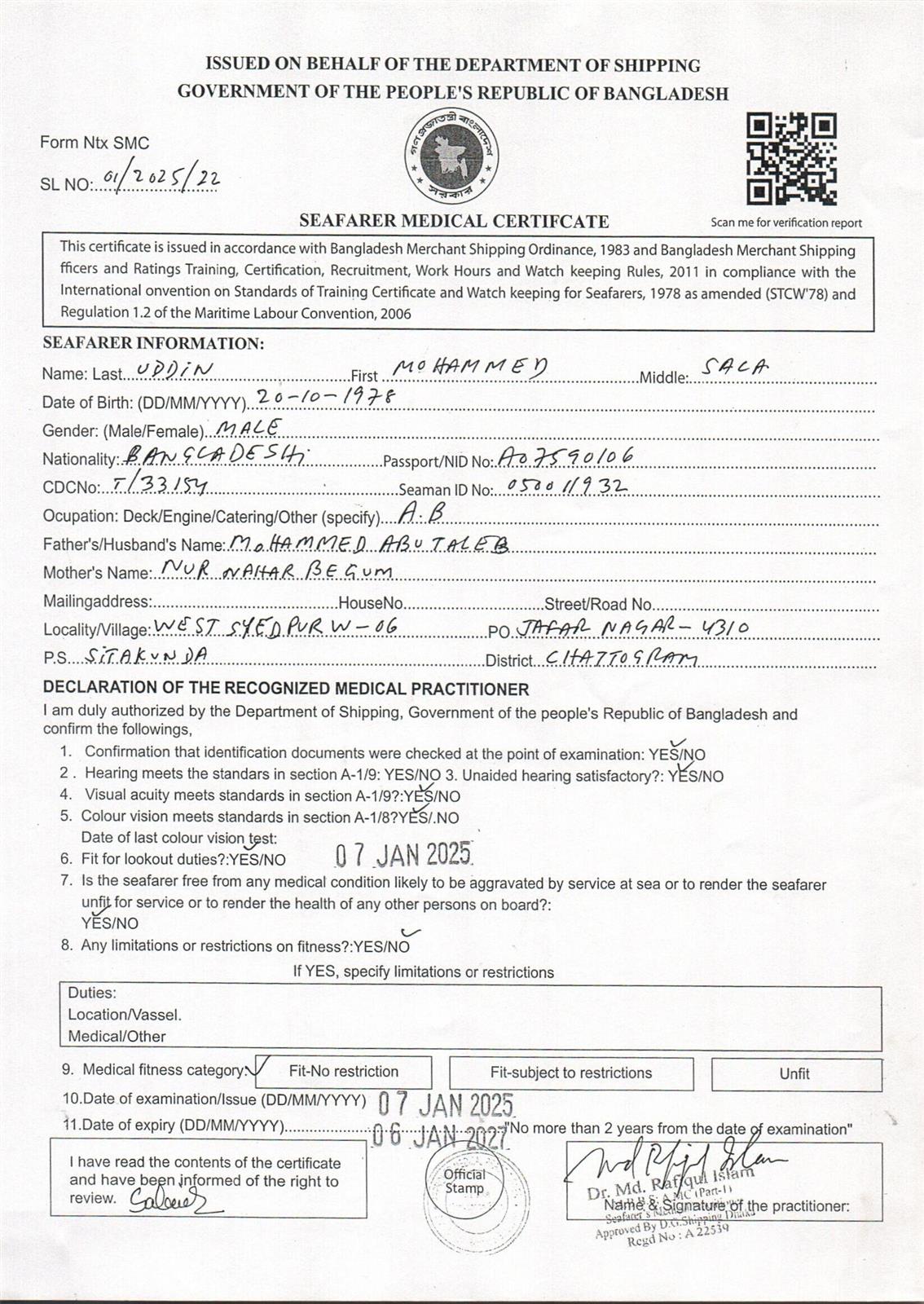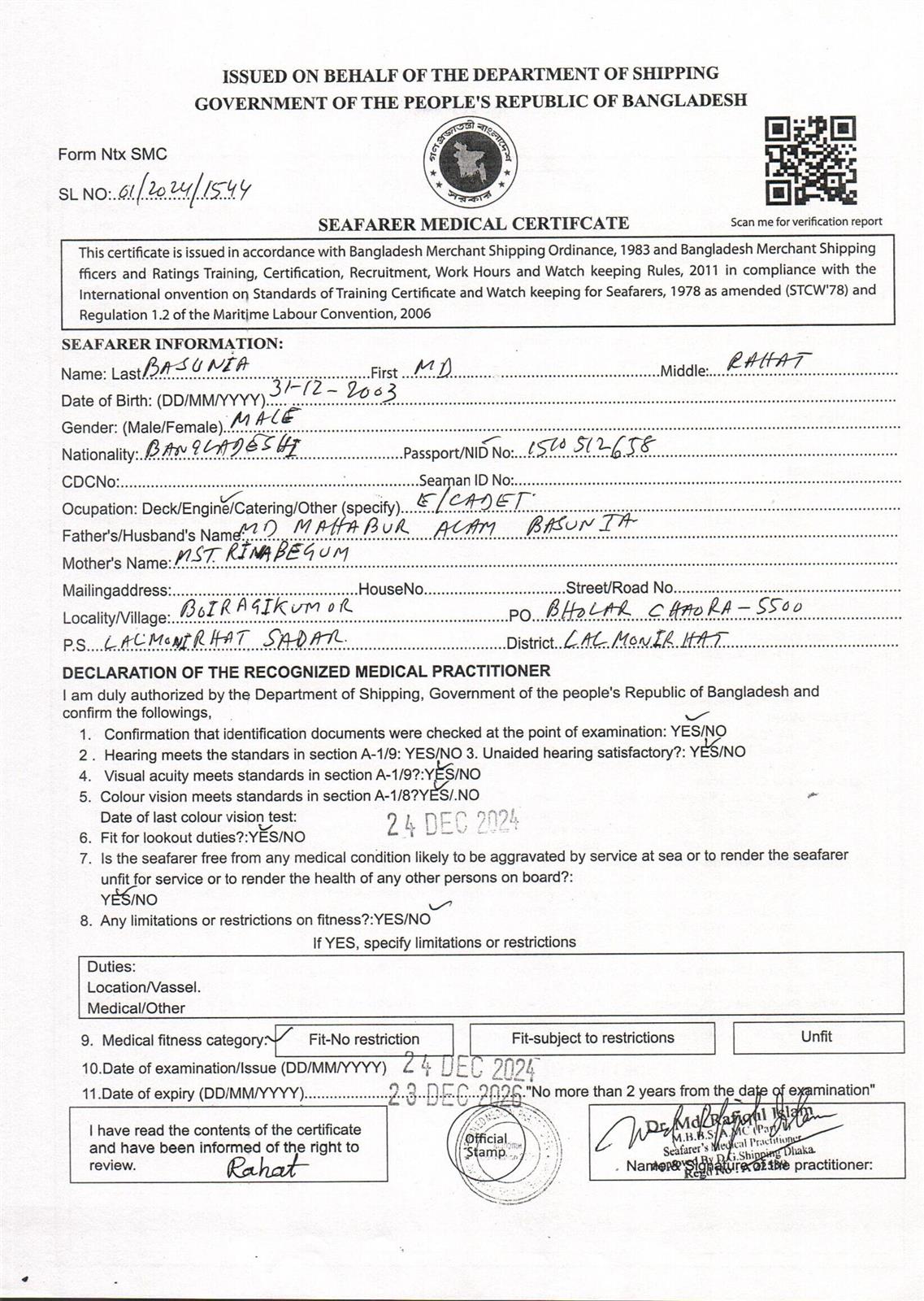 1.. SEAFARER MEDICAL CERTIFICATE