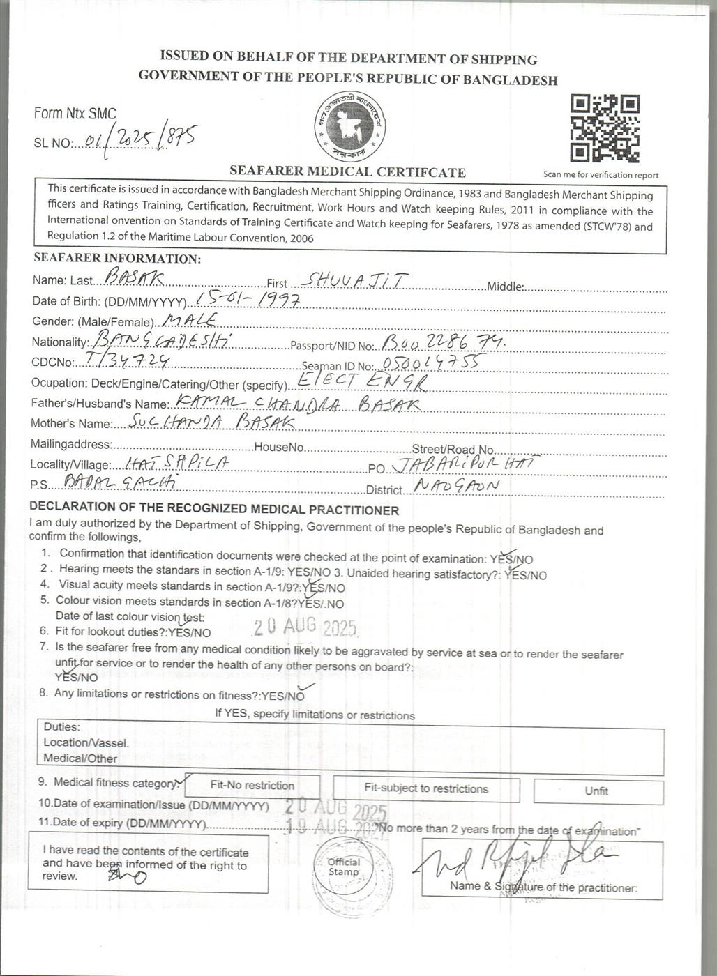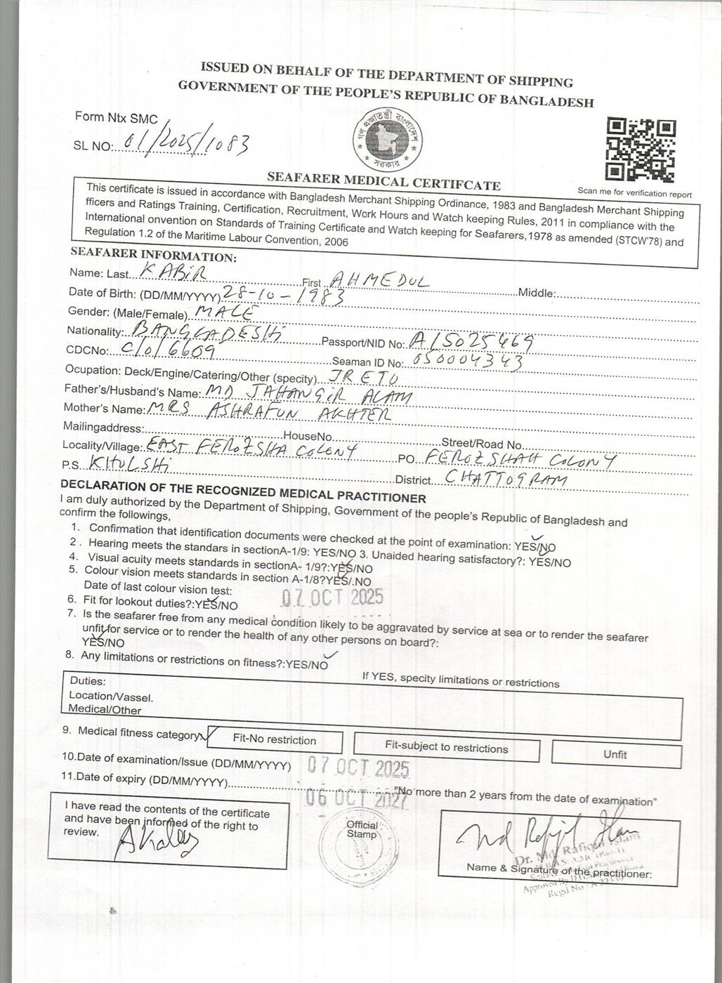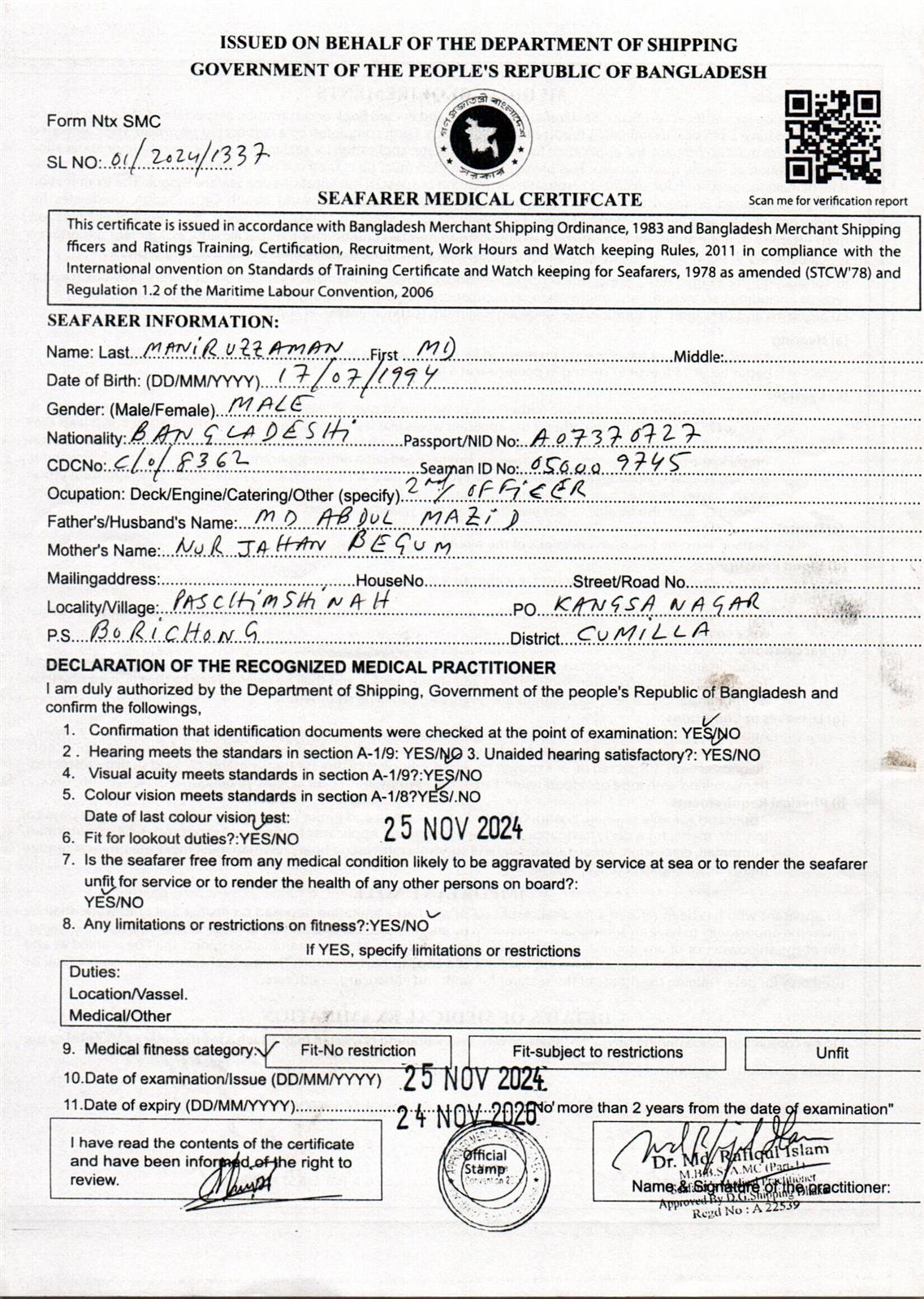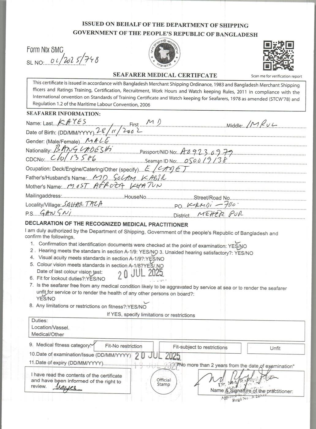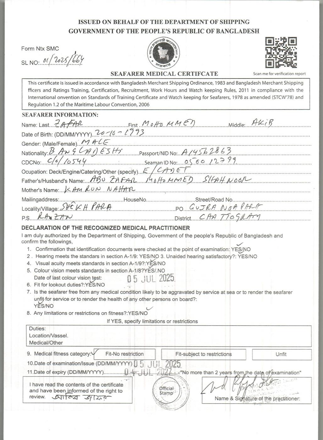 1.. SEAFARER MEDICAL CERTIFICATE