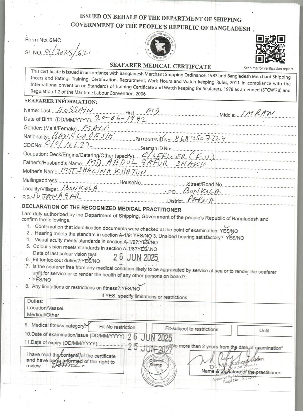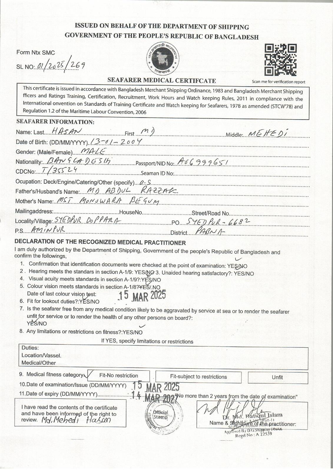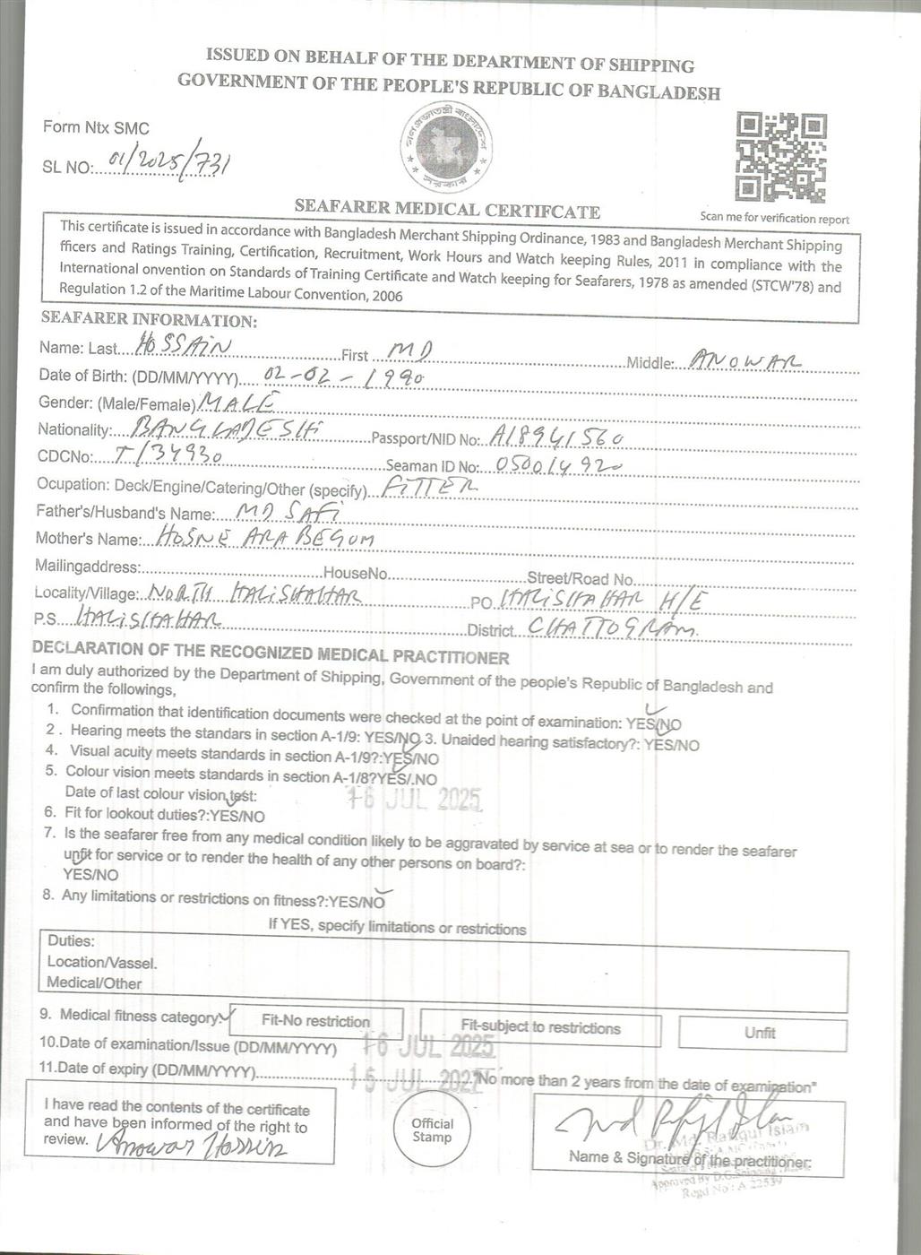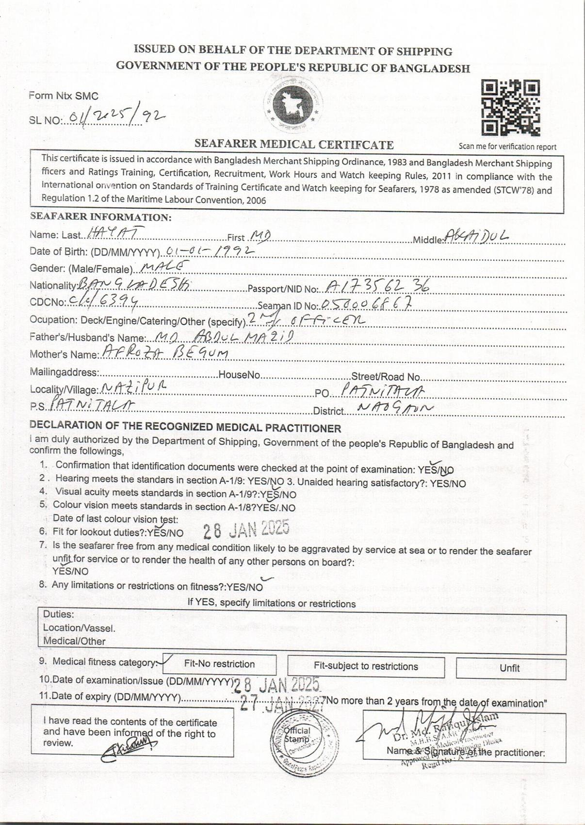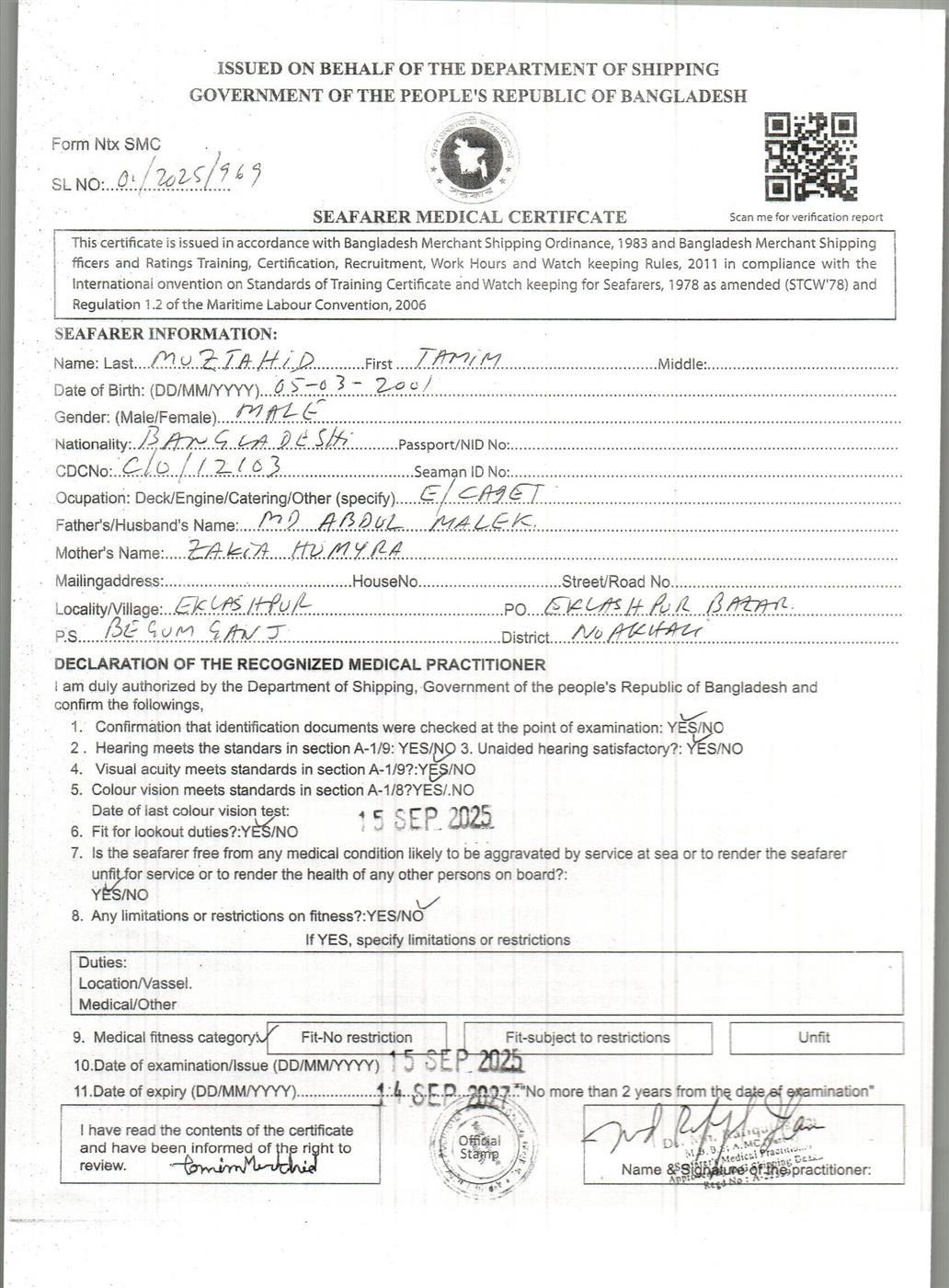 1.. SEAFARER MEDICAL CERTIFICATE