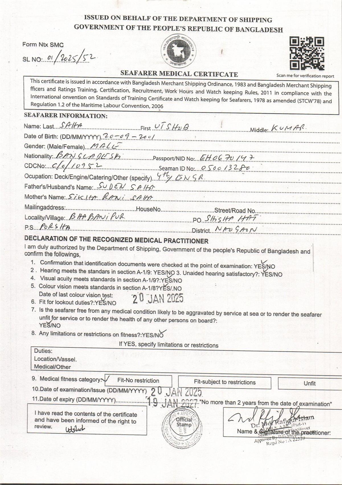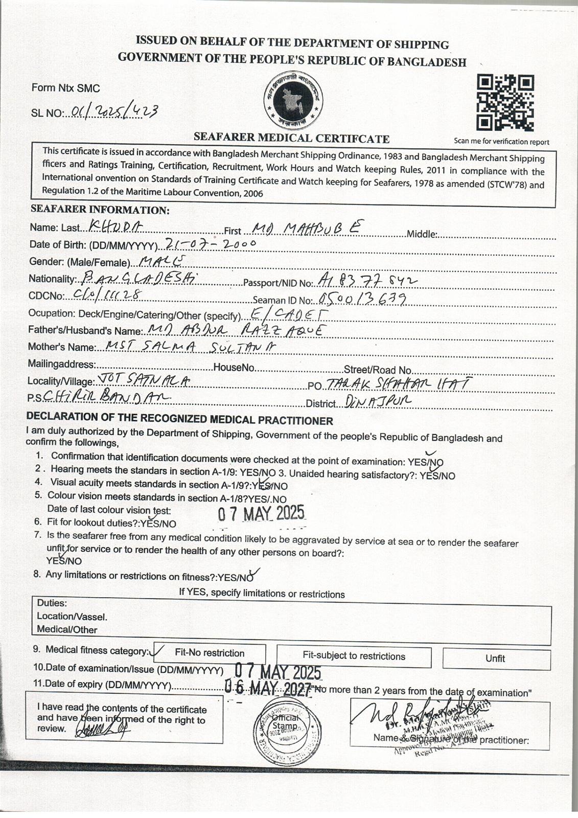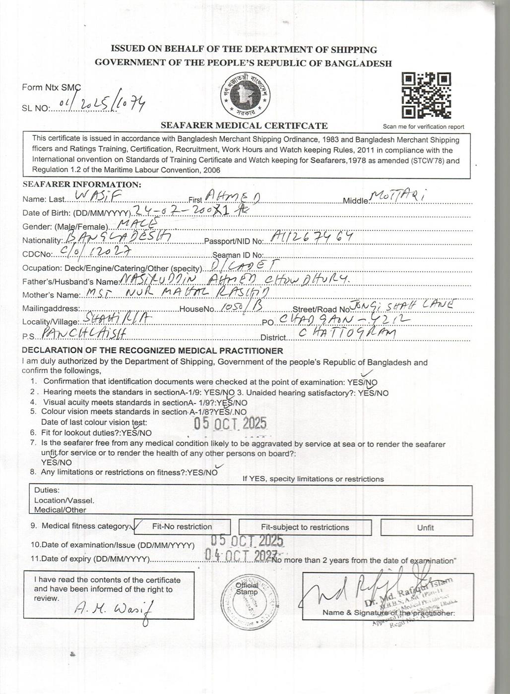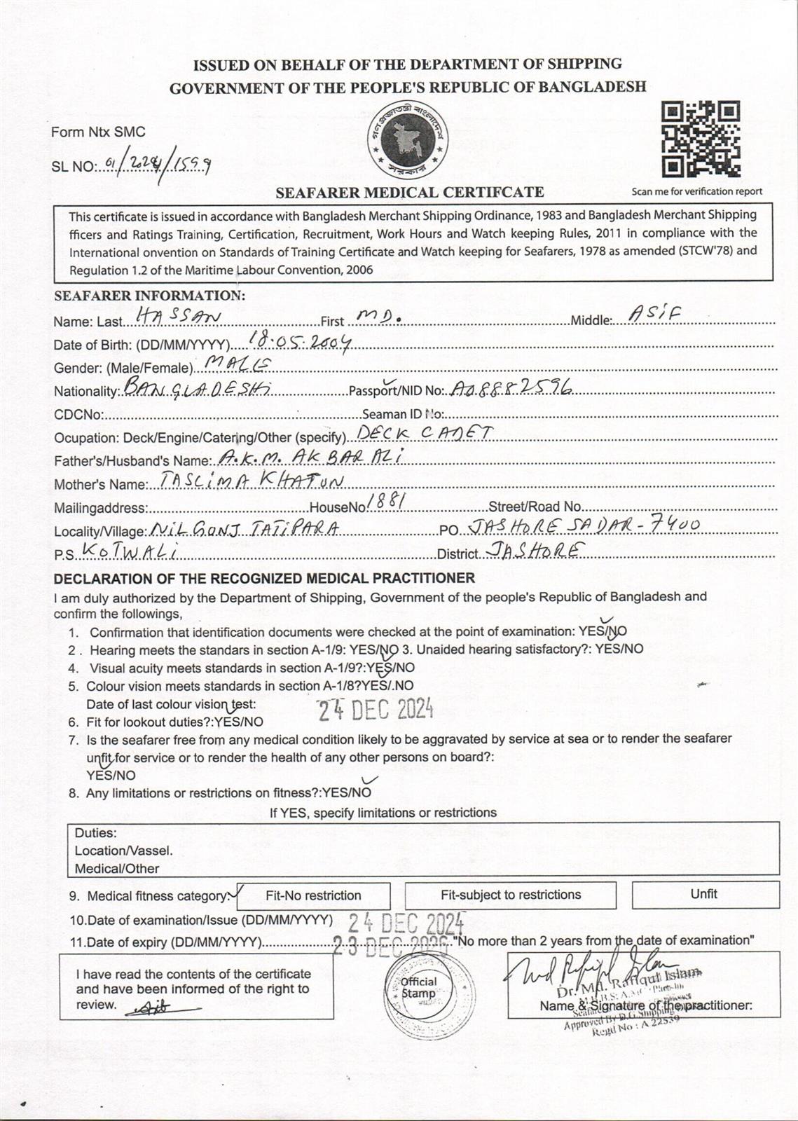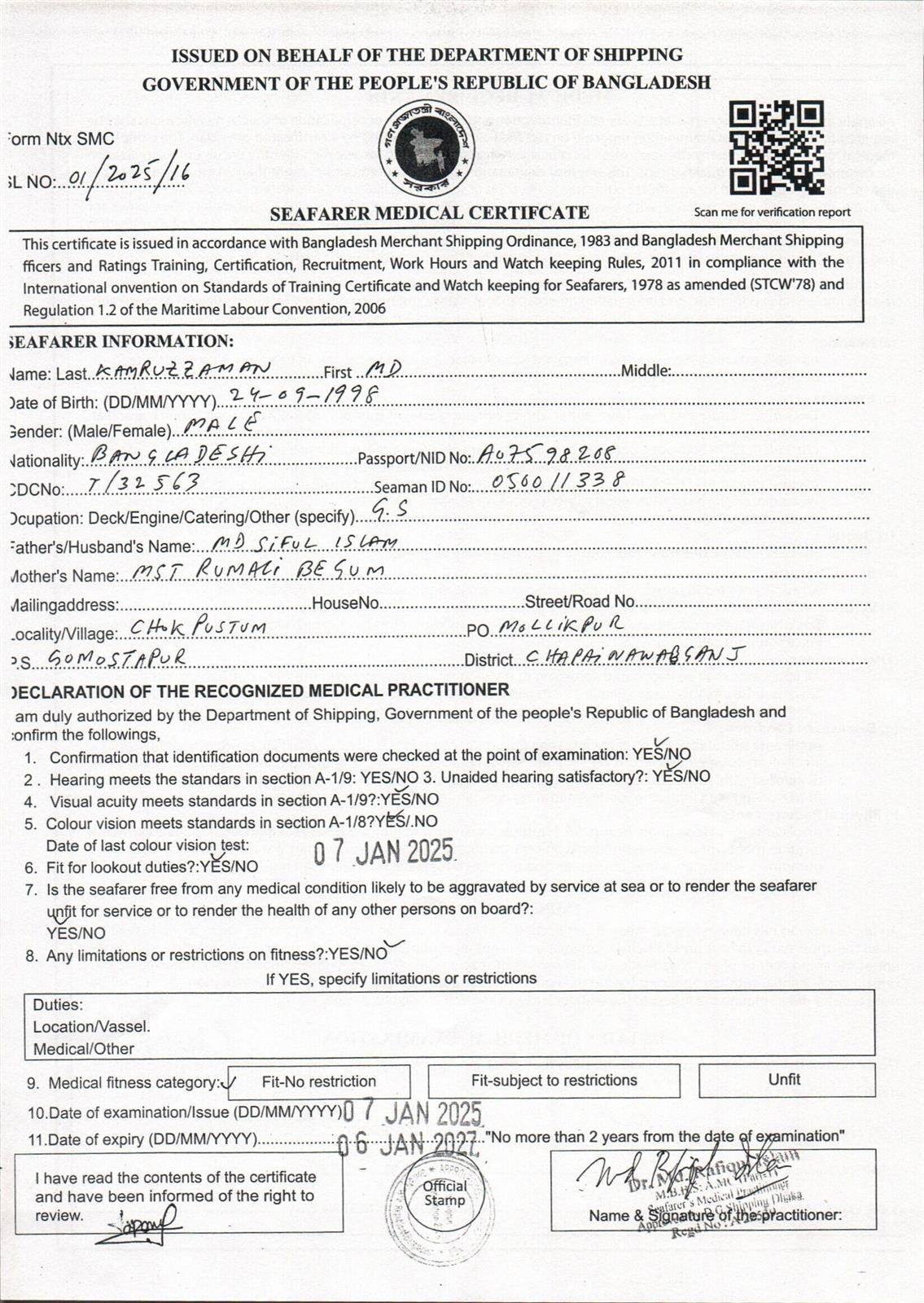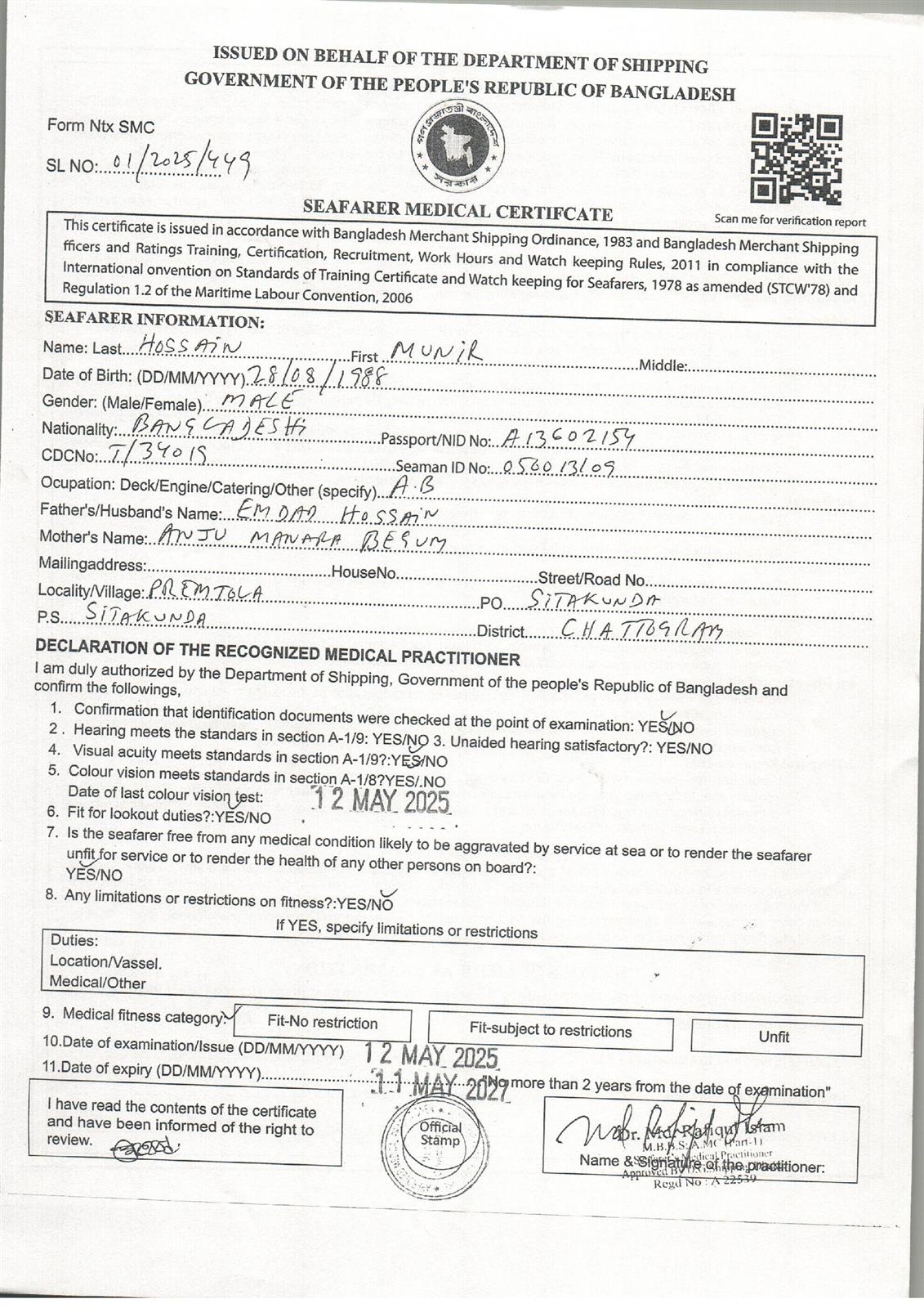 1.. SEAFARER MEDICAL CERTIFICATE