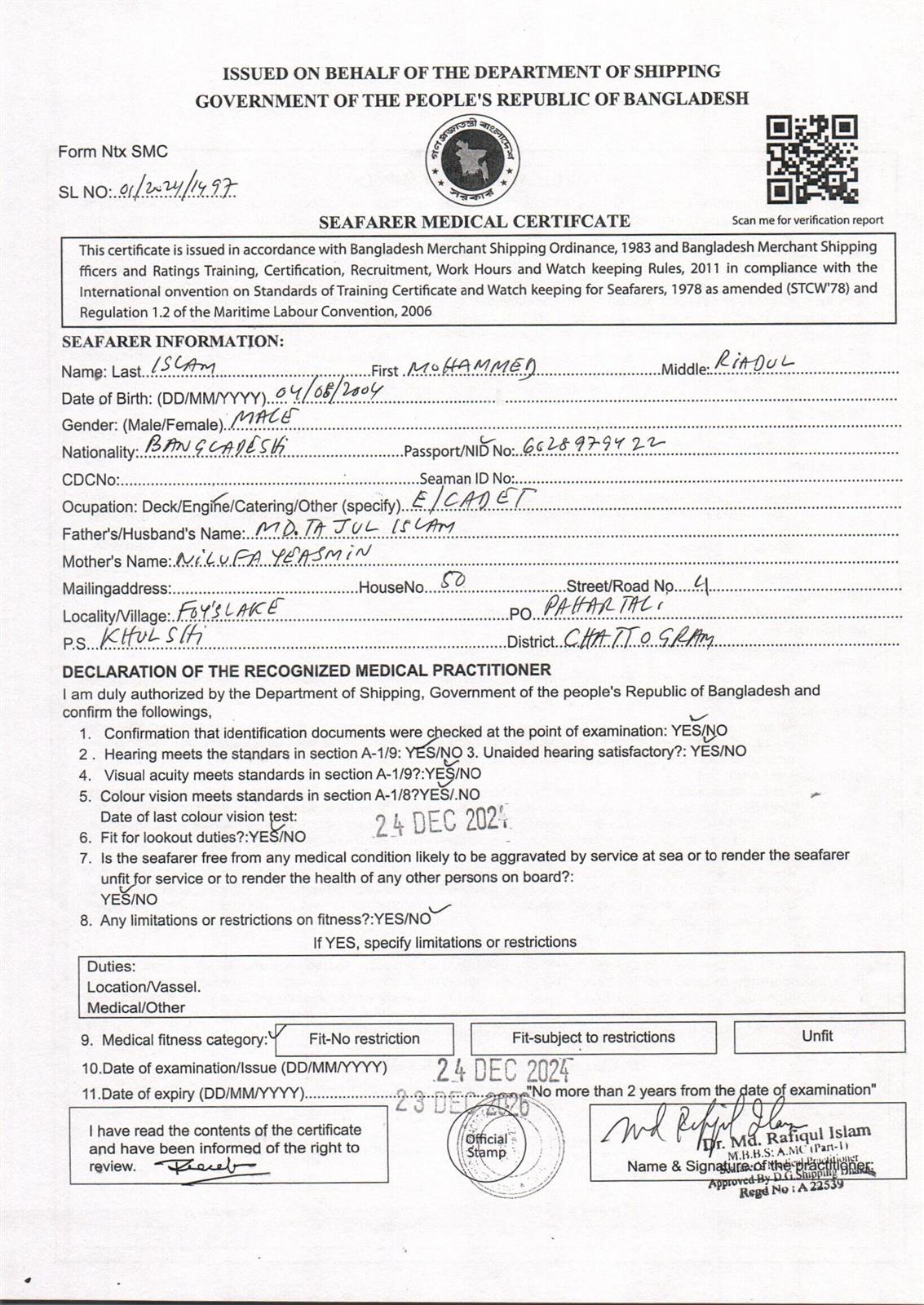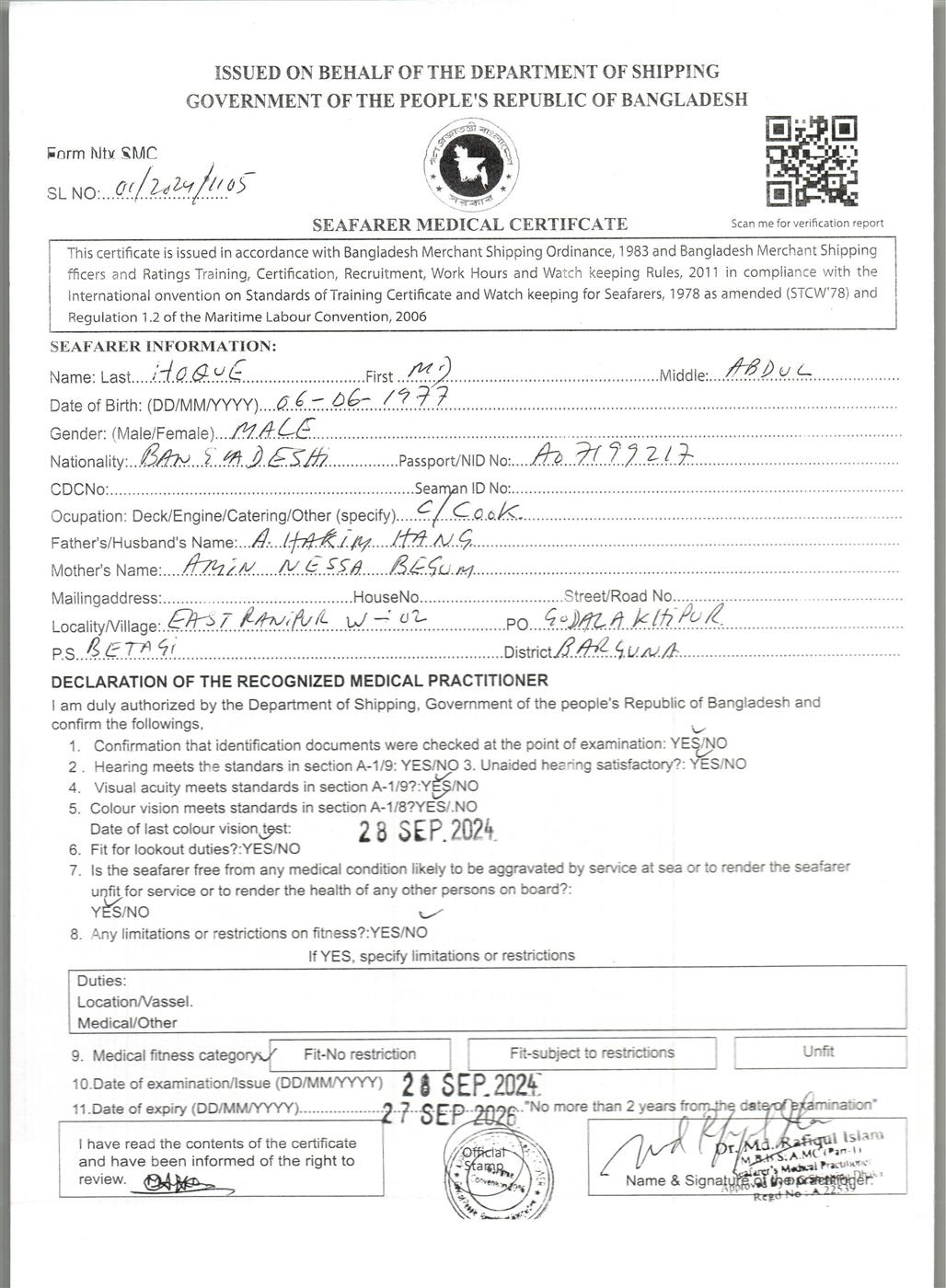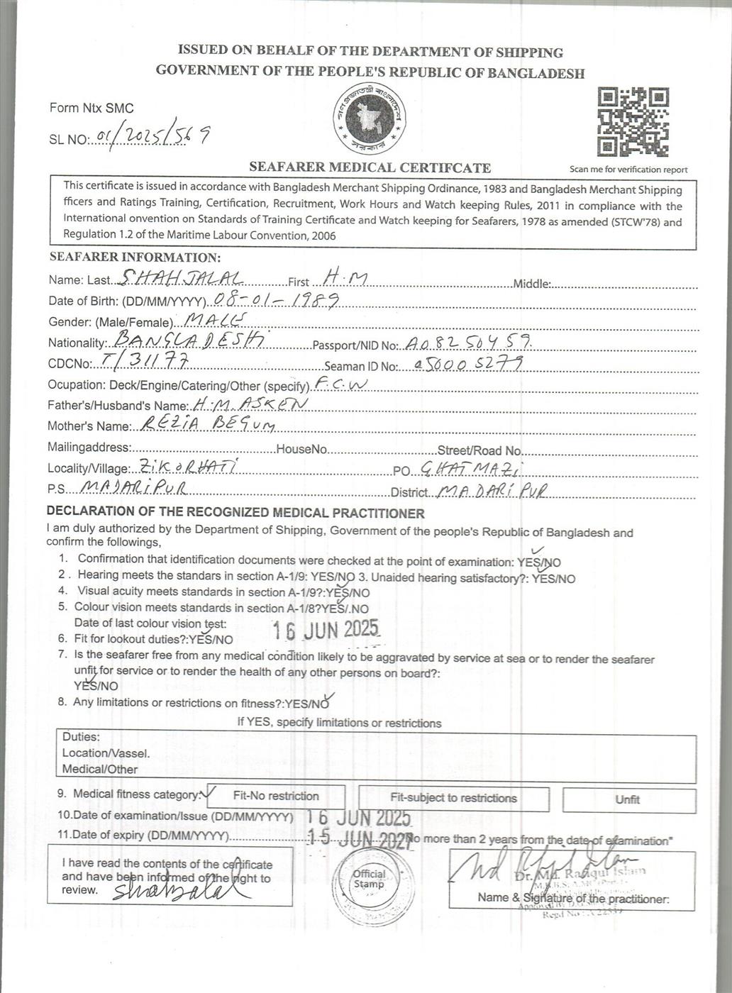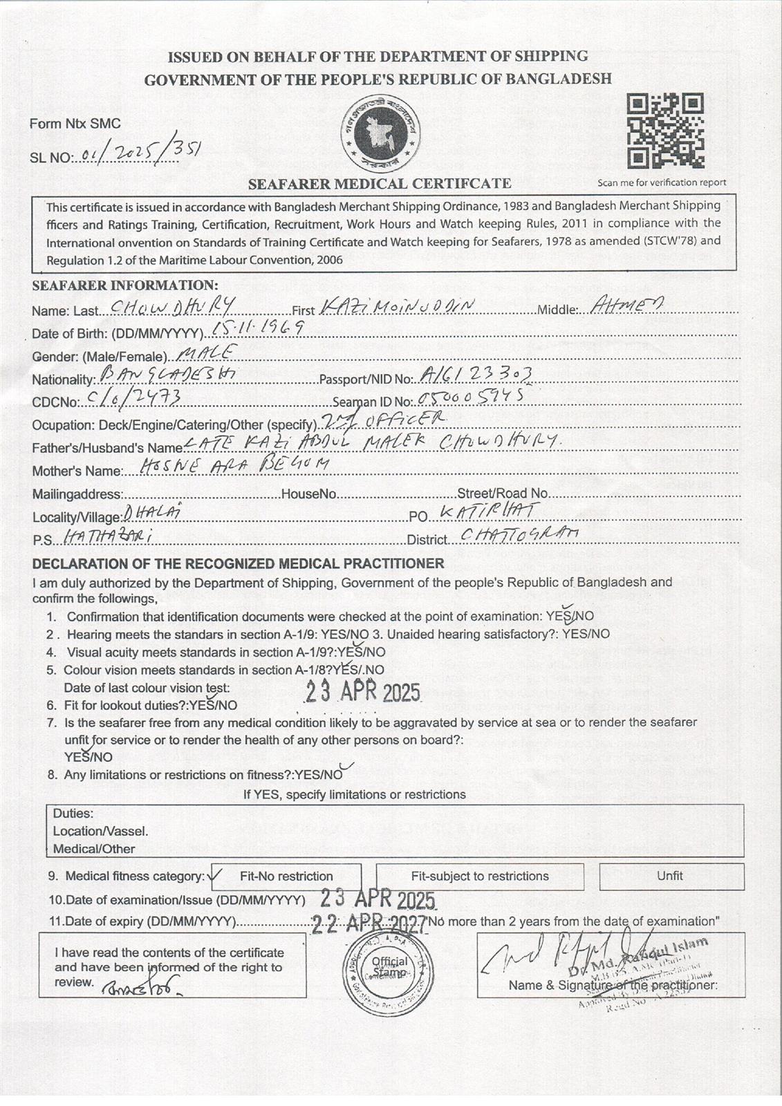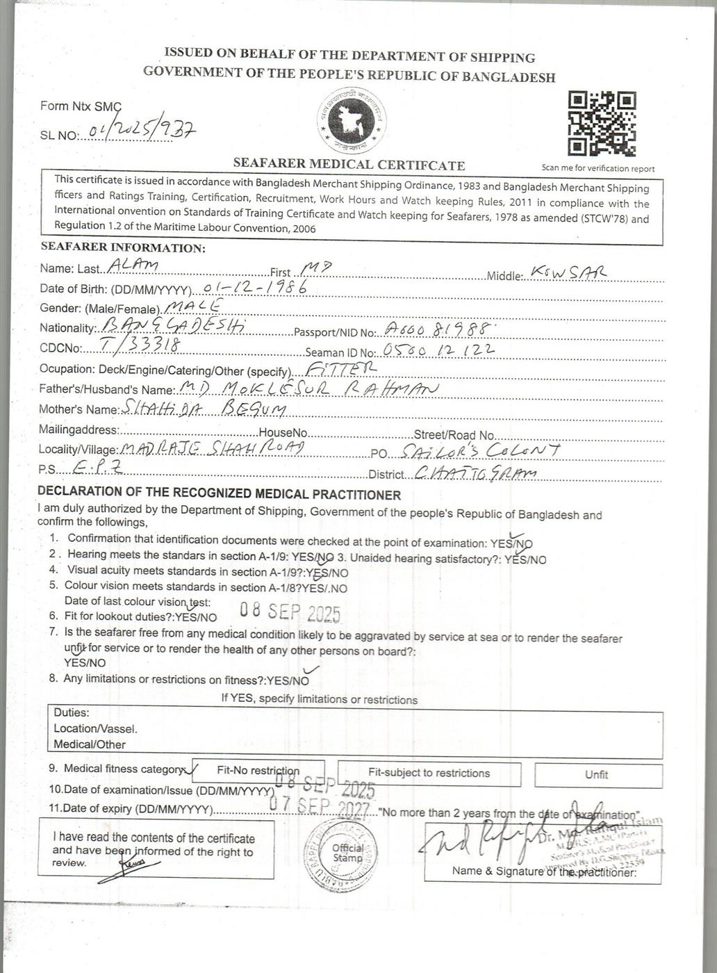 1.. SEAFARER MEDICAL CERTIFICATE