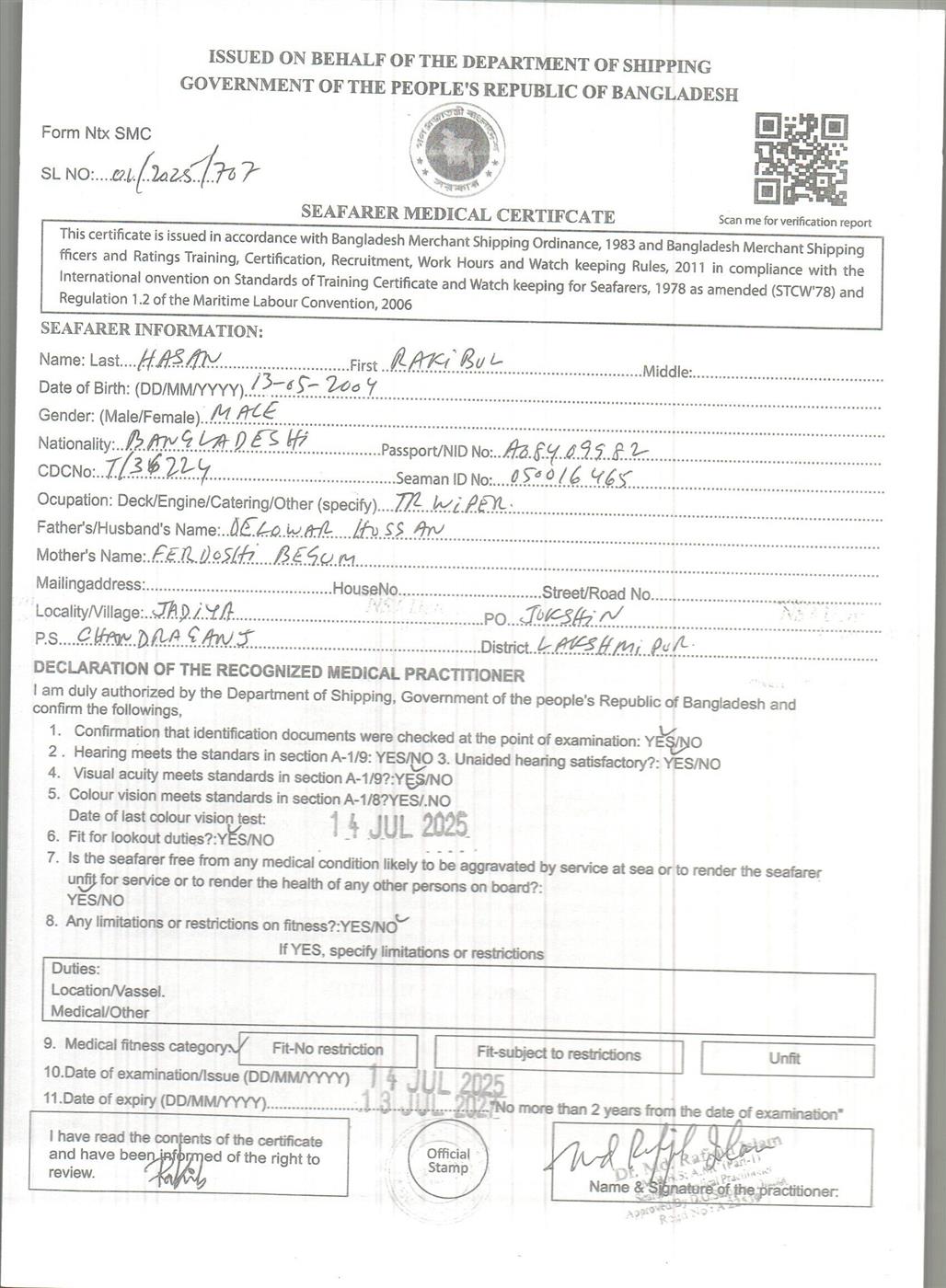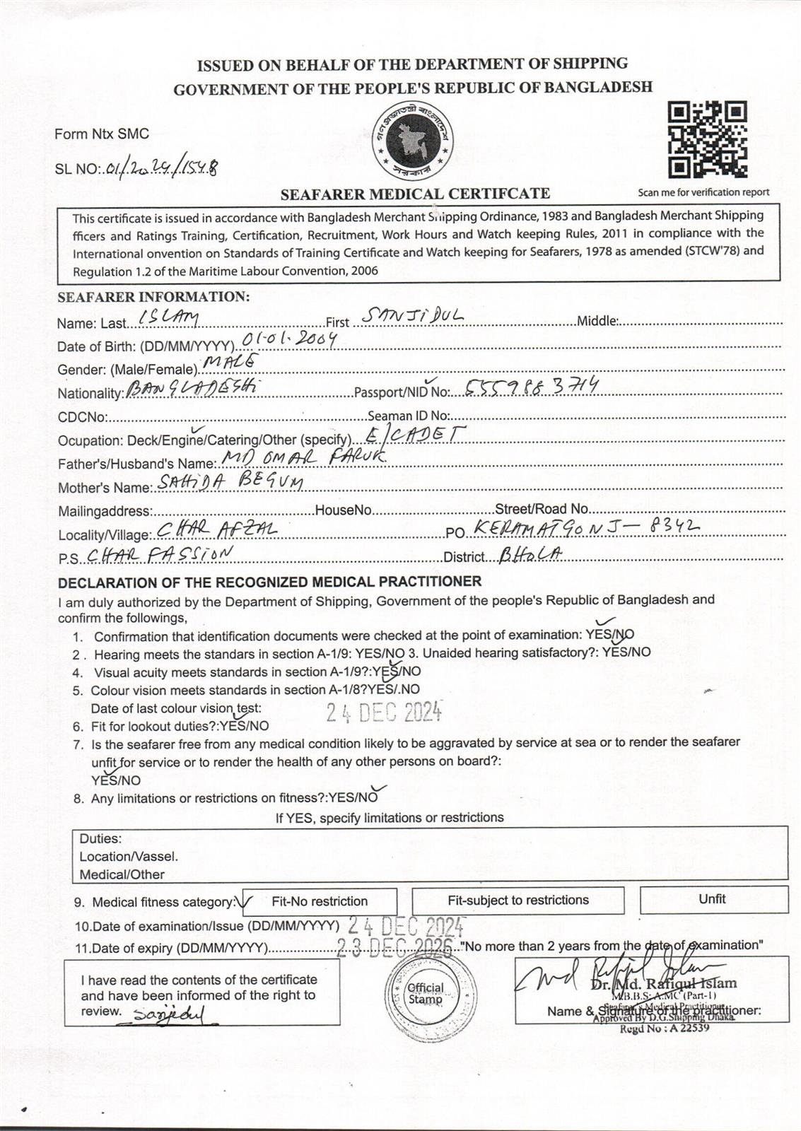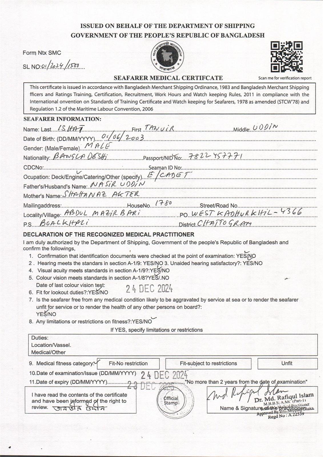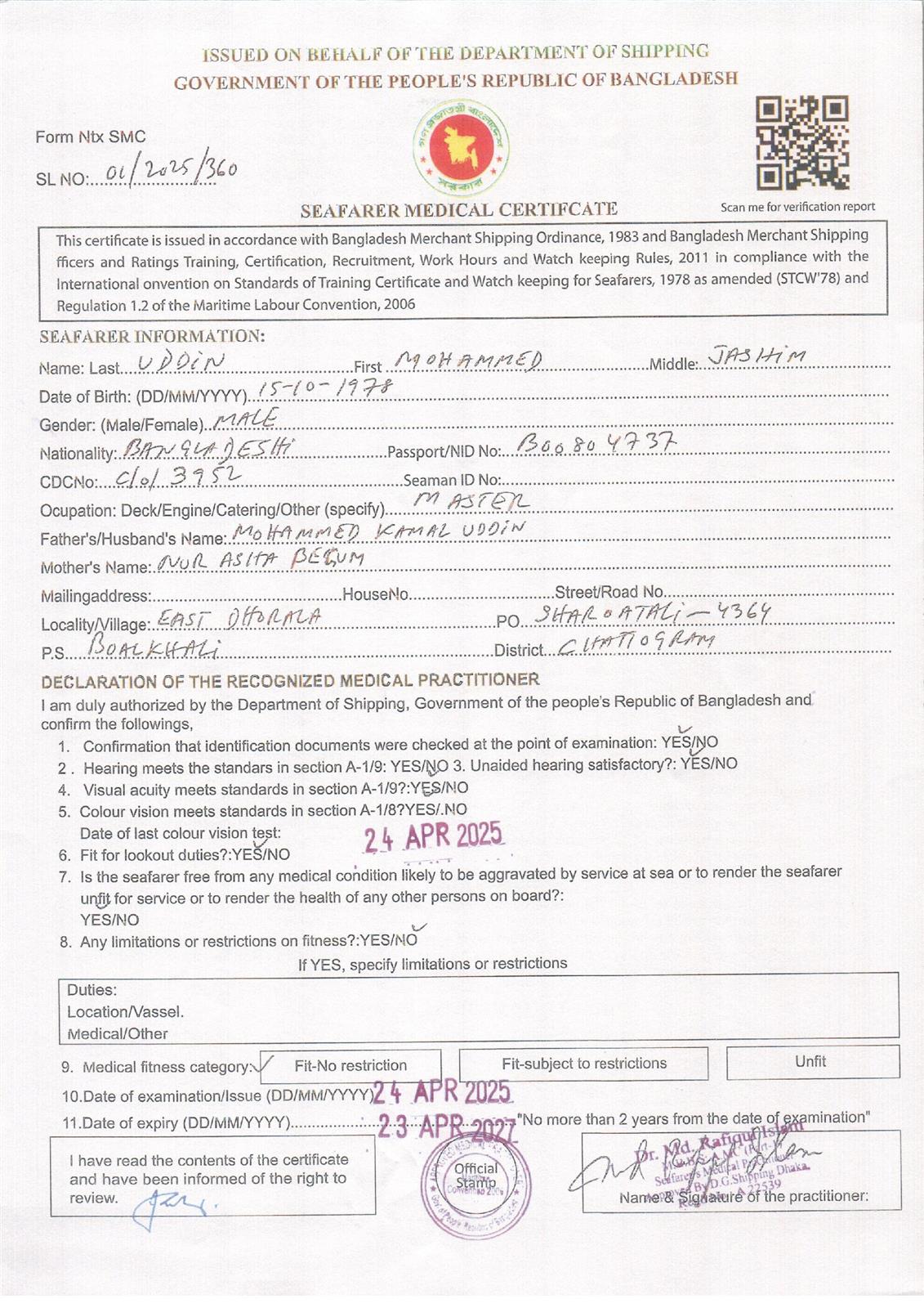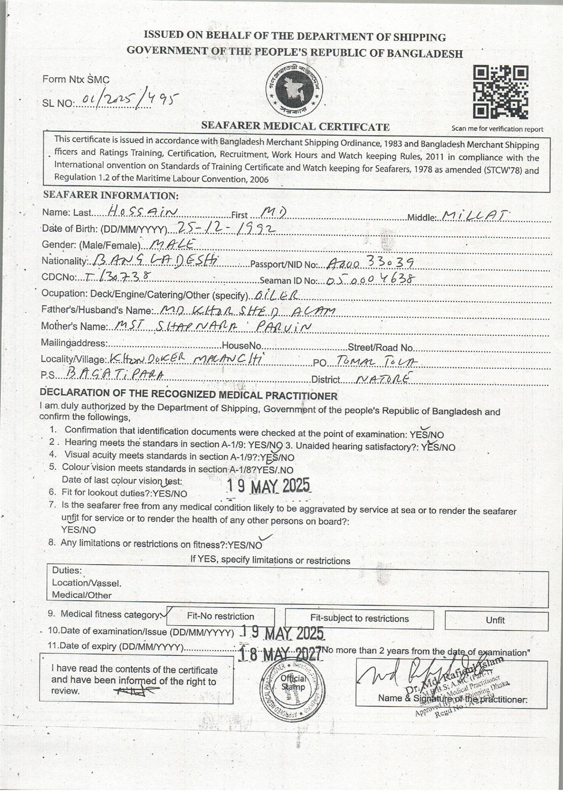 1.. SEAFARER MEDICAL CERTIFICATE