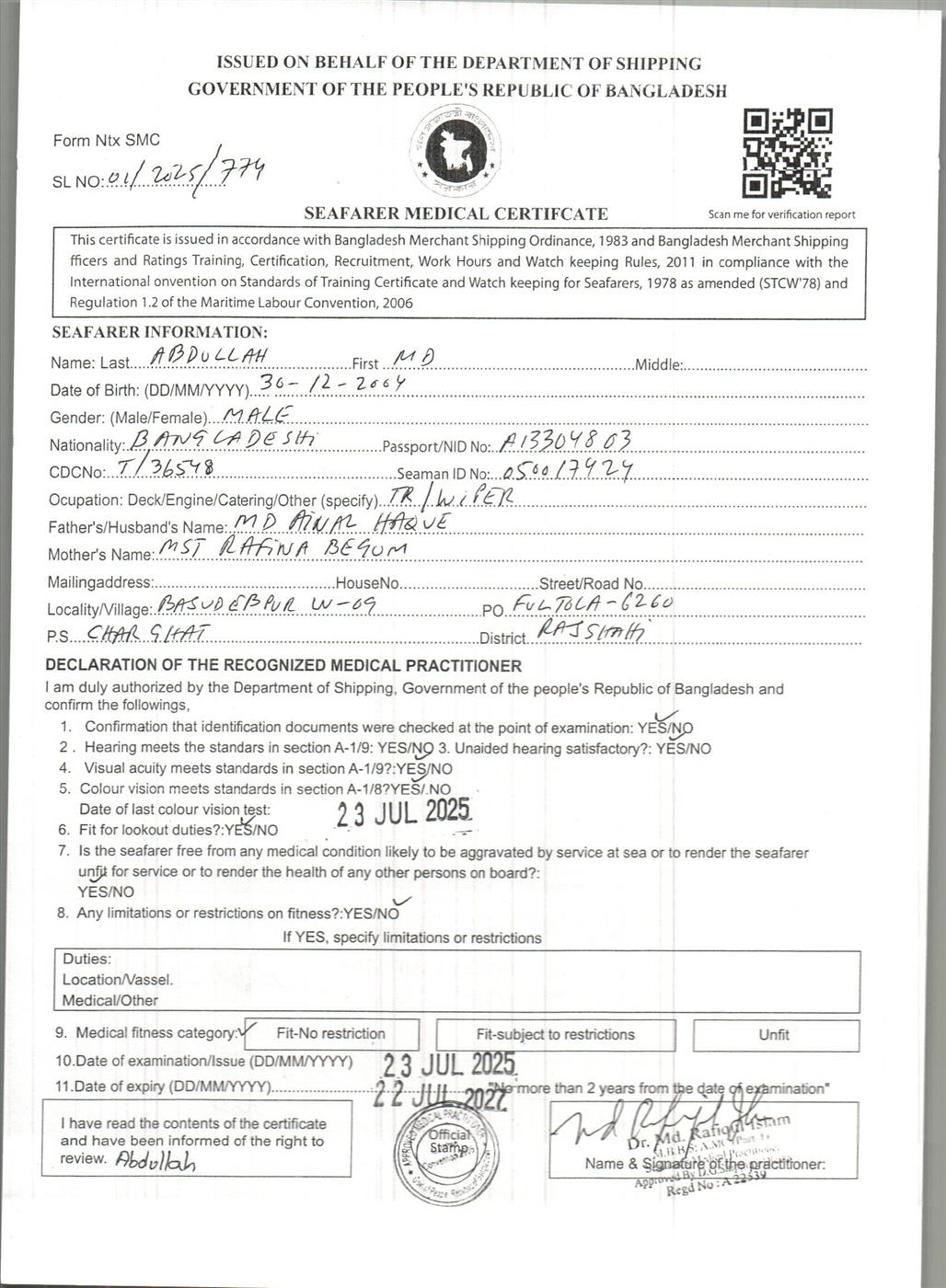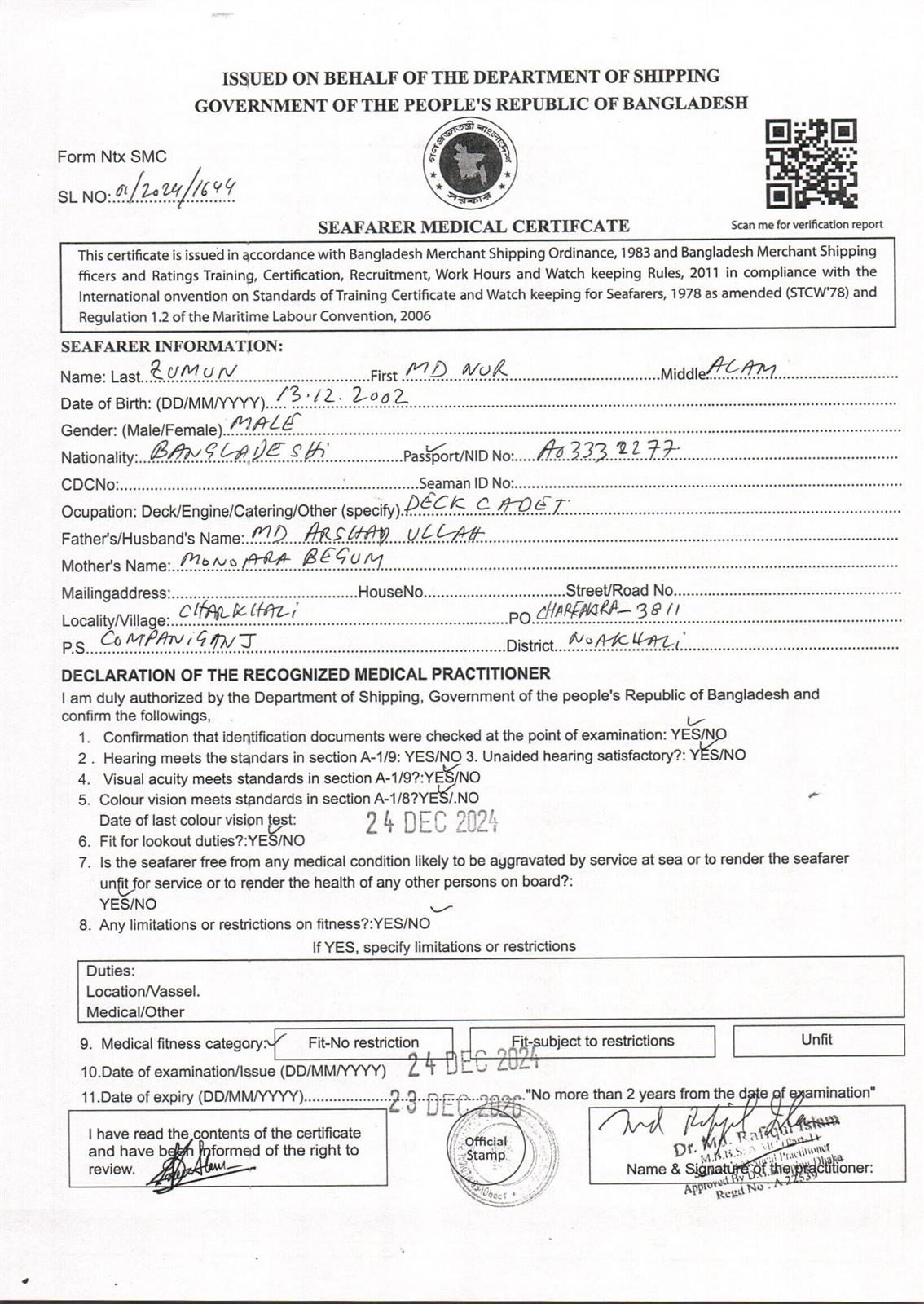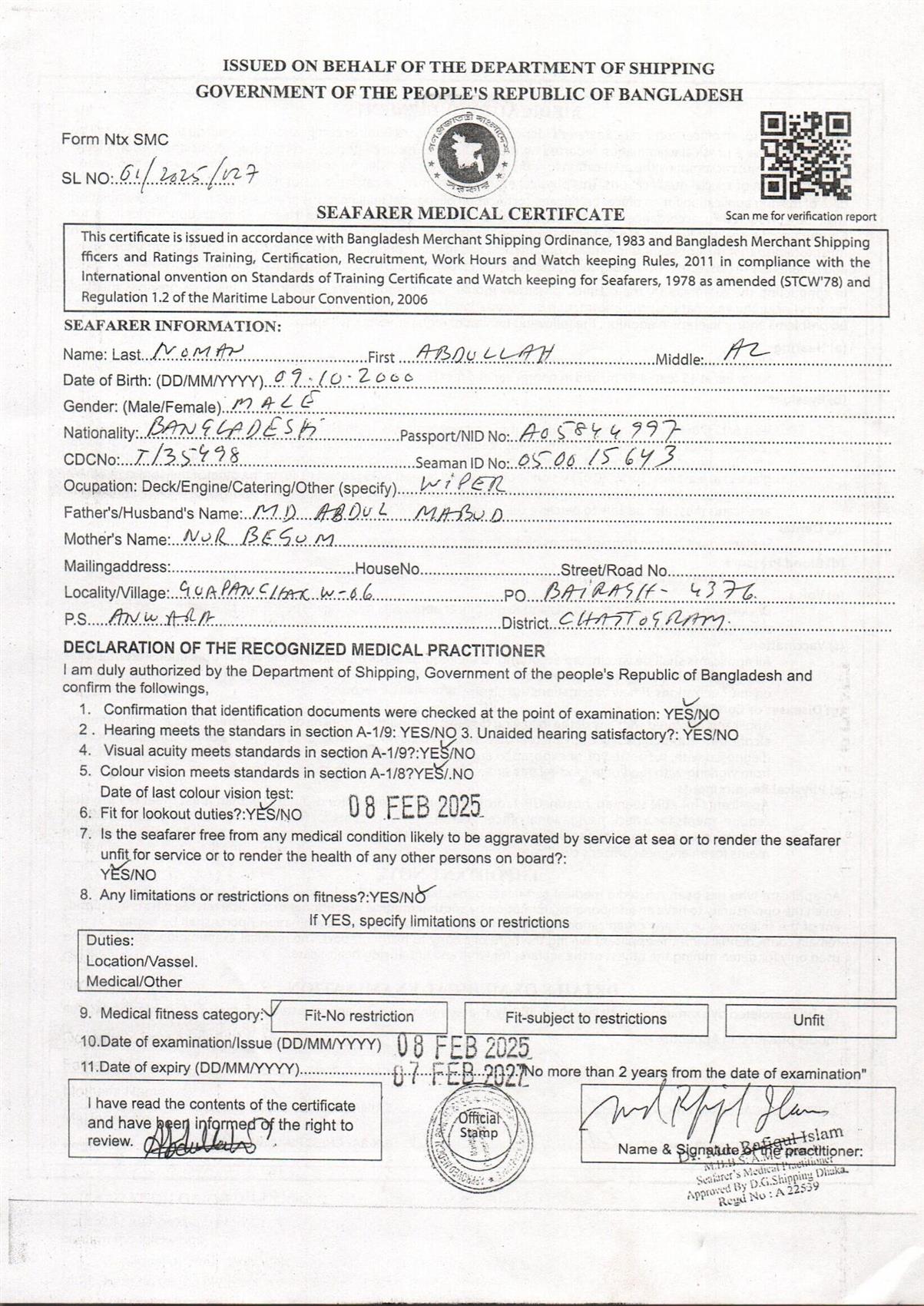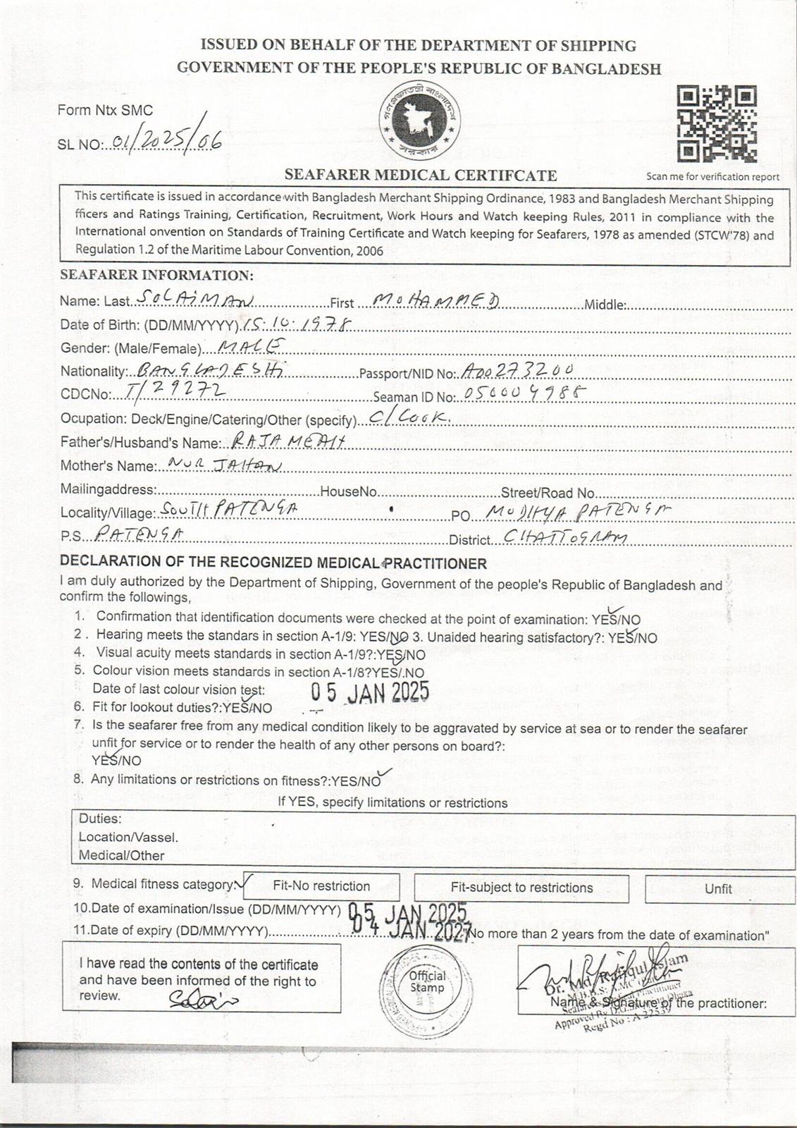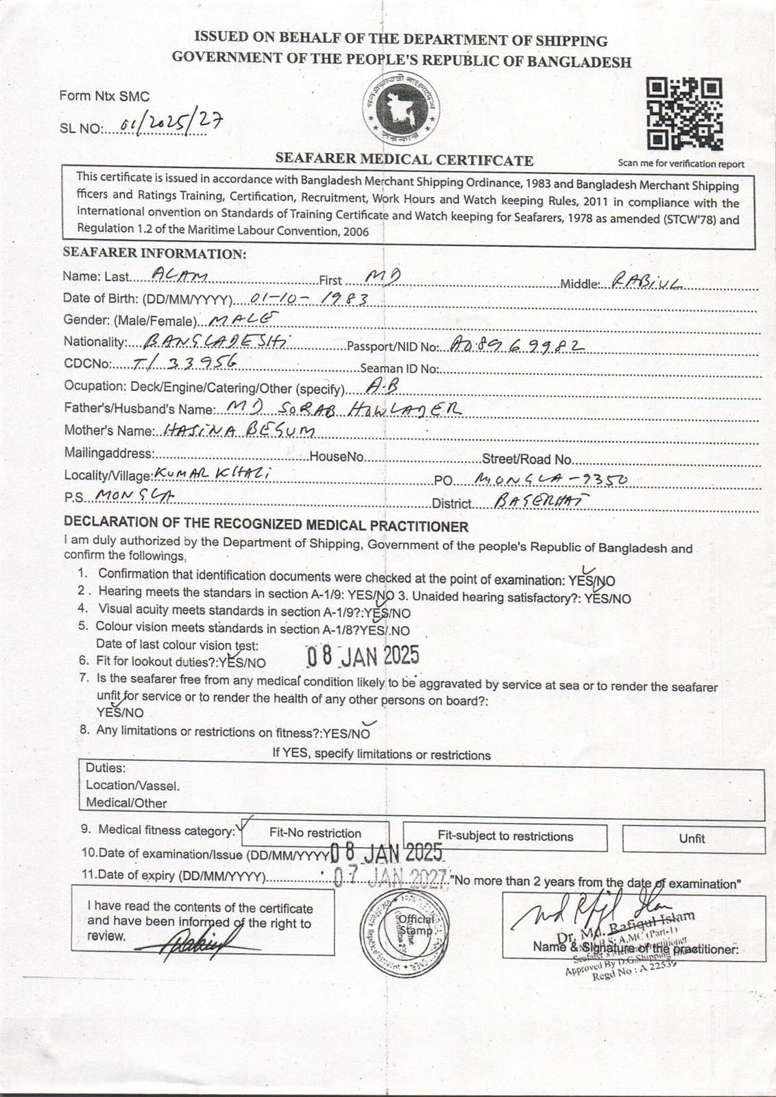 1.. SEAFARER MEDICAL CERTIFICATE
