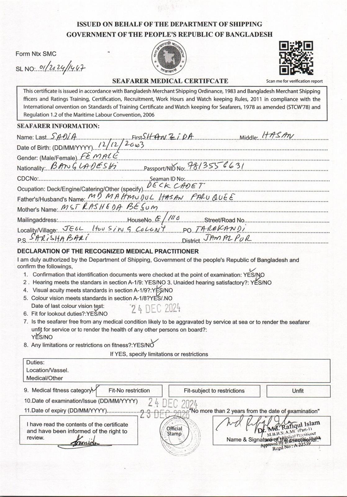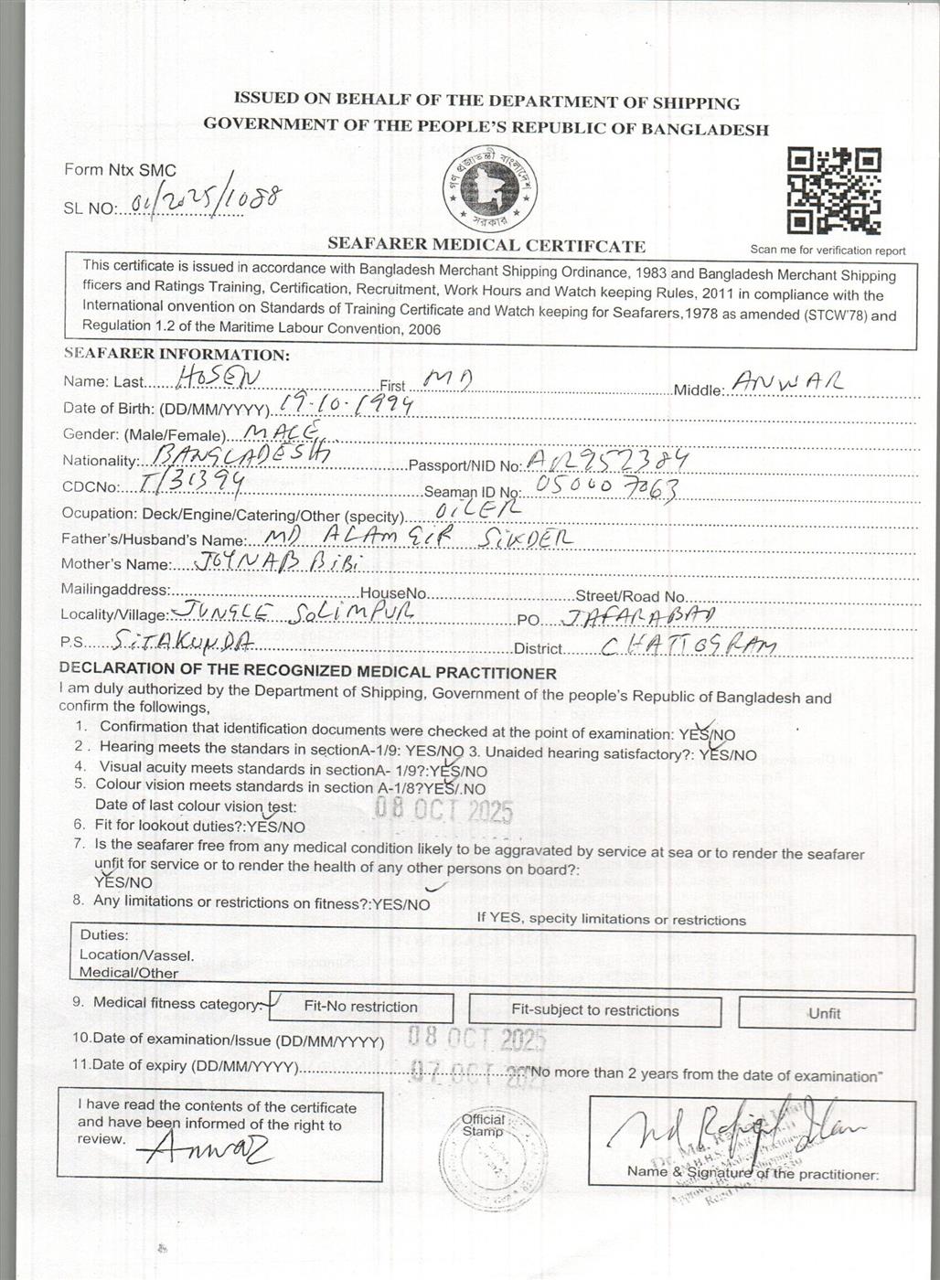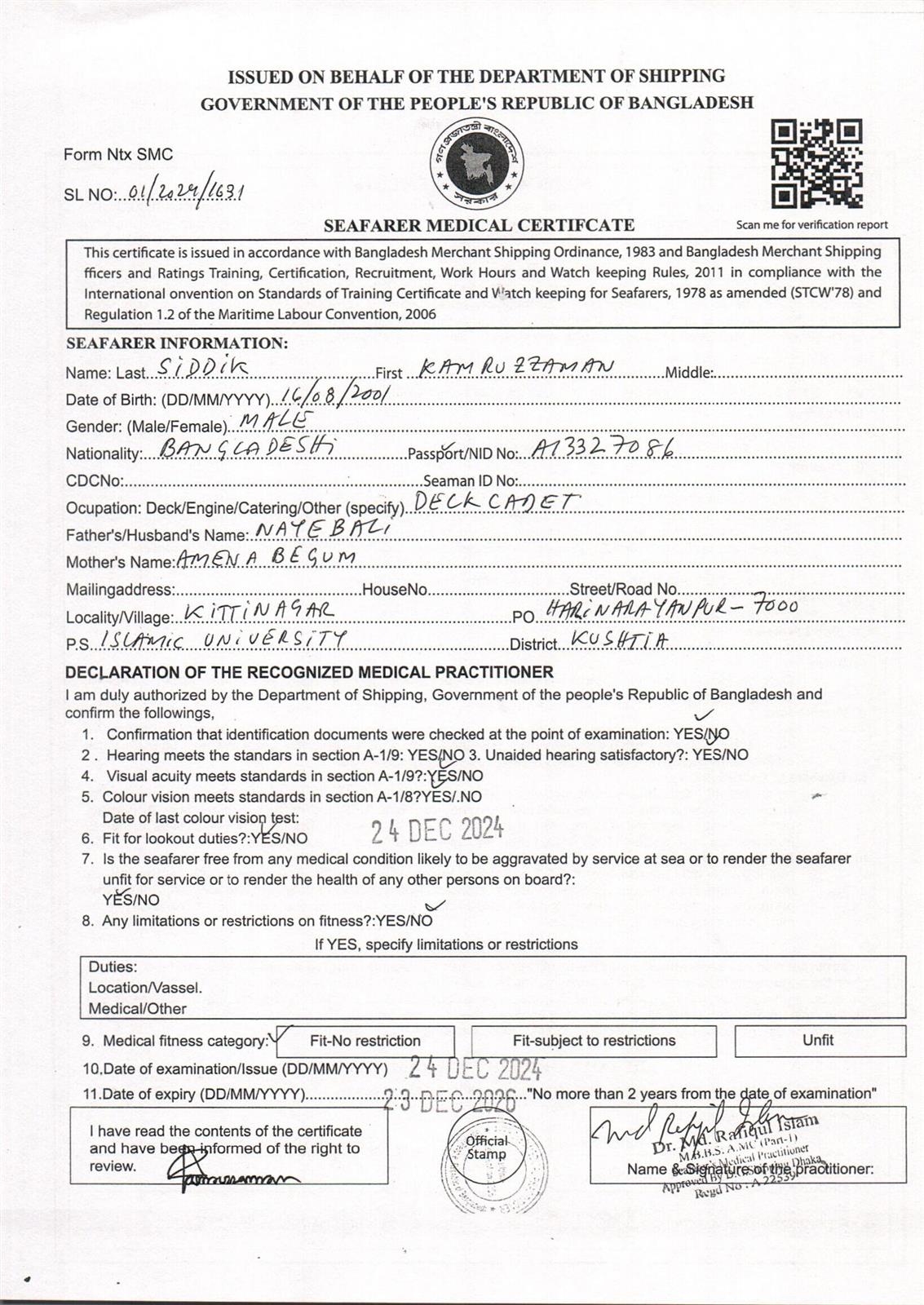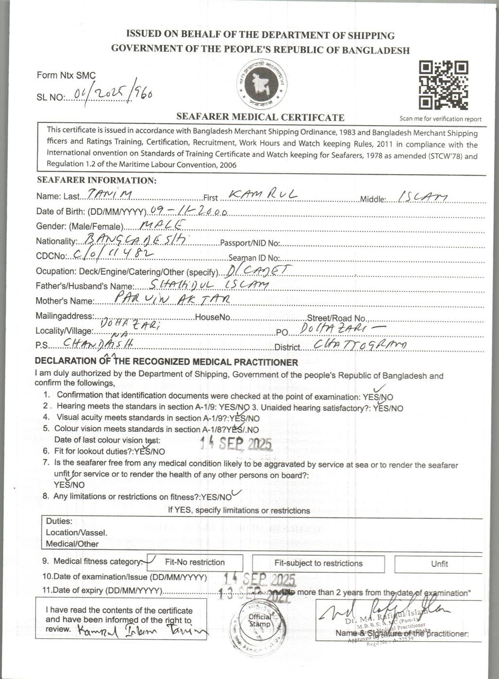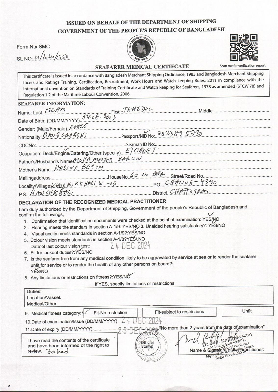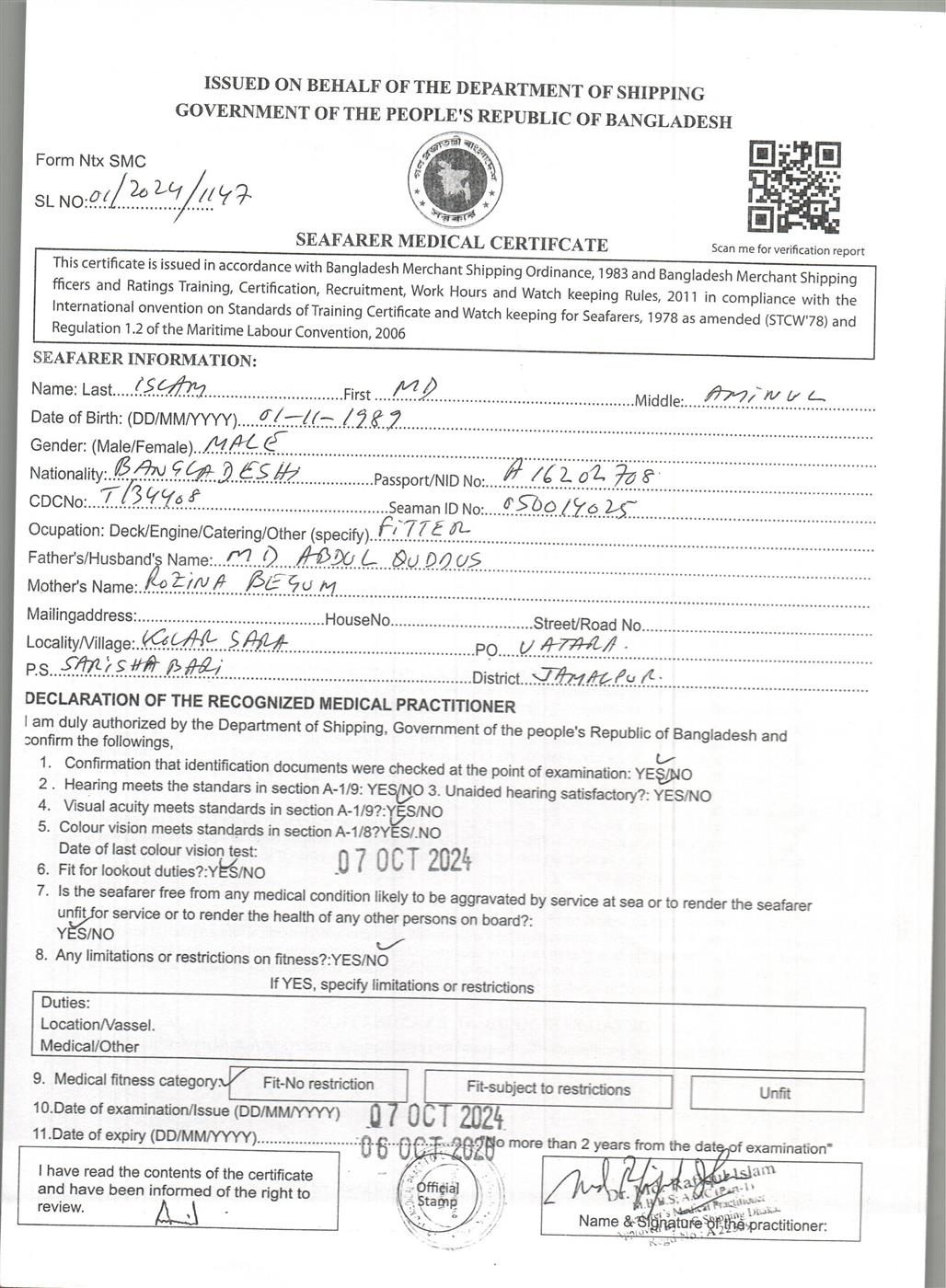 1.. SEAFARER MEDICAL CERTIFICATE
