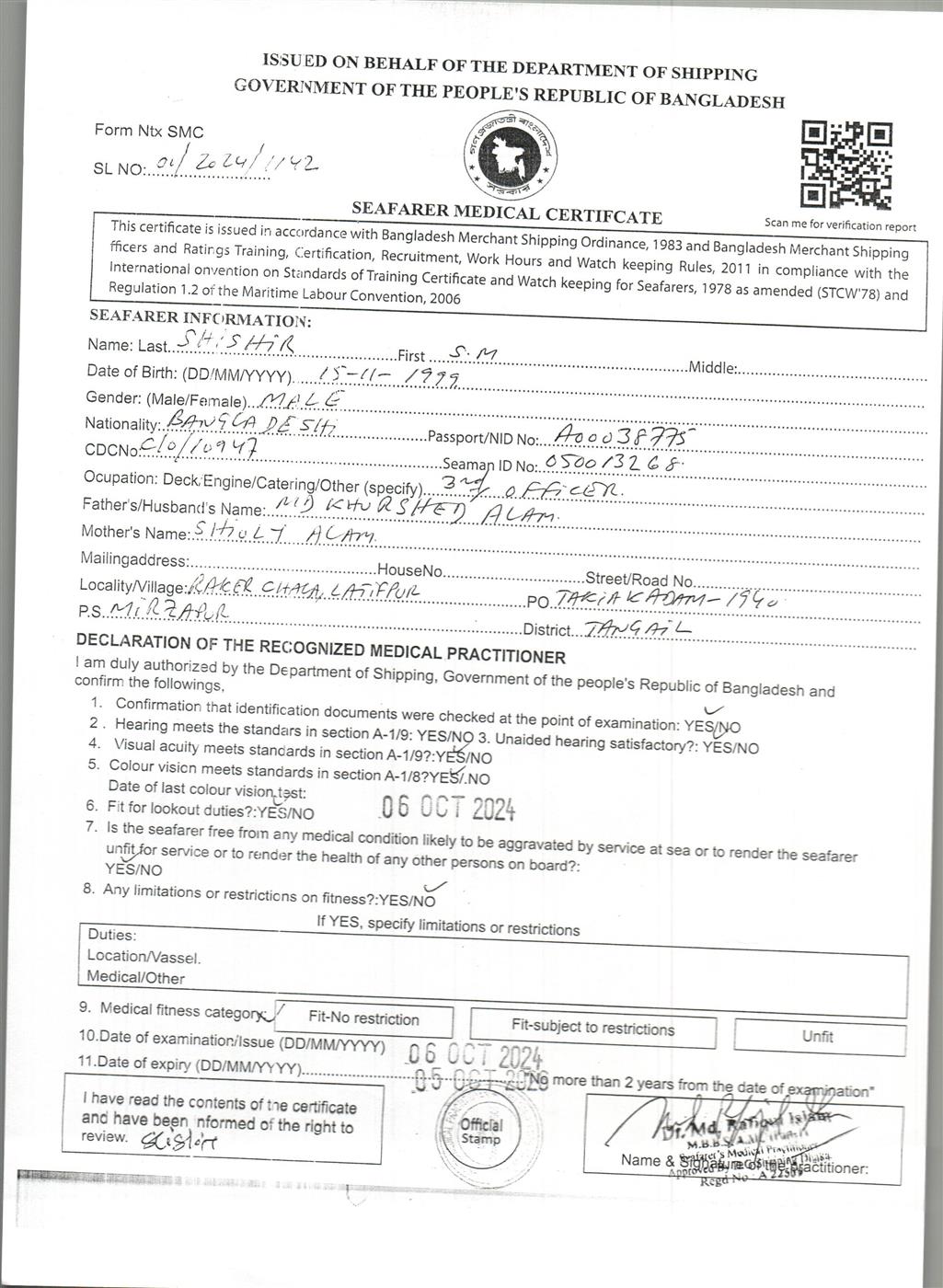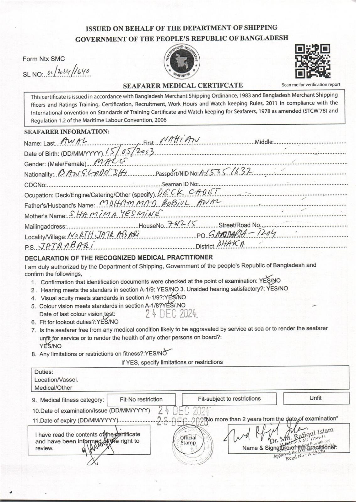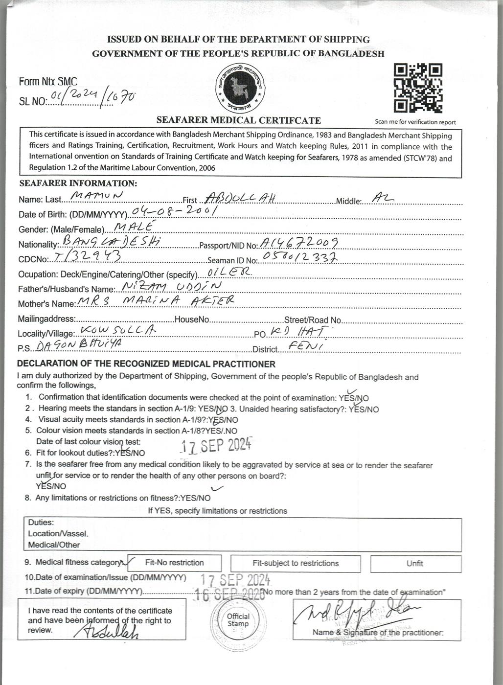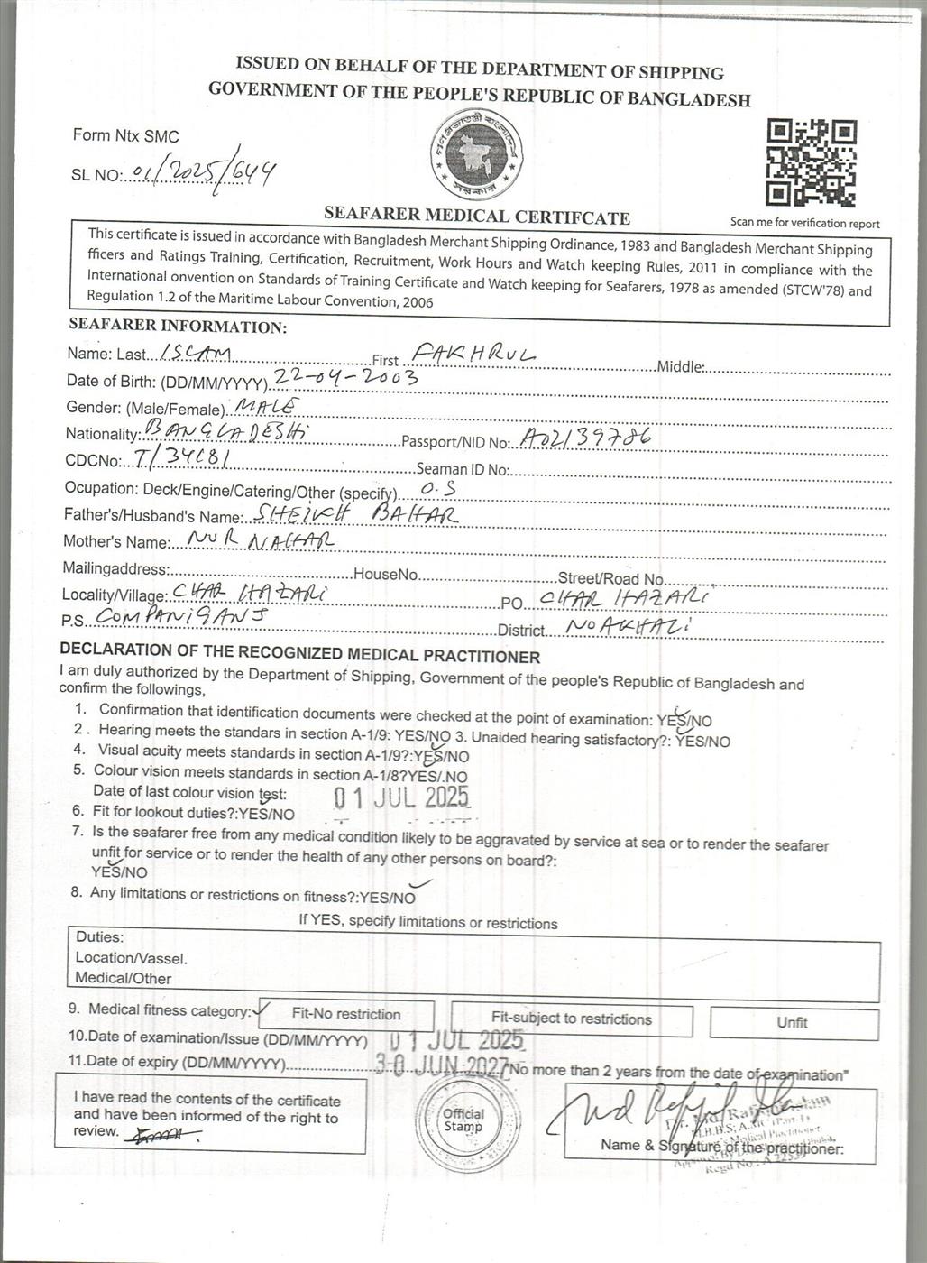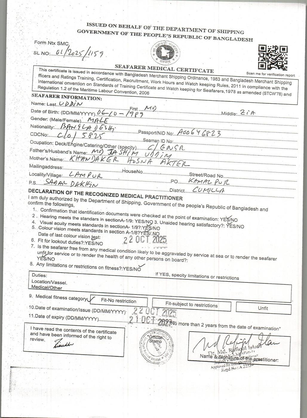 1.. SEAFARER MEDICAL CERTIFICATE