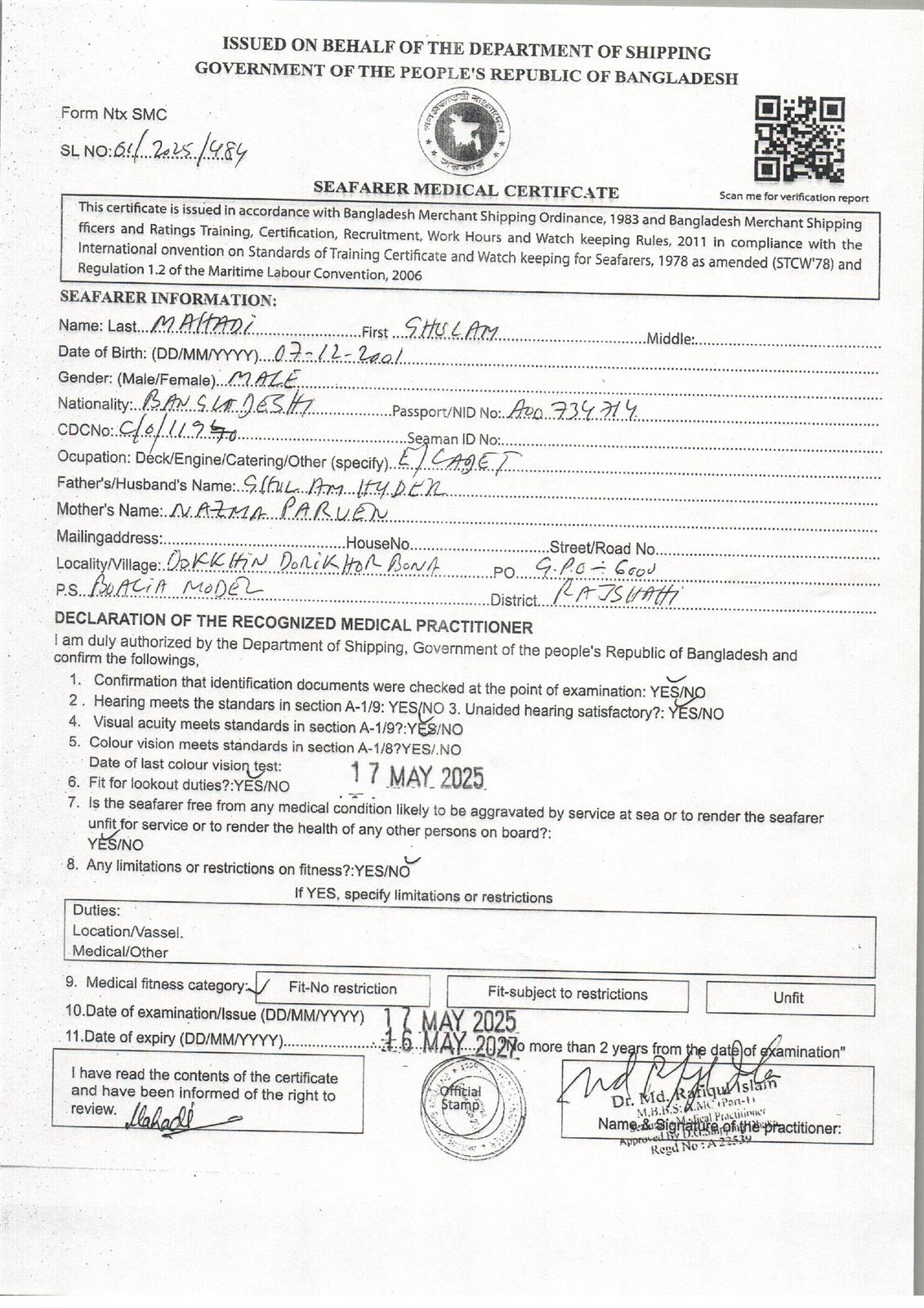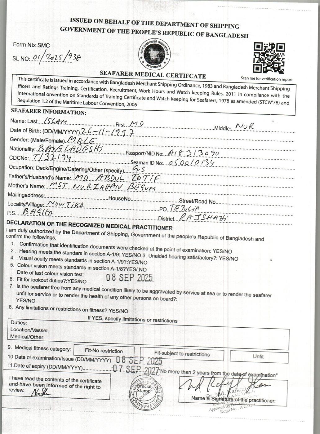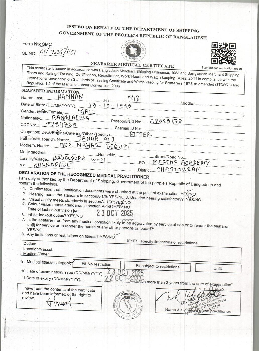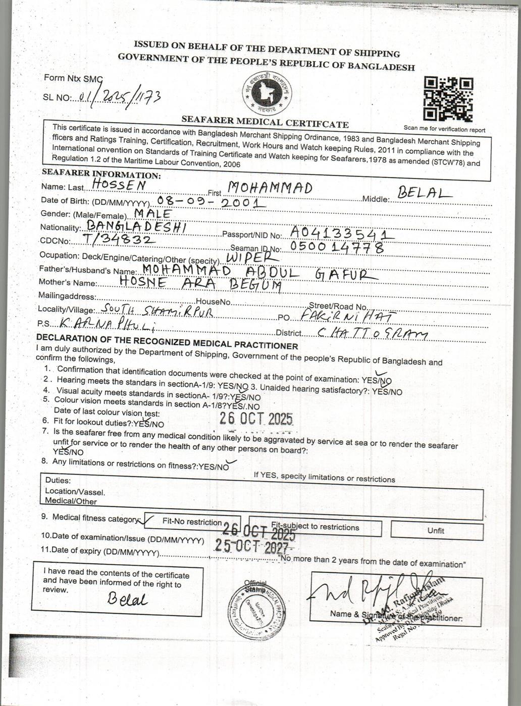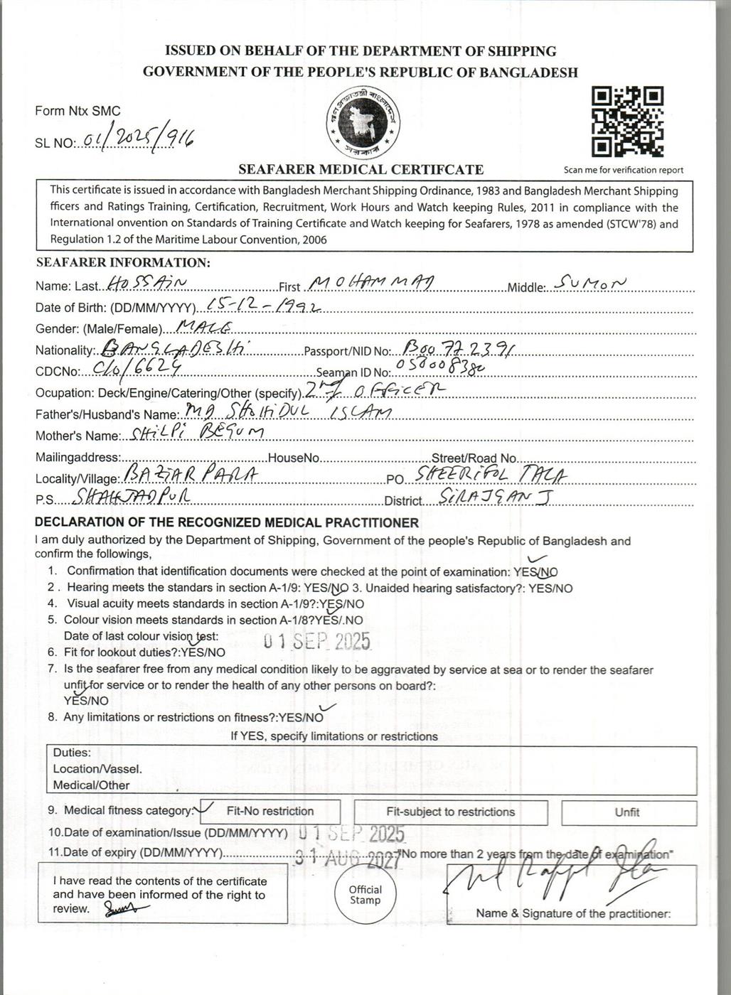 1.. SEAFARER MEDICAL CERTIFICATE