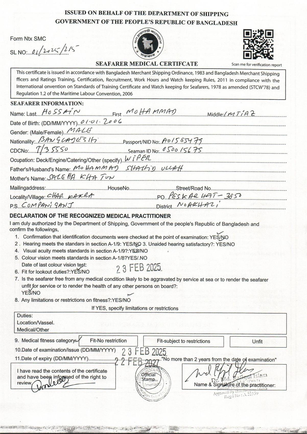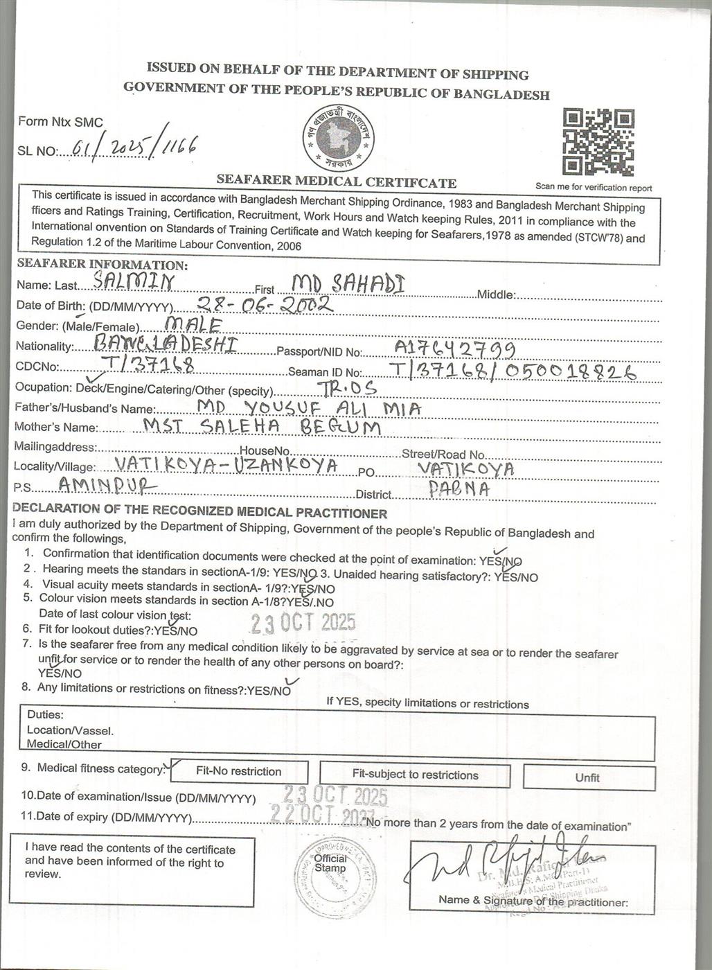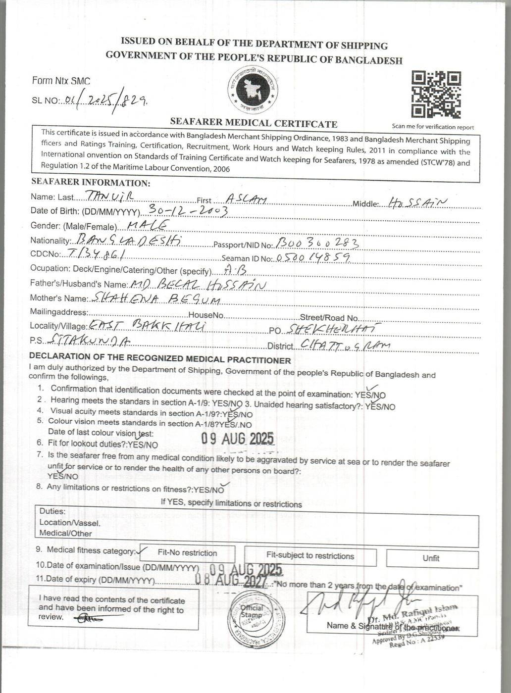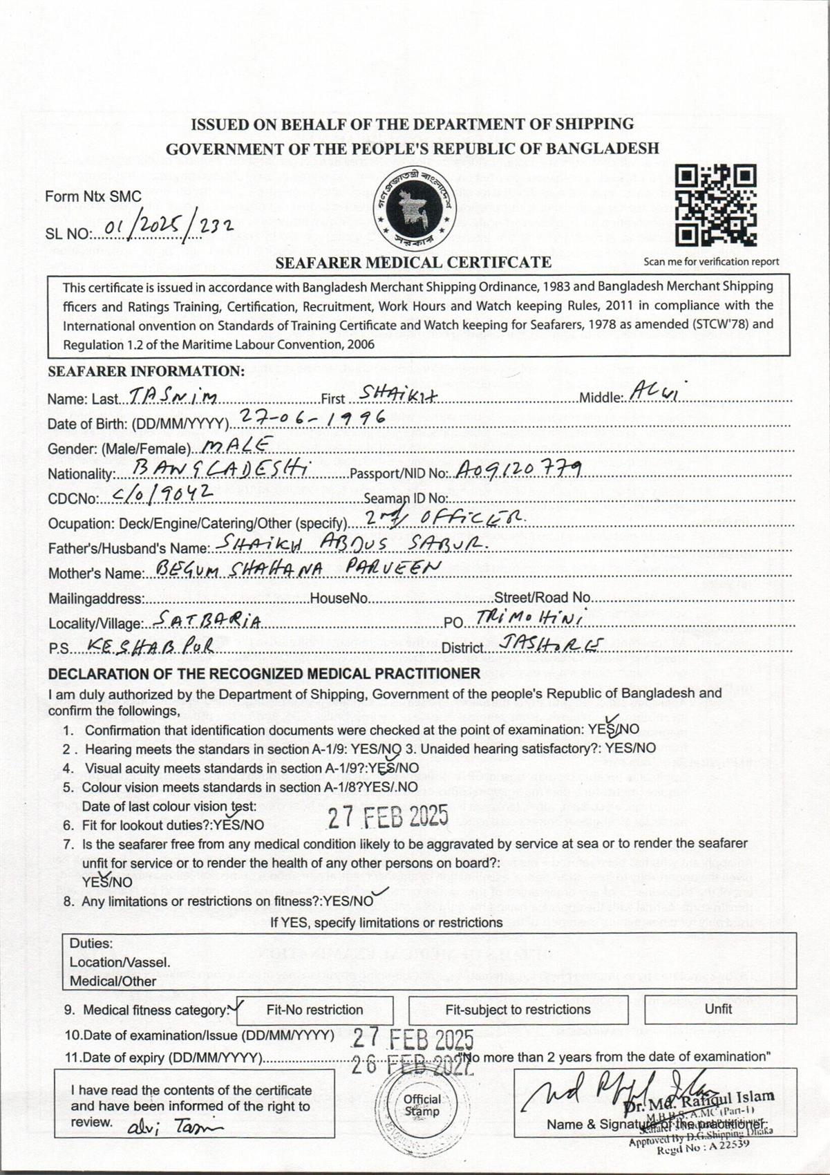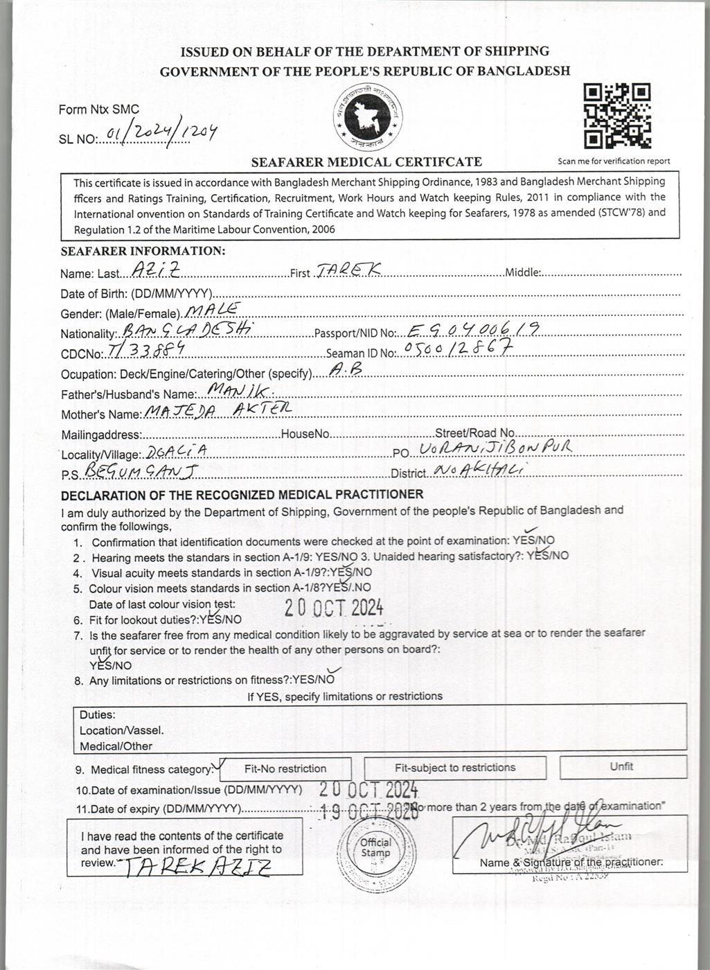 1.. SEAFARER MEDICAL CERTIFICATE
