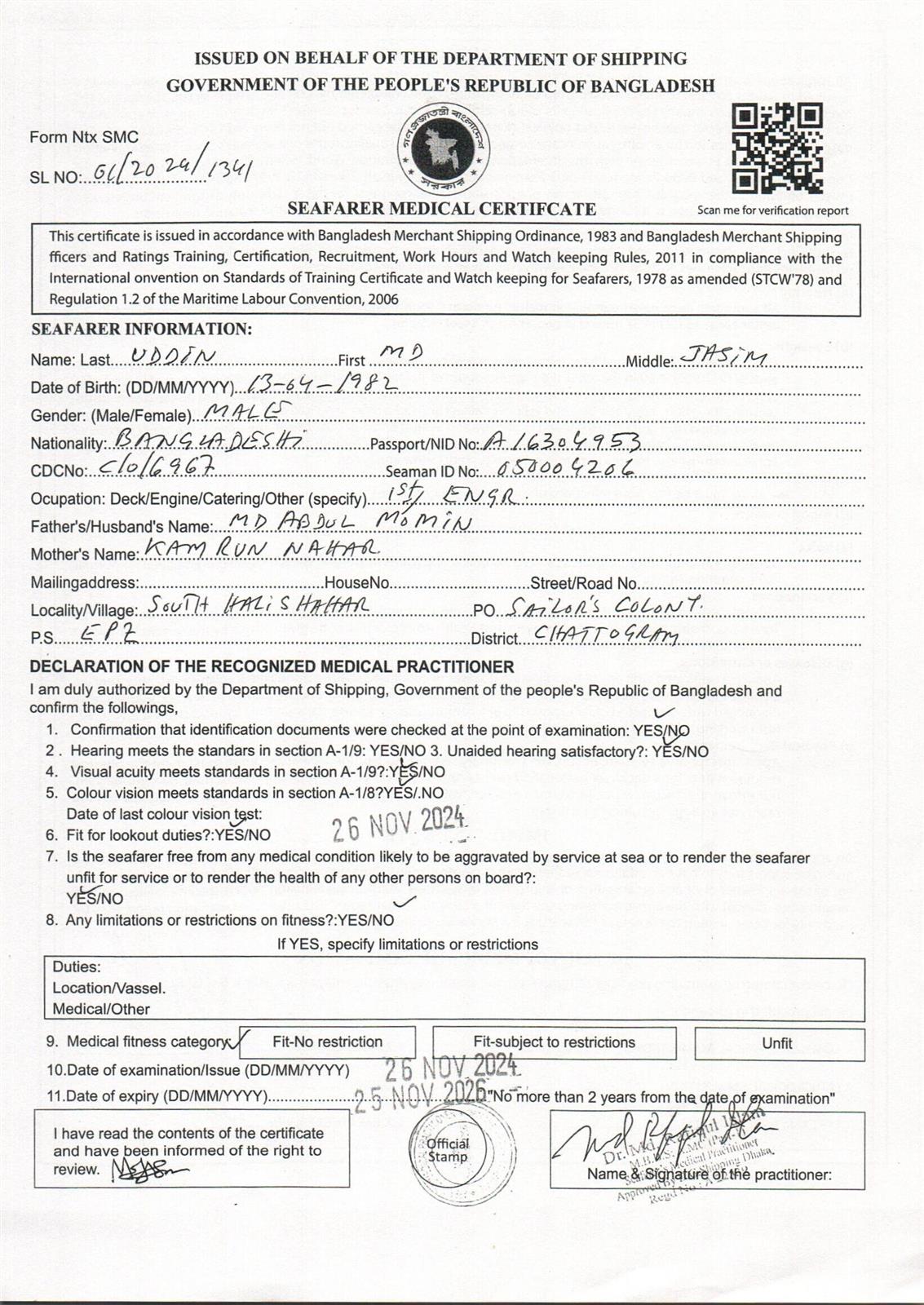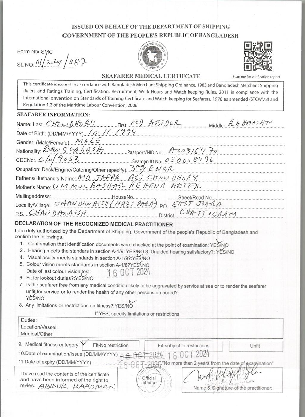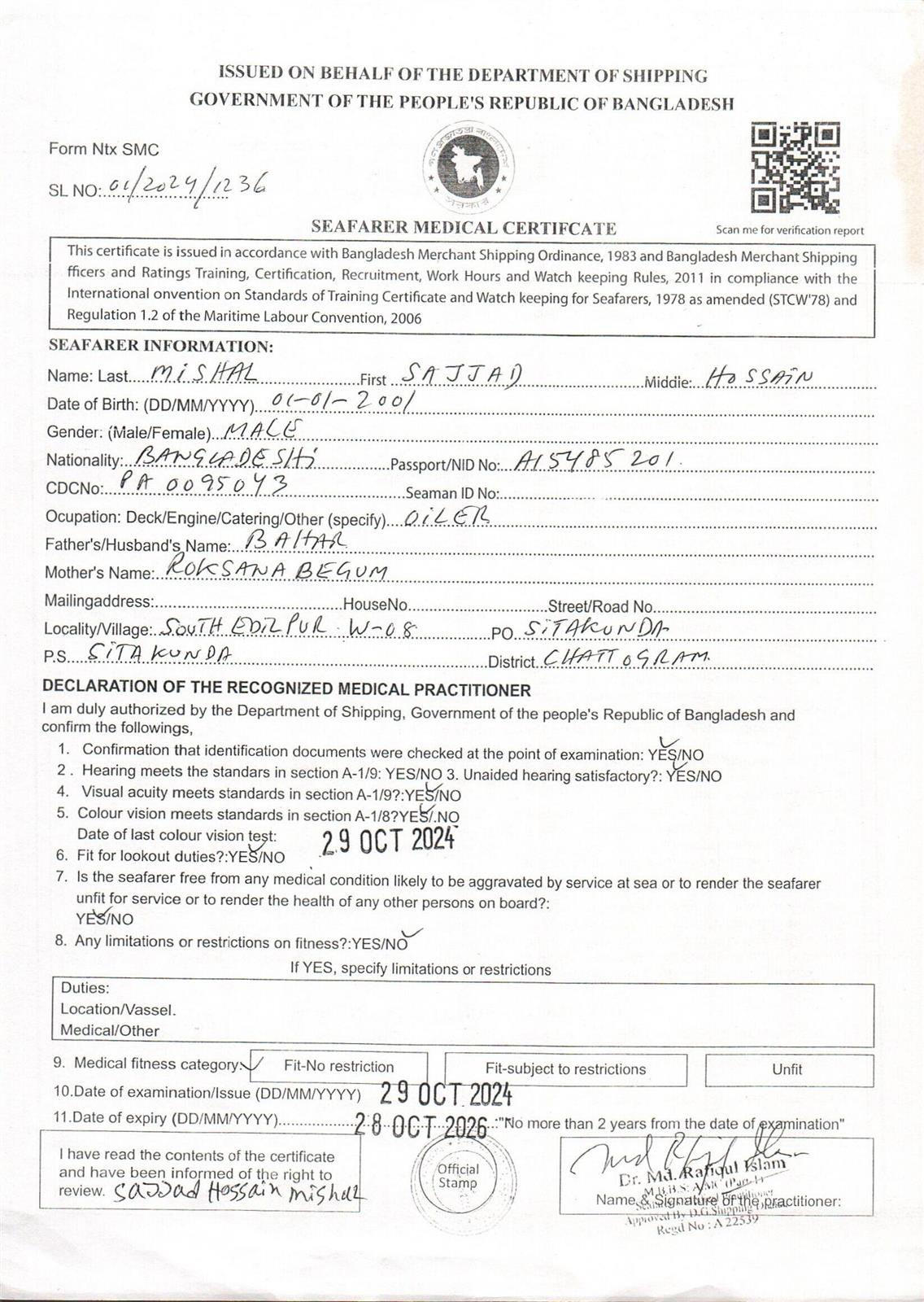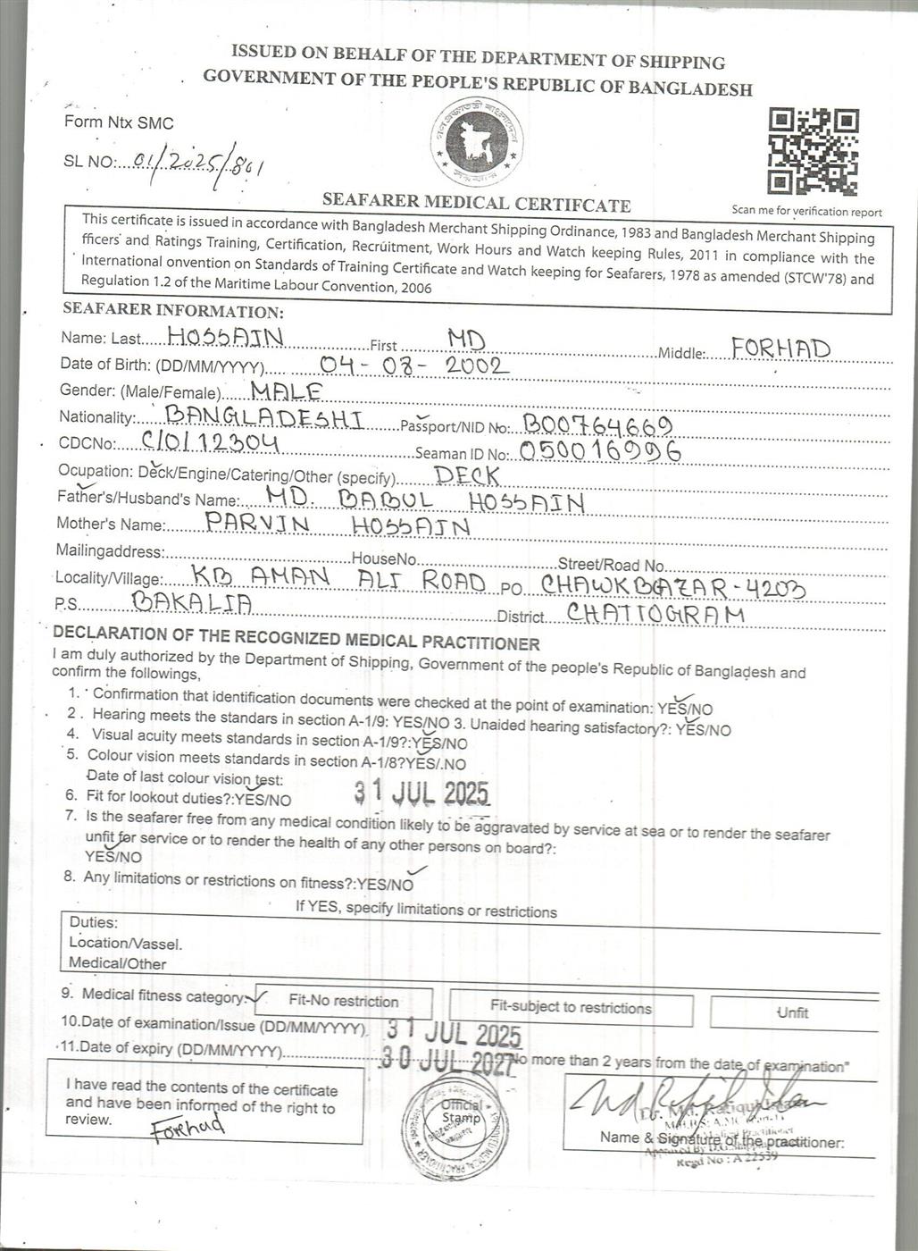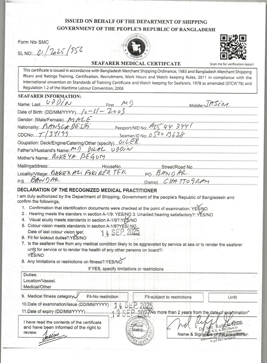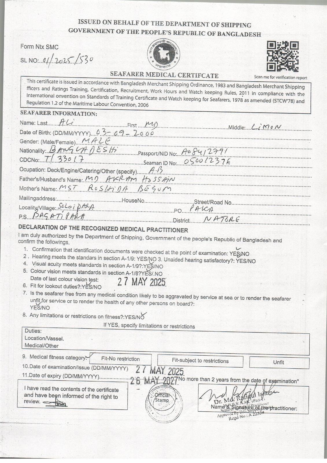 1.. SEAFARER MEDICAL CERTIFICATE