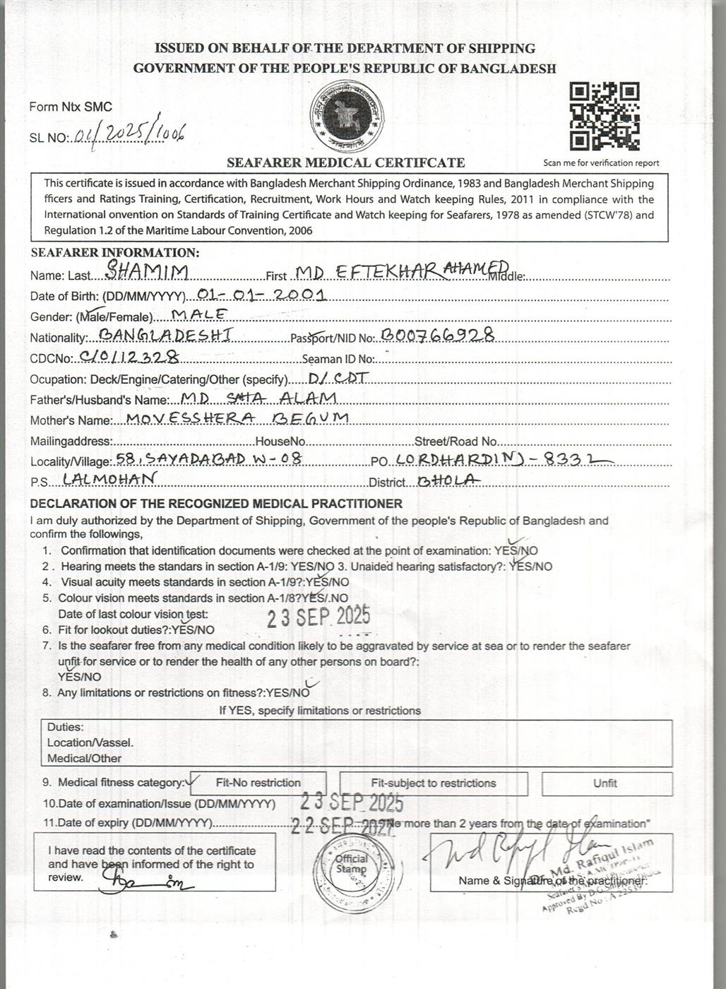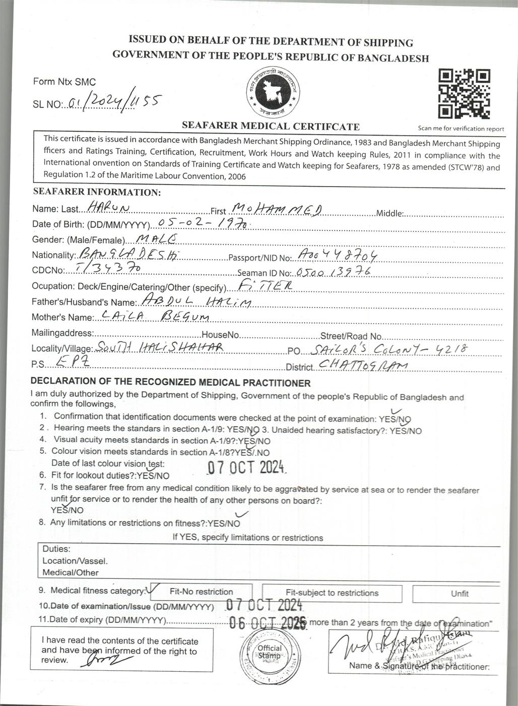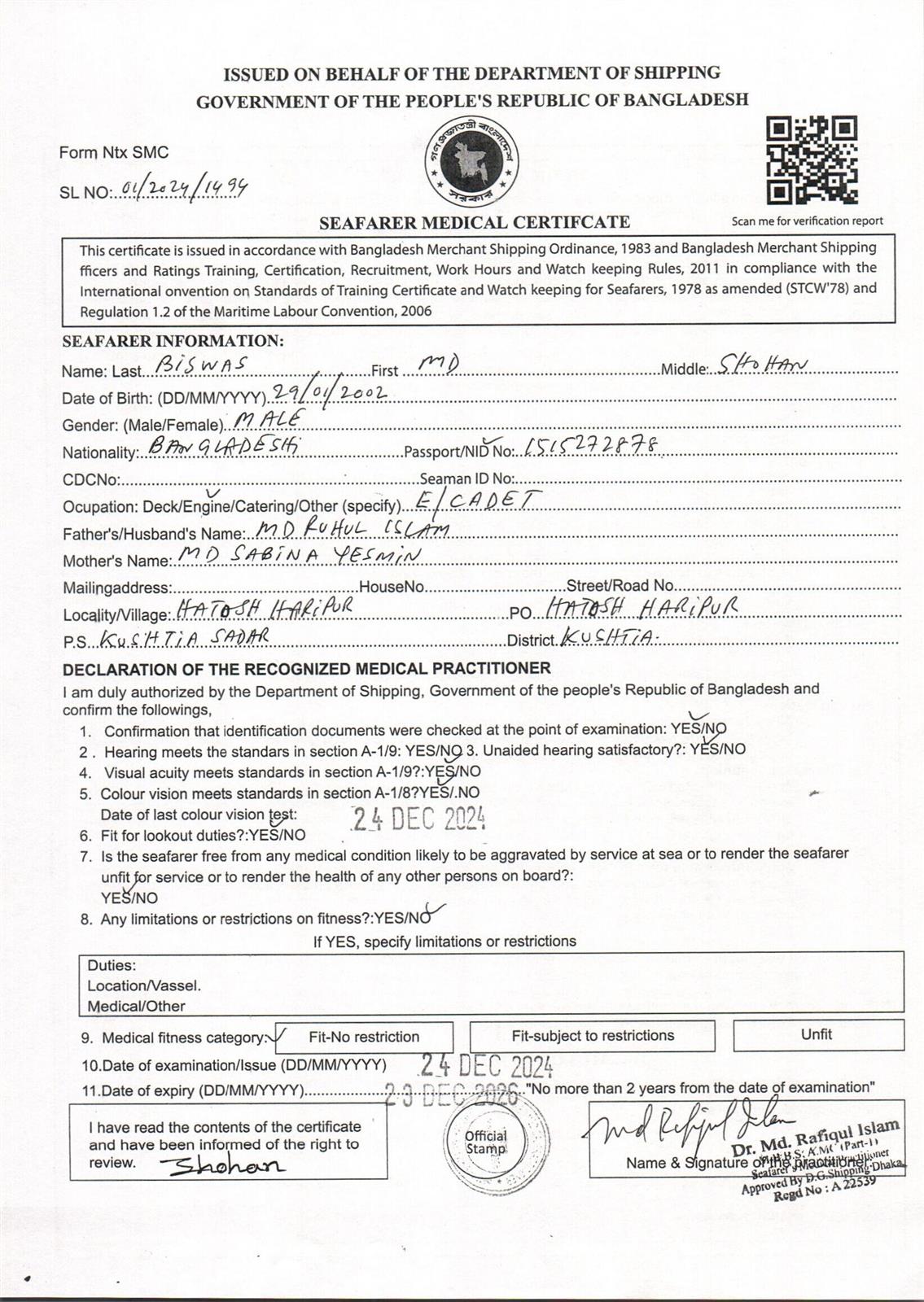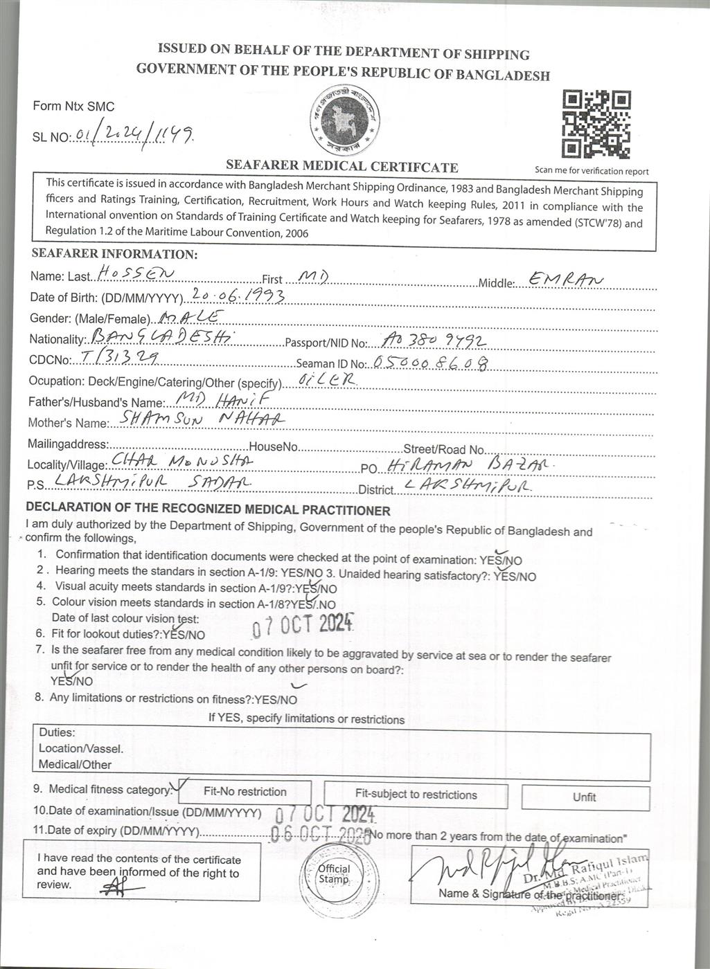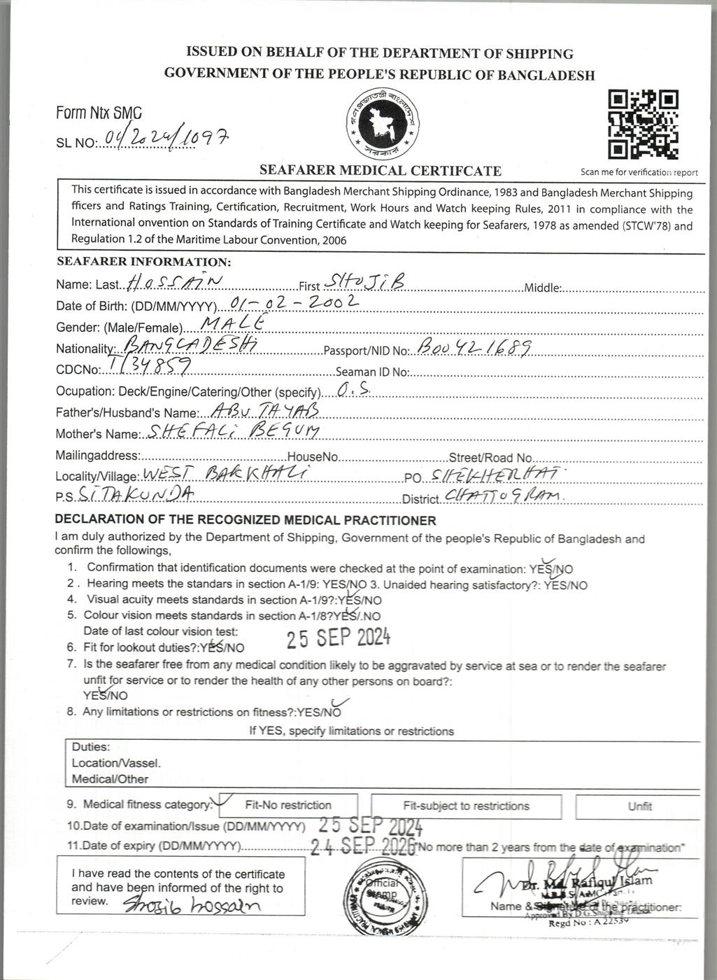 1.. SEAFARER MEDICAL CERTIFICATE