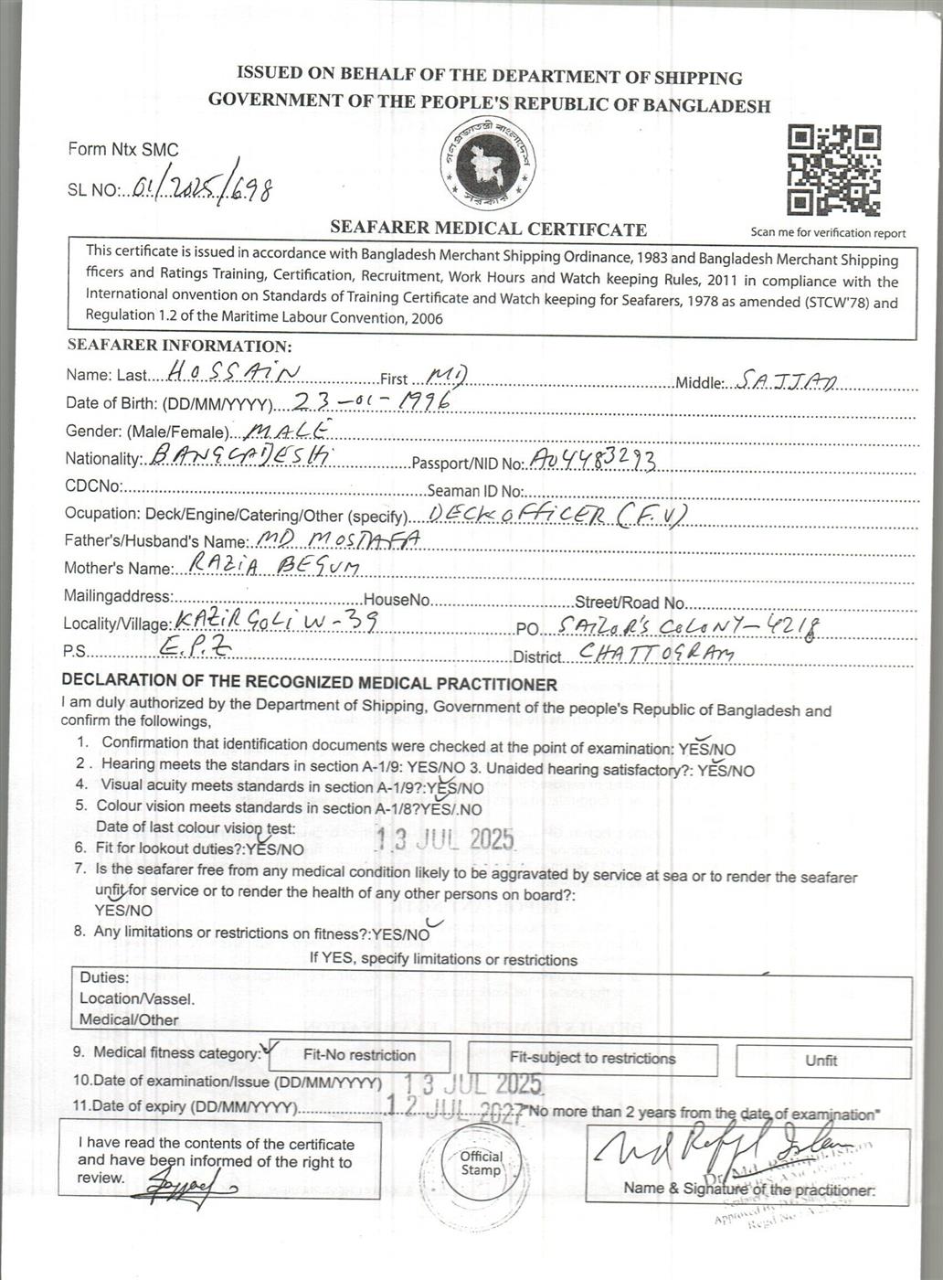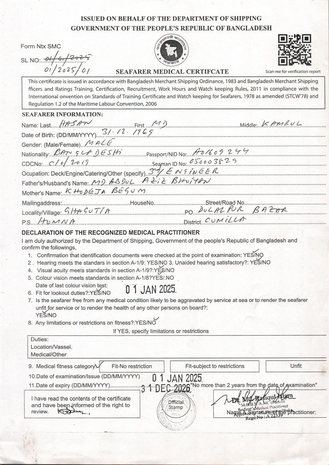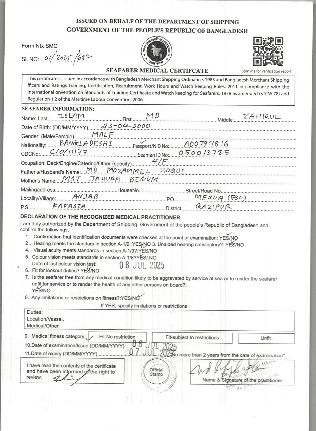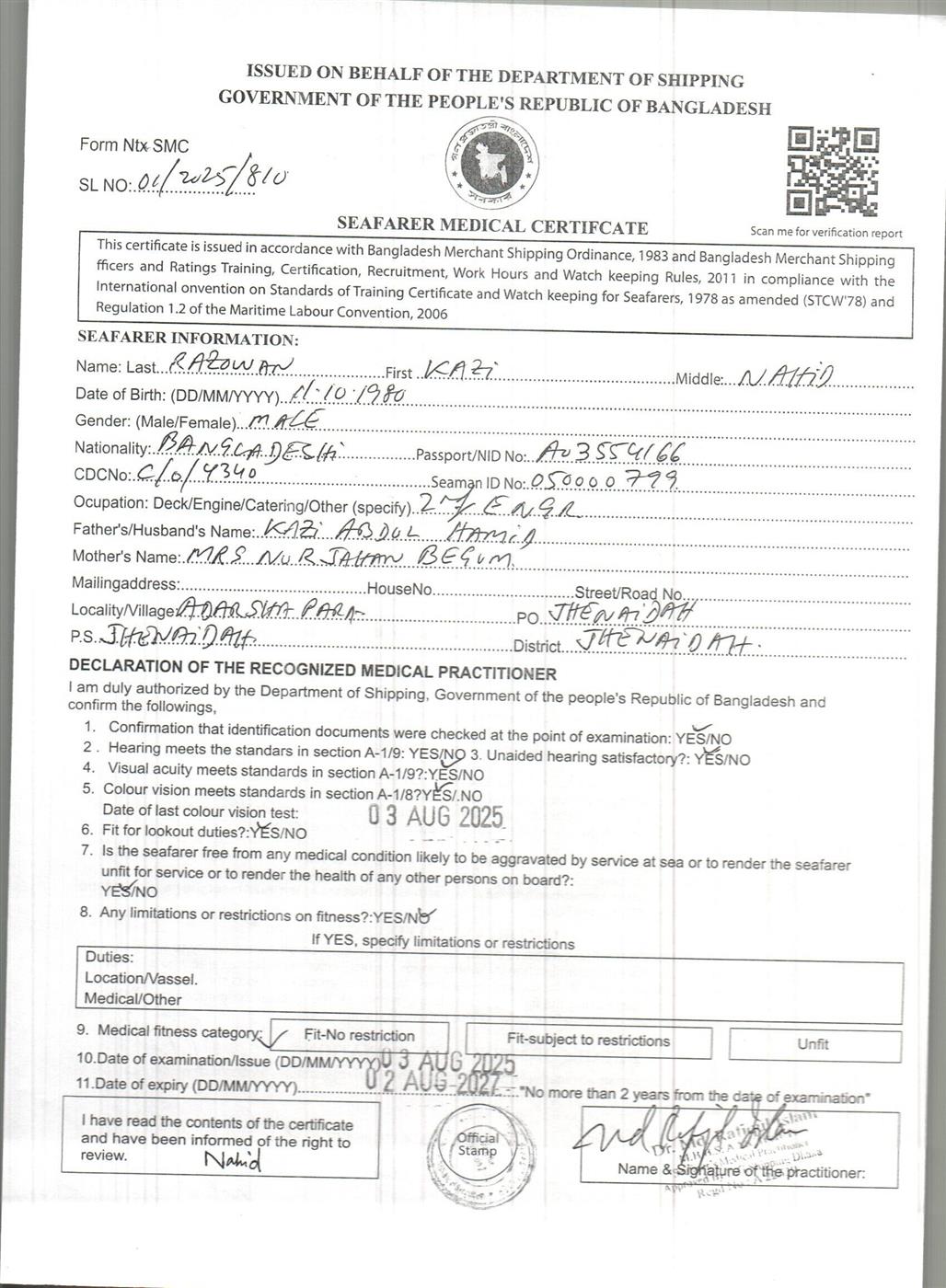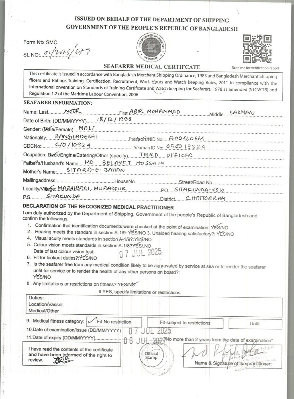 1.. SEAFARER MEDICAL CERTIFICATE