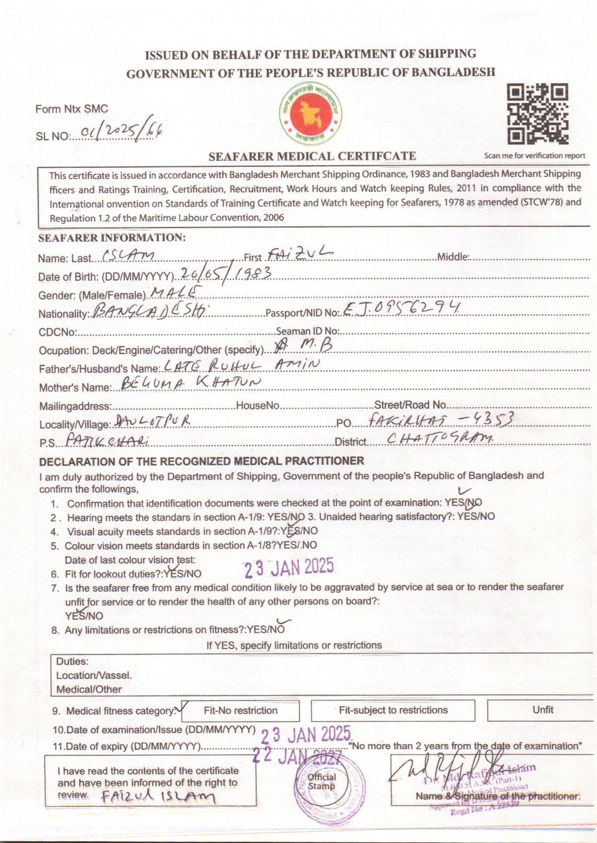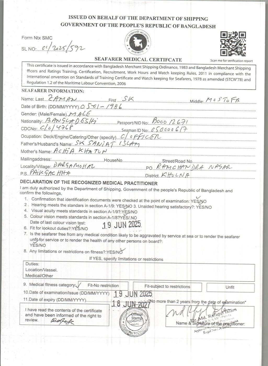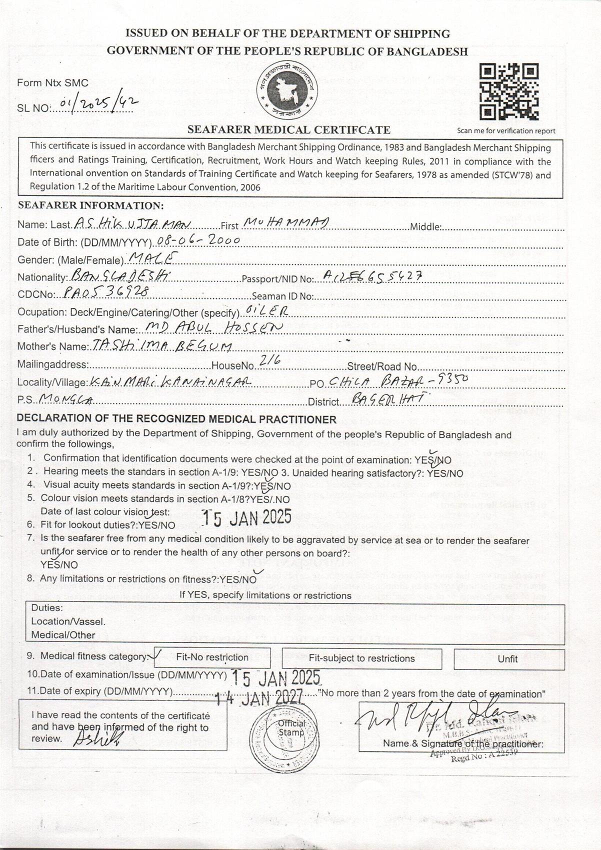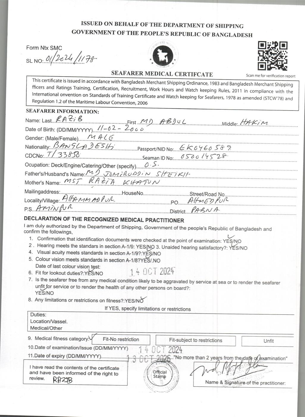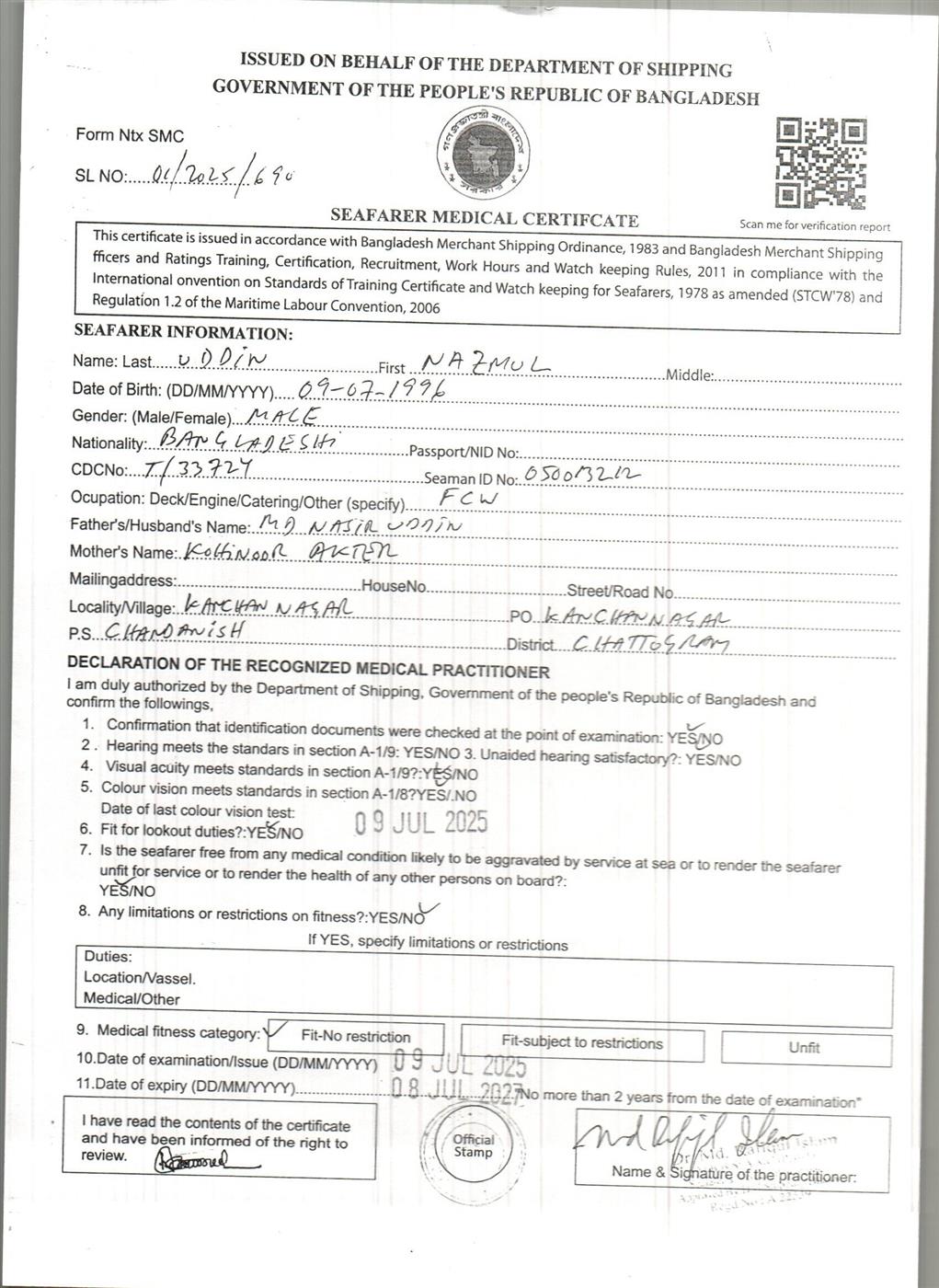 1.. SEAFARER MEDICAL CERTIFICATE