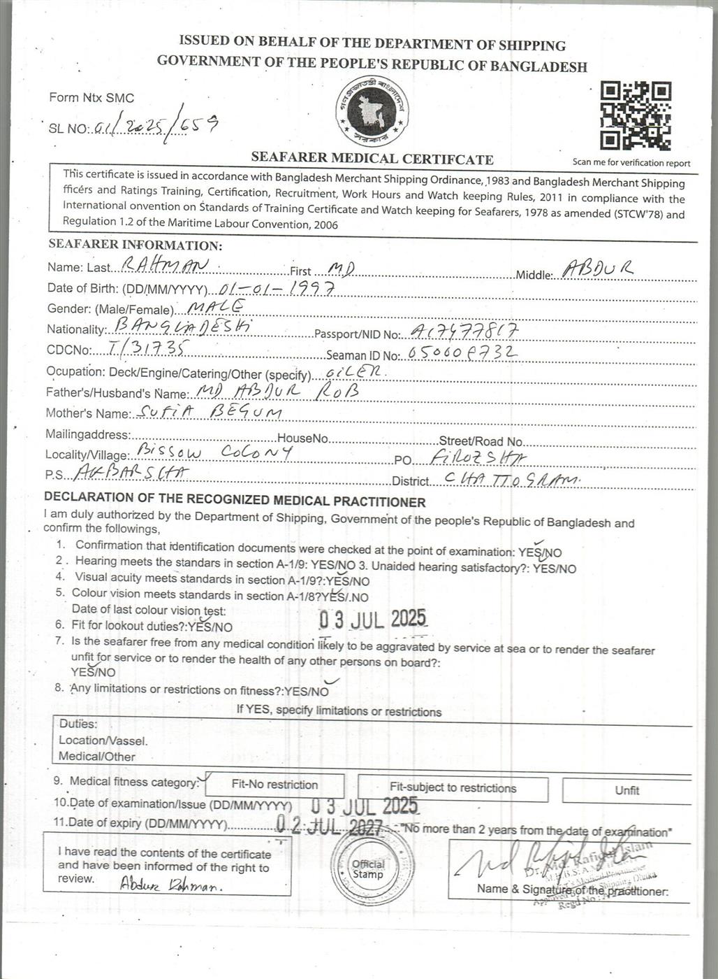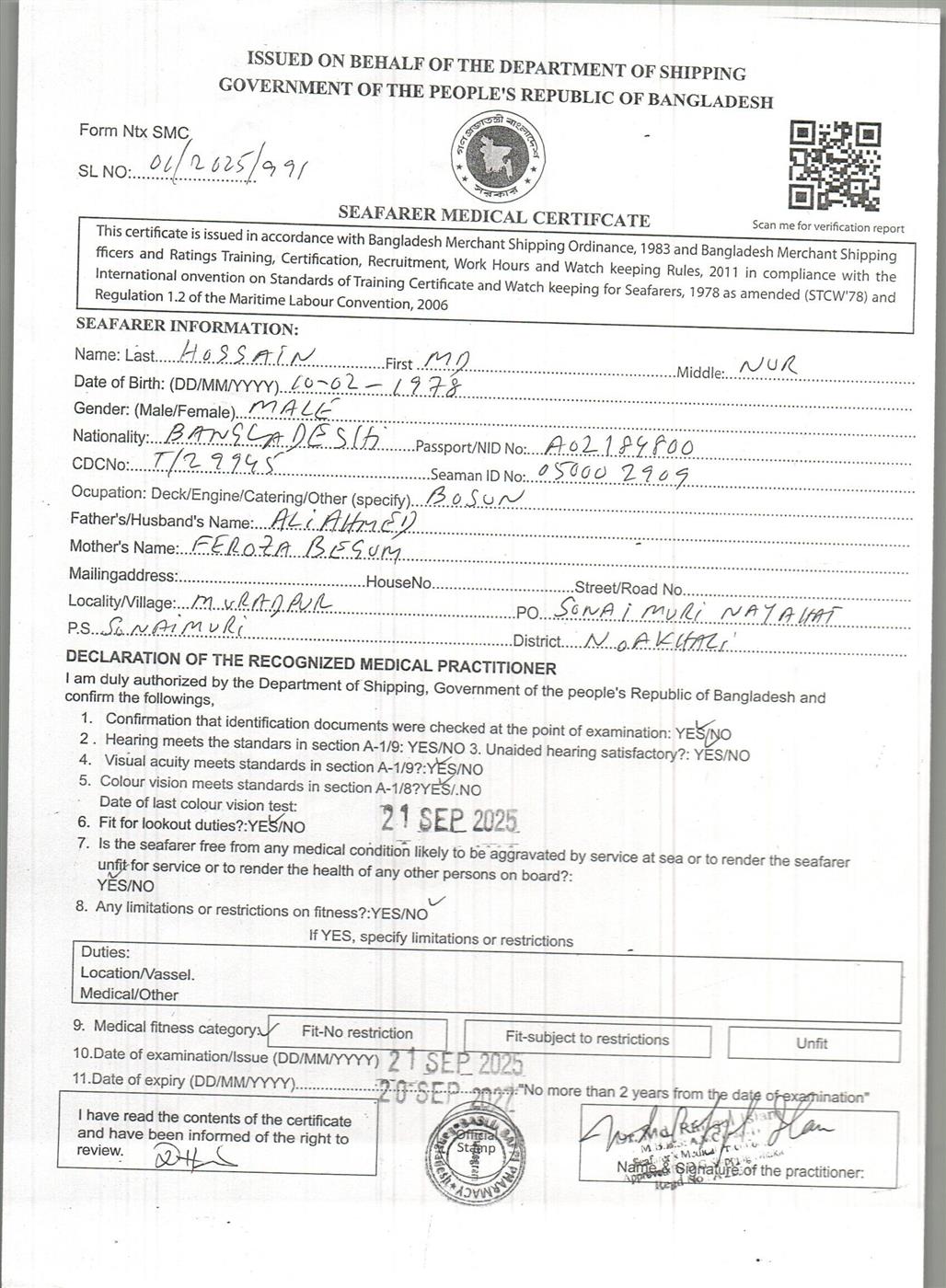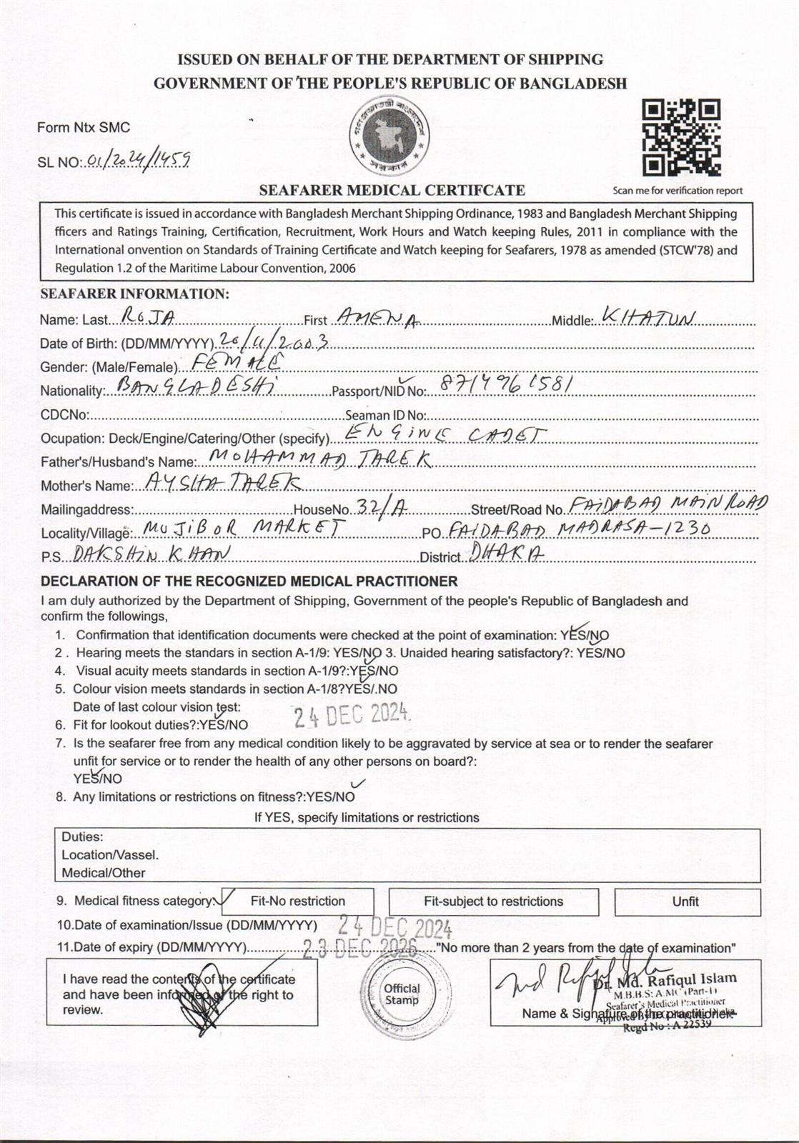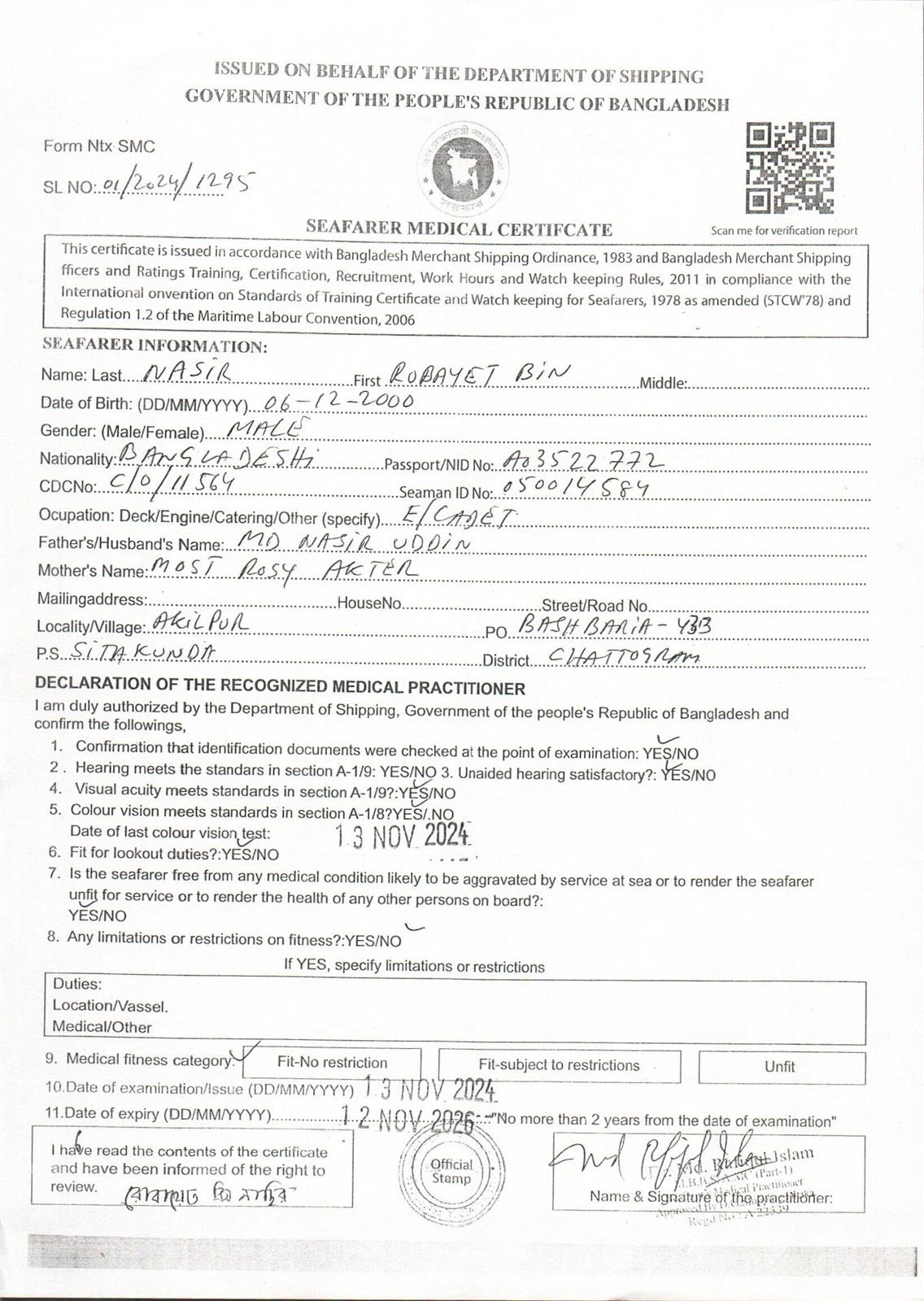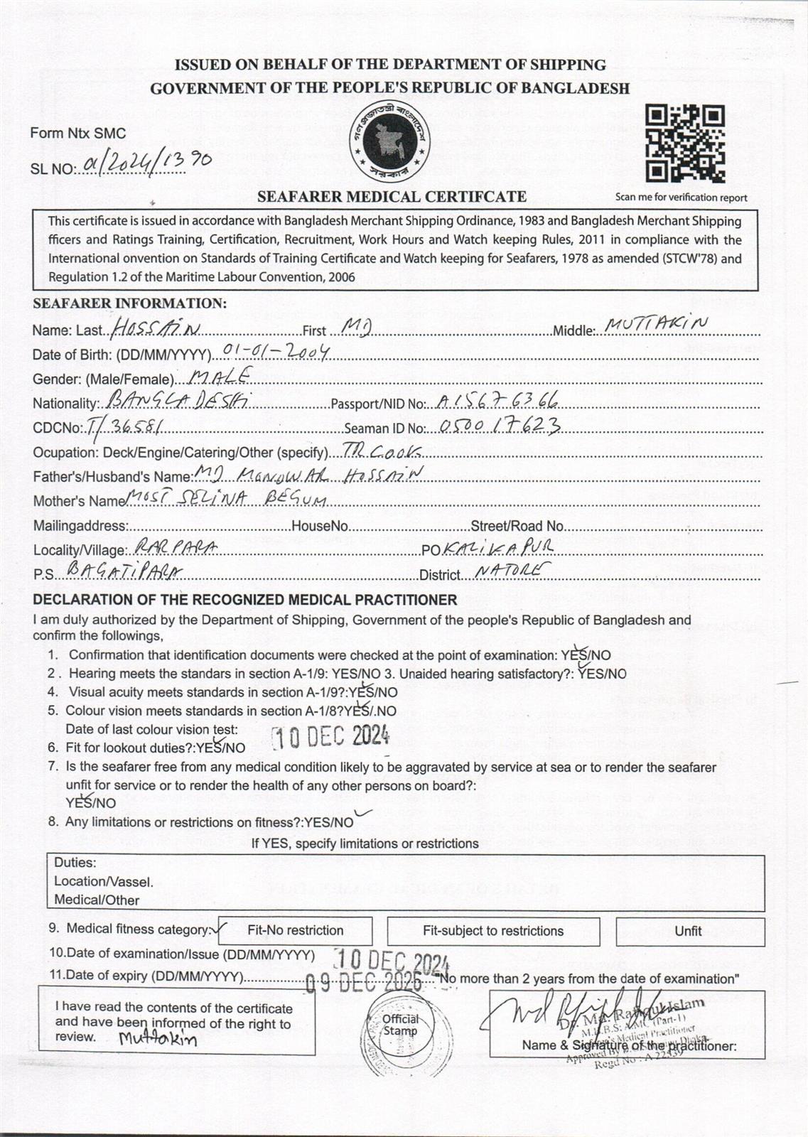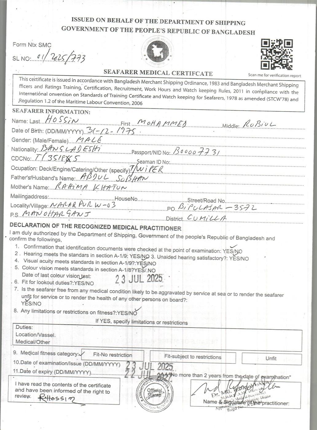 1.. SEAFARER MEDICAL CERTIFICATE