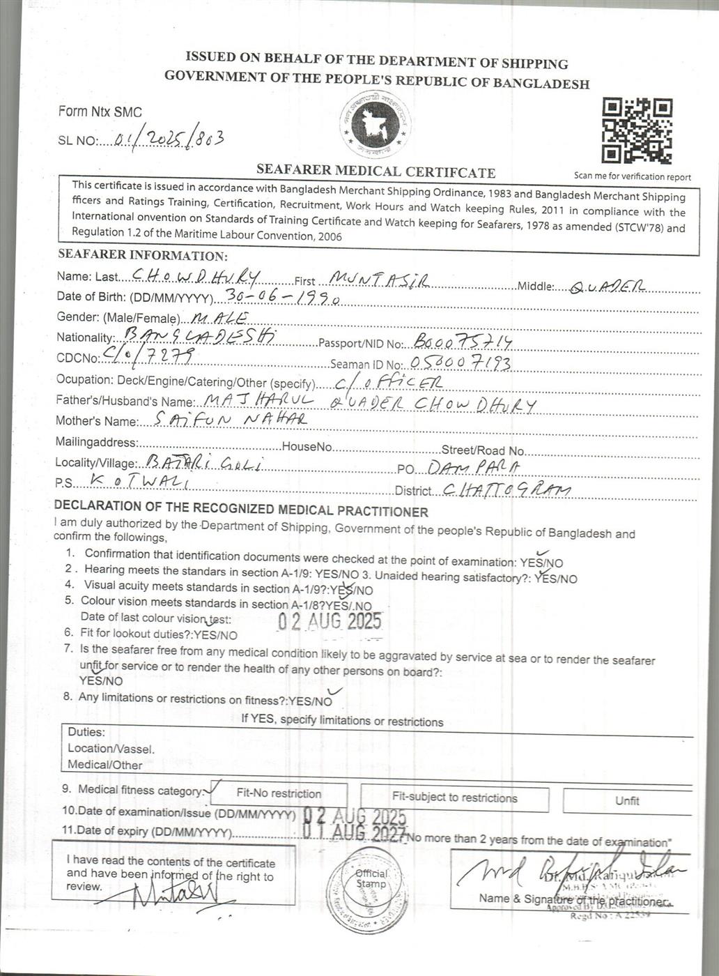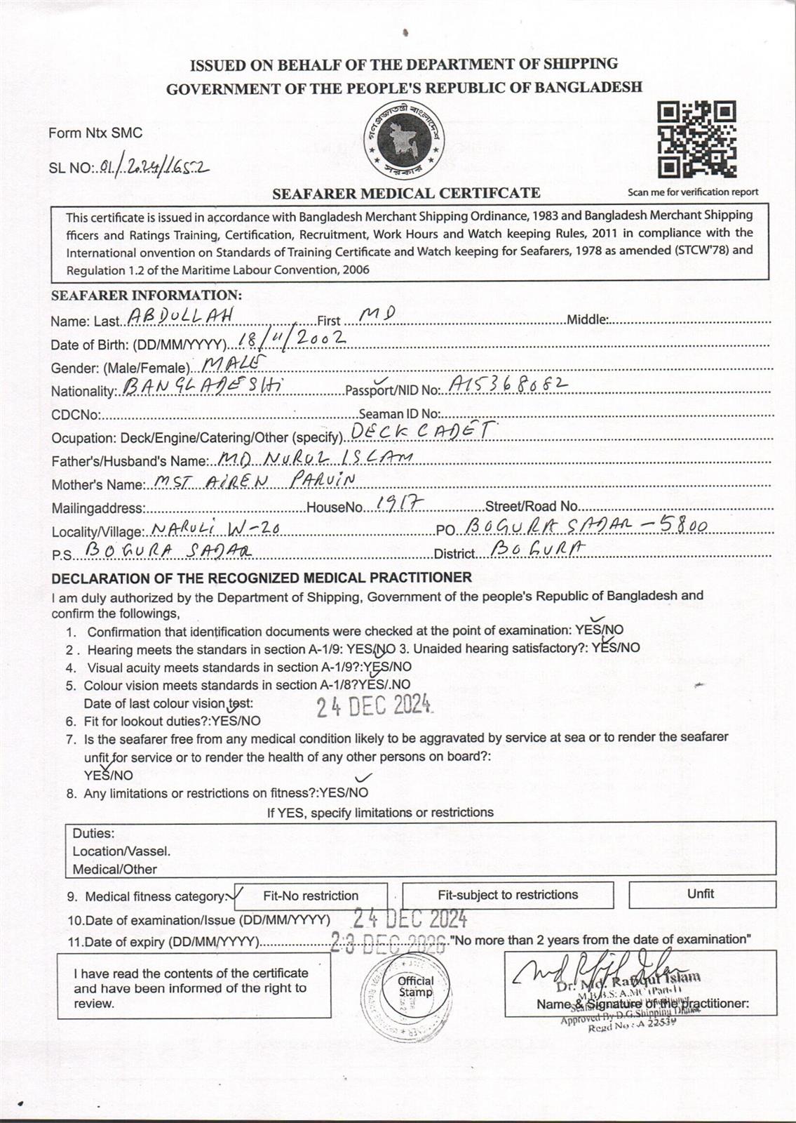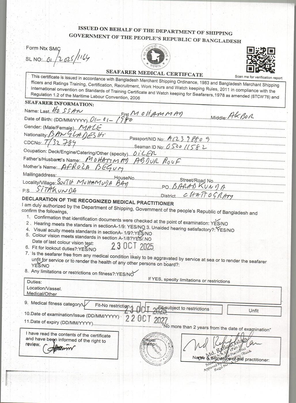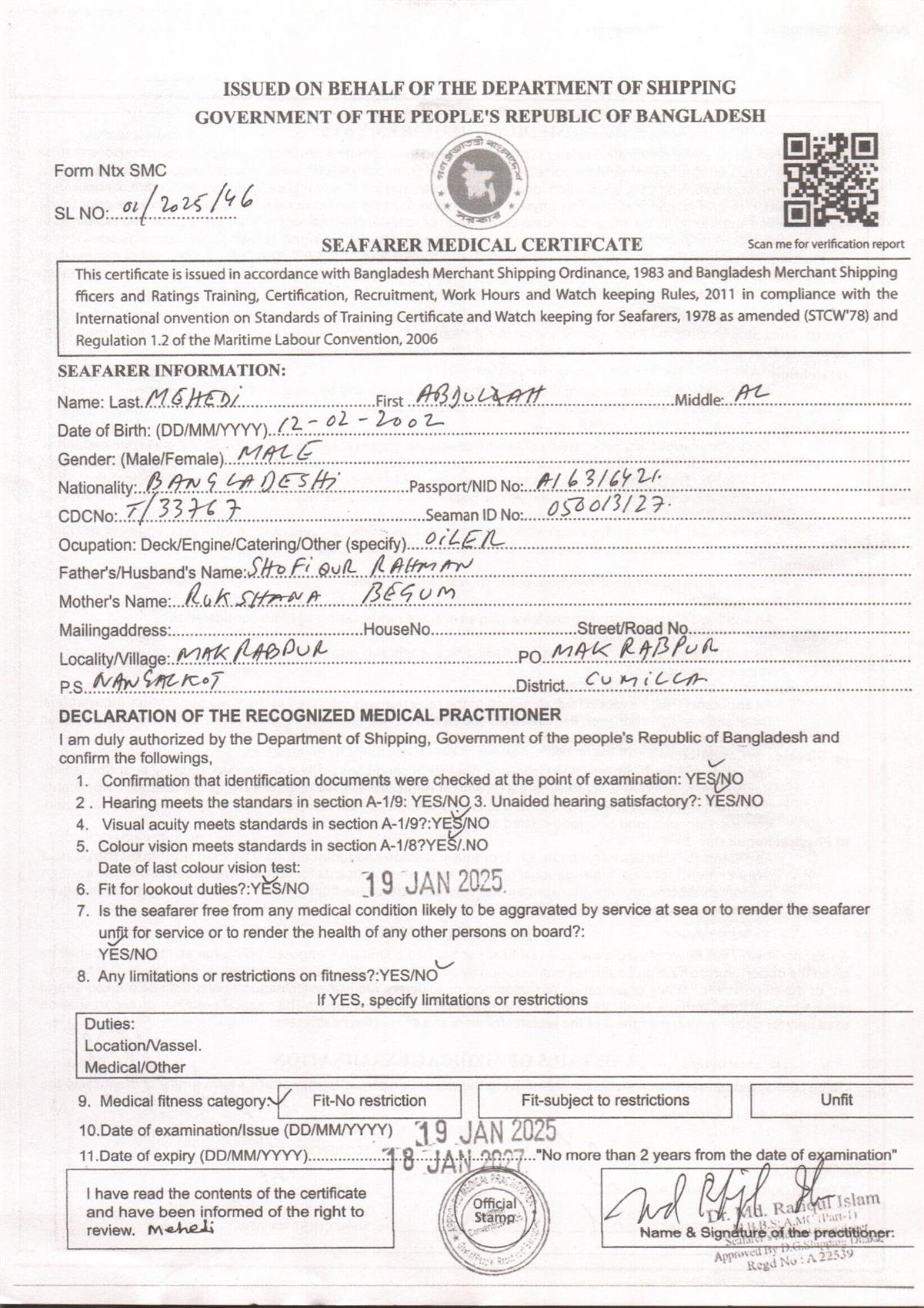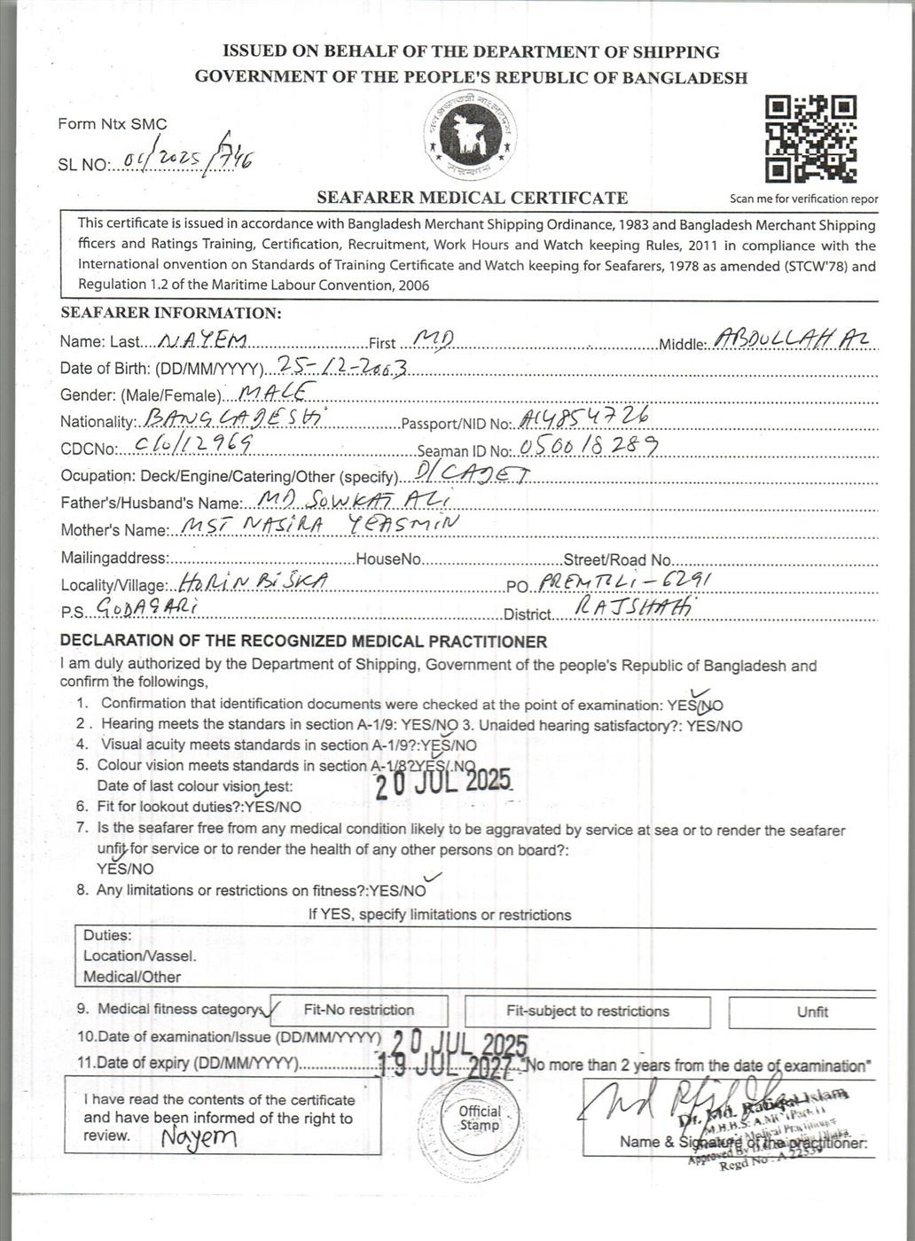 1.. SEAFARER MEDICAL CERTIFICATE