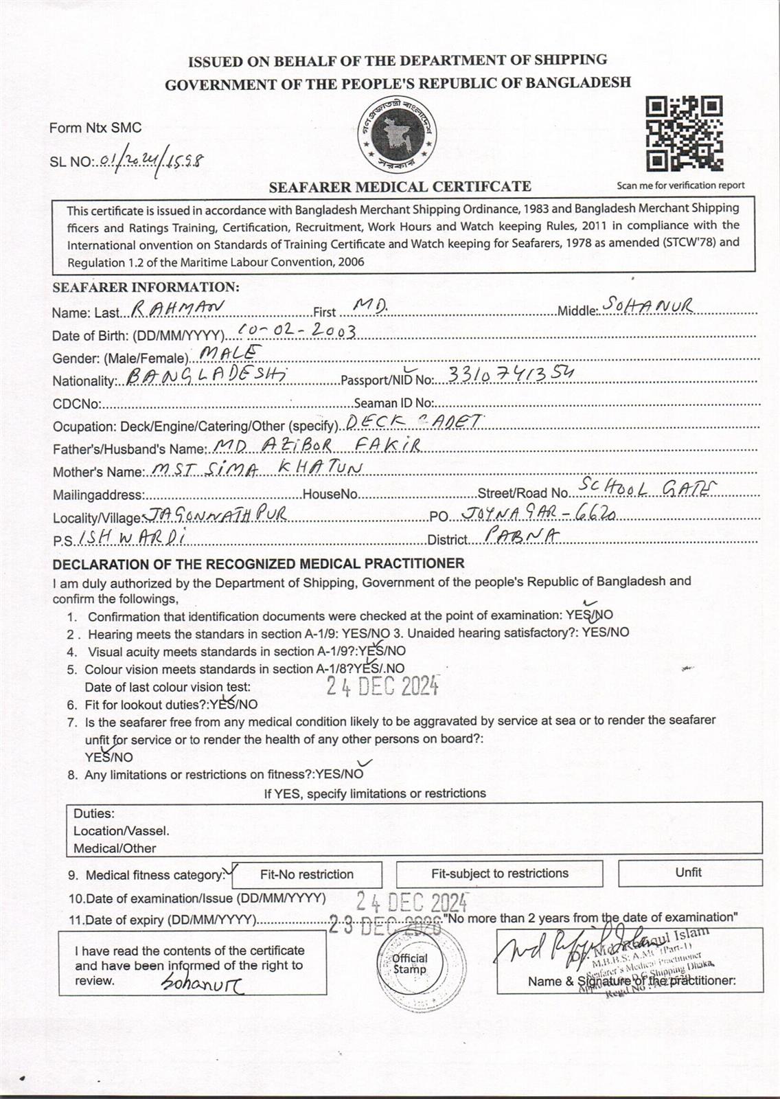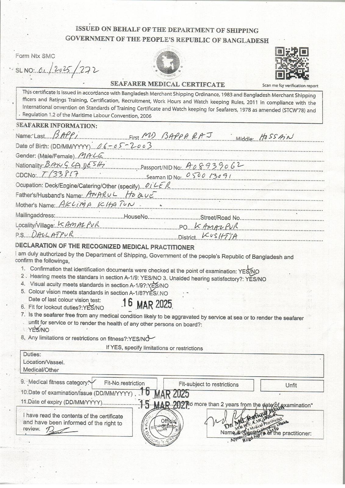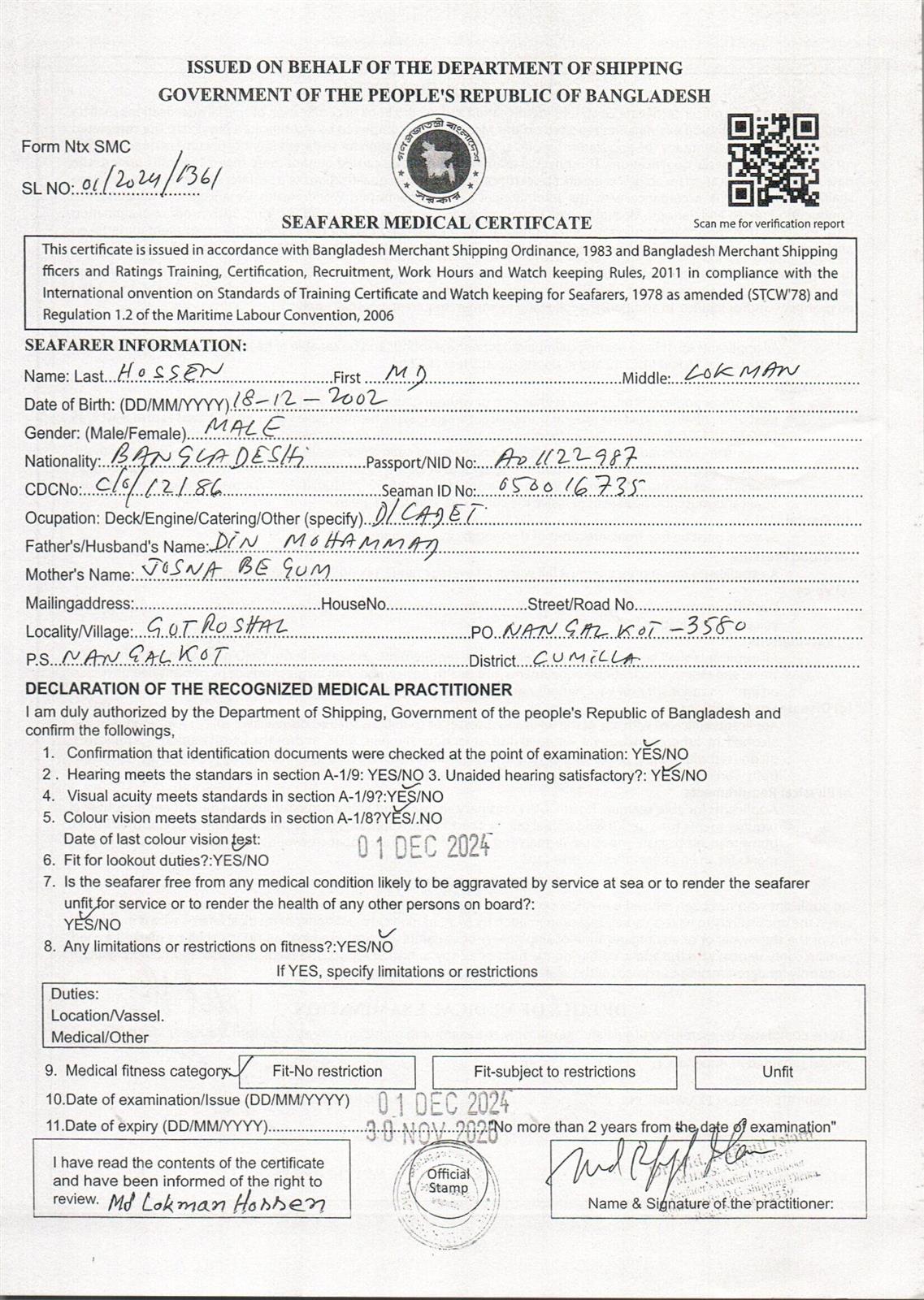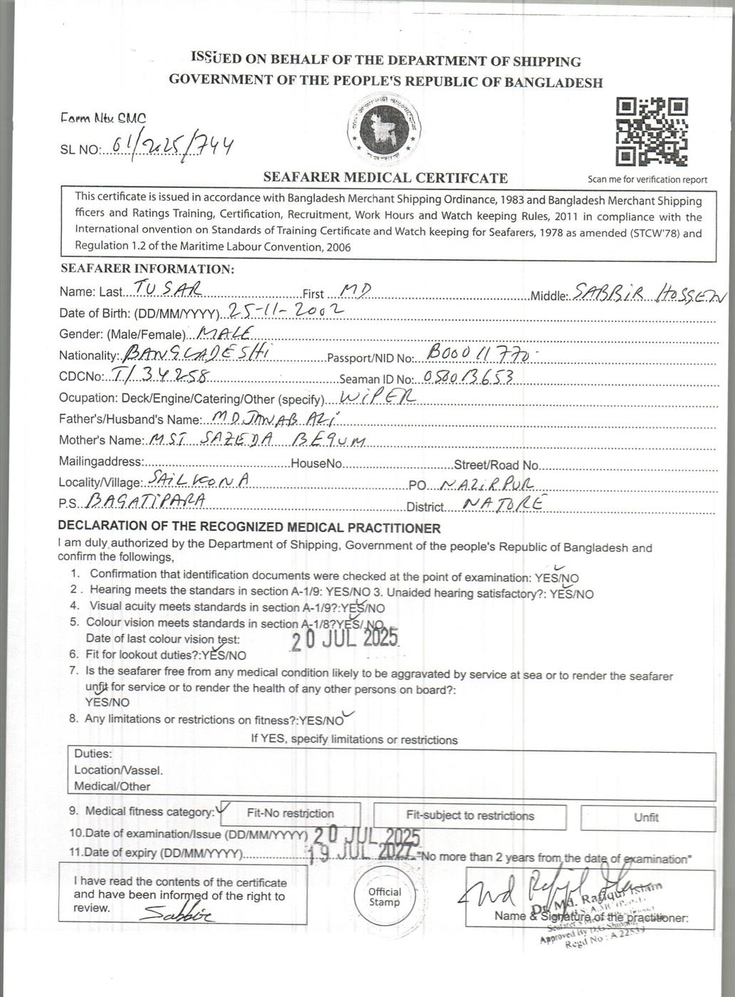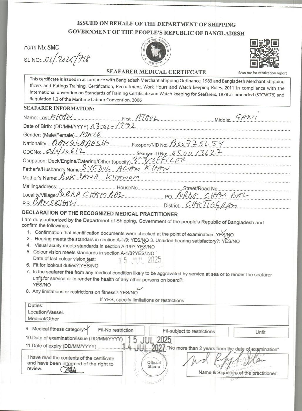 1.. SEAFARER MEDICAL CERTIFICATE