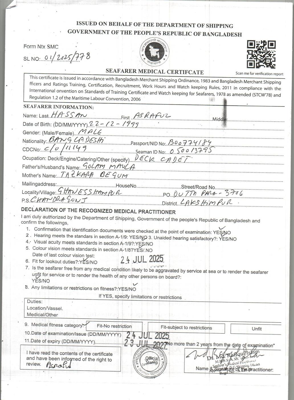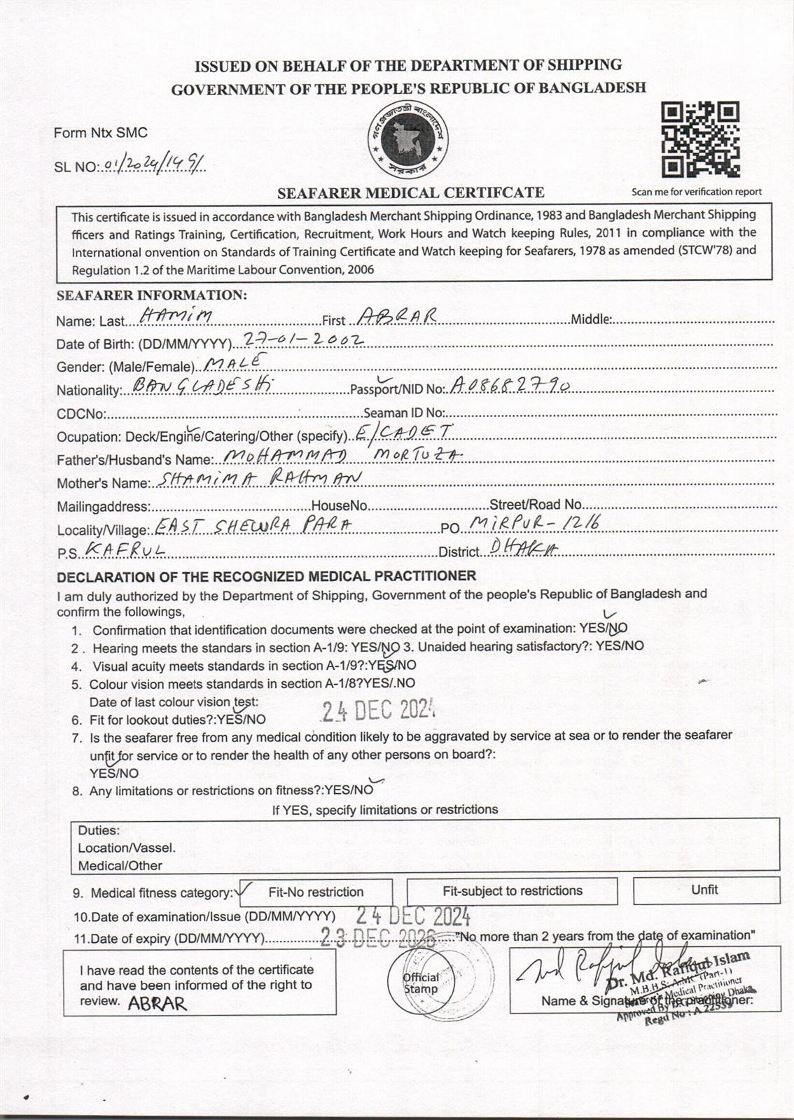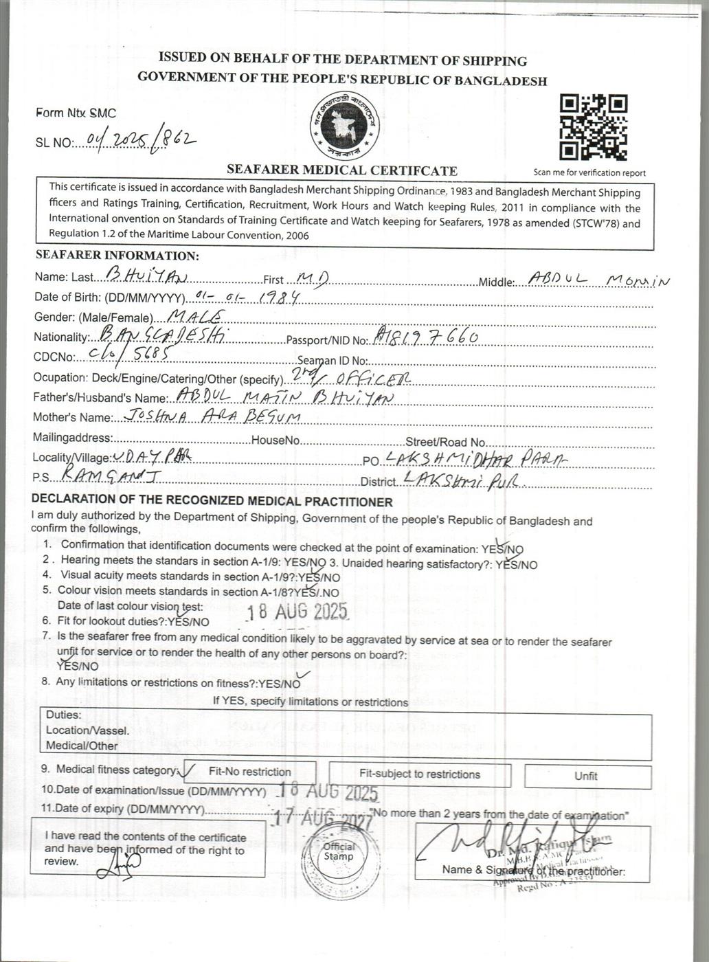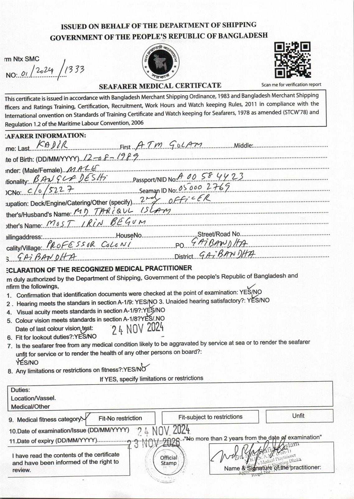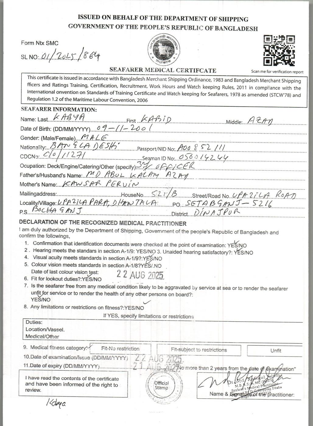 1.. SEAFARER MEDICAL CERTIFICATE