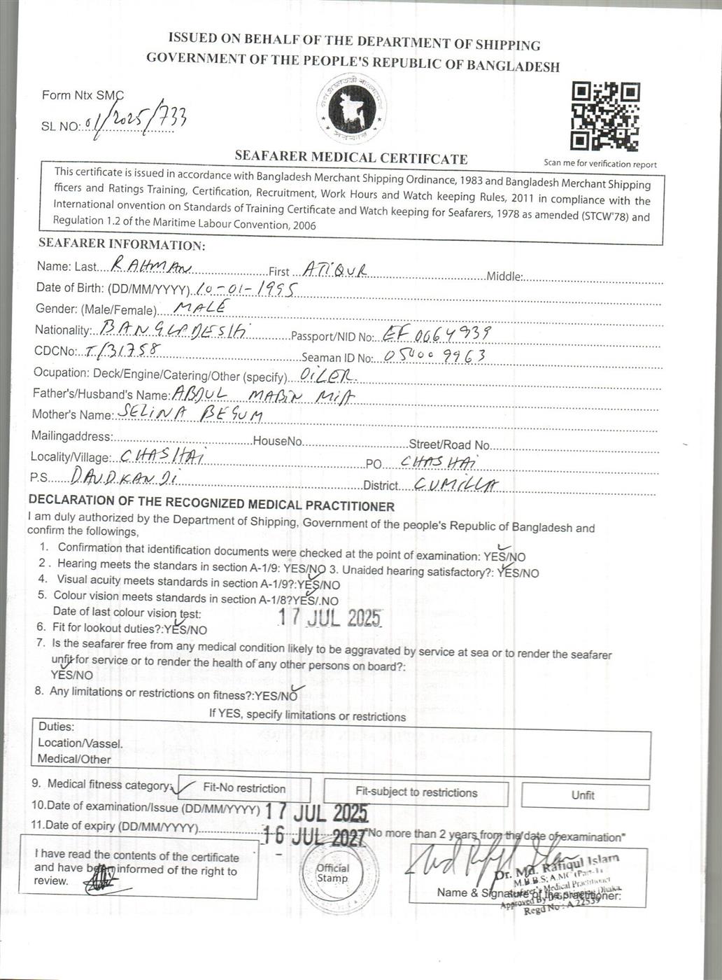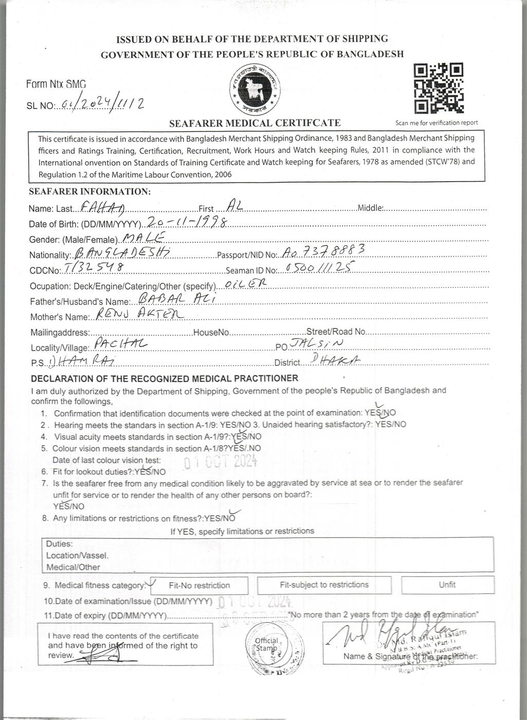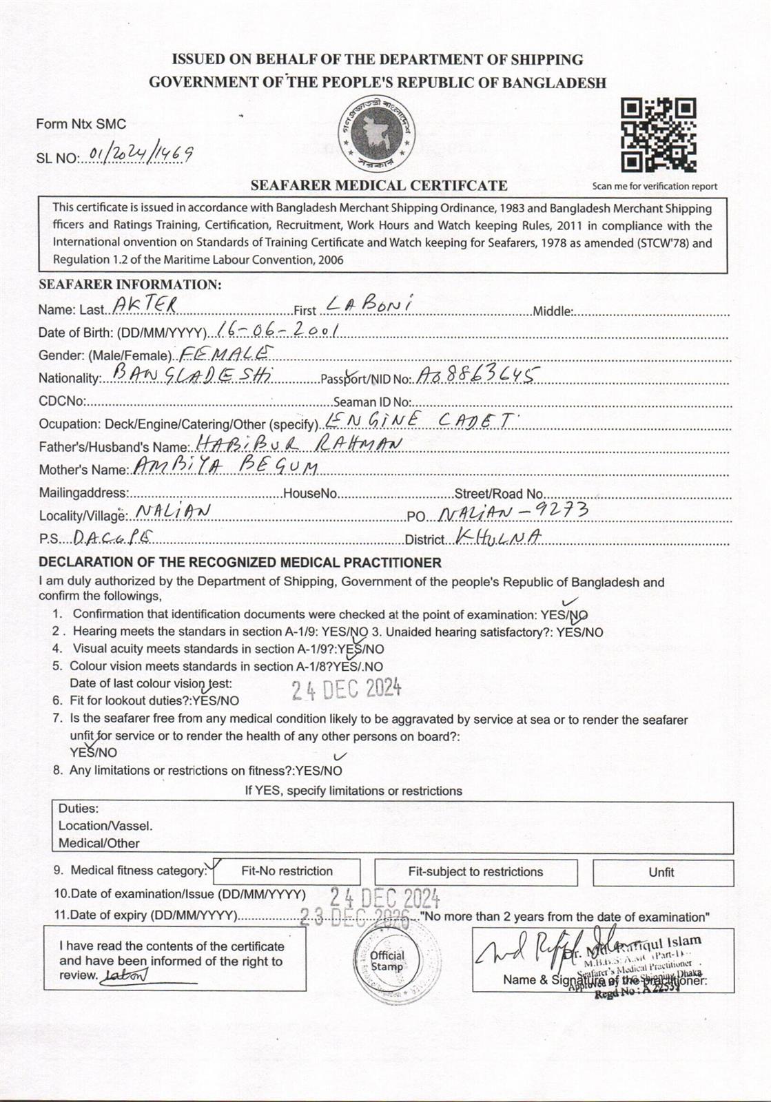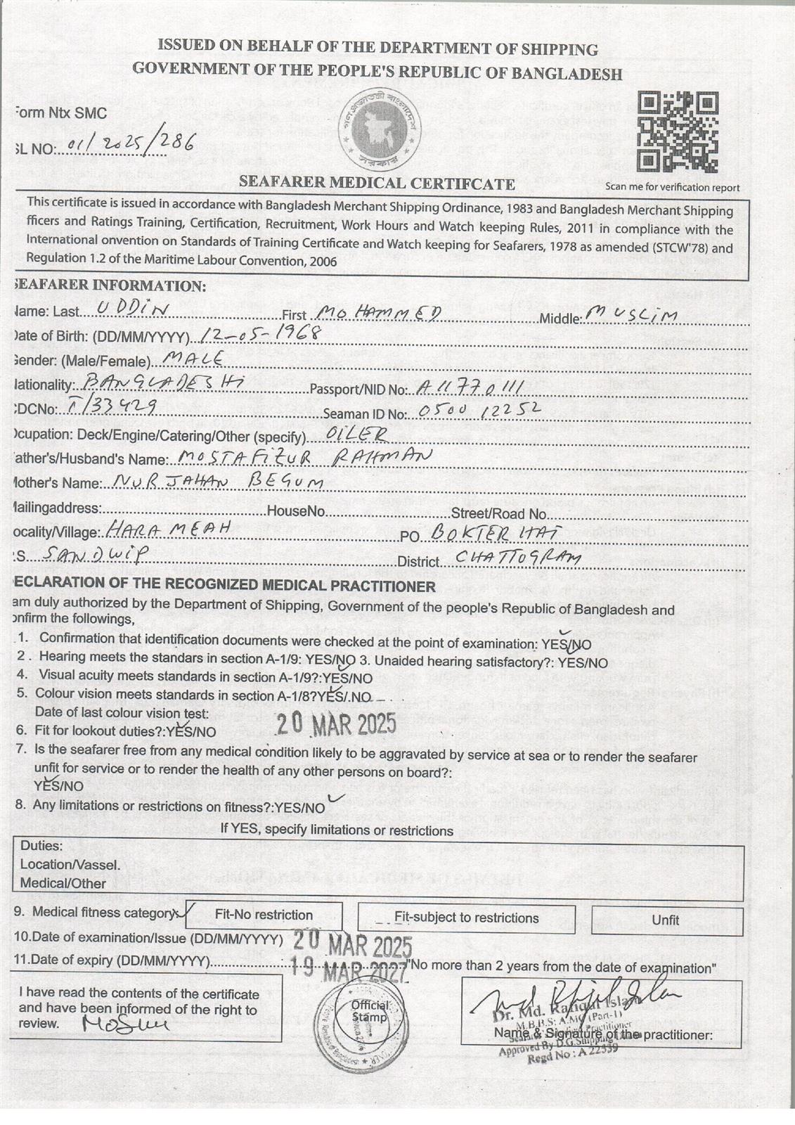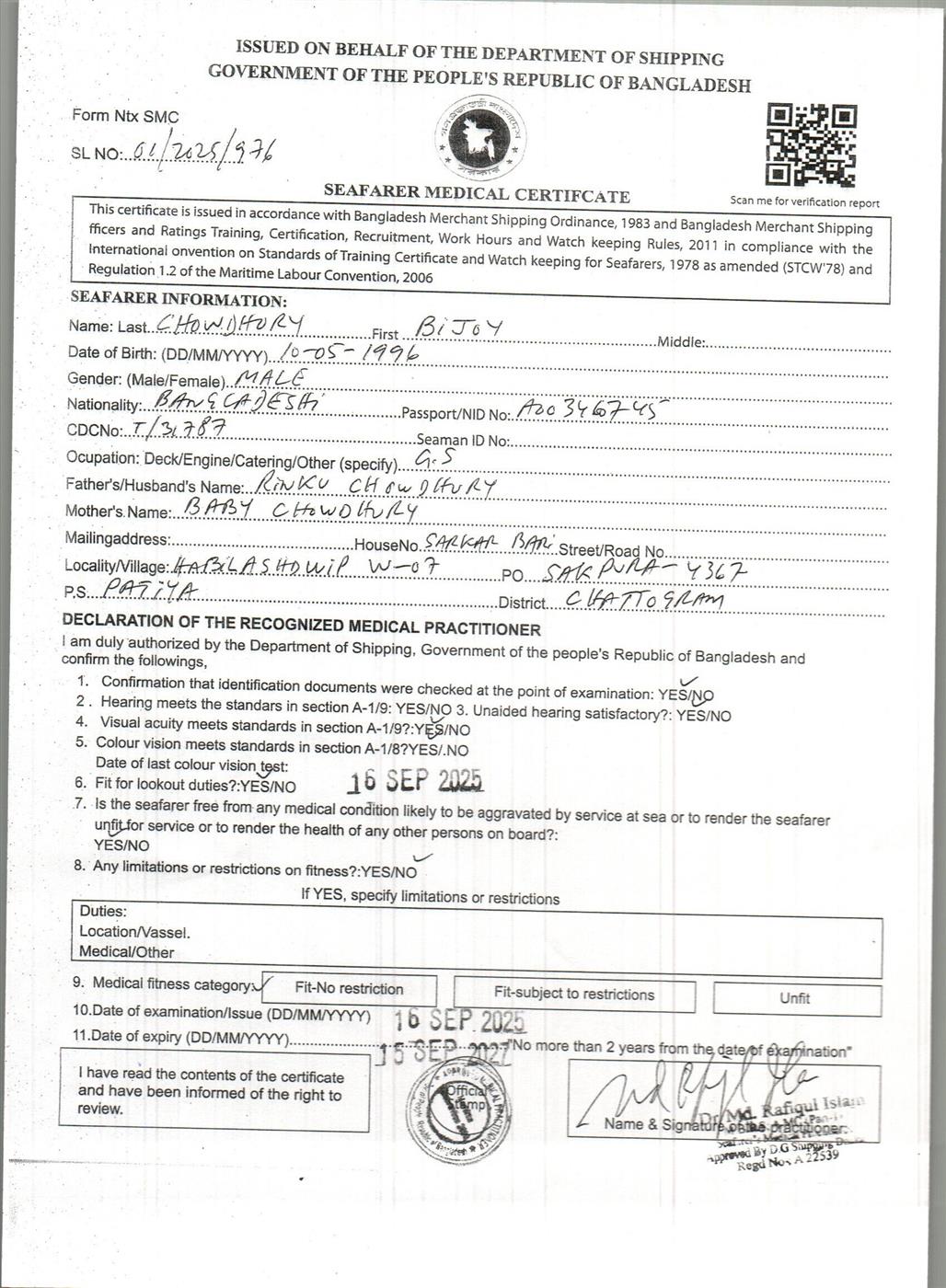 1.. SEAFARER MEDICAL CERTIFICATE