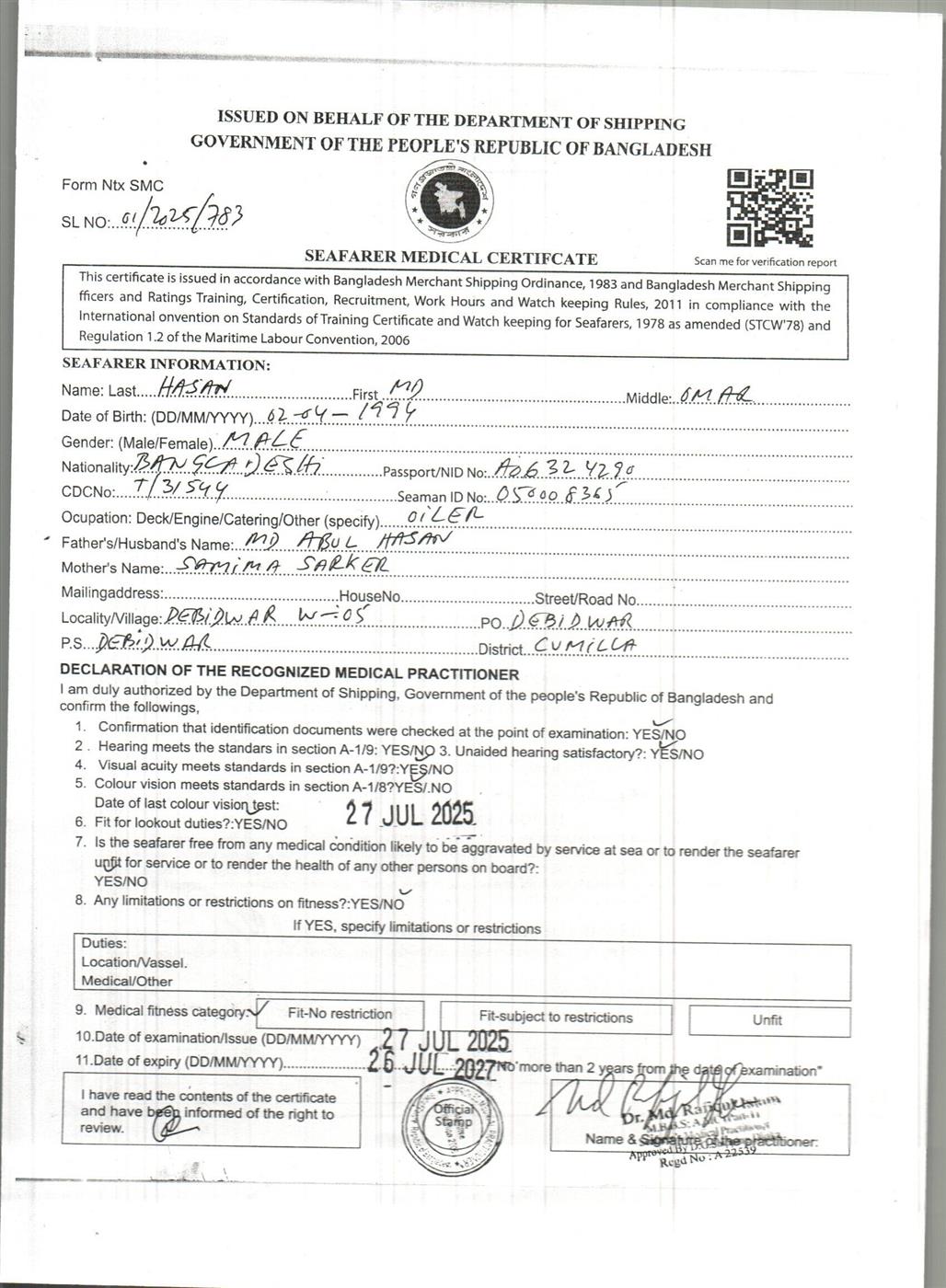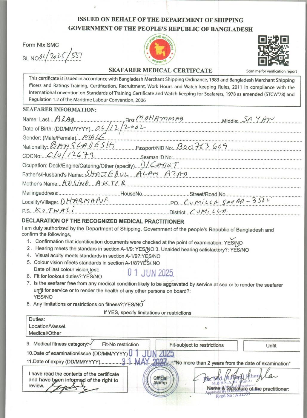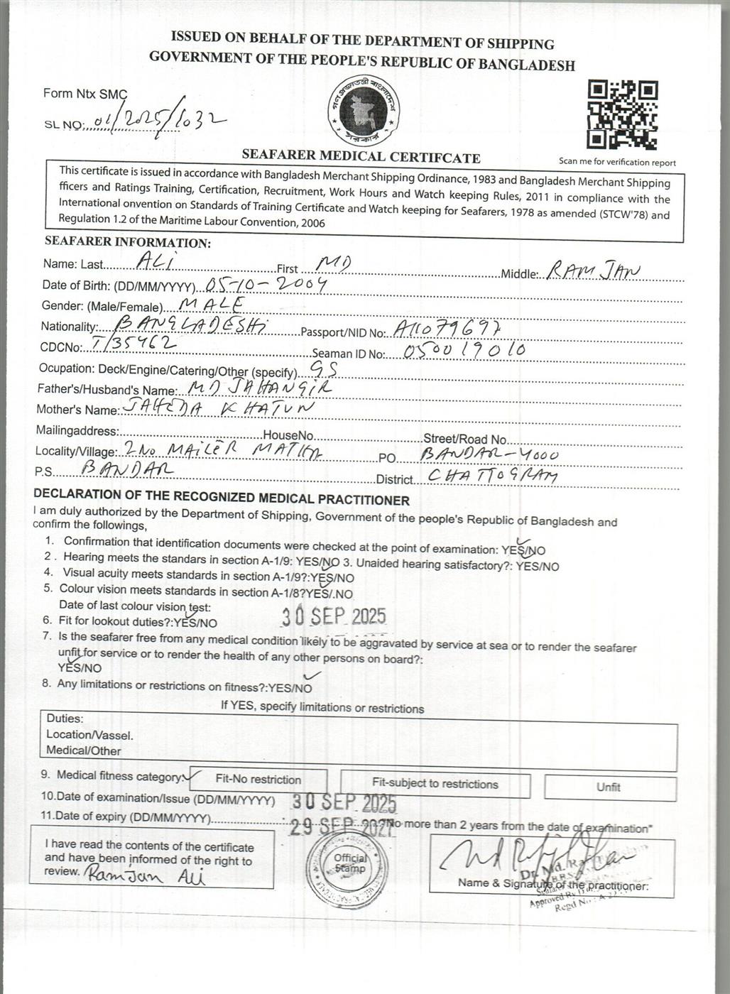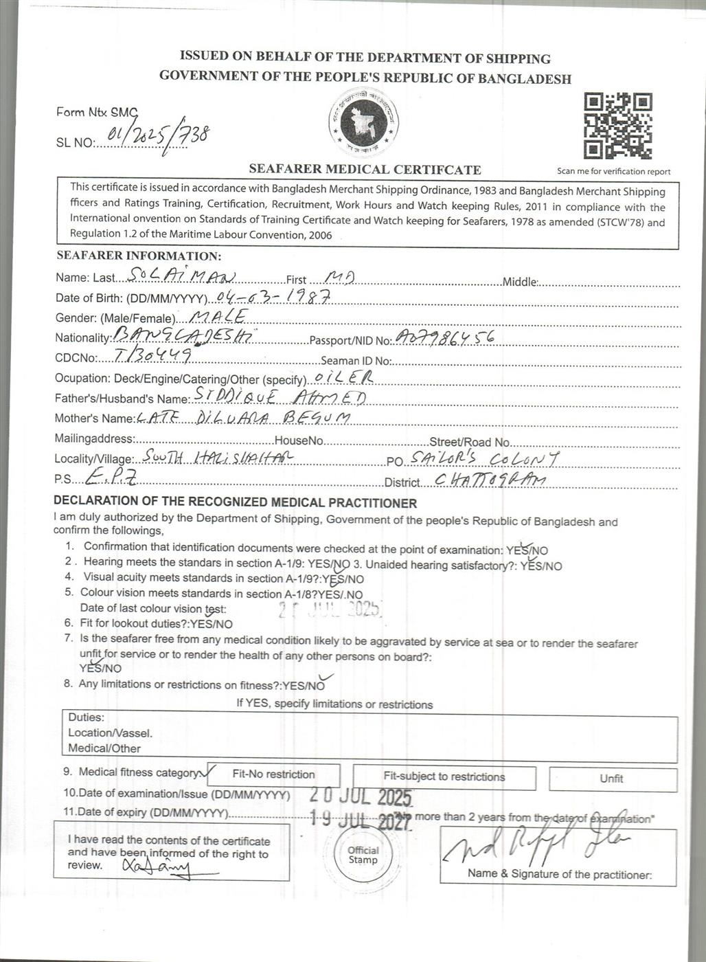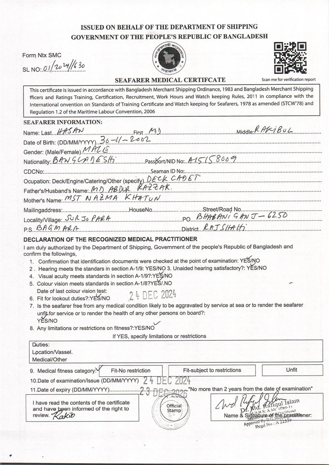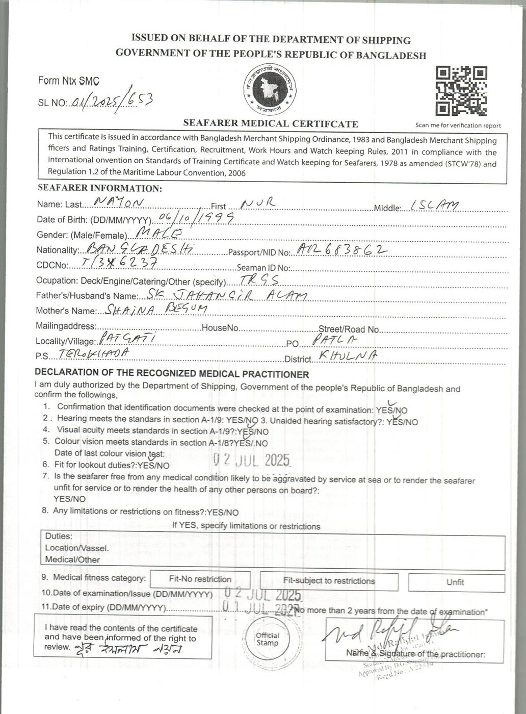 1.. SEAFARER MEDICAL CERTIFICATE