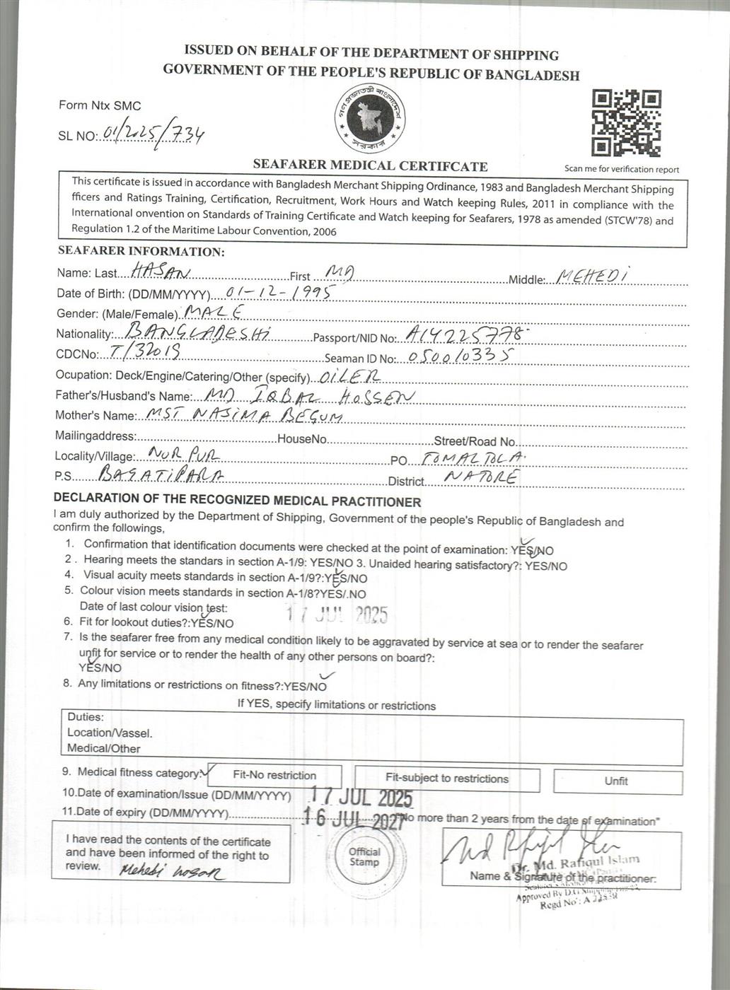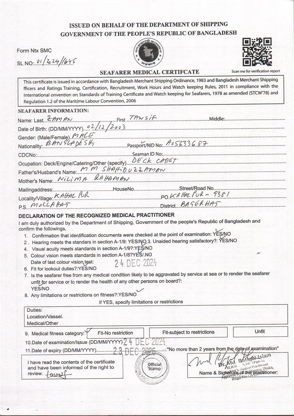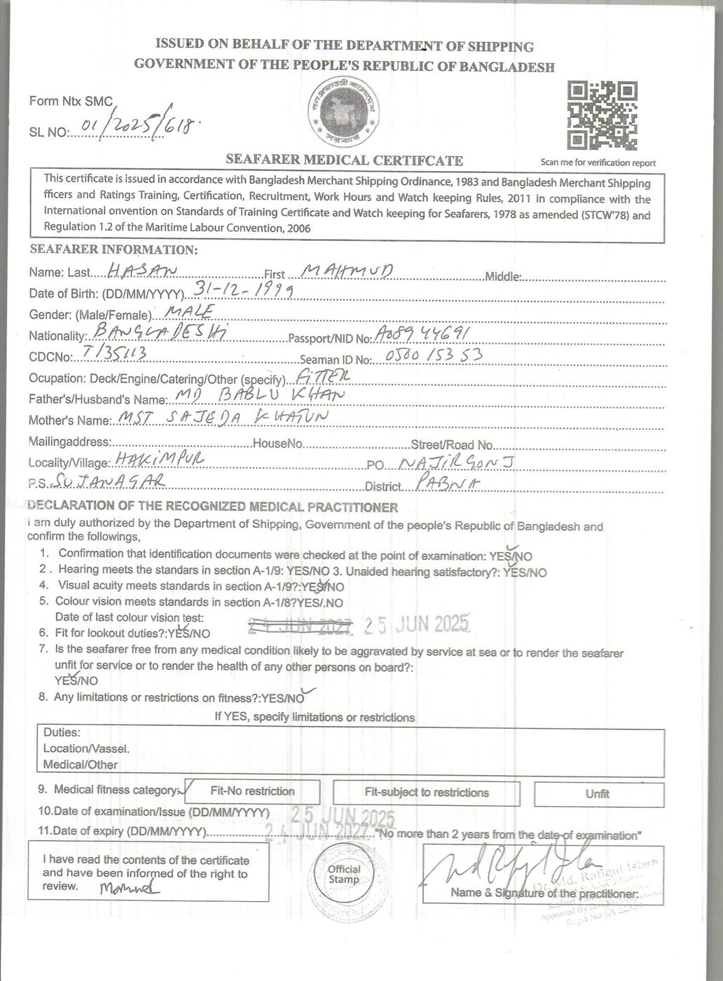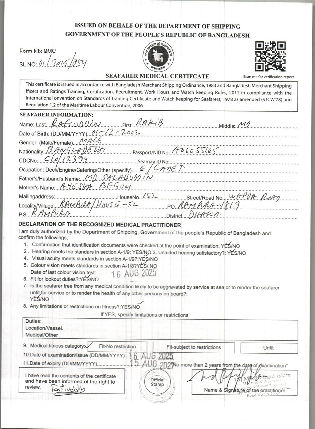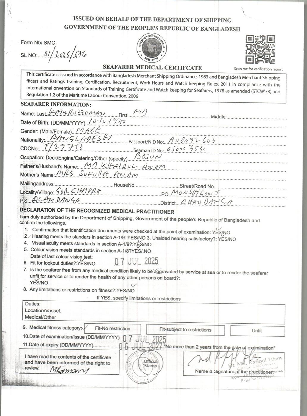 1.. SEAFARER MEDICAL CERTIFICATE