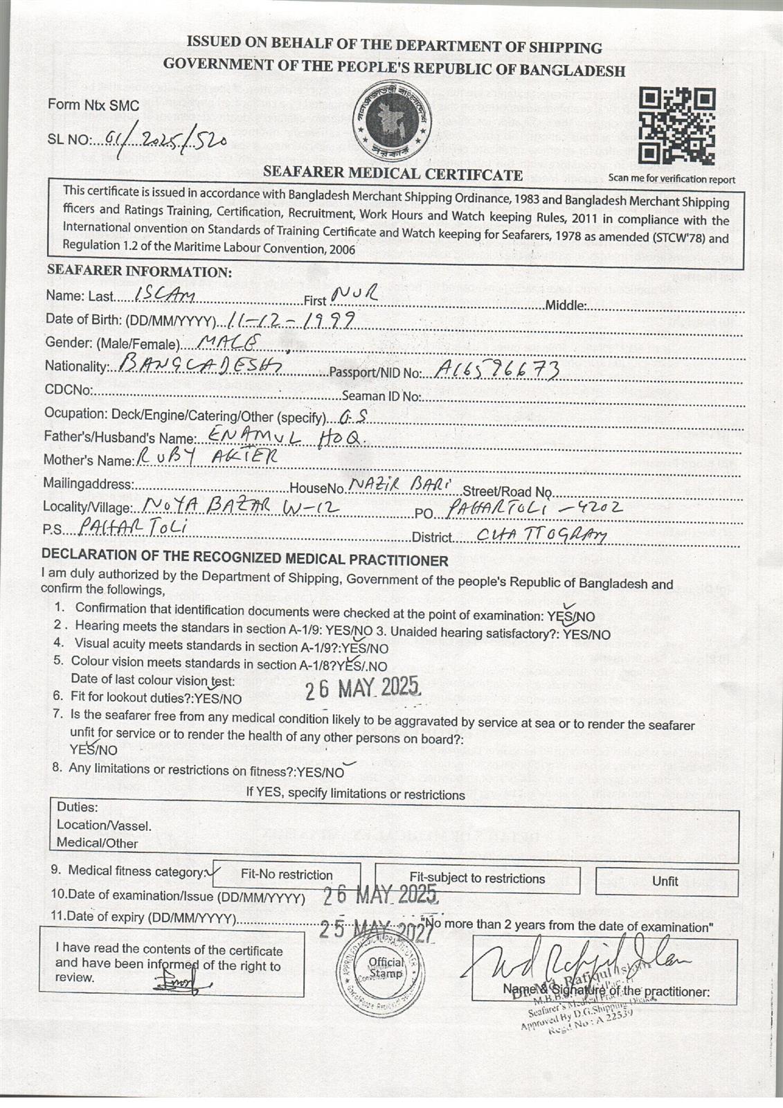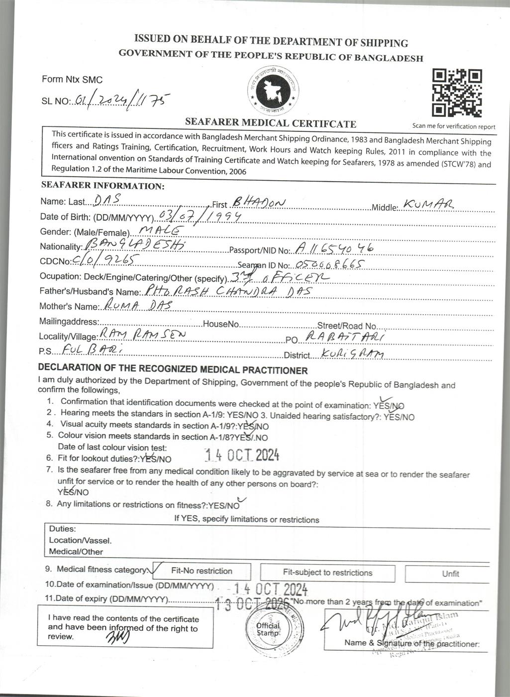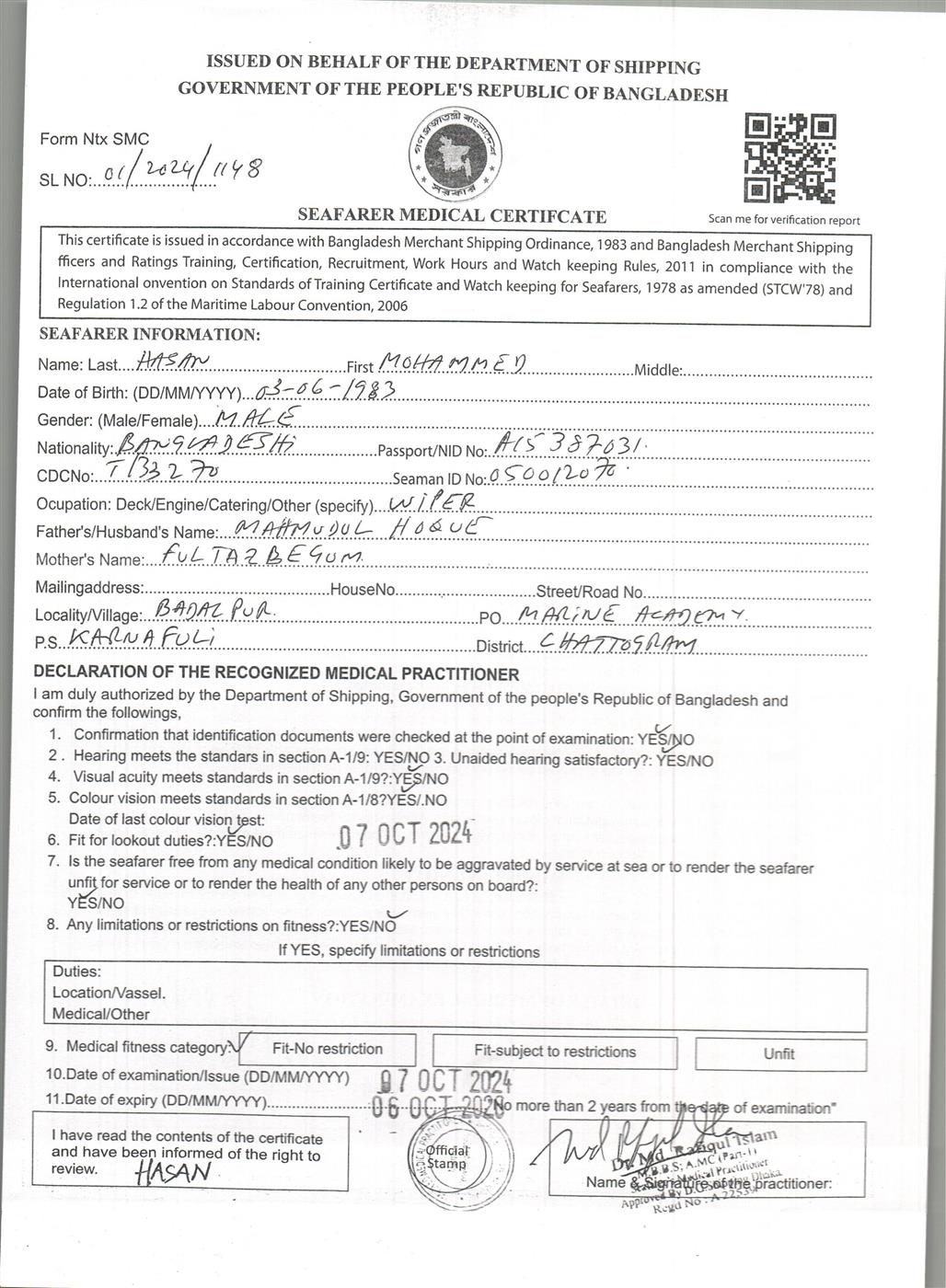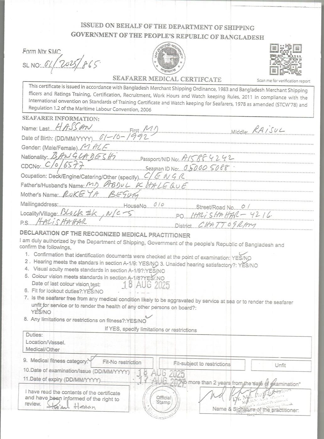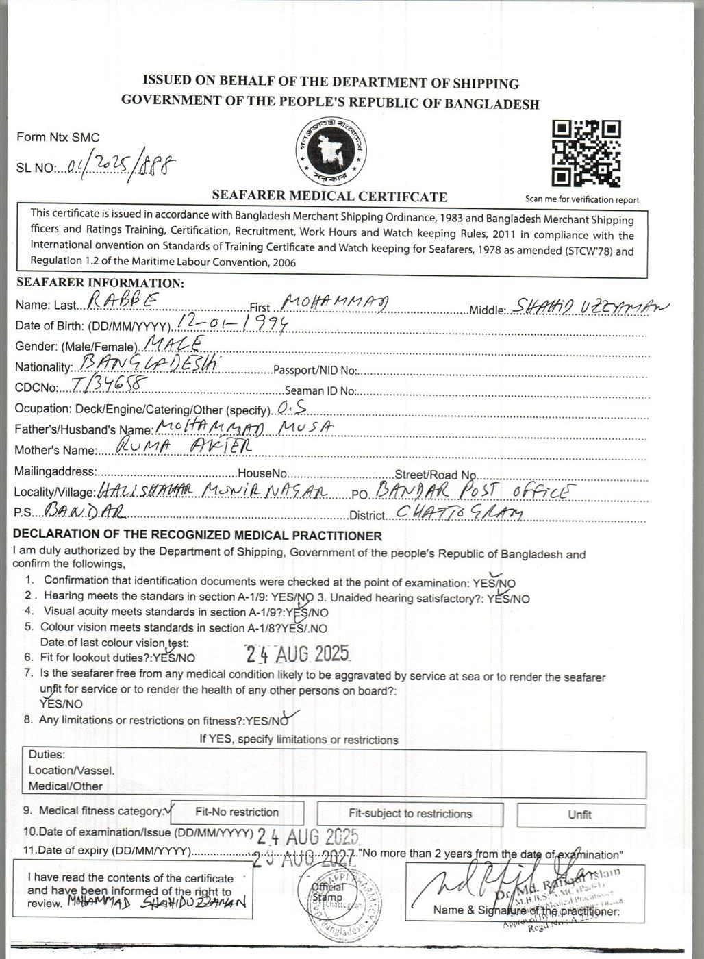 1.. SEAFARER MEDICAL CERTIFICATE