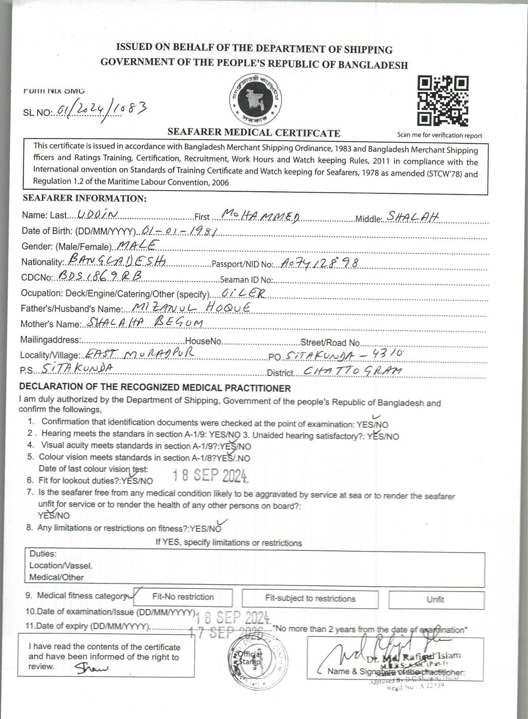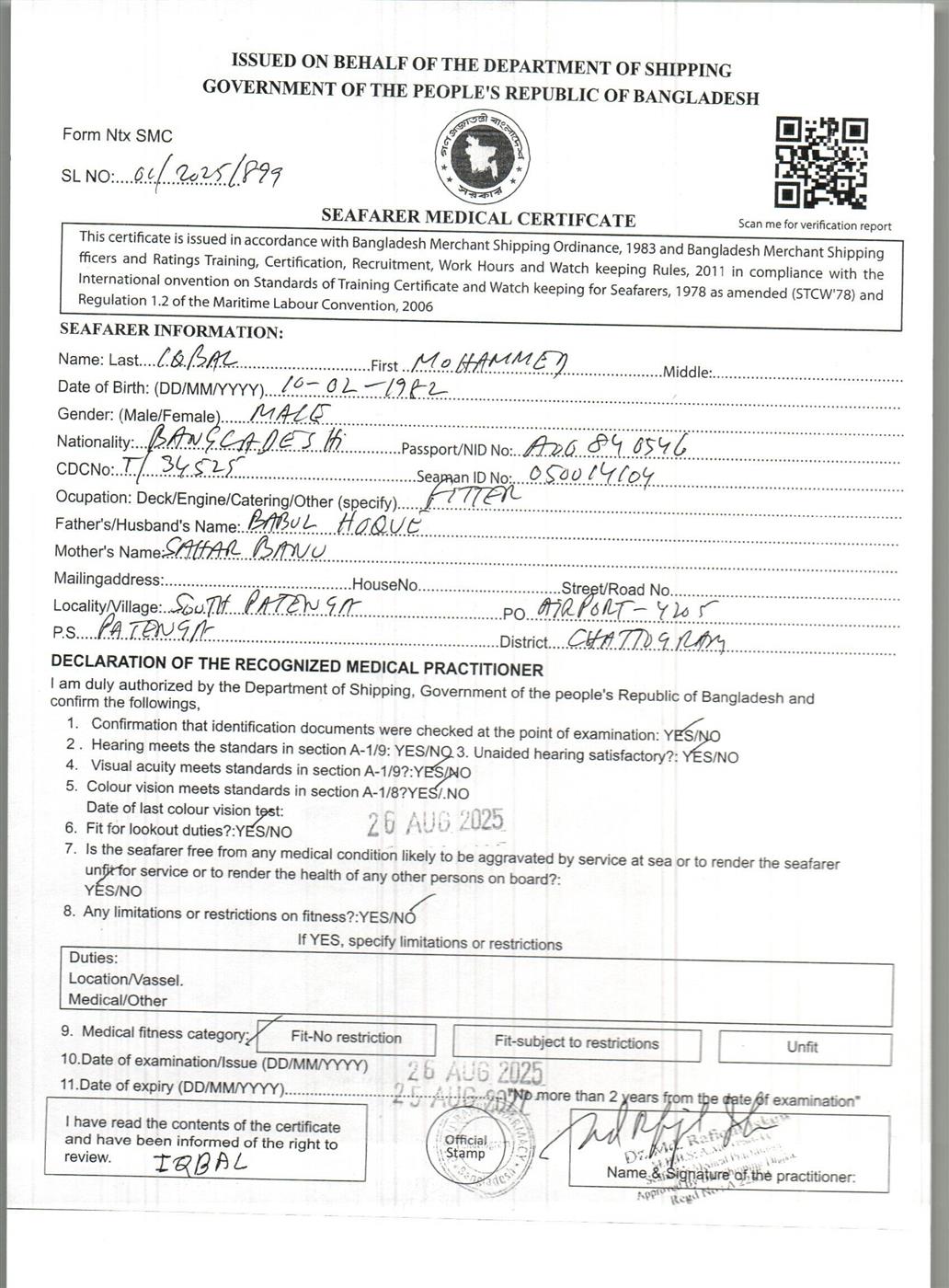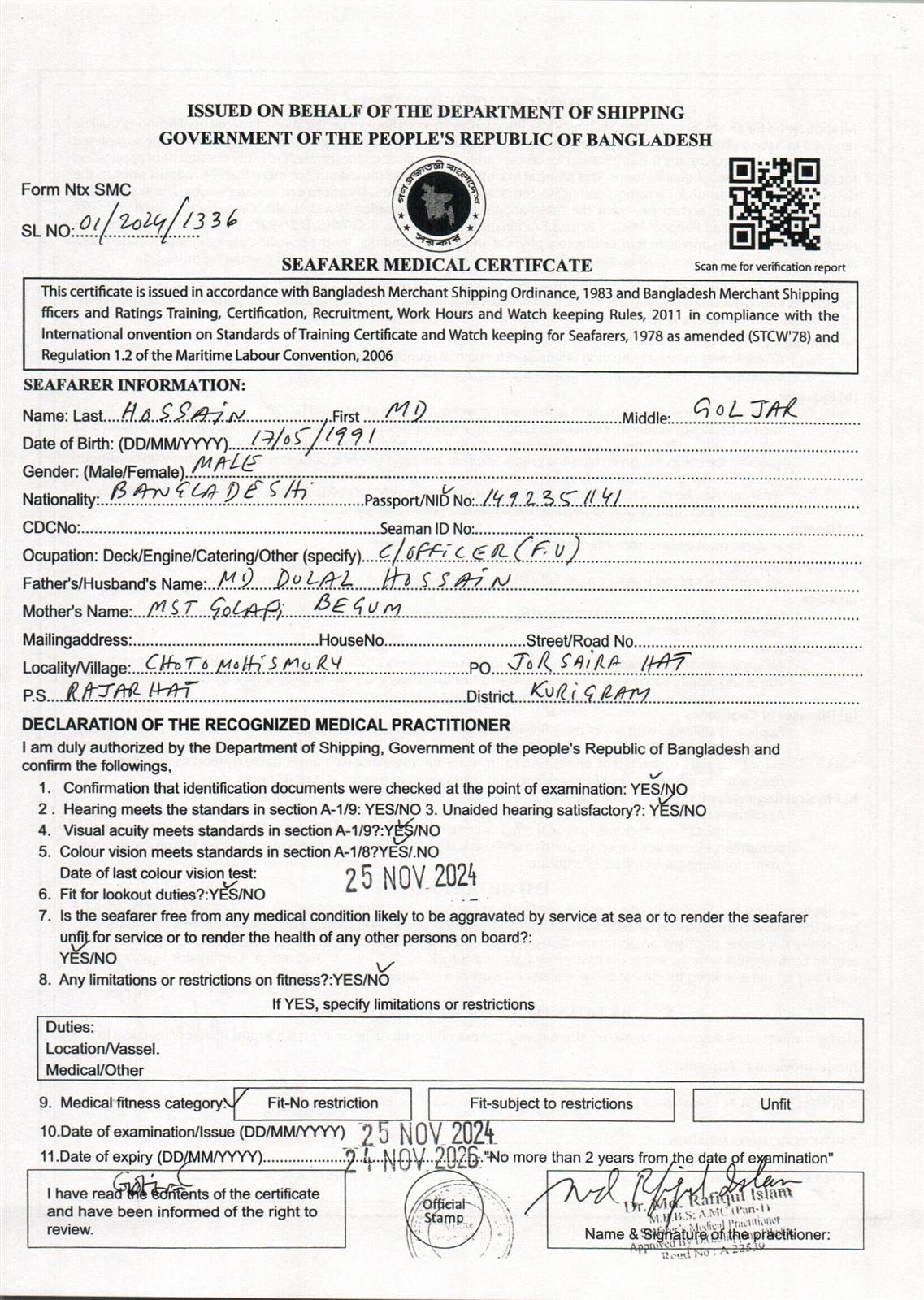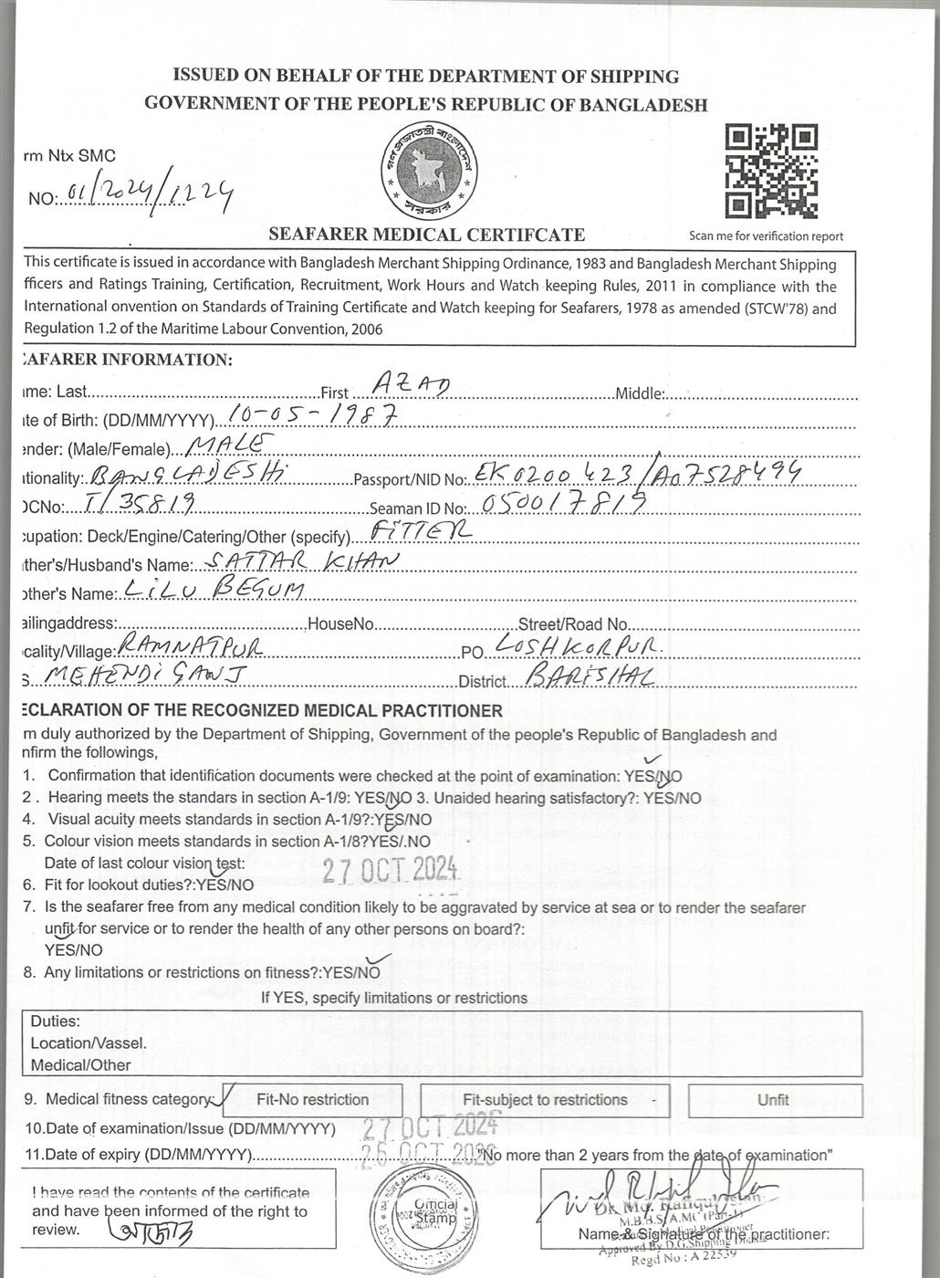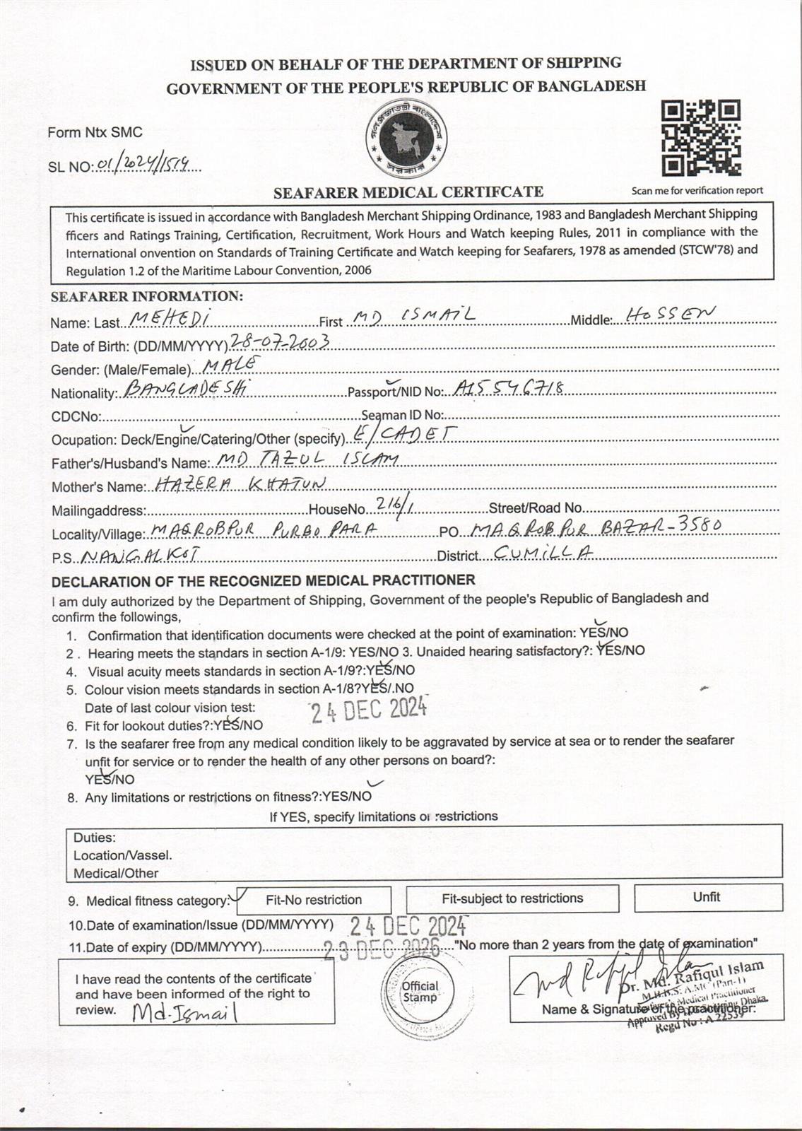 1.. SEAFARER MEDICAL CERTIFICATE
