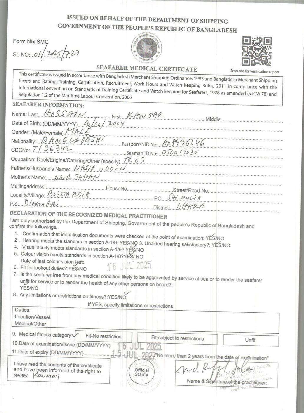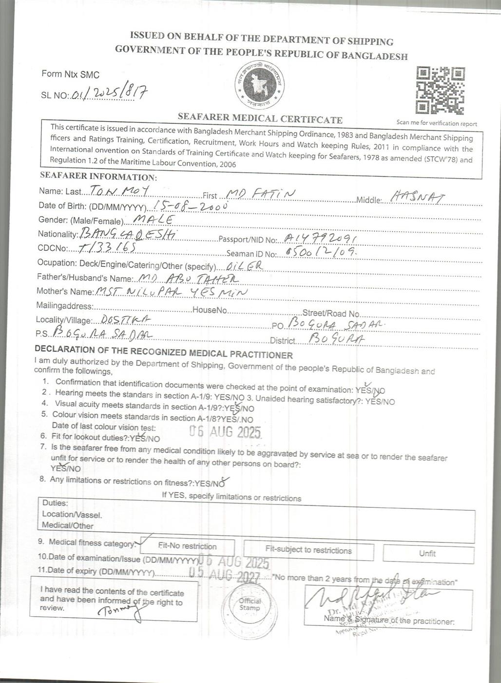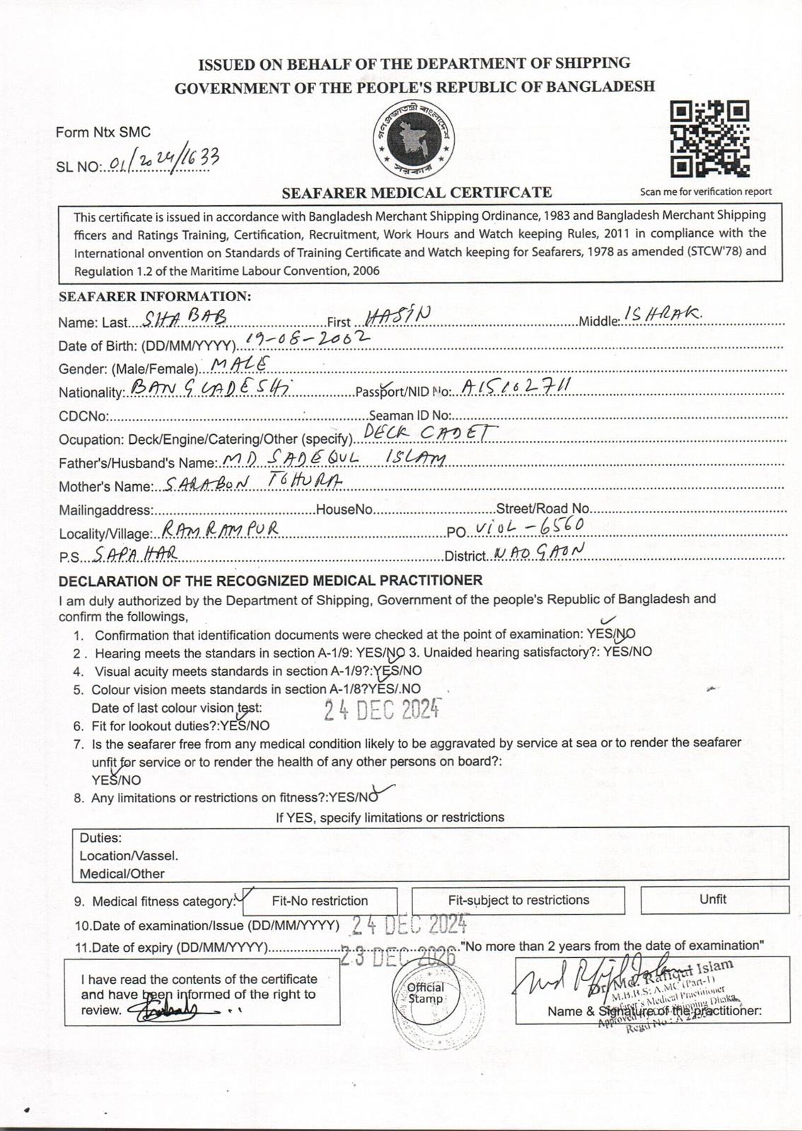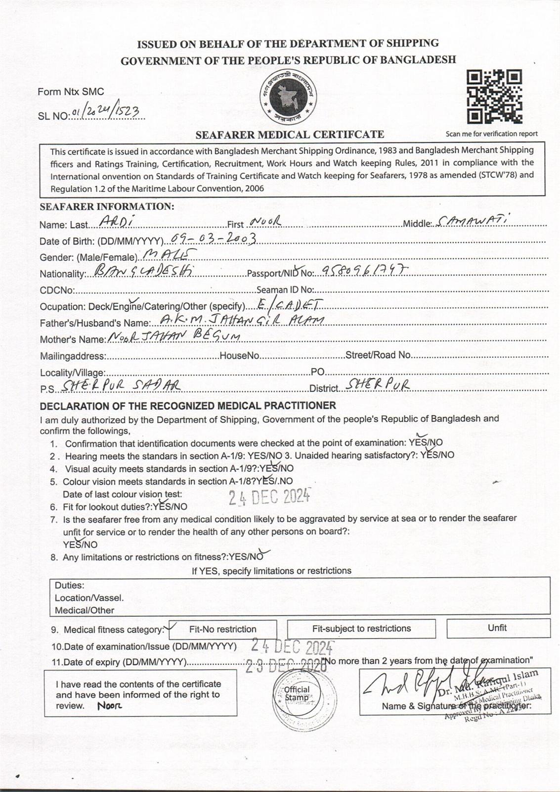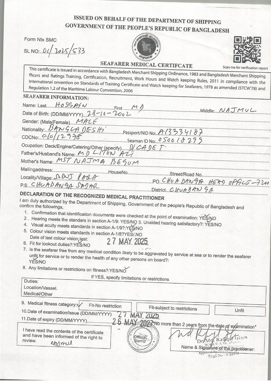 1.. SEAFARER MEDICAL CERTIFICATE
