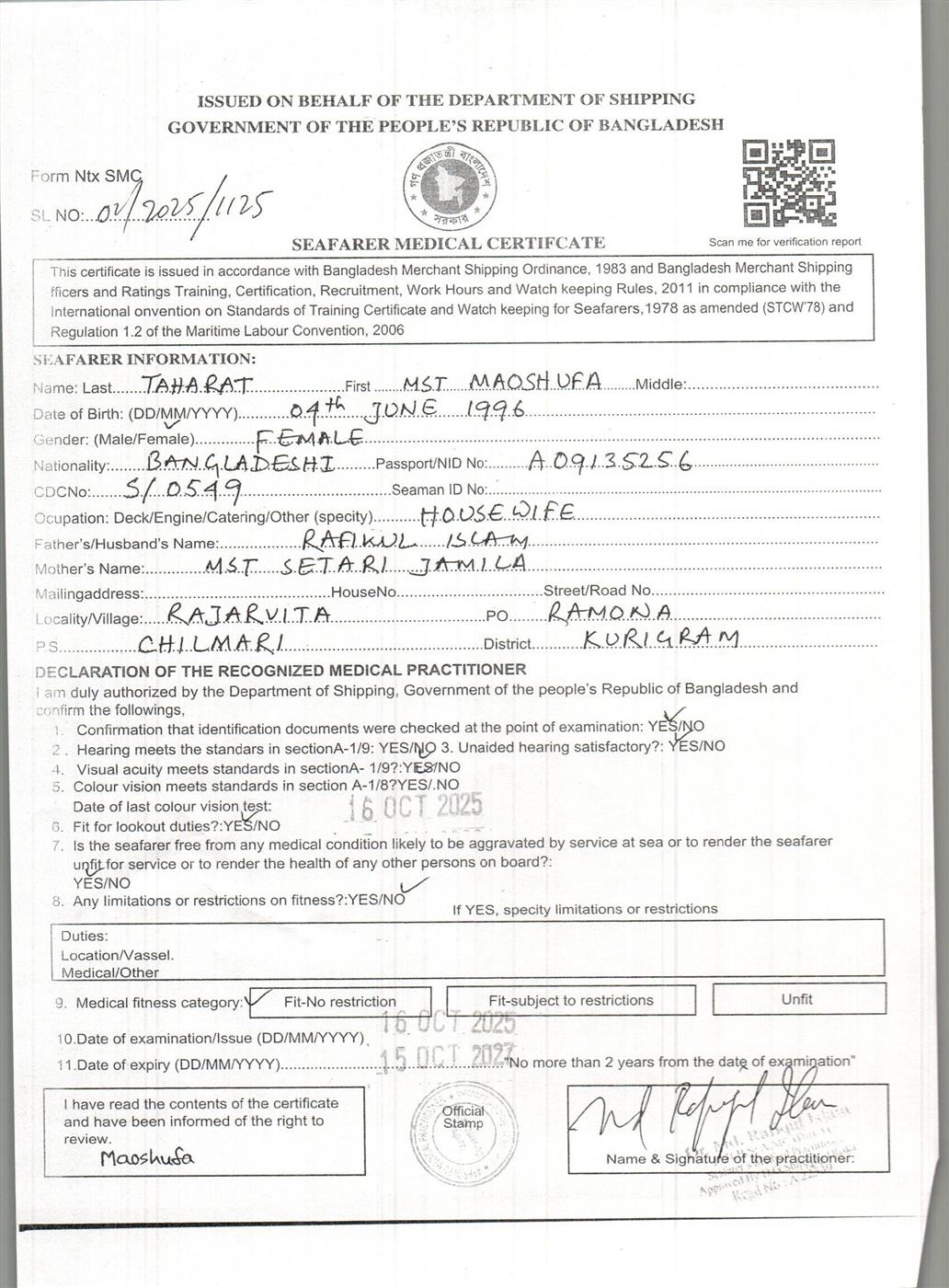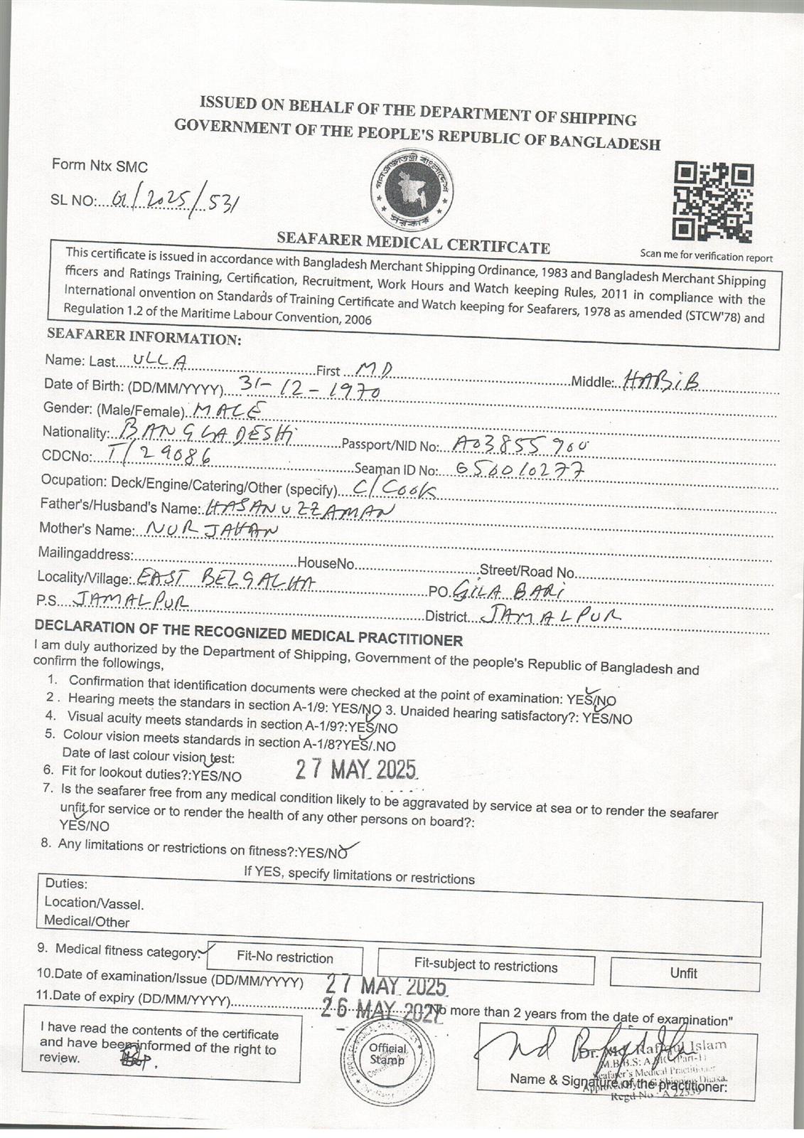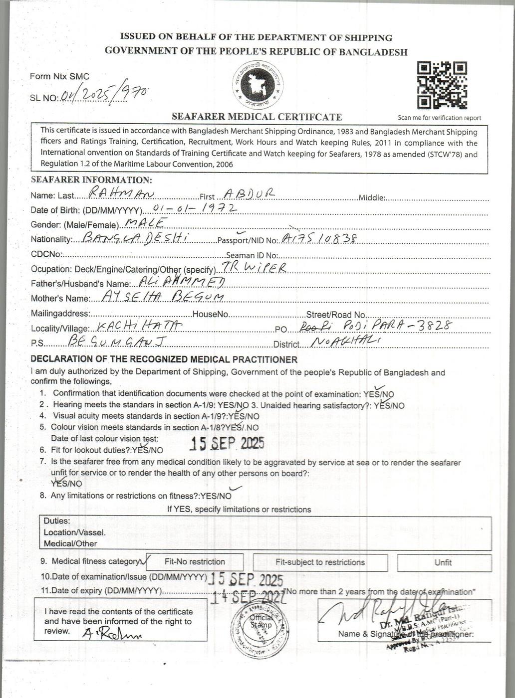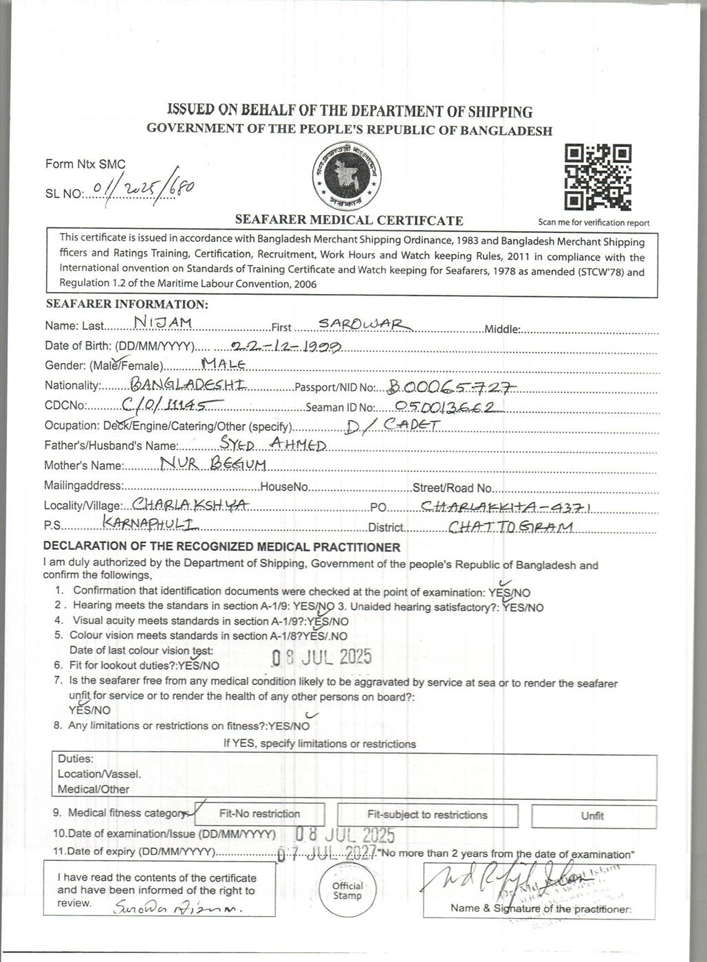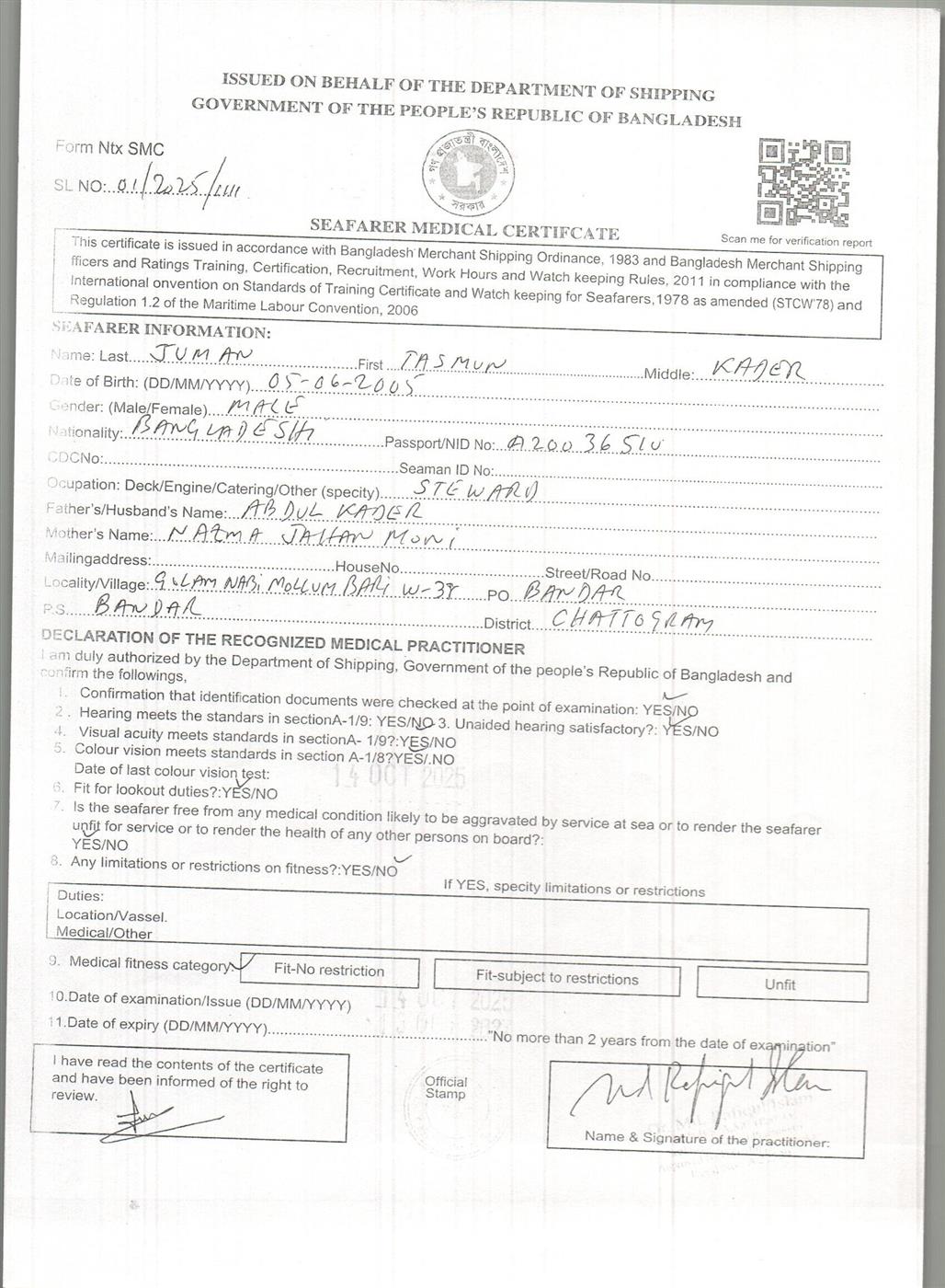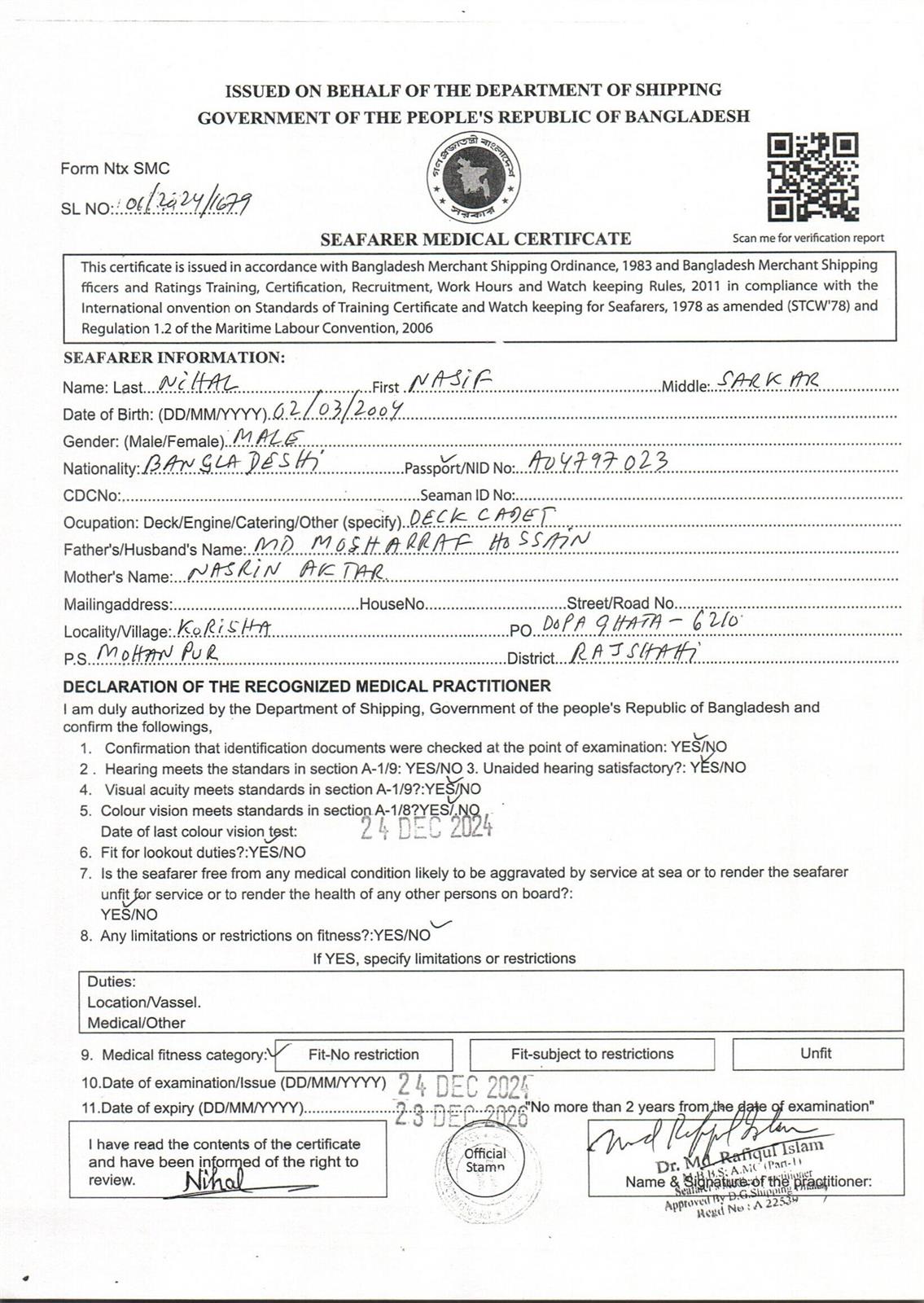 1.. SEAFARER MEDICAL CERTIFICATE